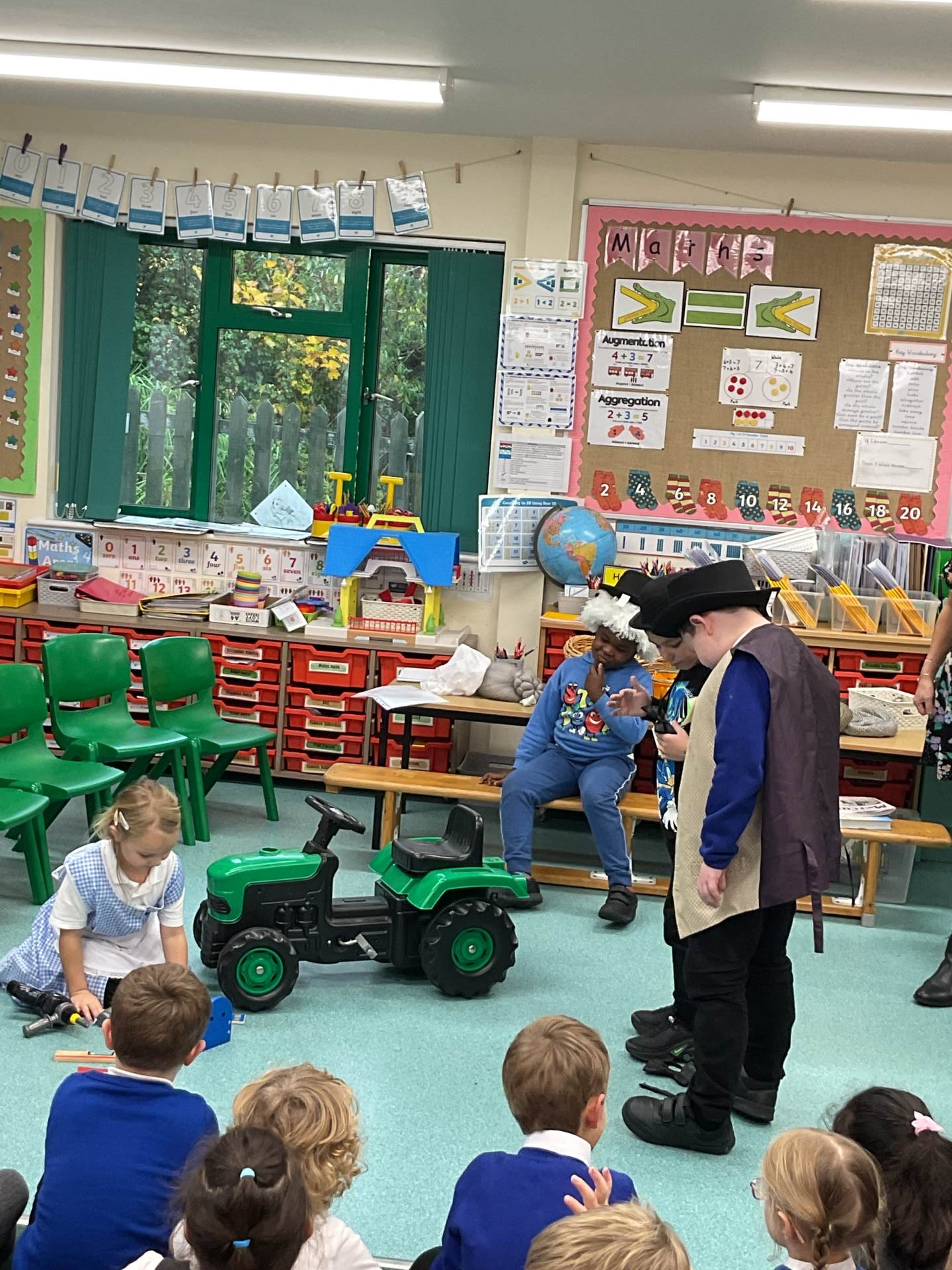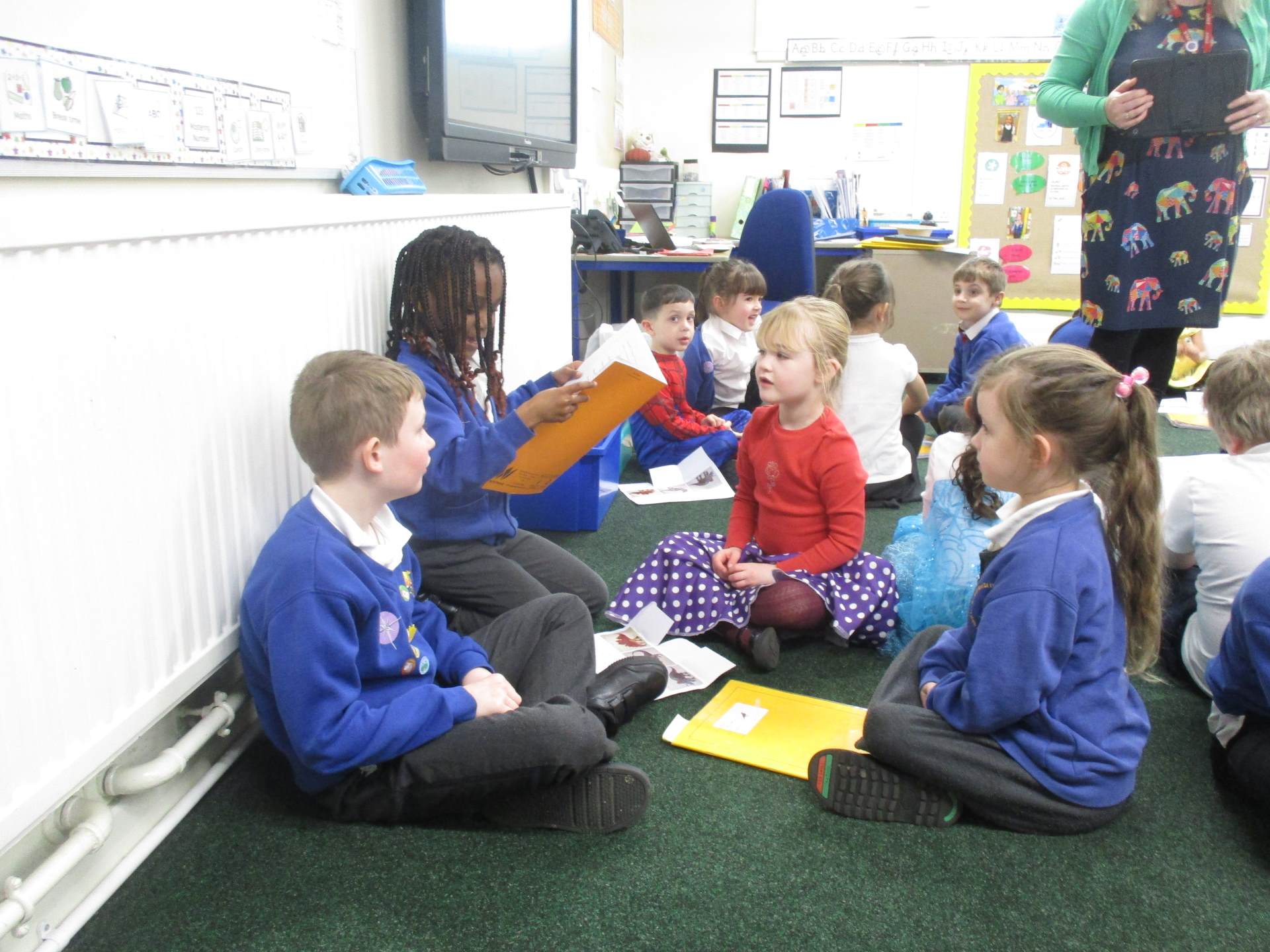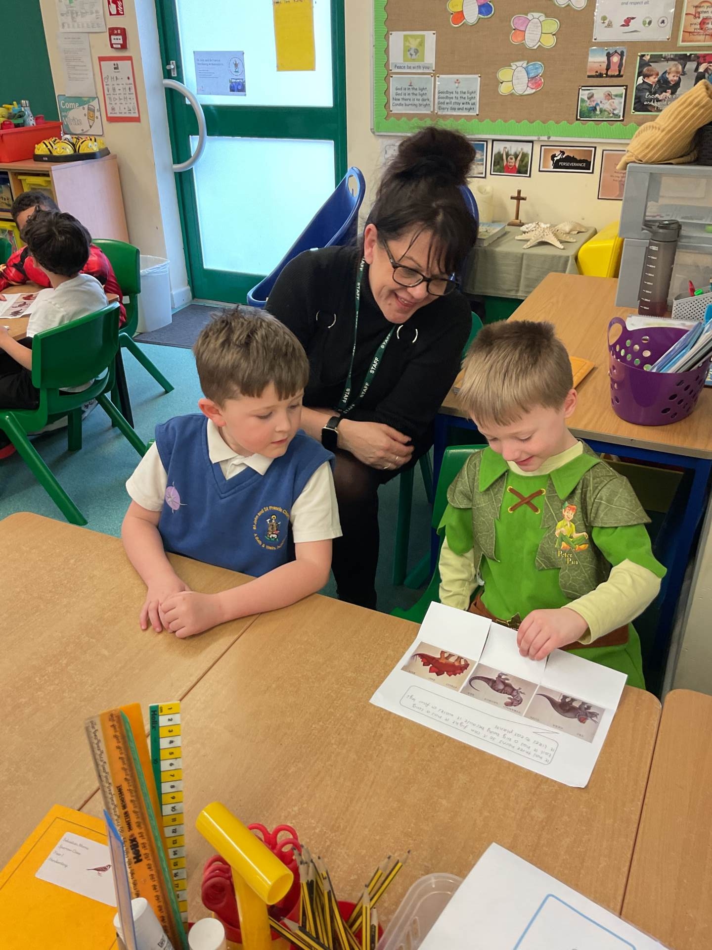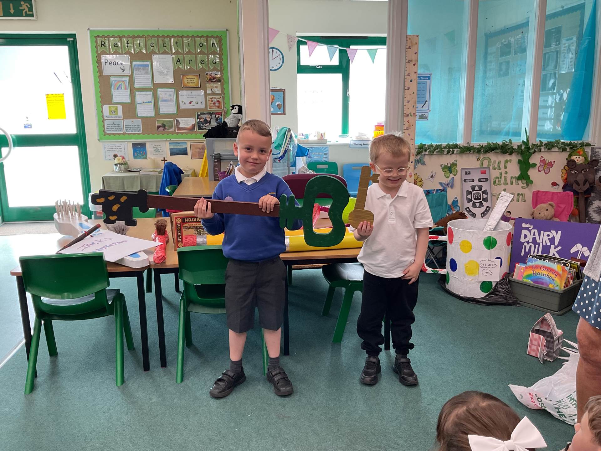 As part of our Oracy focus we have been looking at character descriptions across the school. In year 1 we focussed on George the giant in the story of The Smartest Giant in Town. We either described George before he got his lovely new smart clothes or after when he was really proud of how he looked. Today we worked across KS1 and EYFS and had the chance to read our descriptions to the other children and to see if they could guess which George we were describing. We also had the chance to listen to EYFS's descriptions of different dinosaurs and Year 2's descriptions of either a goat or a troll from the story- The Three Billy Goats Gruff. What a lovely time we had visiting differnt classes and working with different children.