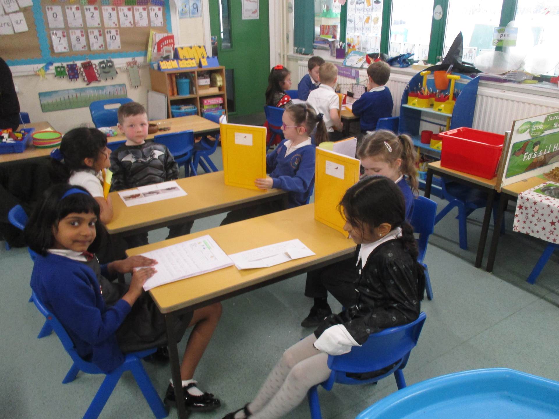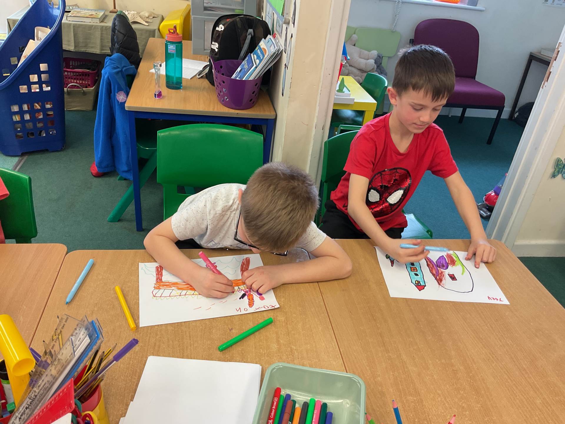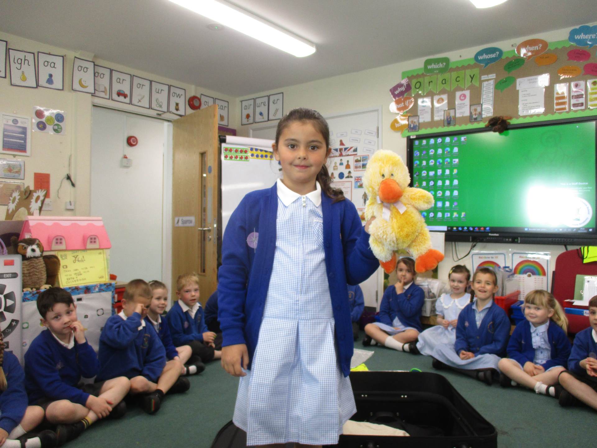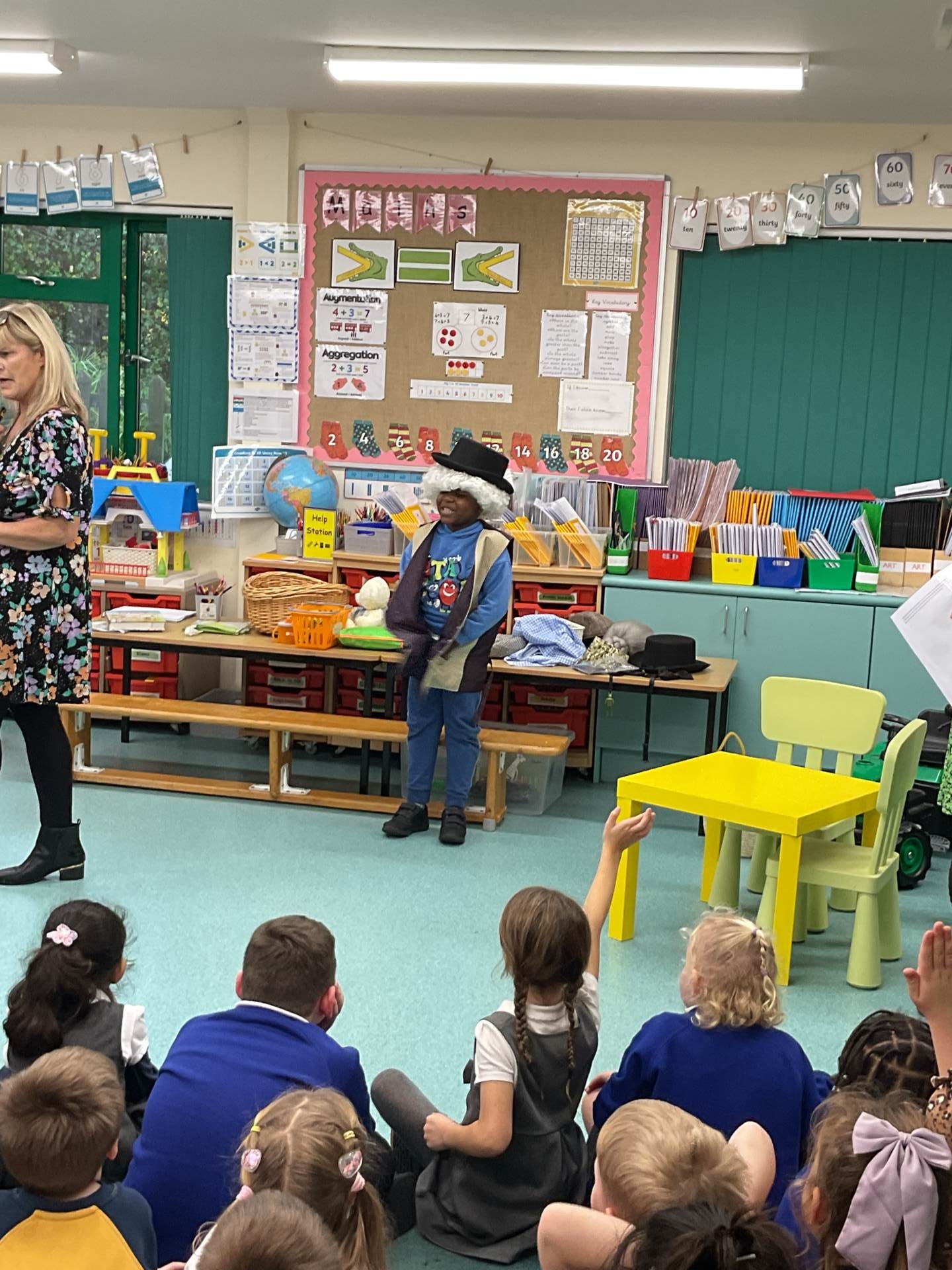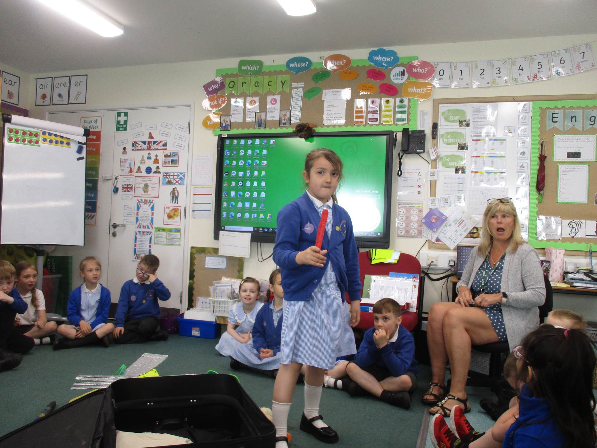 As part of our Oracy focus we have been looking at character descriptions across the school. In year 1 we focussed on George the giant in the story of The Smartest Giant in Town. We either described George before he got his lovely new smart clothes or after when he was really proud of how he looked. Today we worked across KS1 and EYFS and had the chance to read our descriptions to the other children and to see if they could guess which George we were describing. We also had the chance to listen to EYFS's descriptions of different dinosaurs and Year 2's descriptions of either a goat or a troll from the story- The Three Billy Goats Gruff. What a lovely time we had visiting differnt classes and working with different children.