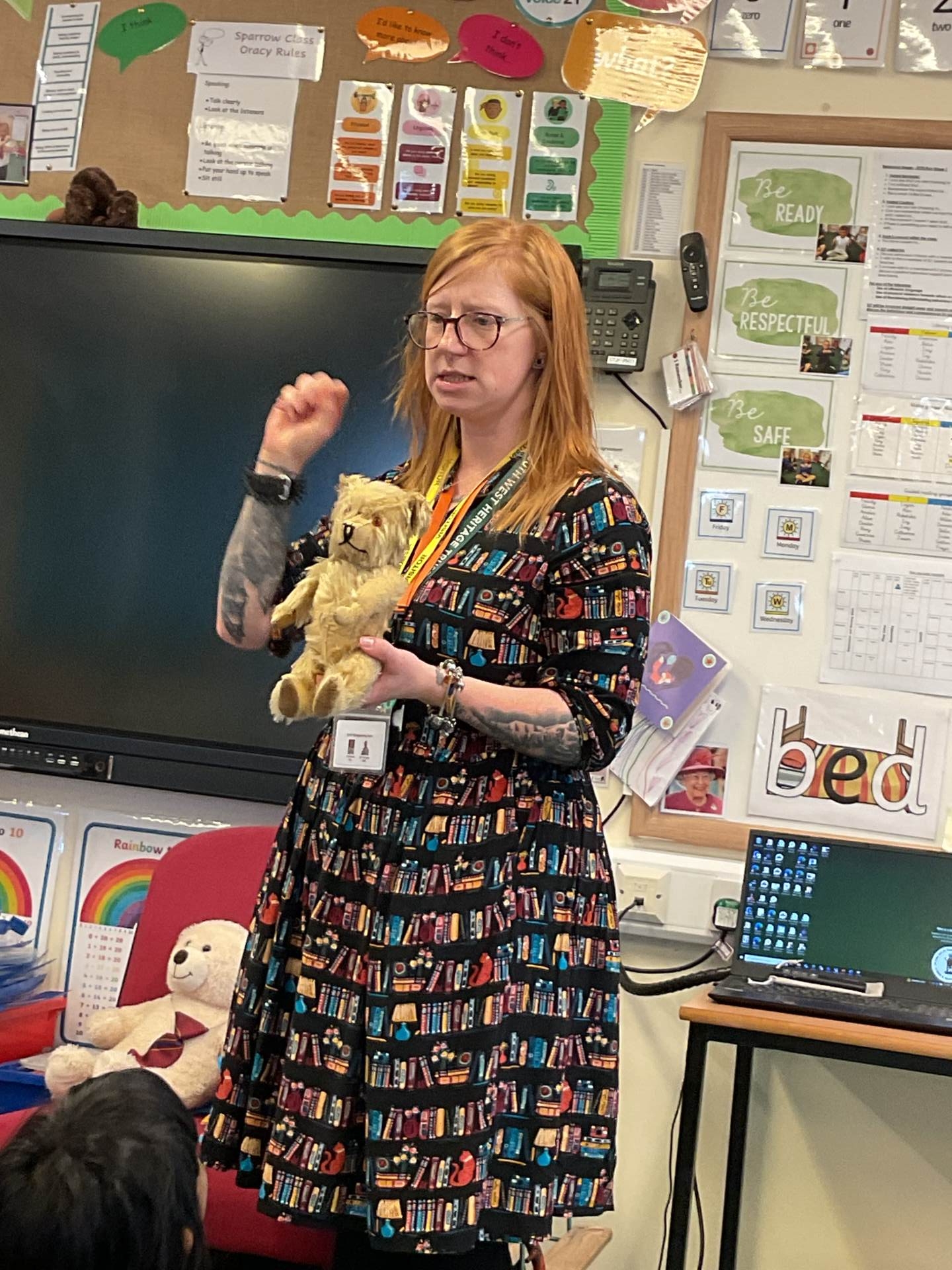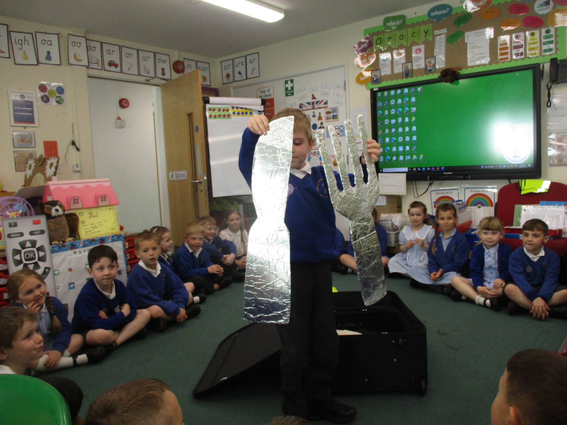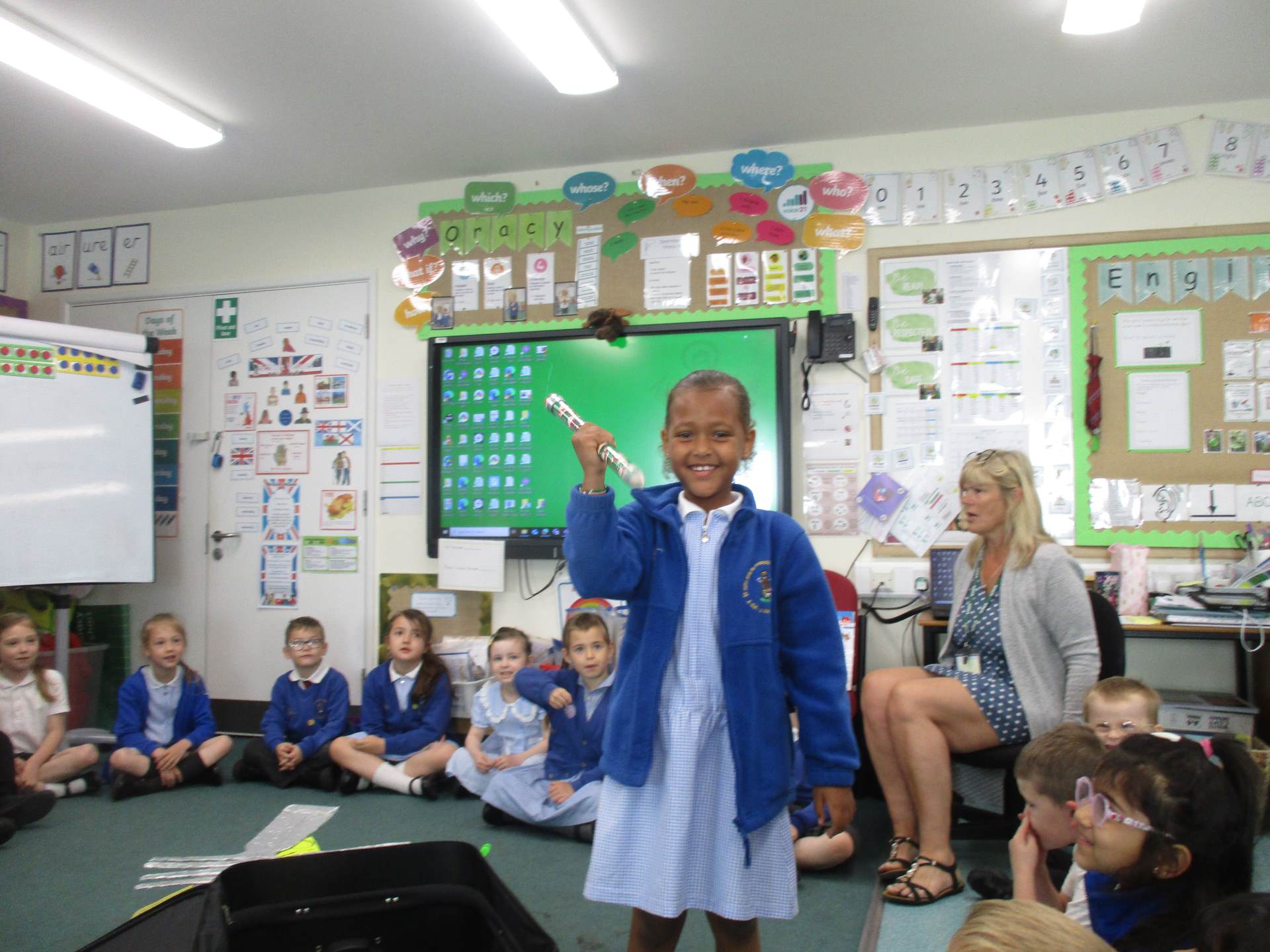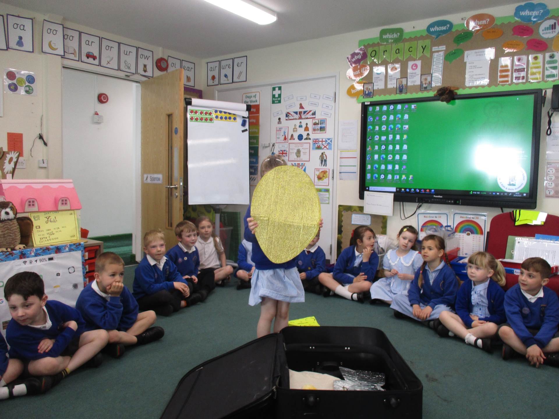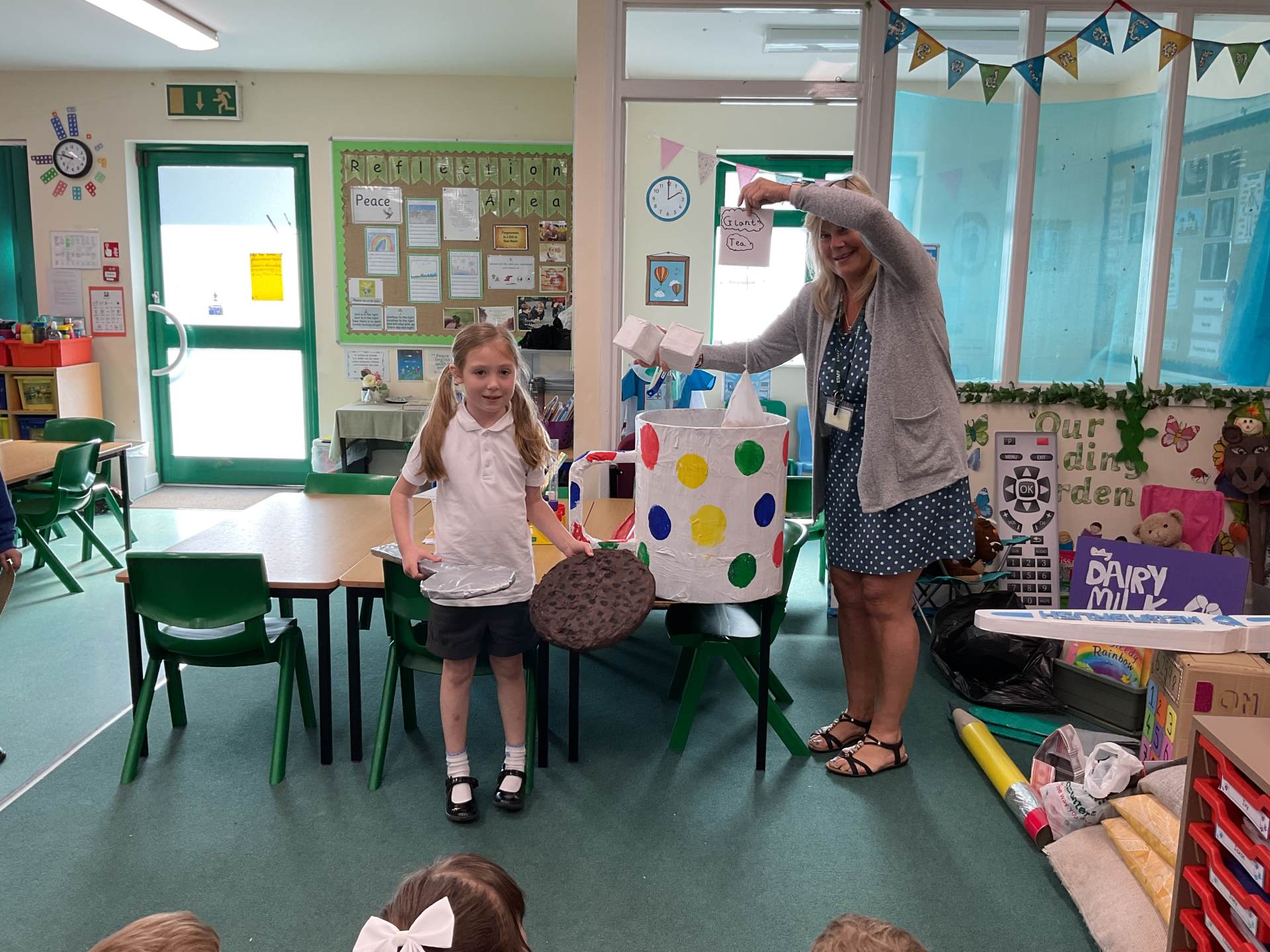 As part of our Oracy focus we have been looking at character descriptions across the school. In year 1 we focussed on George the giant in the story of The Smartest Giant in Town. We either described George before he got his lovely new smart clothes or after when he was really proud of how he looked. Today we worked across KS1 and EYFS and had the chance to read our descriptions to the other children and to see if they could guess which George we were describing. We also had the chance to listen to EYFS's descriptions of different dinosaurs and Year 2's descriptions of either a goat or a troll from the story- The Three Billy Goats Gruff. What a lovely time we had visiting differnt classes and working with different children.