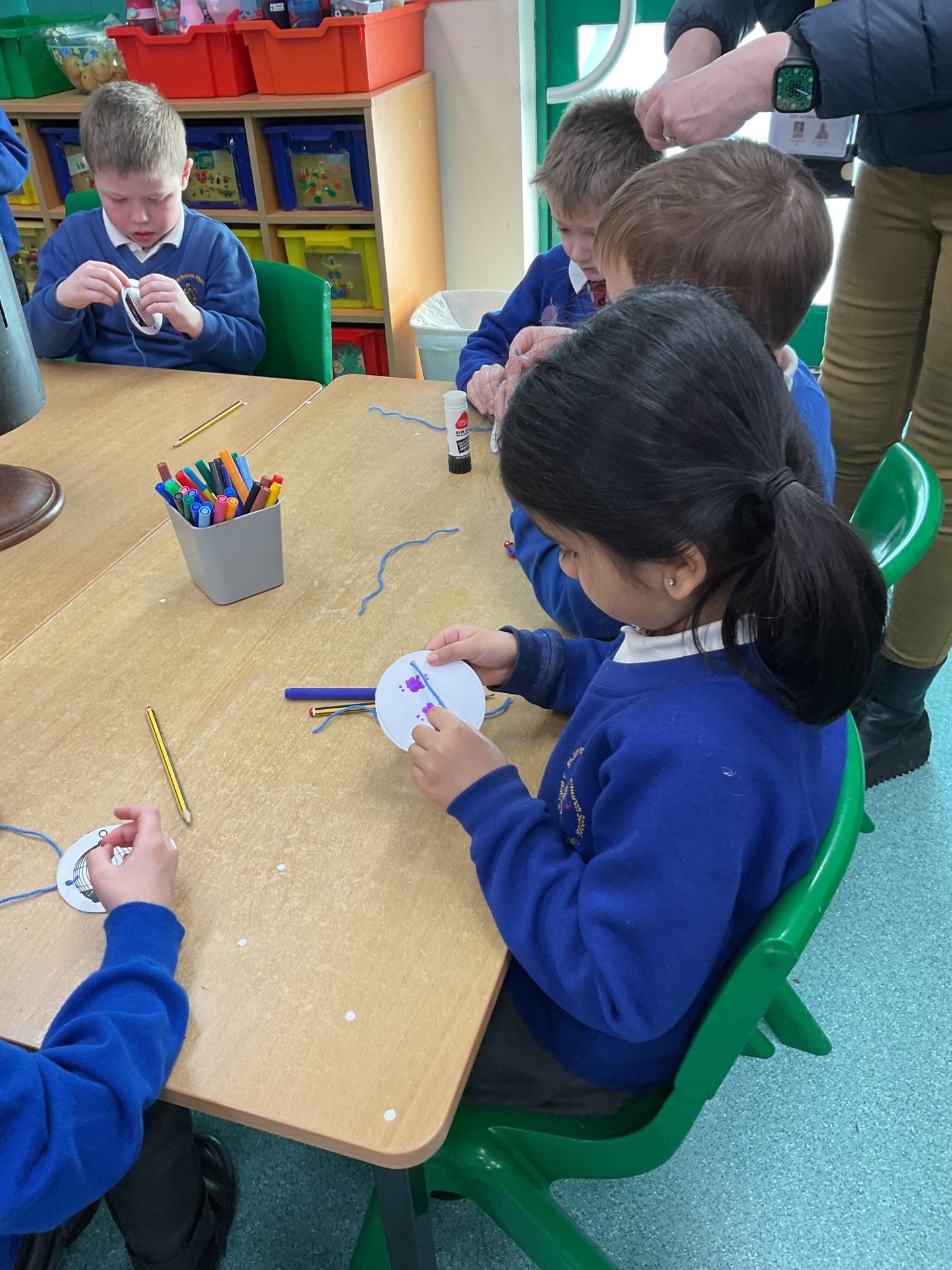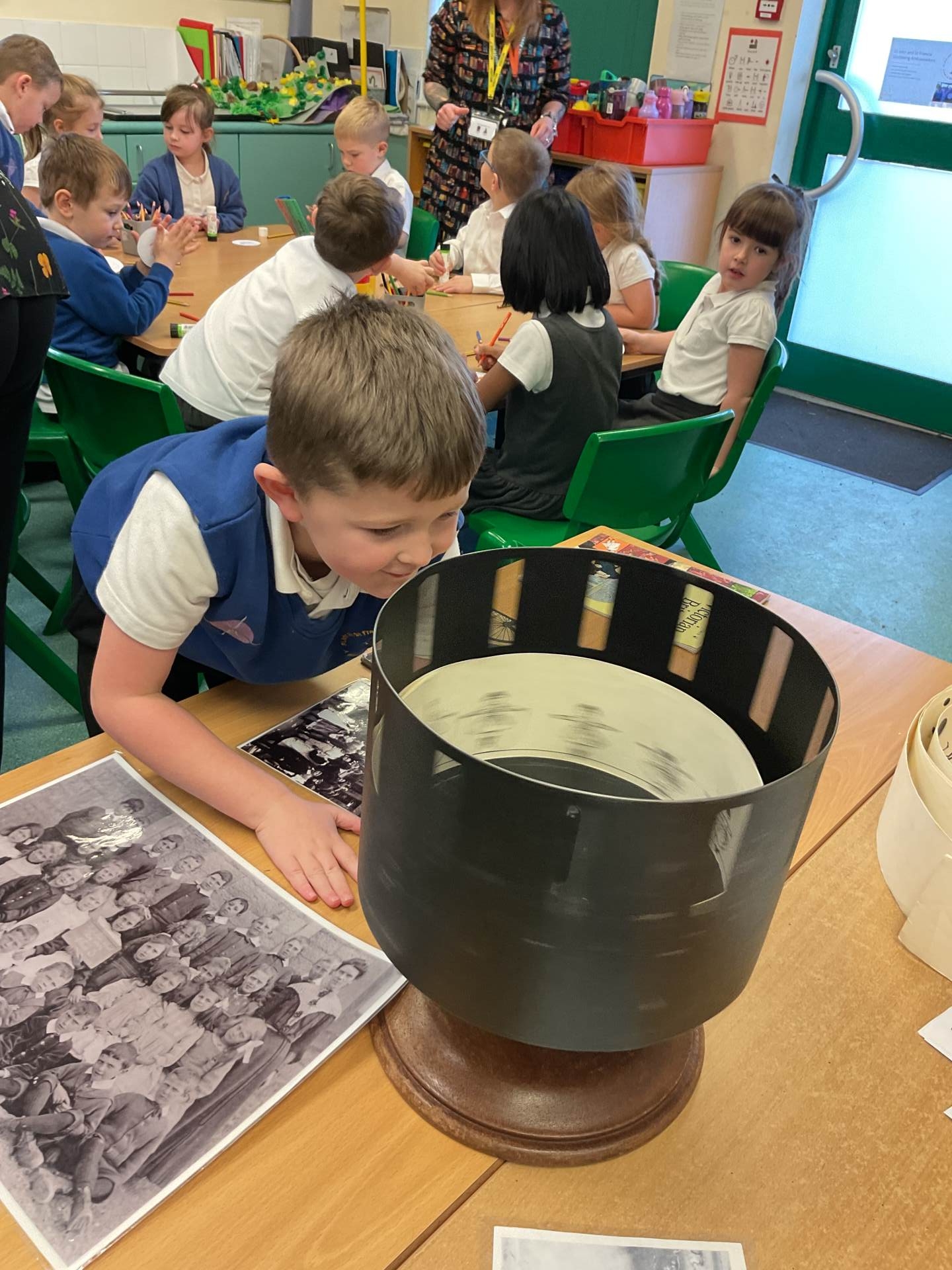 Natasha showed us a Zoetrope and an Thaumatrope. These were ways that Victorians started to make moving pictures. We then made our own Thaumatropes which was good fun.