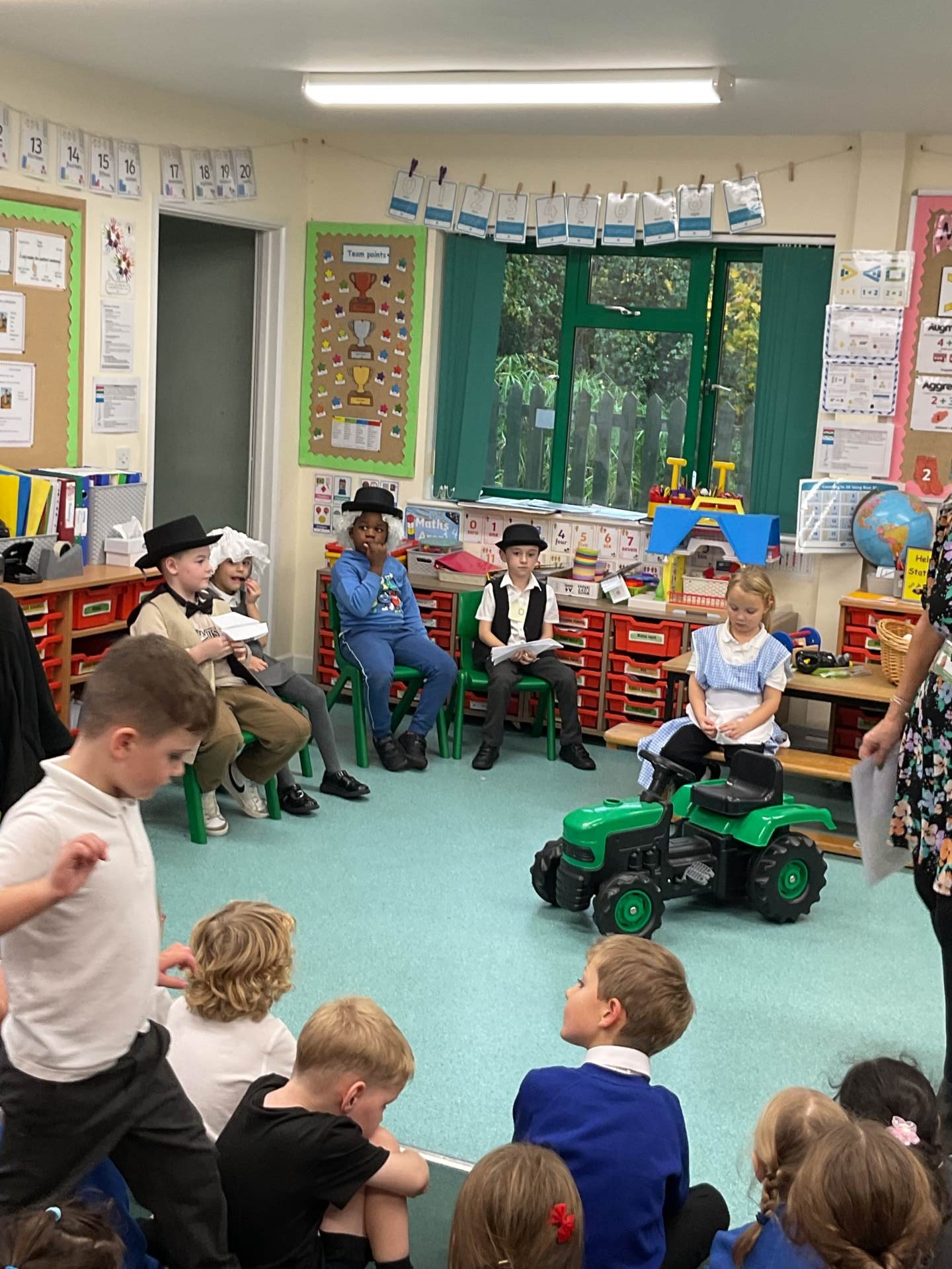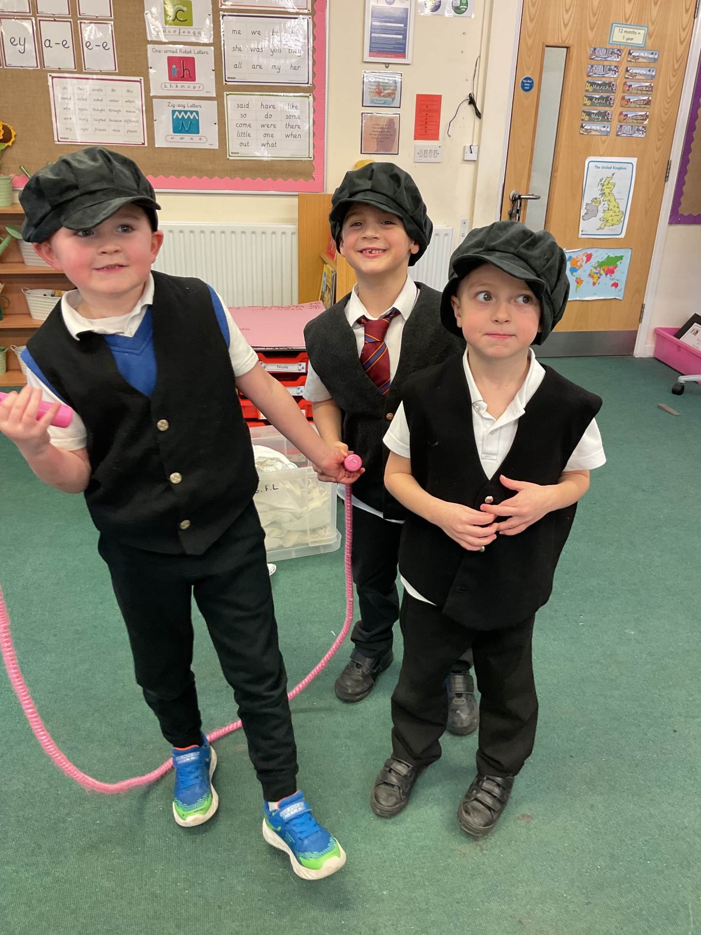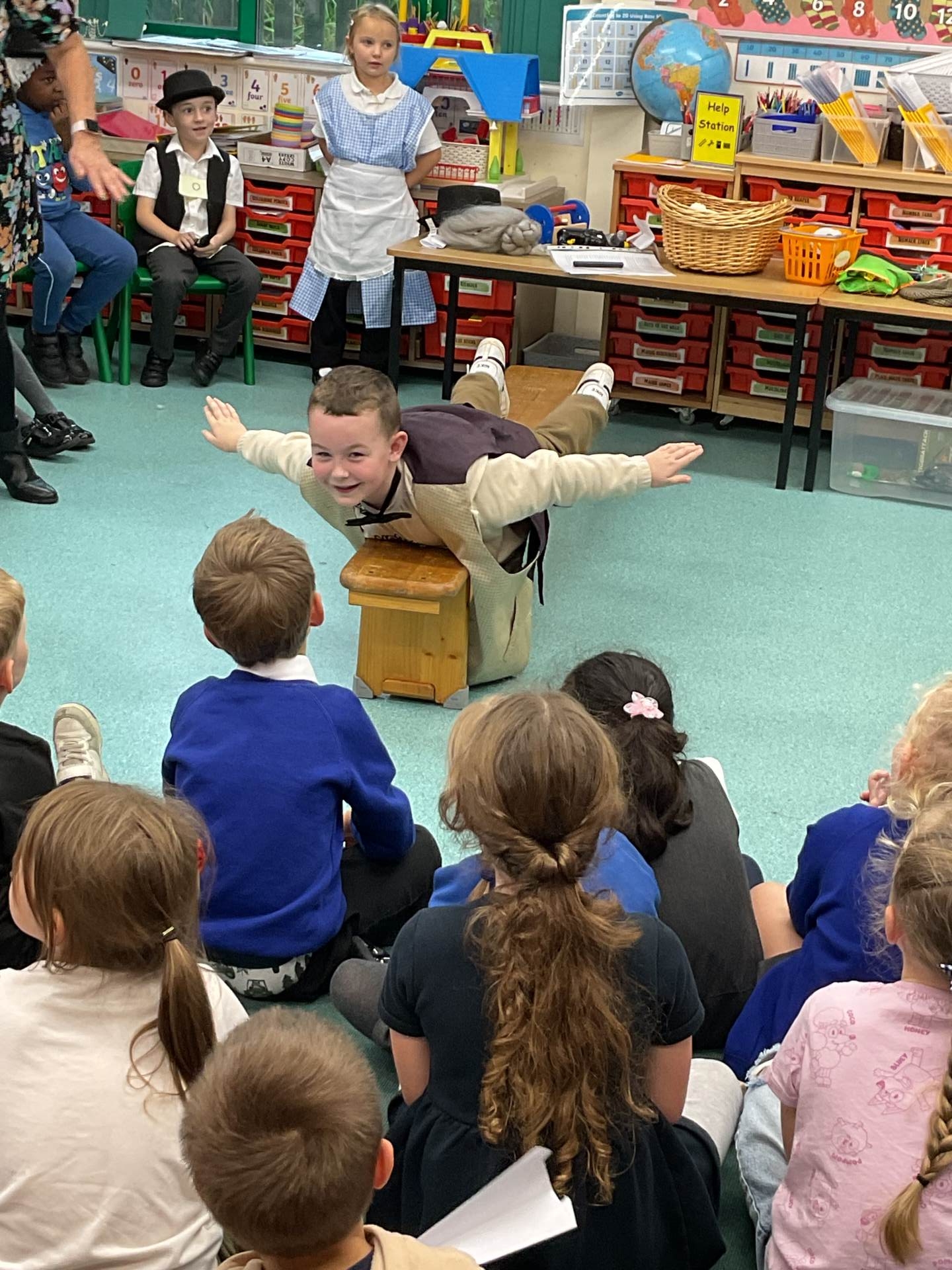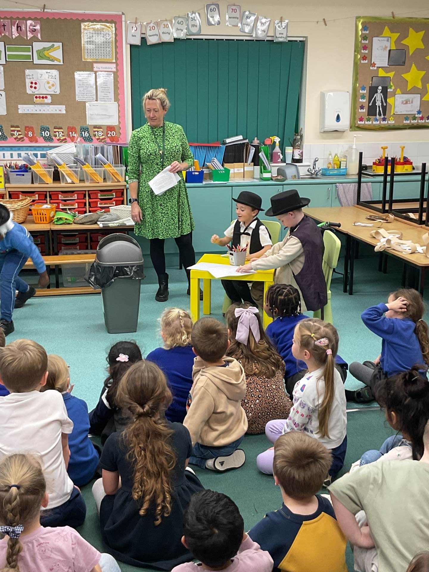 Today we began our new unit of work on First Flight by acting out the life story of the Wright brothers. We dressed up and took on the roles of the different characters. We learnt about how and where the Wright brothers grew up. The jobs that they had and how they persevered and never gave up on something that they believed they had the ability to achieve. That was to build and fly the first powered aircraft.