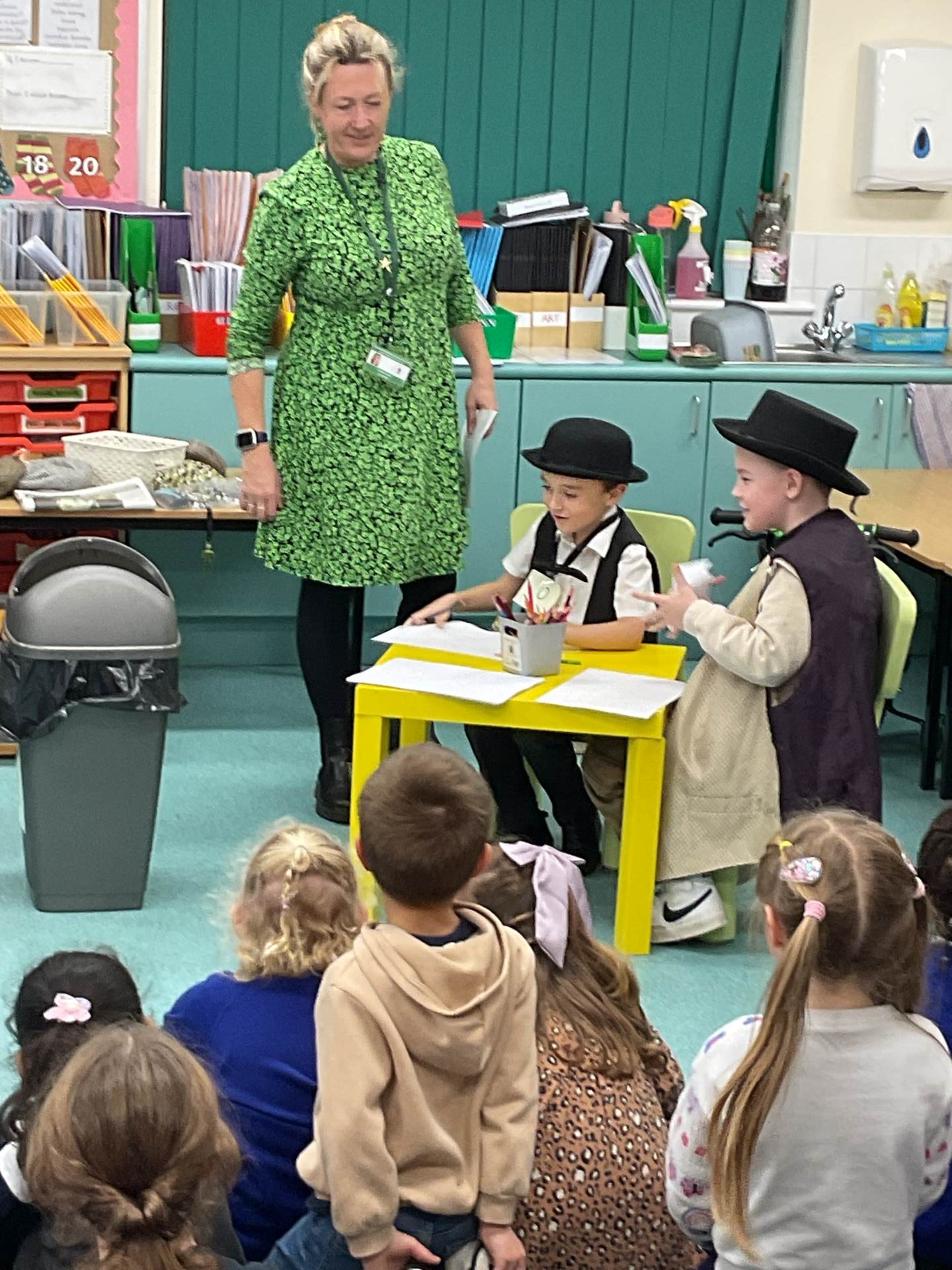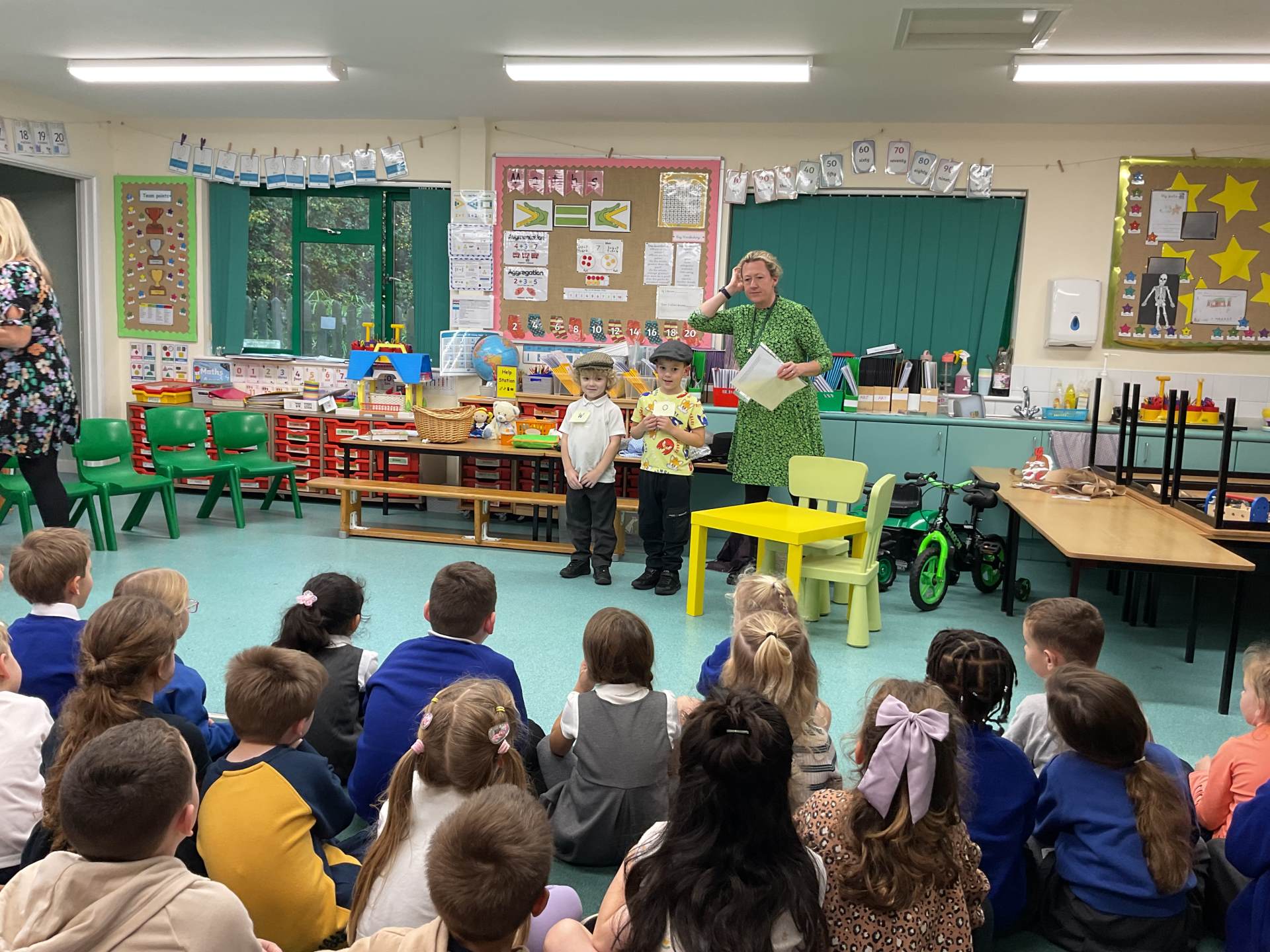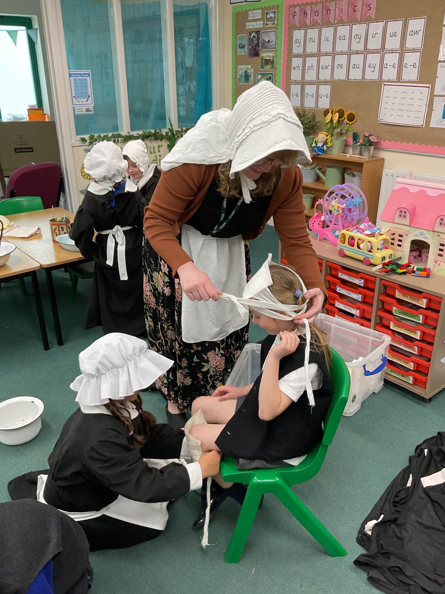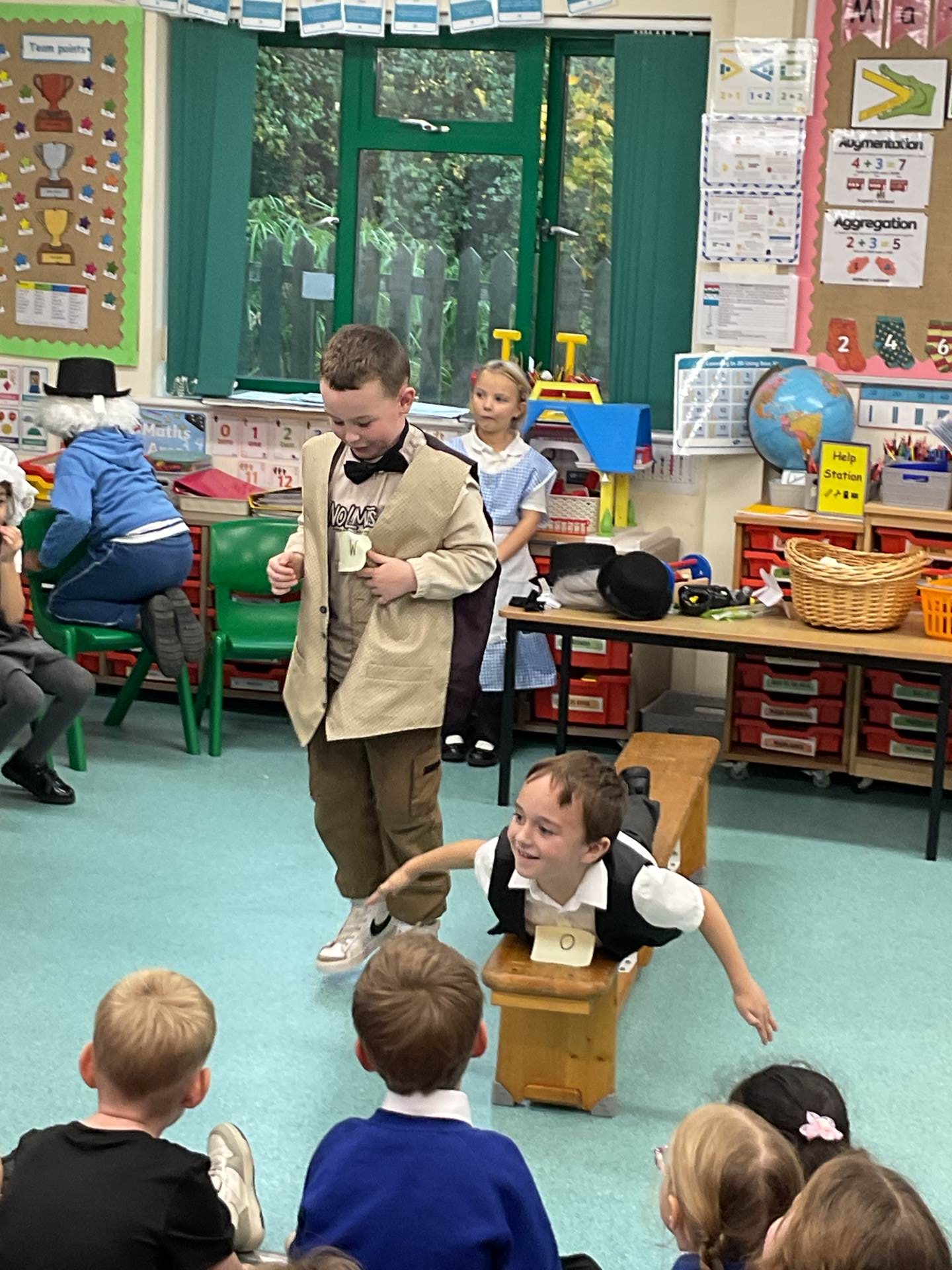 Today we began our new unit of work on First Flight by acting out the life story of the Wright brothers. We dressed up and took on the roles of the different characters. We learnt about how and where the Wright brothers grew up. The jobs that they had and how they persevered and never gave up on something that they believed they had the ability to achieve. That was to build and fly the first powered aircraft.