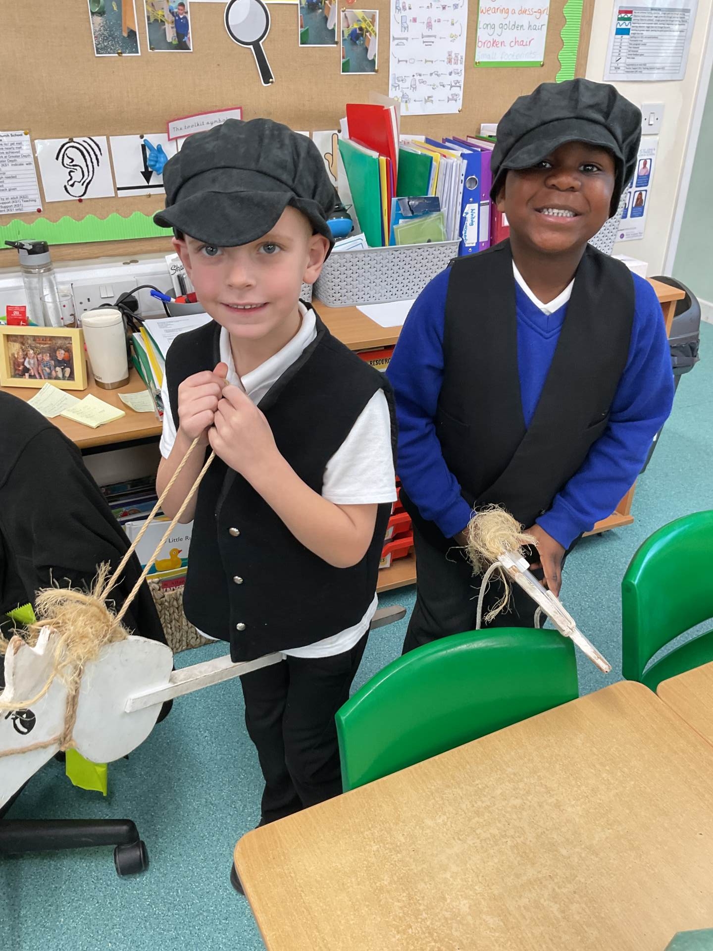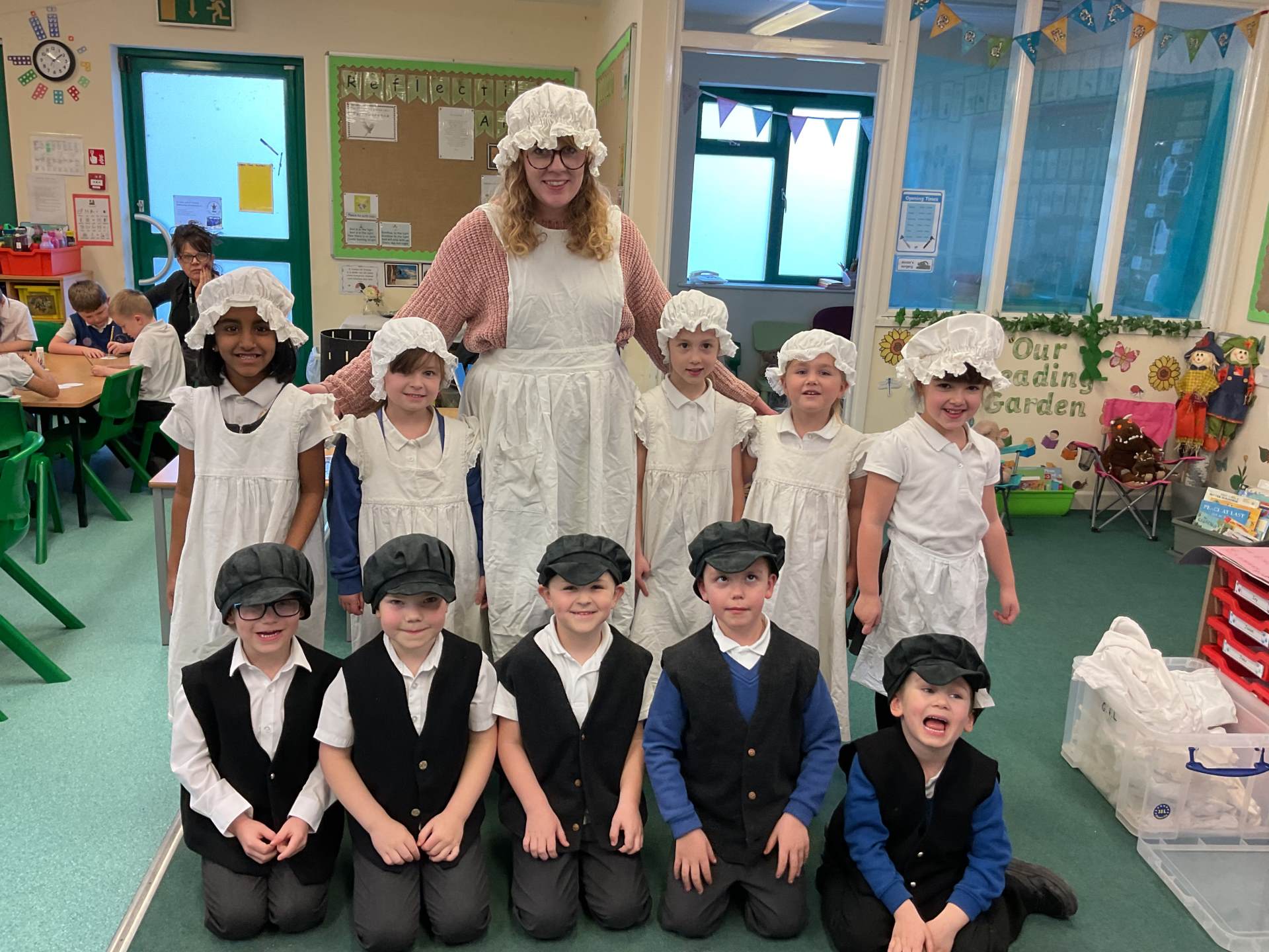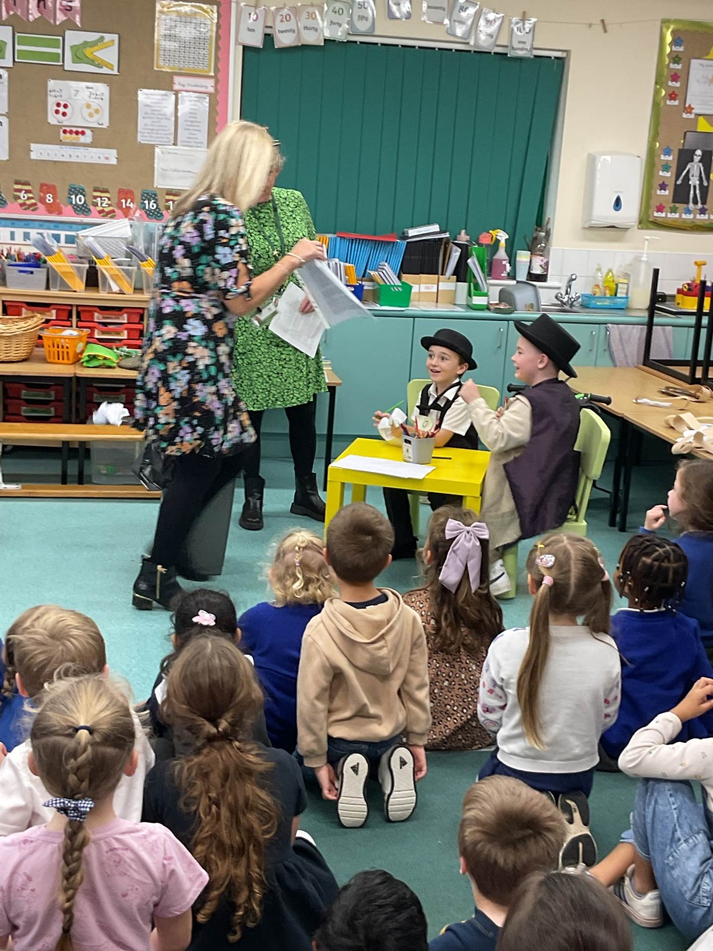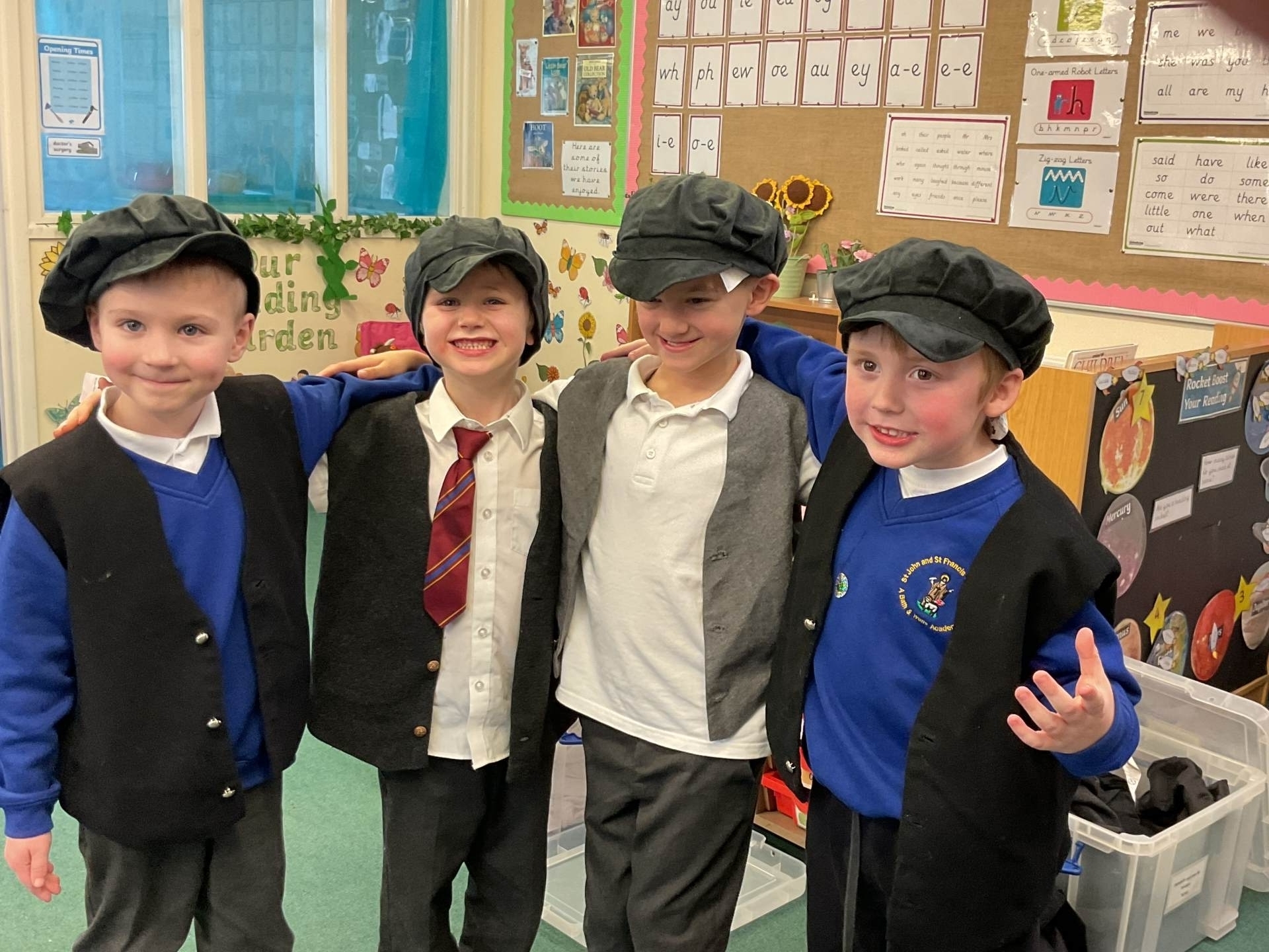 Today we began our new unit of work on First Flight by acting out the life story of the Wright brothers. We dressed up and took on the roles of the different characters. We learnt about how and where the Wright brothers grew up. The jobs that they had and how they persevered and never gave up on something that they believed they had the ability to achieve. That was to build and fly the first powered aircraft.