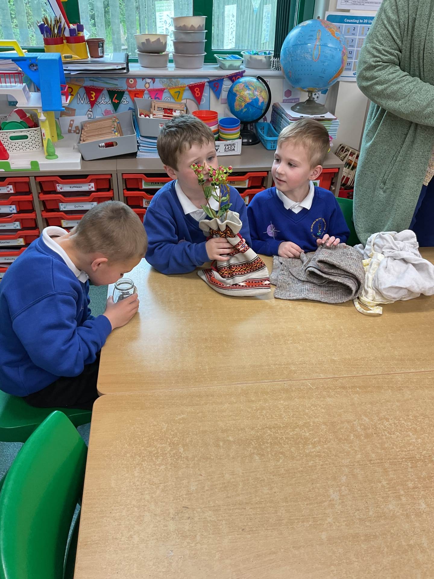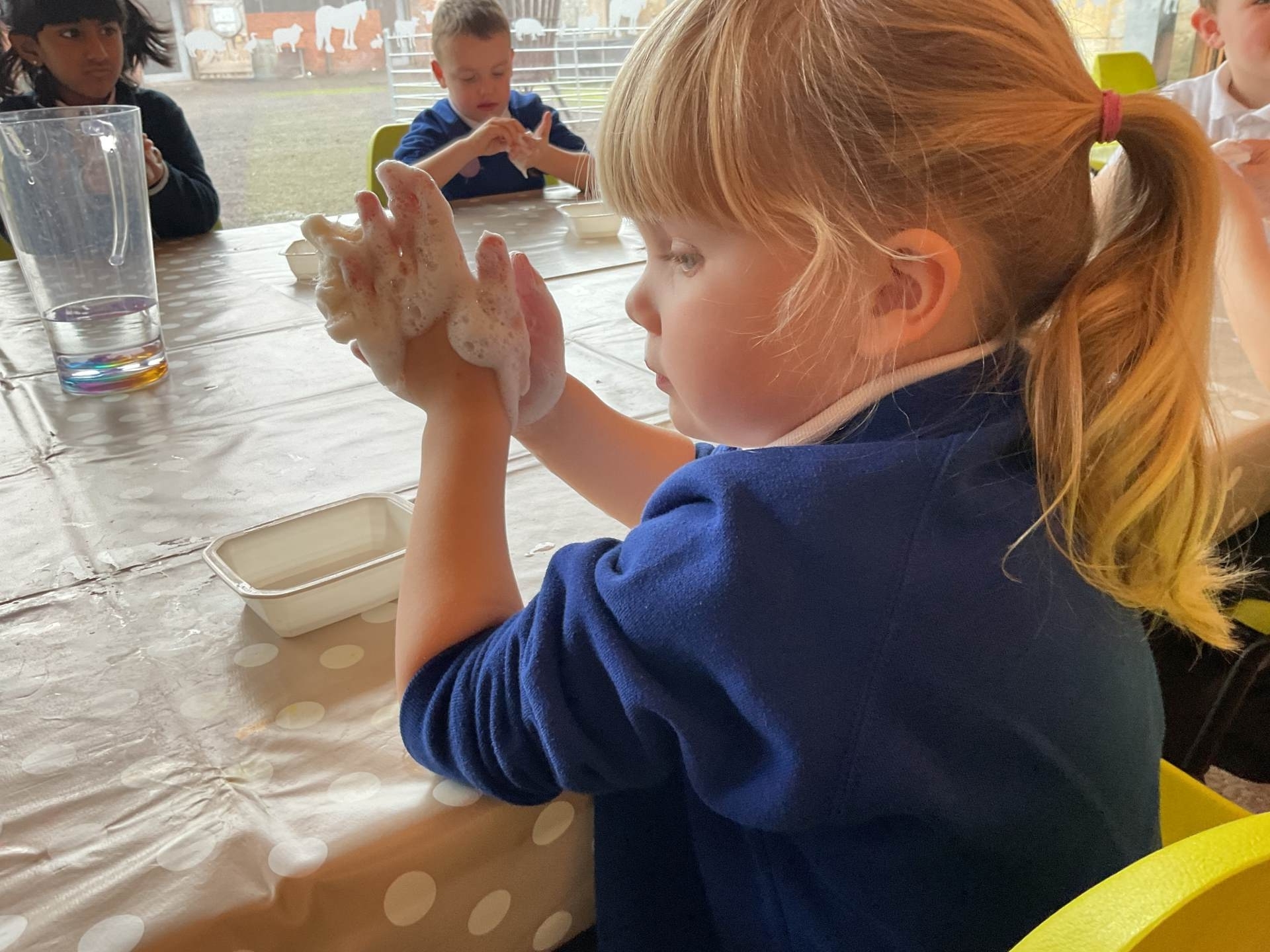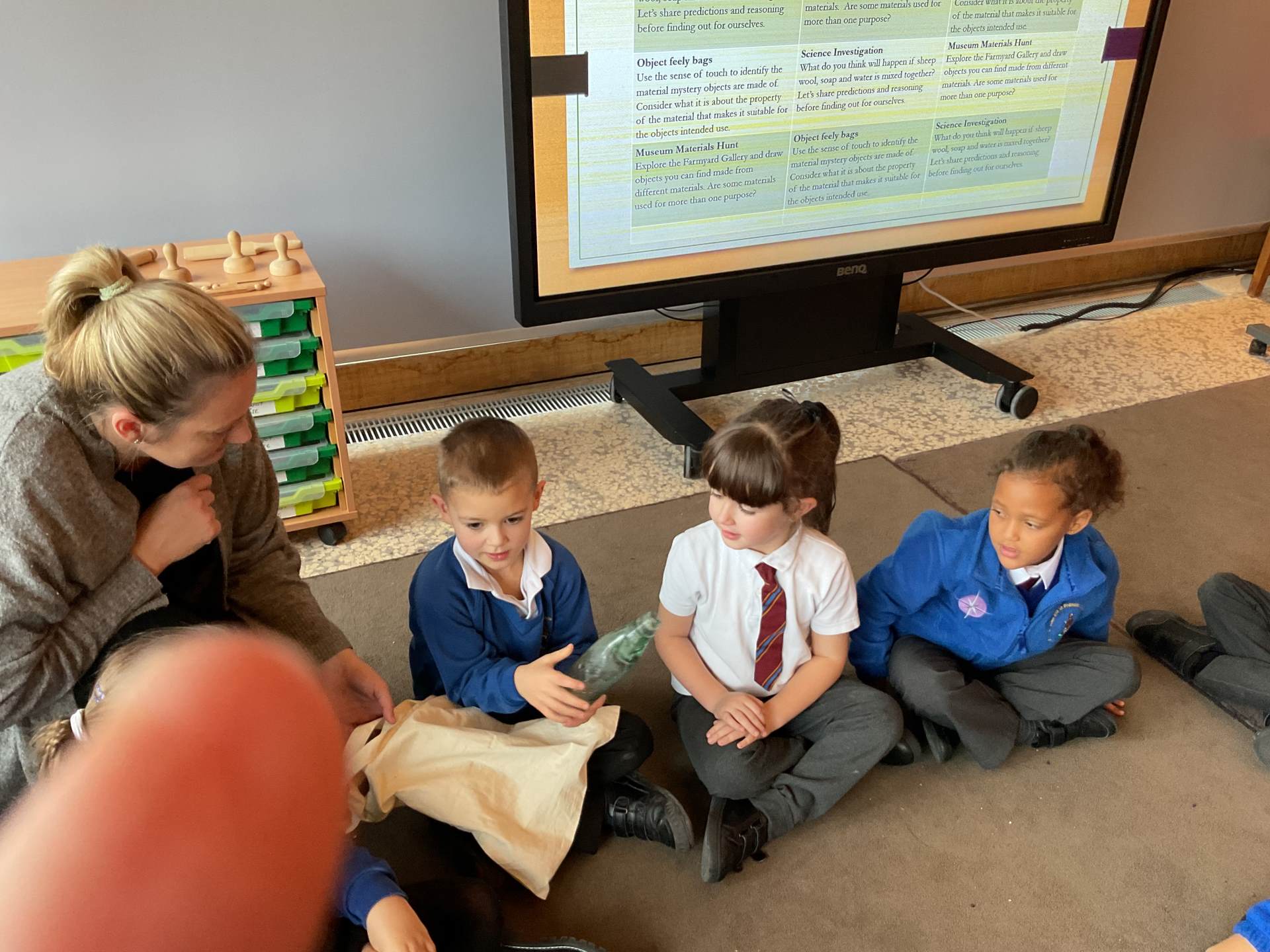 We learnt a lot during the workshop. We began by playing a sorting game with different materials, then took part in two activities. The first was an investigation using wool, soap and water. We found out that you can make felt out of wool by rubbing soap and water into it. It was great fun seeing which animals we could make from the felt.
