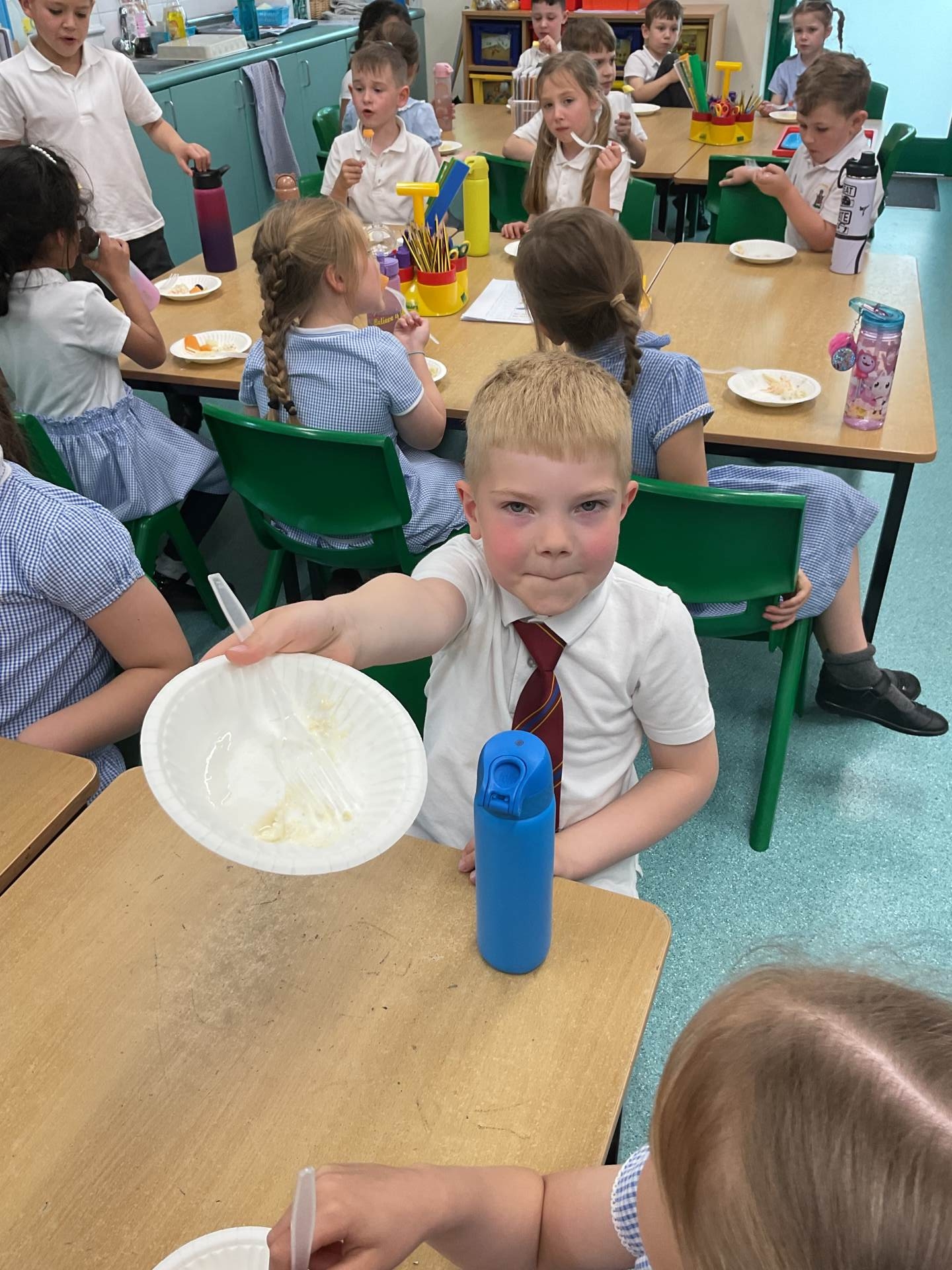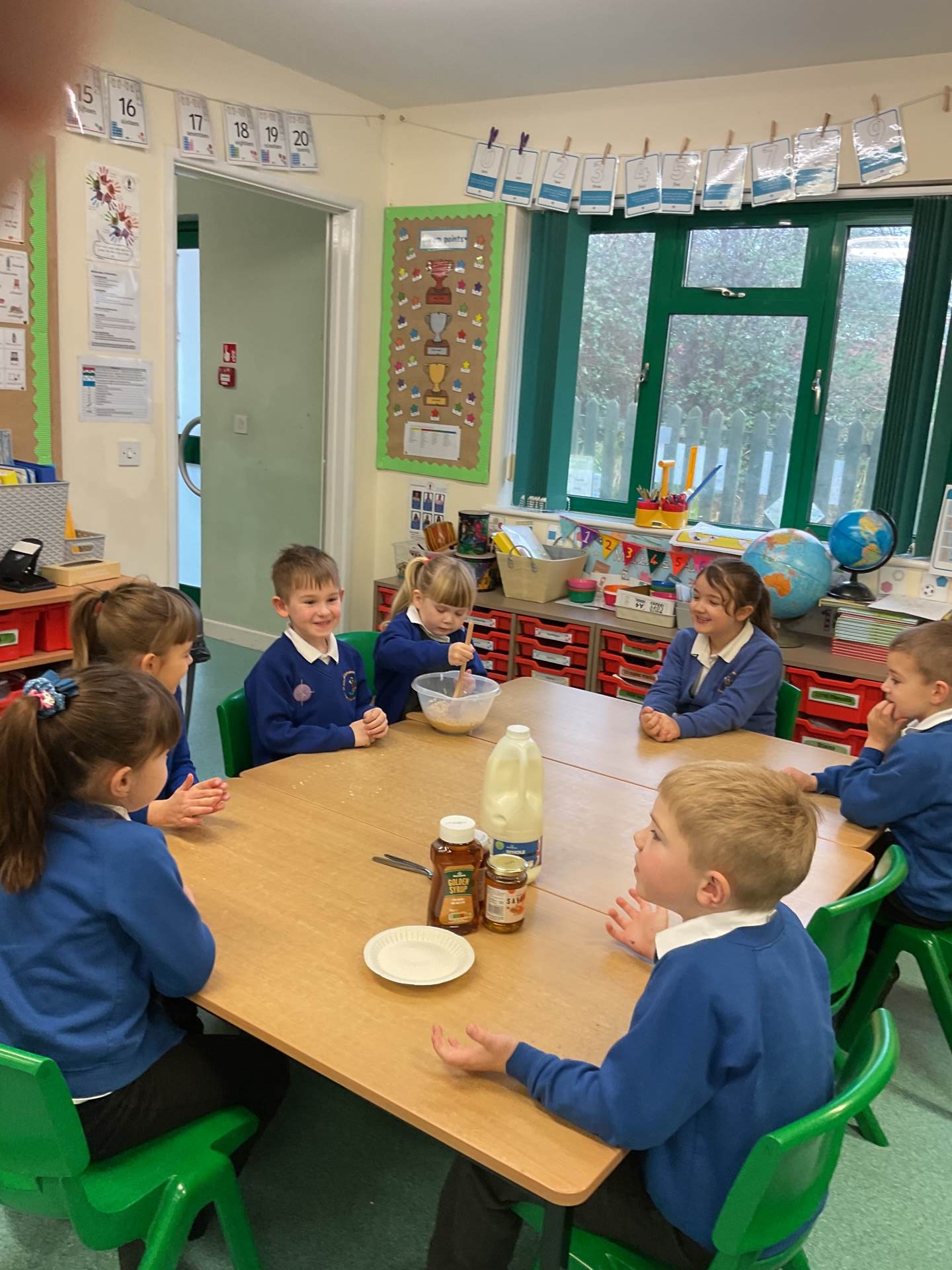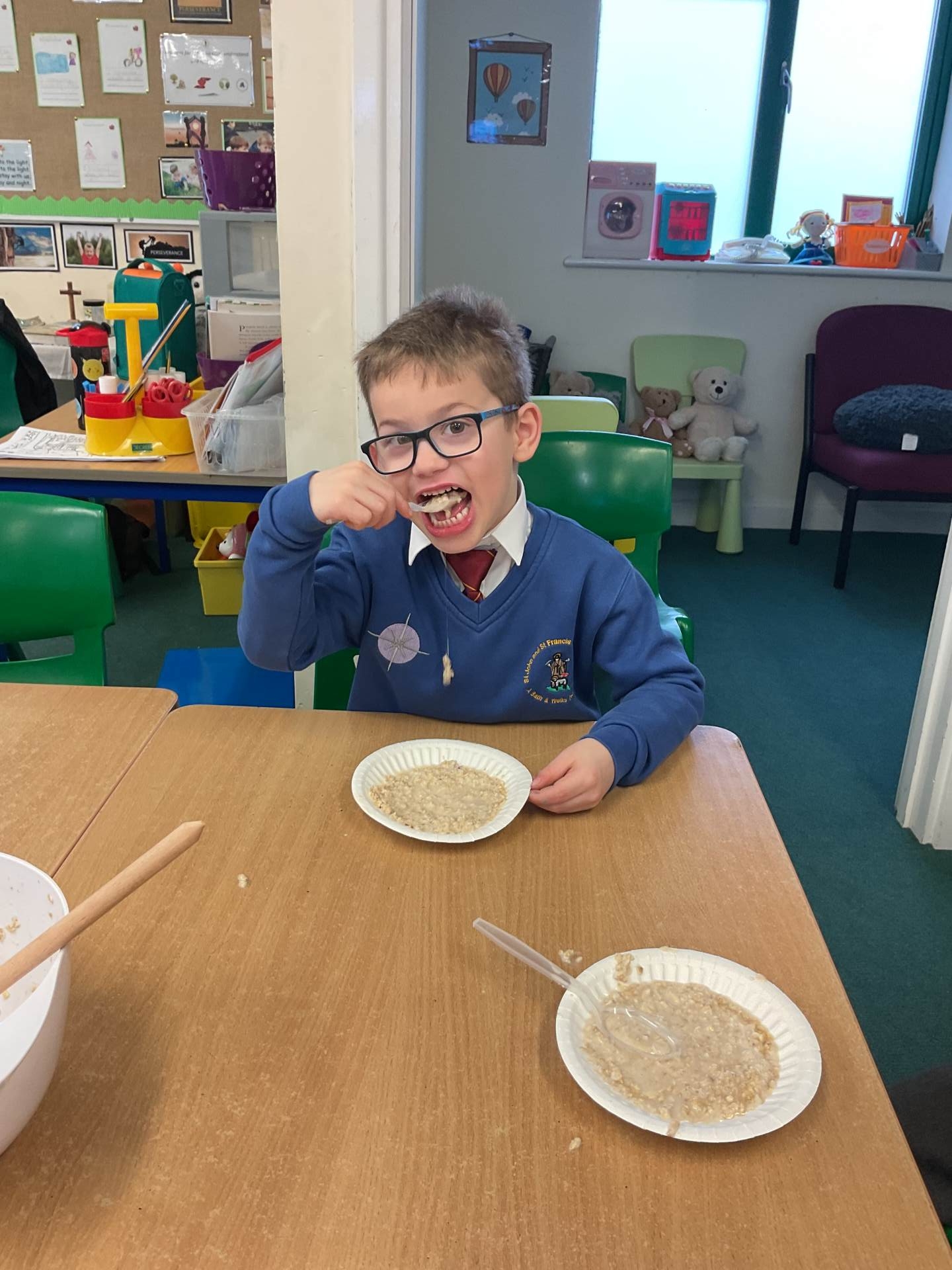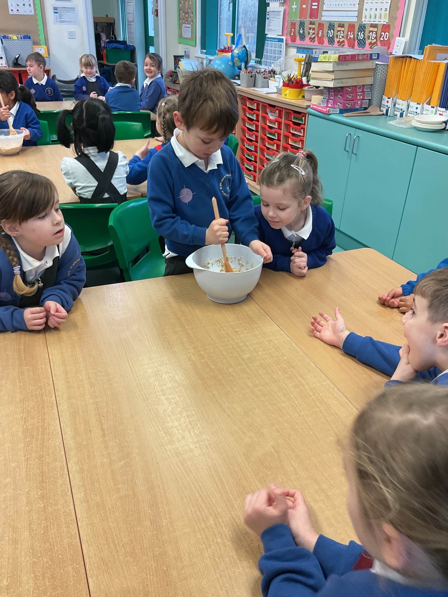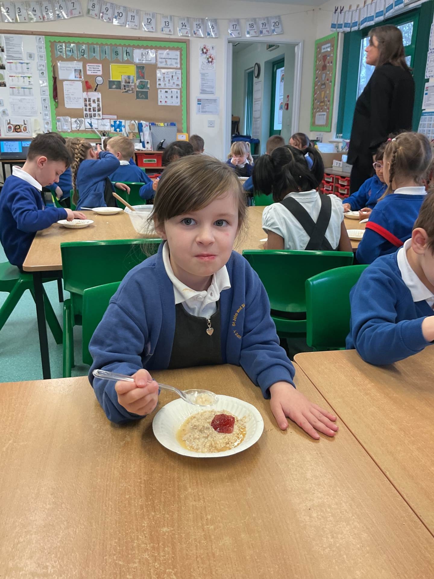 Today Sparrow Class made porridge! The children were able to follow and explain the instruction map step by step. They read it through with a partner before retelling to the adults. We discussed the layout of the instructions and key words, (or time connectives), that were needed to start each sentence.
