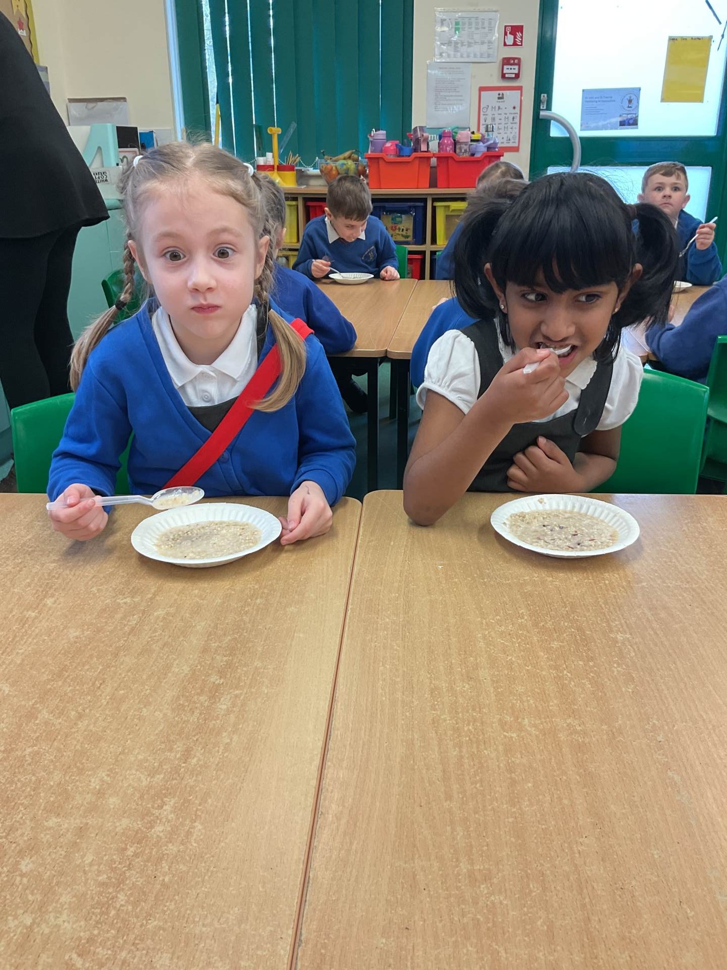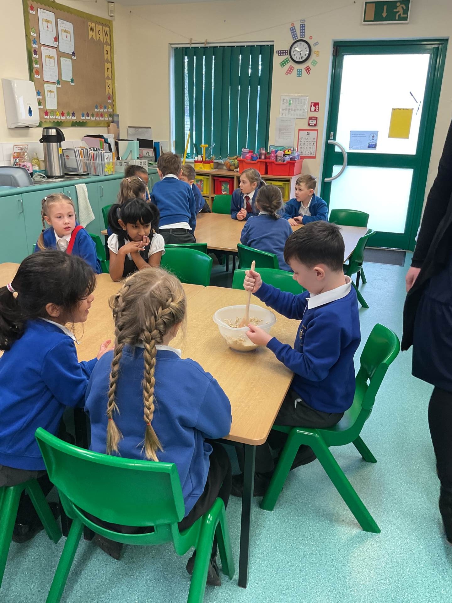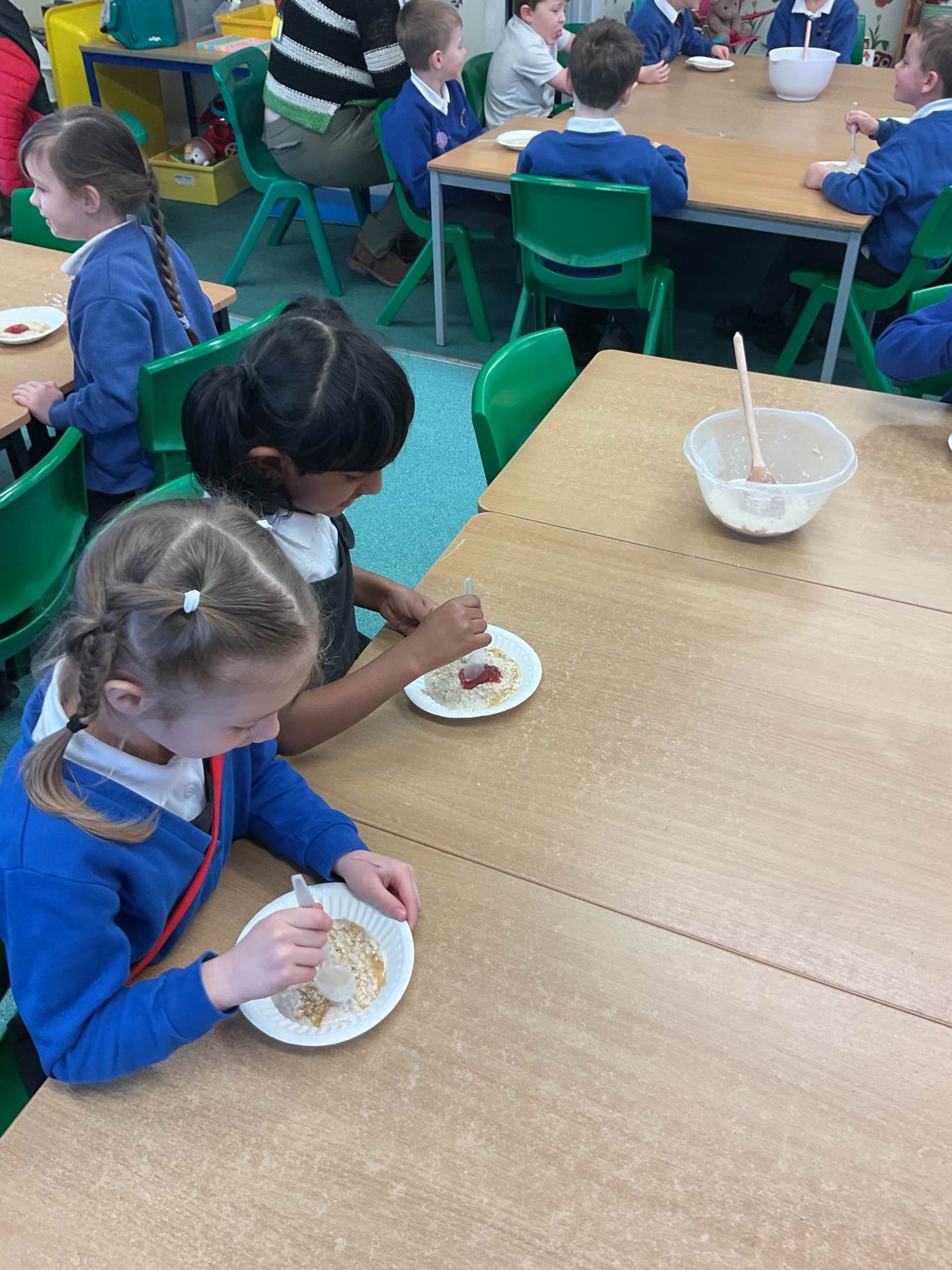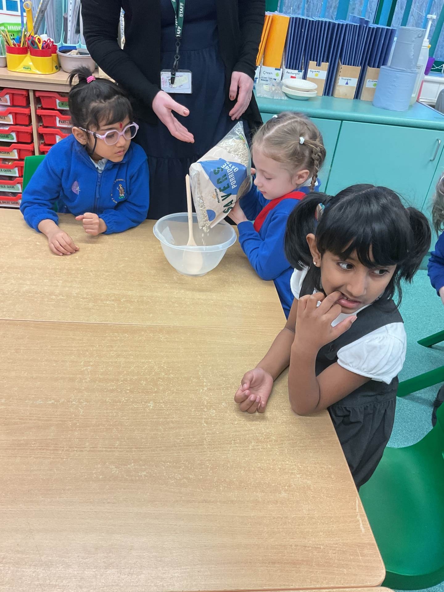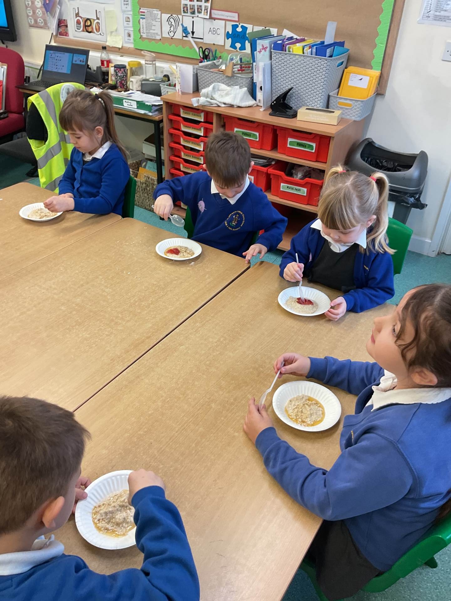 The children worked in groups to create their porridge. They even got to taste it at the end!