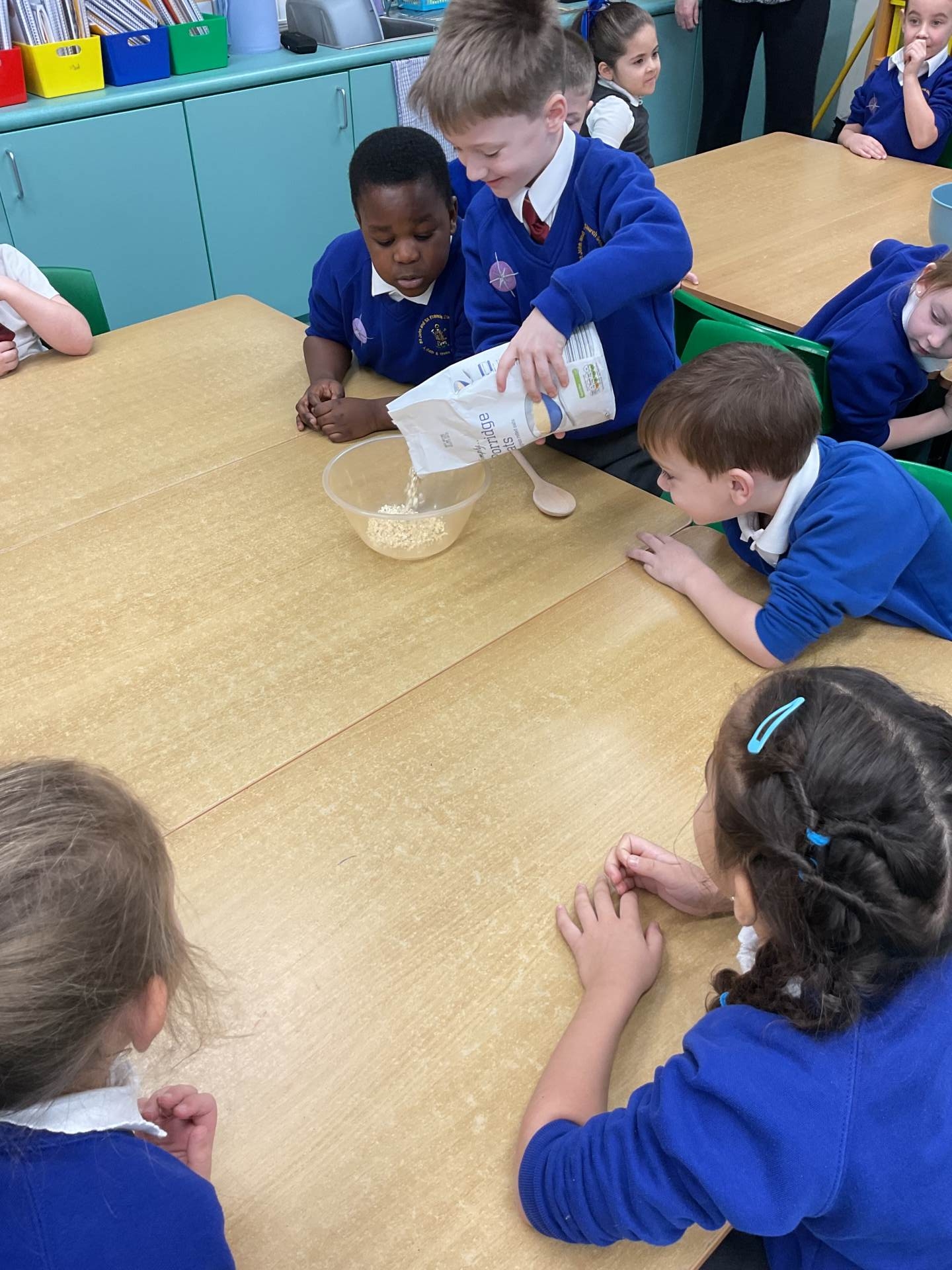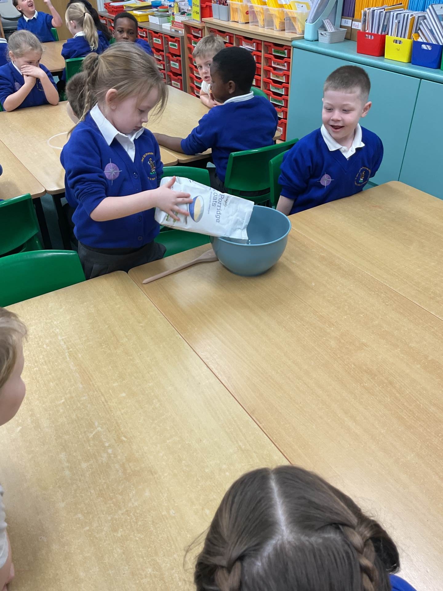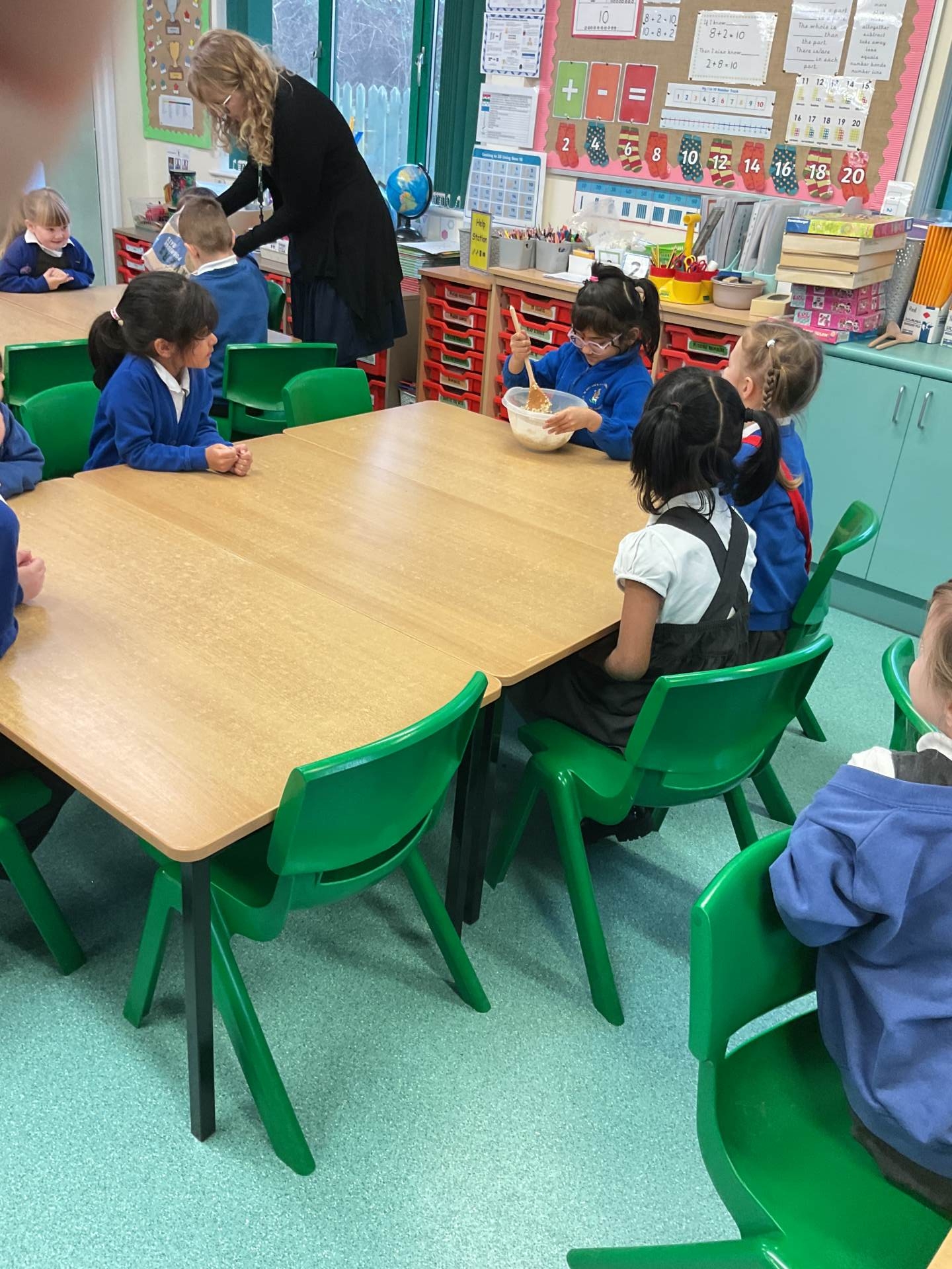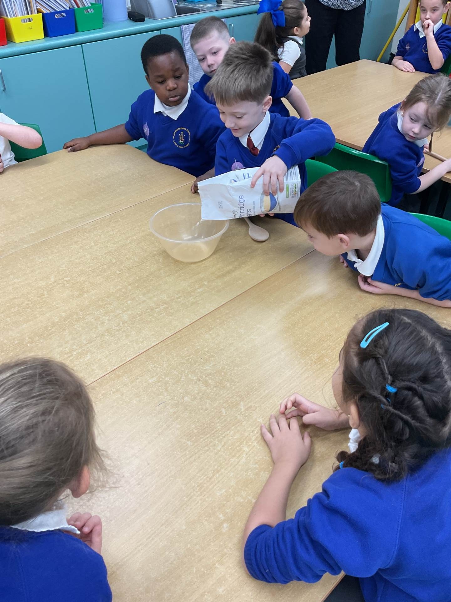 The children worked in groups to create their porridge. They even got to taste it at the end!
