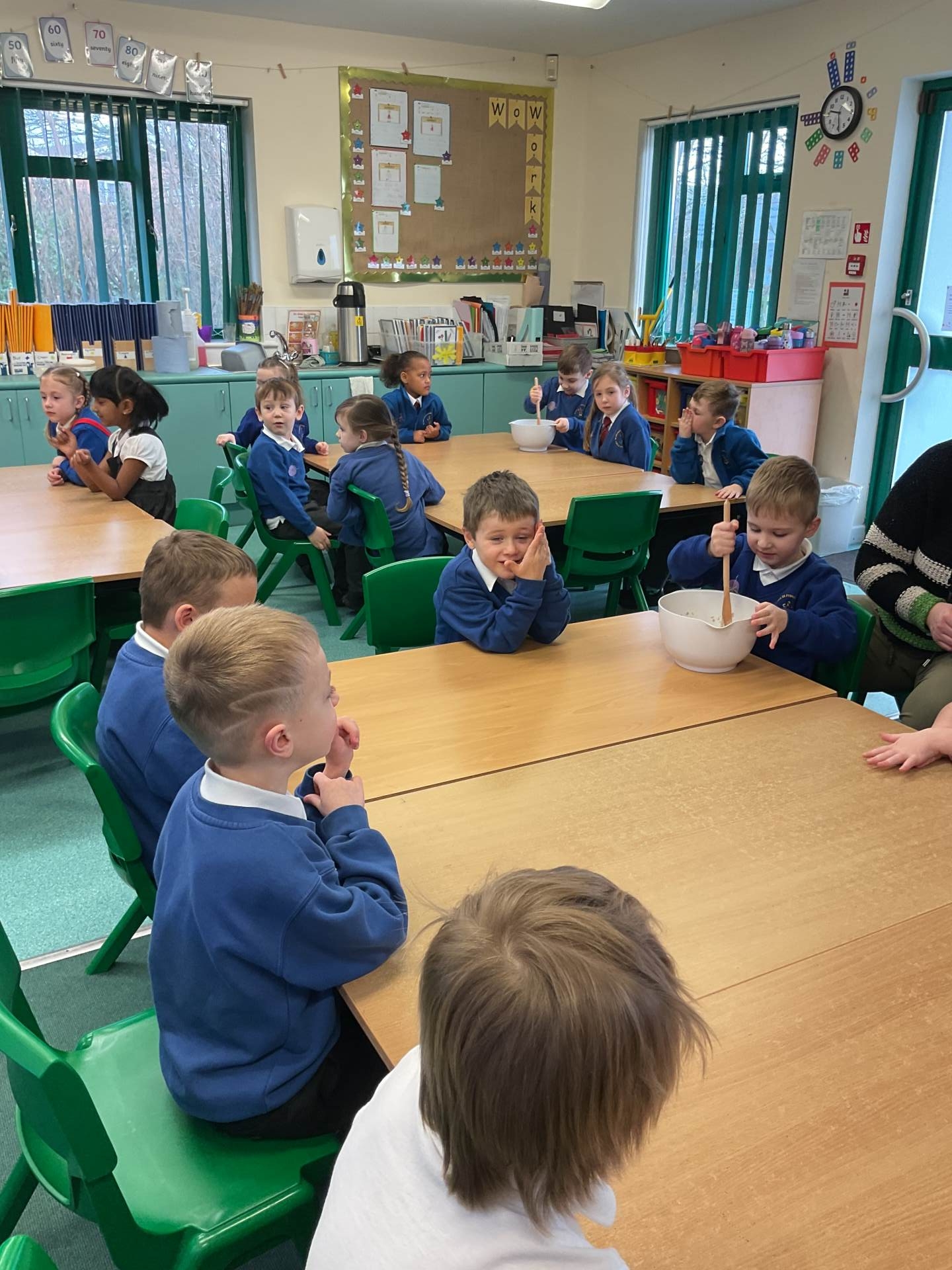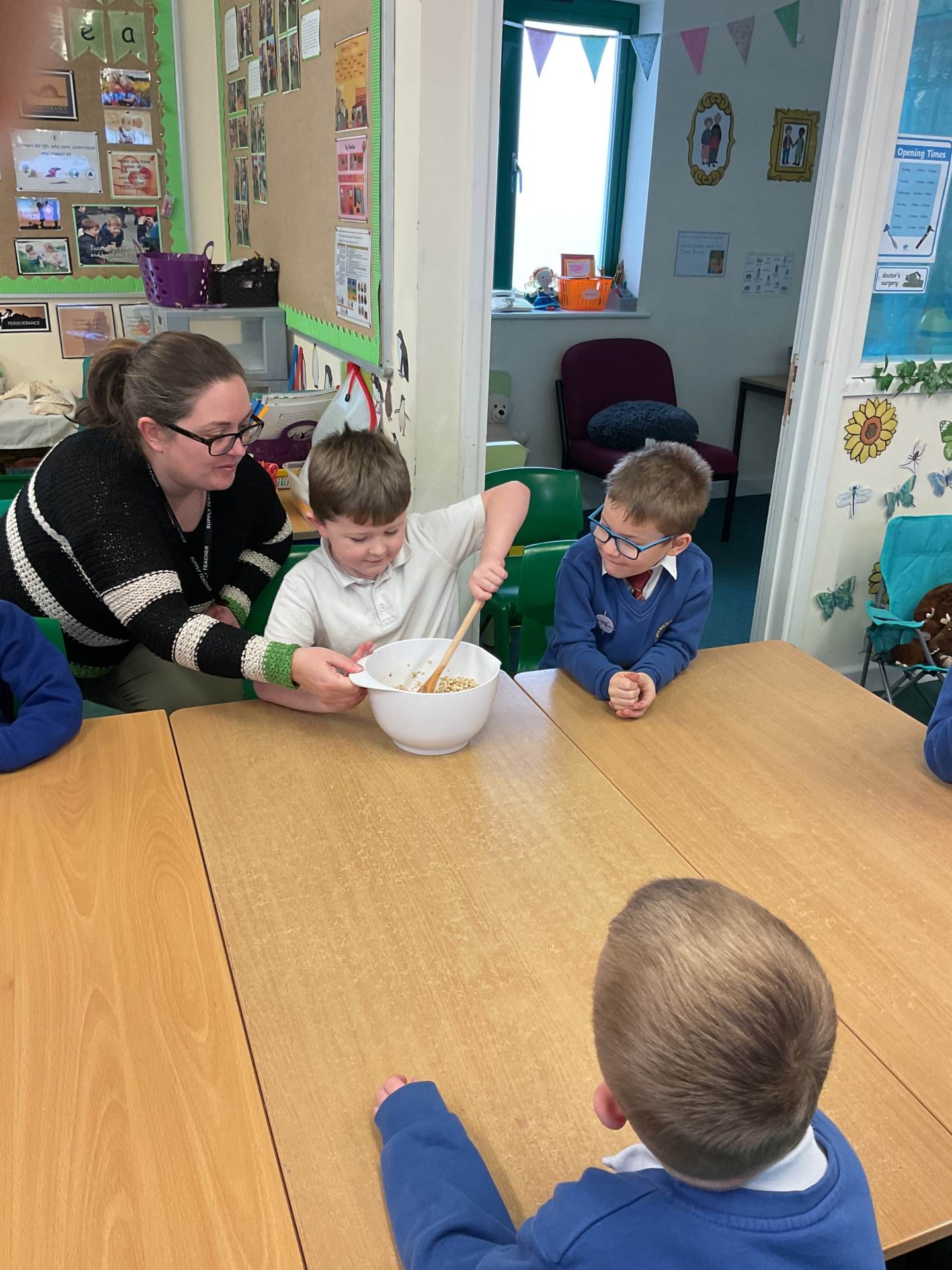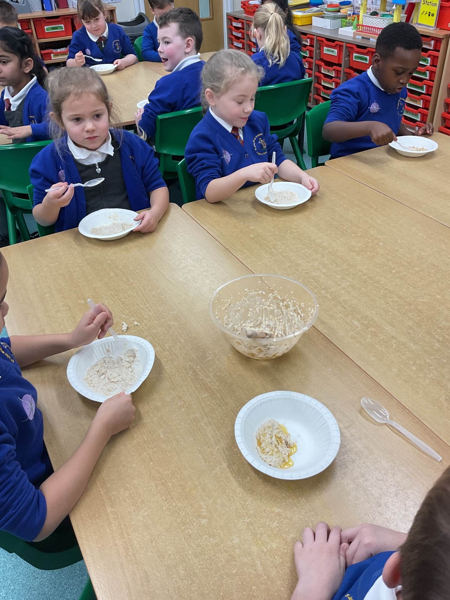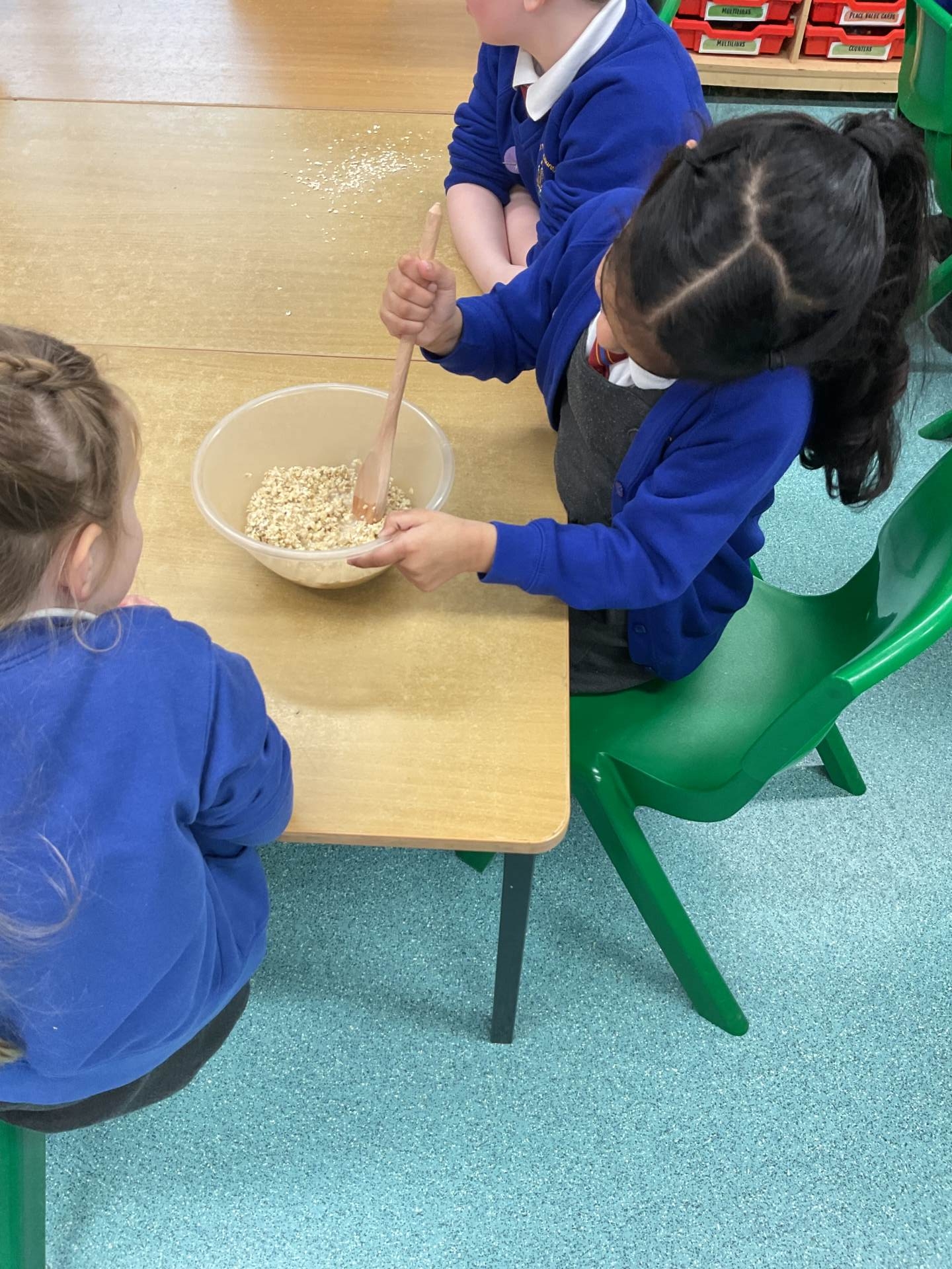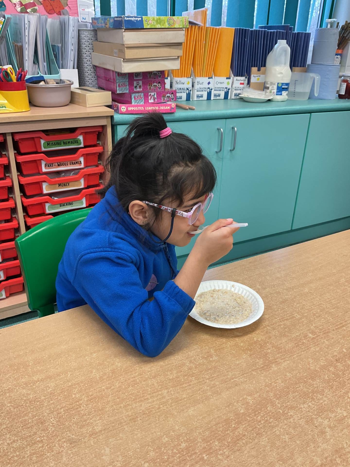 The children worked in groups to create their porridge. They even got to taste it at the end!