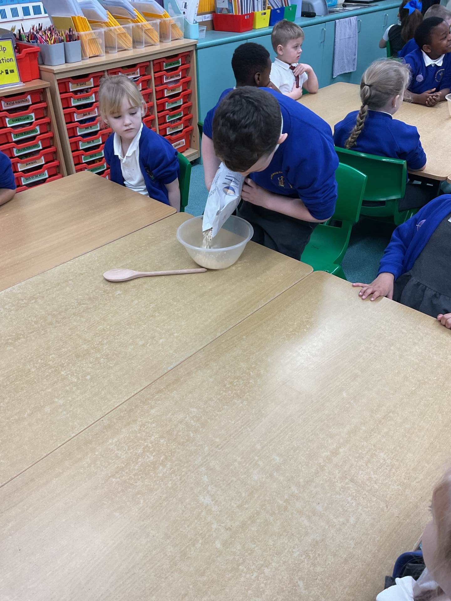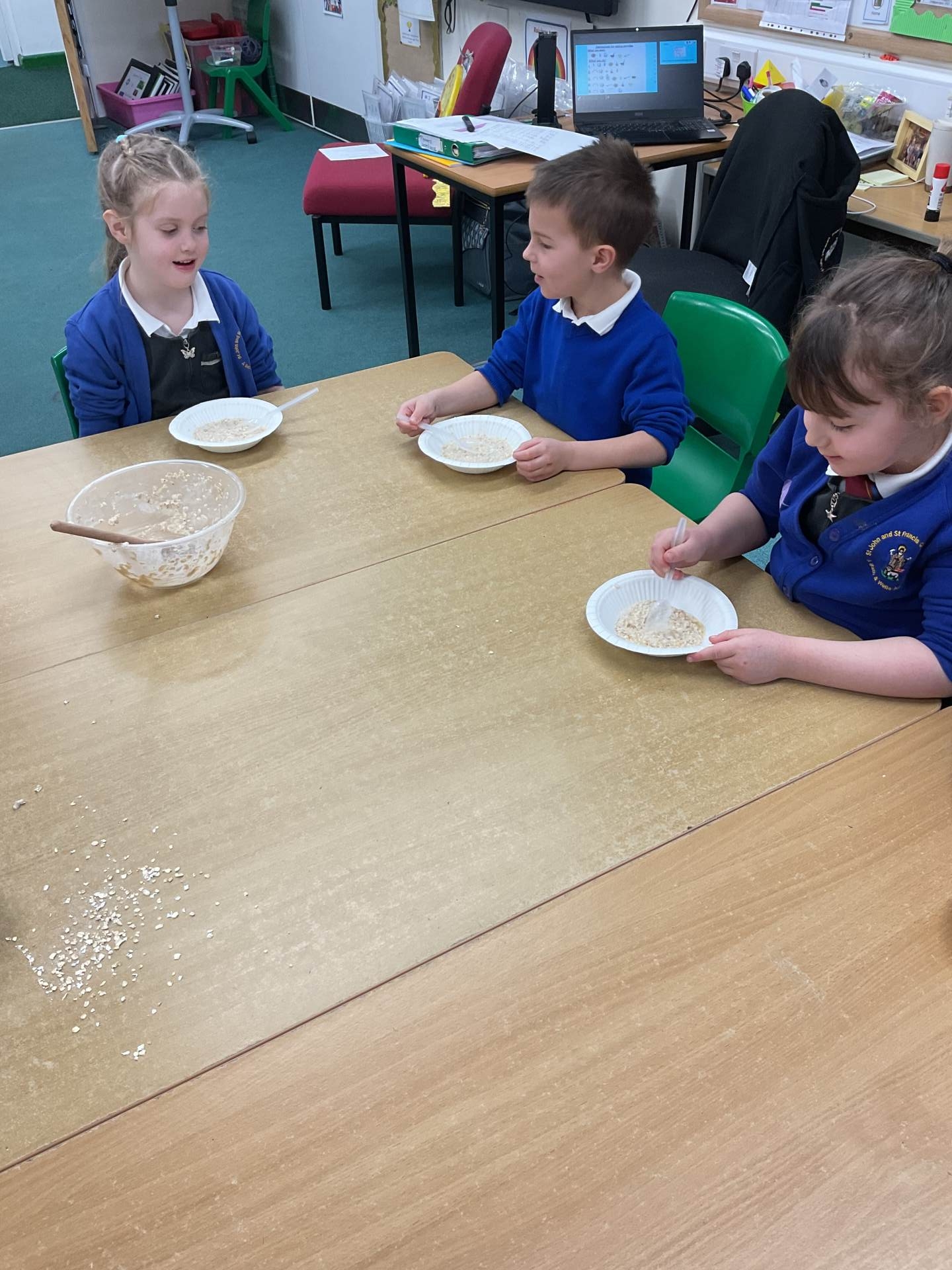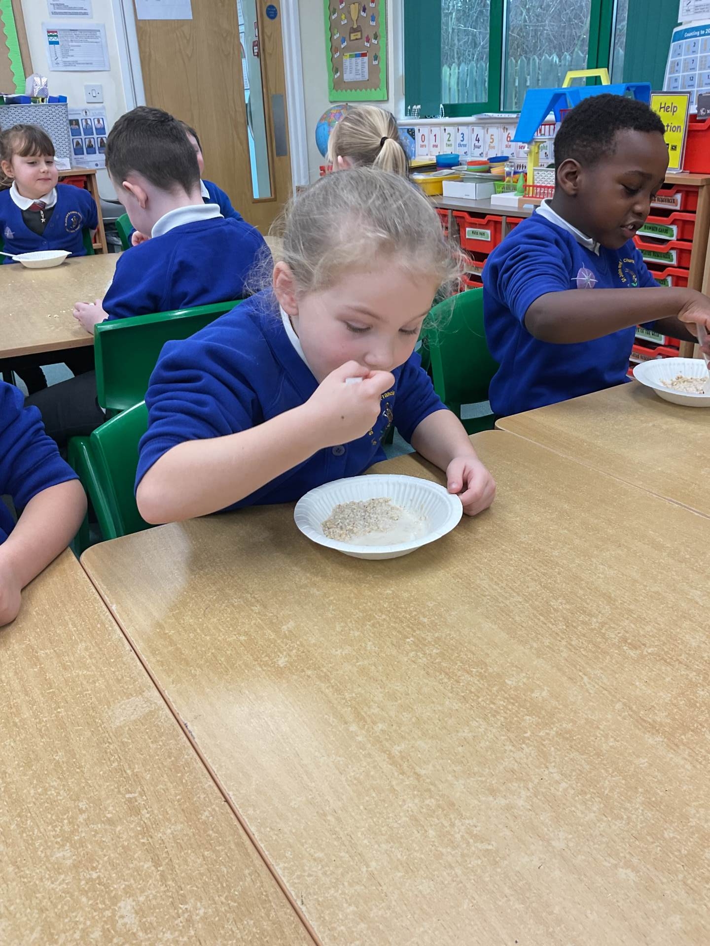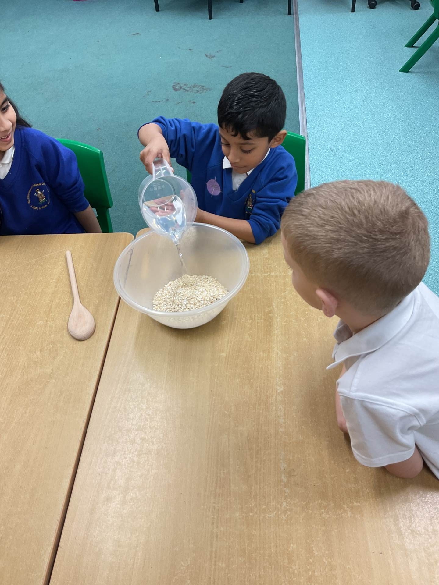 The children worked in groups to create their porridge. They even got to taste it at the end!
