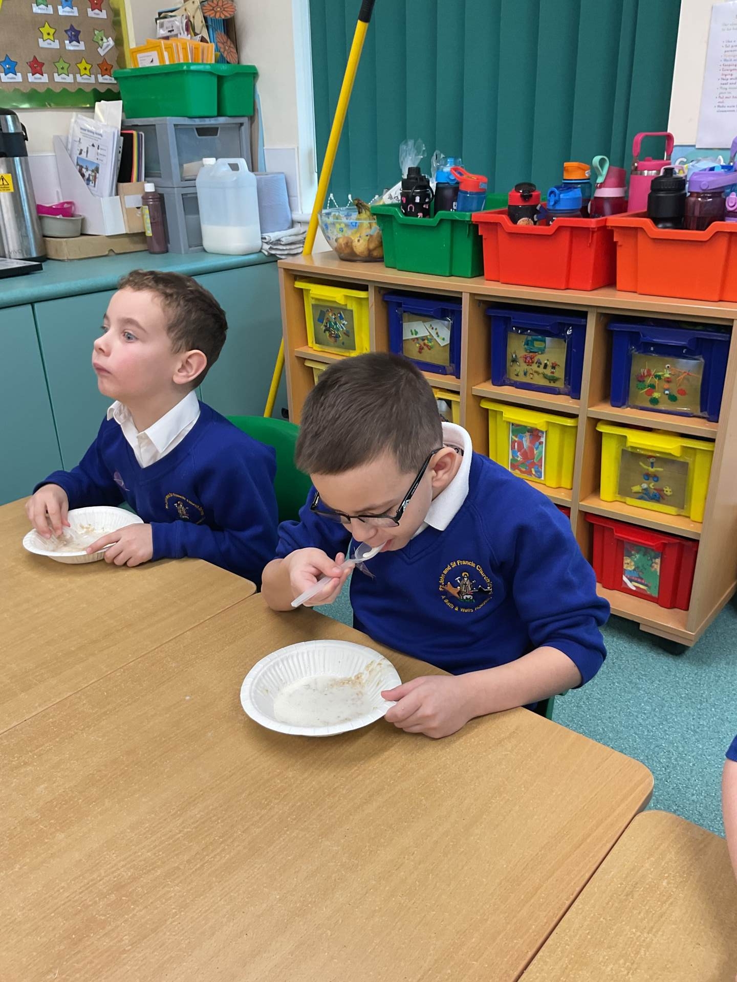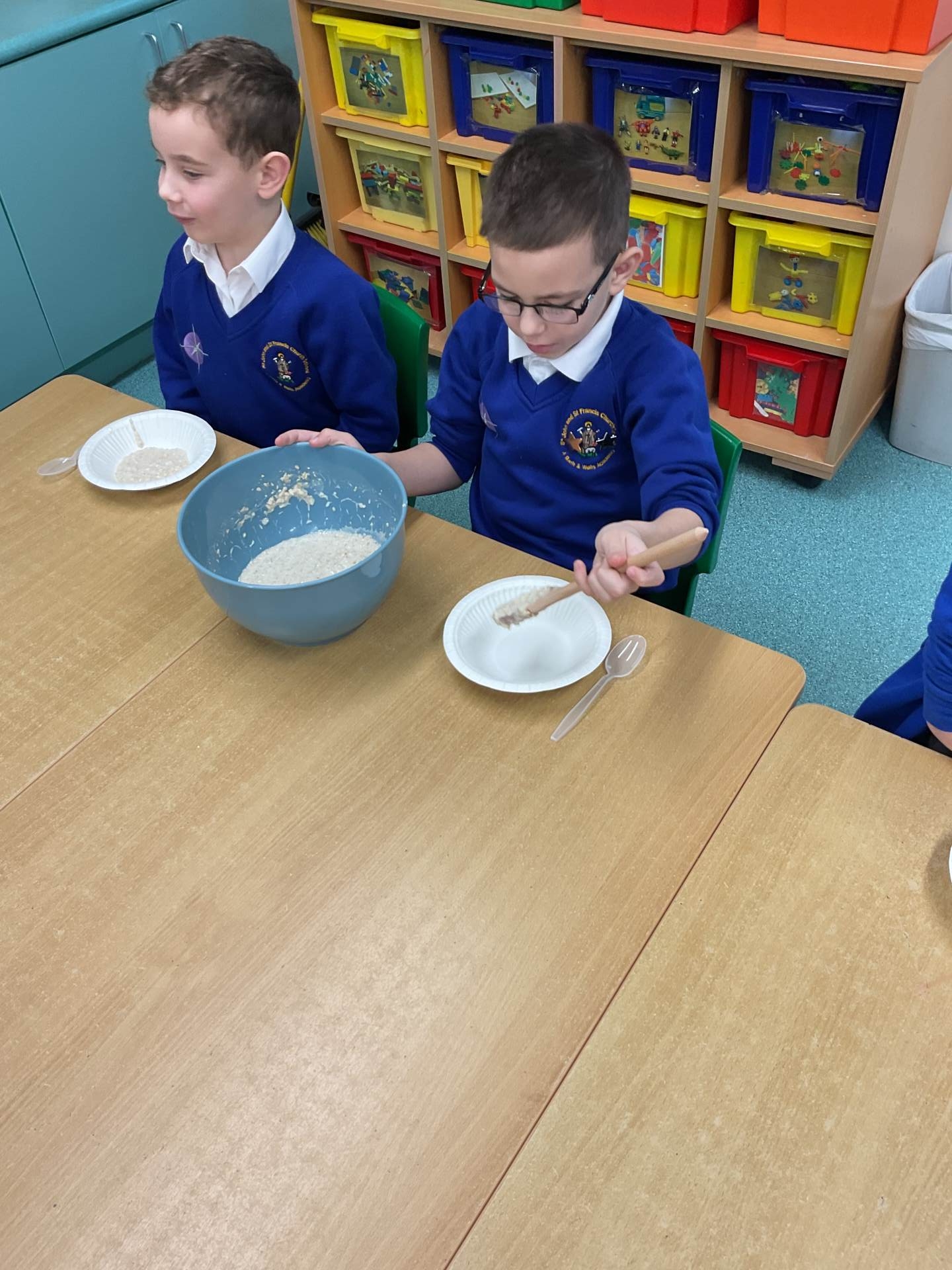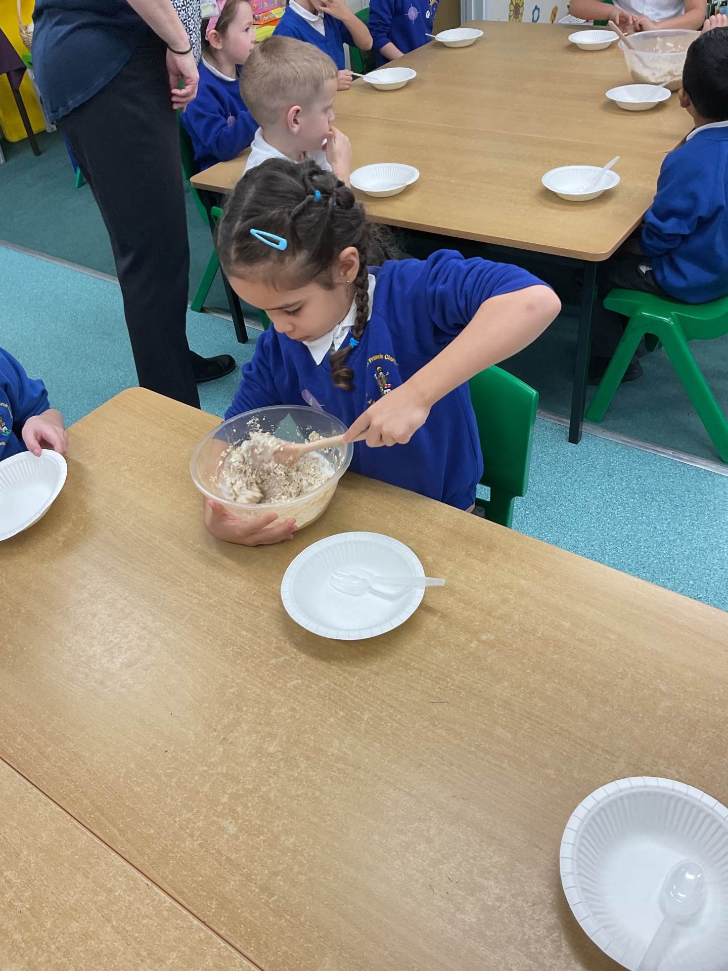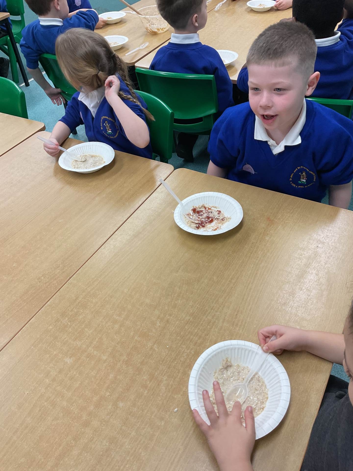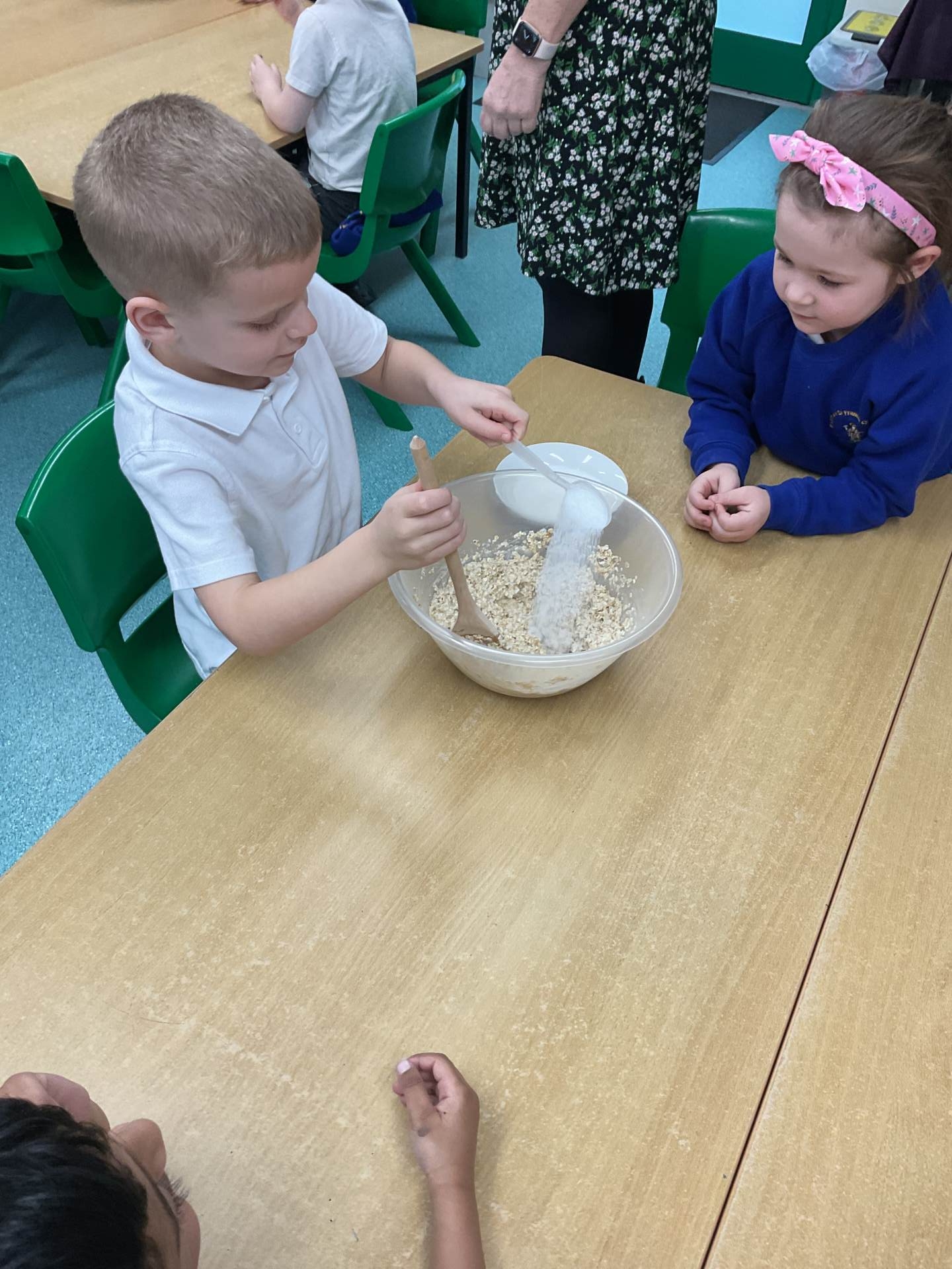 The children worked in groups to create their porridge. They even got to taste it at the end!