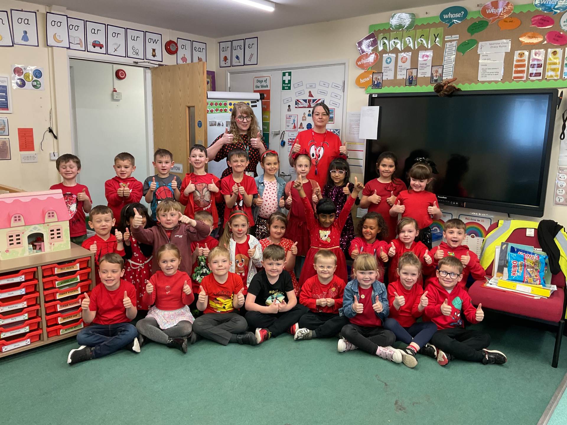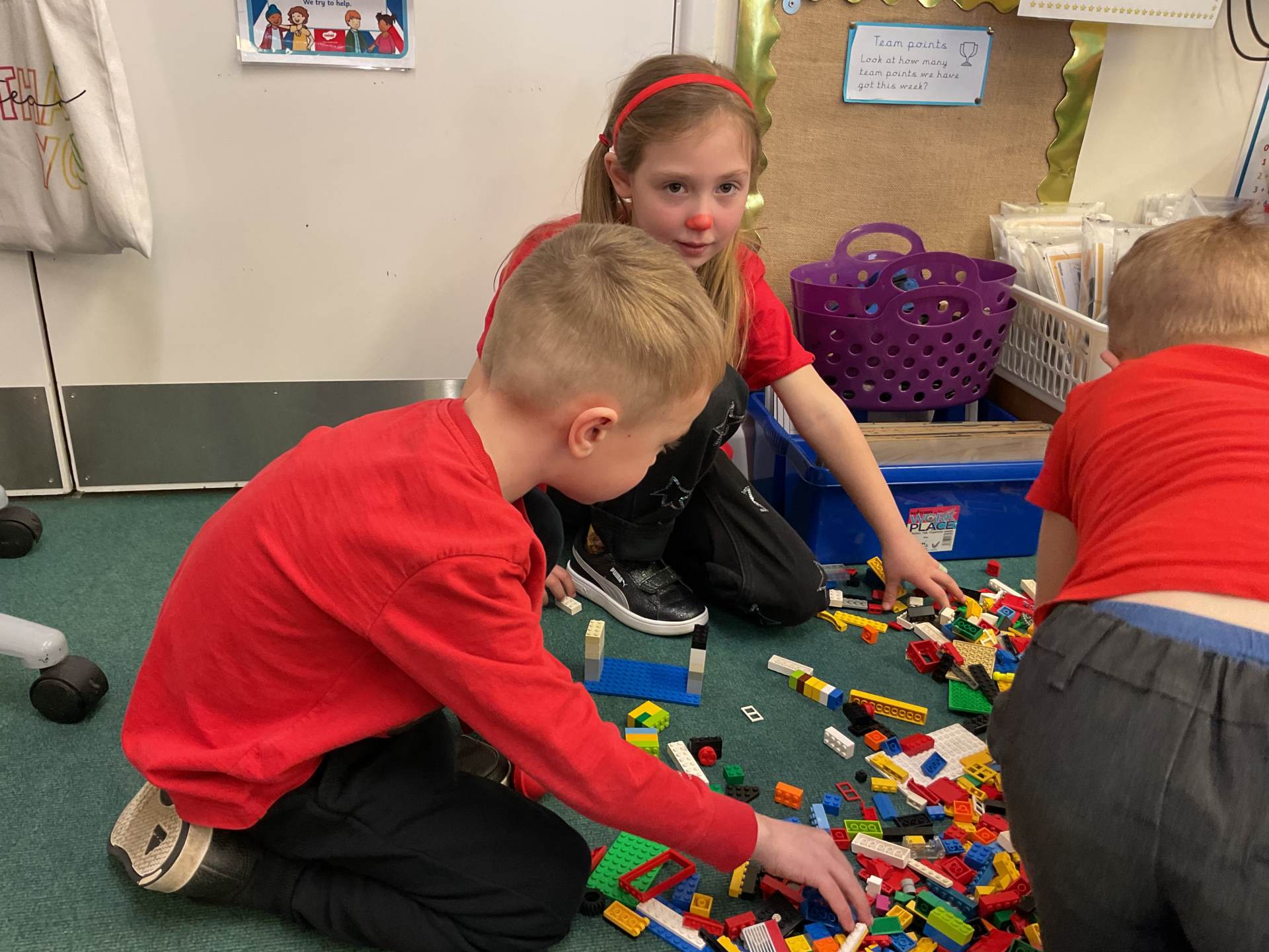 Today we all came to school dressed in Red or sparkles in support of Red Nose Day. We all looked amazing!
