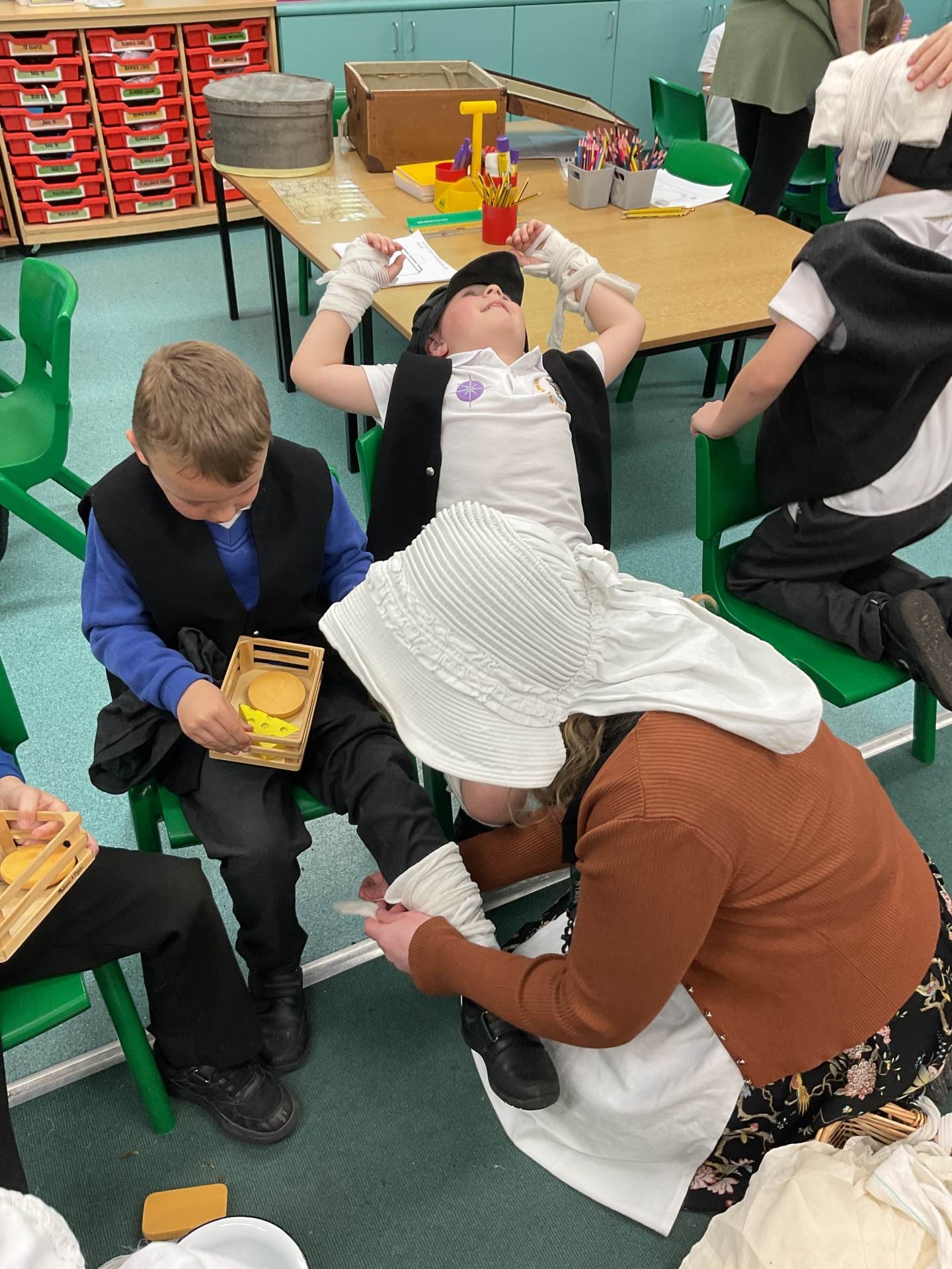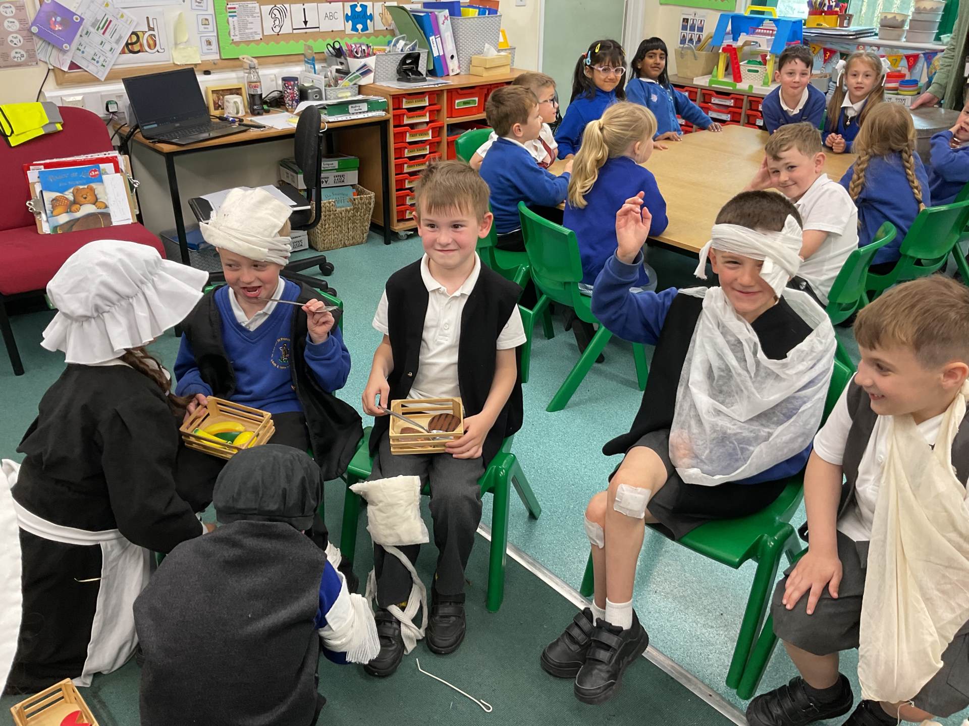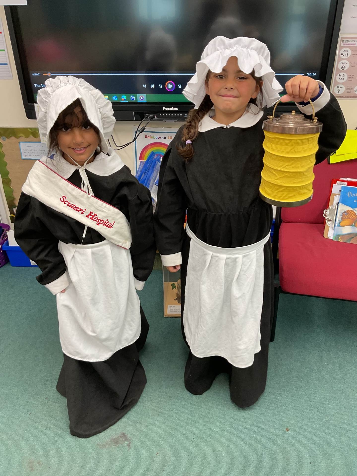 Today we had the opportunity to dress up as both nurses and wounded soldiers and to experience what life was like back then. We then designed a meal for a sick soldier and looked at some resources and had to decided if they belonged to Florence Nightingale or Mary Seacole. We also played a matching game where we had to match pictures of objects to their descriptions.