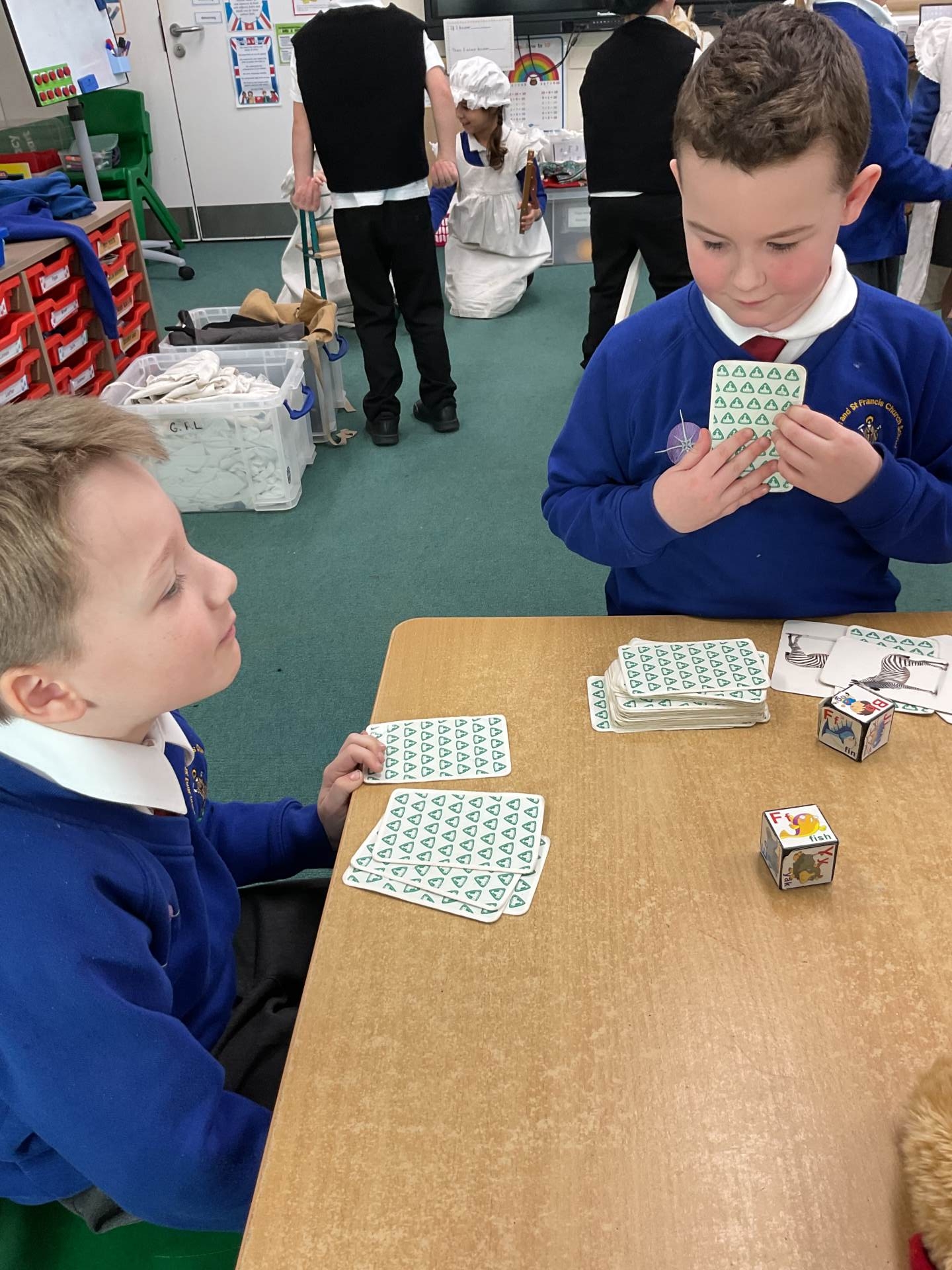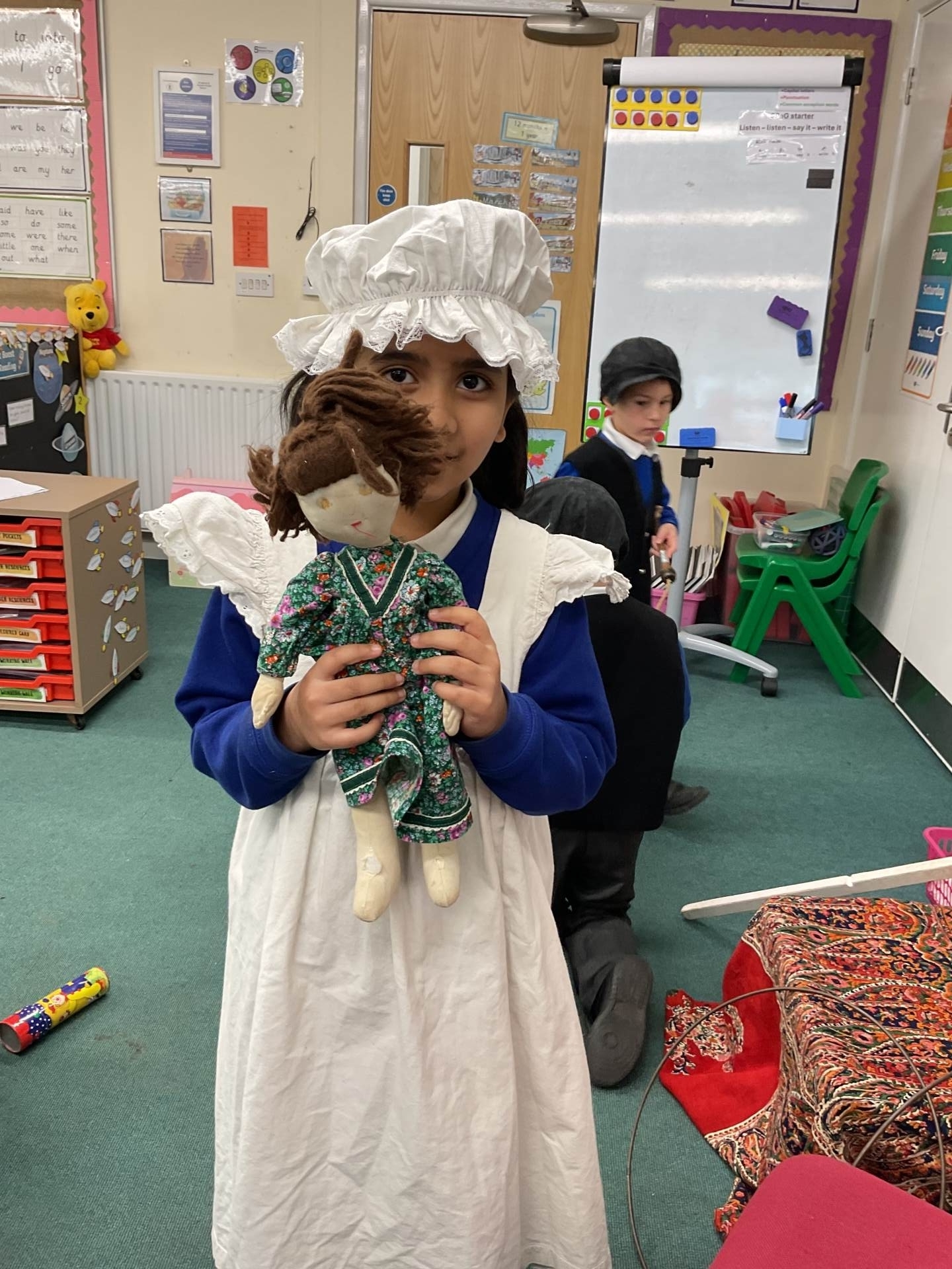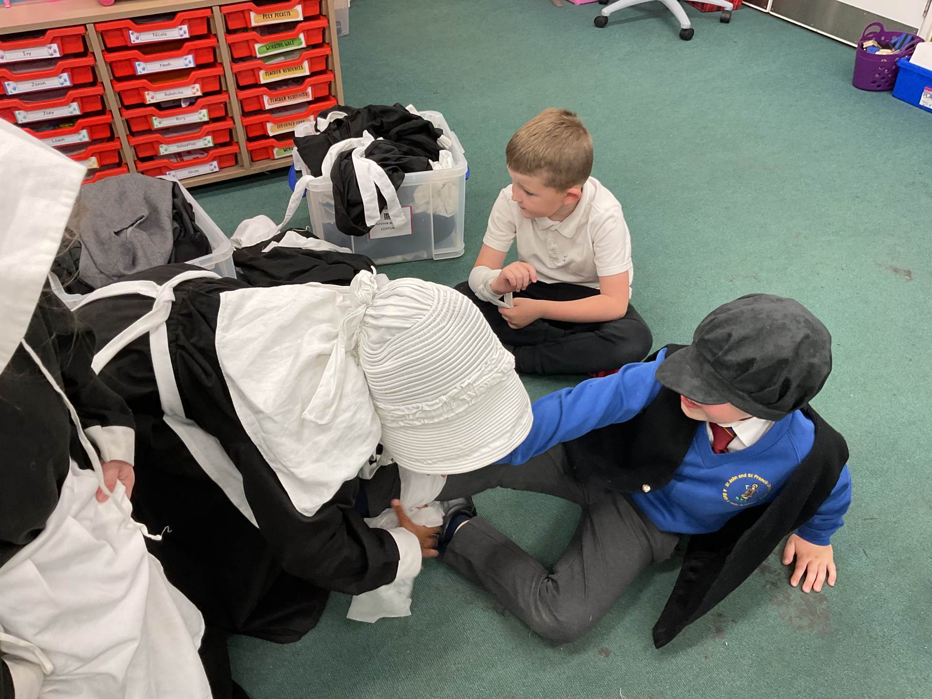 Today we had the opportunity to dress up as both nurses and wounded soldiers and to experience what life was like back then. We then designed a meal for a sick soldier and looked at some resources and had to decided if they belonged to Florence Nightingale or Mary Seacole. We also played a matching game where we had to match pictures of objects to their descriptions.