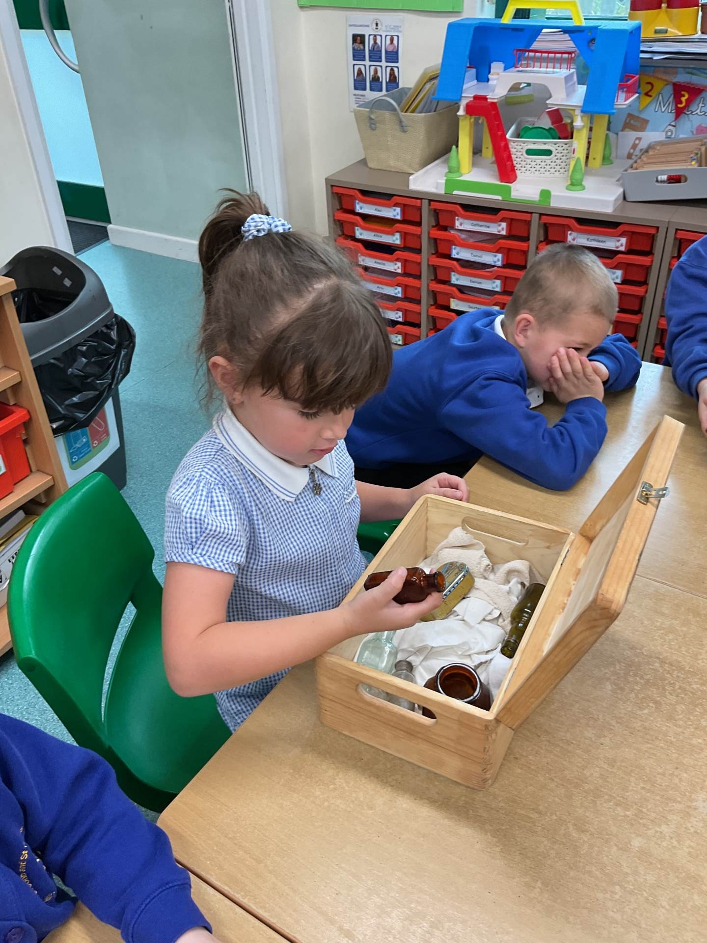 The second activity was exploring the properties of different materials using object feely bags. It was quite tricky to identify some of the materials.
