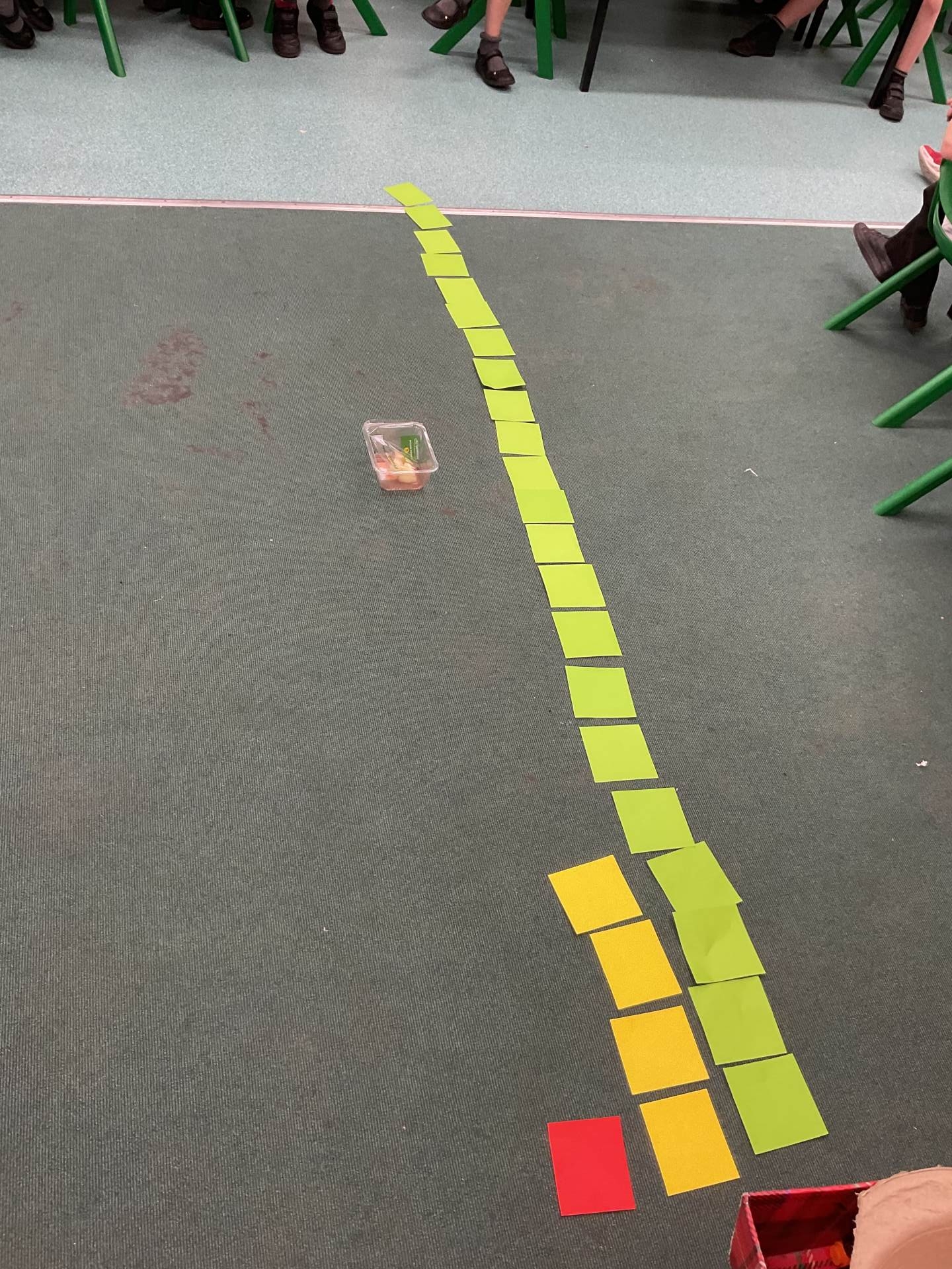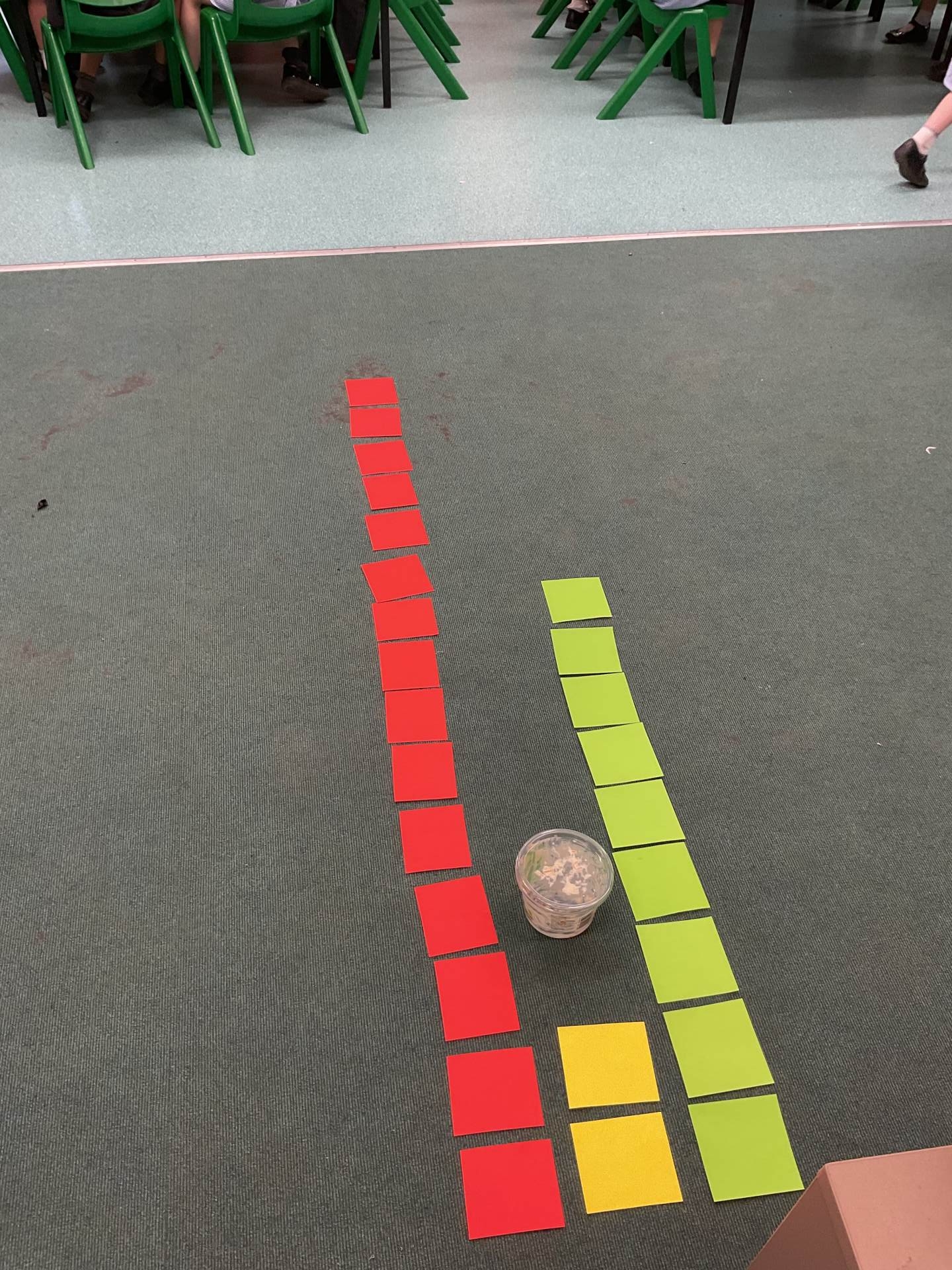 Today in our DT lesson we tasted some different salads- We tasted coleslaw, potato salad and a fruit salad. We voted to see which one we liked the best. After we tasted each salad we created a graph with different coloured cards. The red meant we really did not like it. The yellow meant it was ok and the green meant we really enjoyed it. As you can see the fruit salad was the most popular salad. We then agreed on five fruits that we will use to make our own class fruit salad next week. We will use apples, water melon, banana, grapes and strawberries.