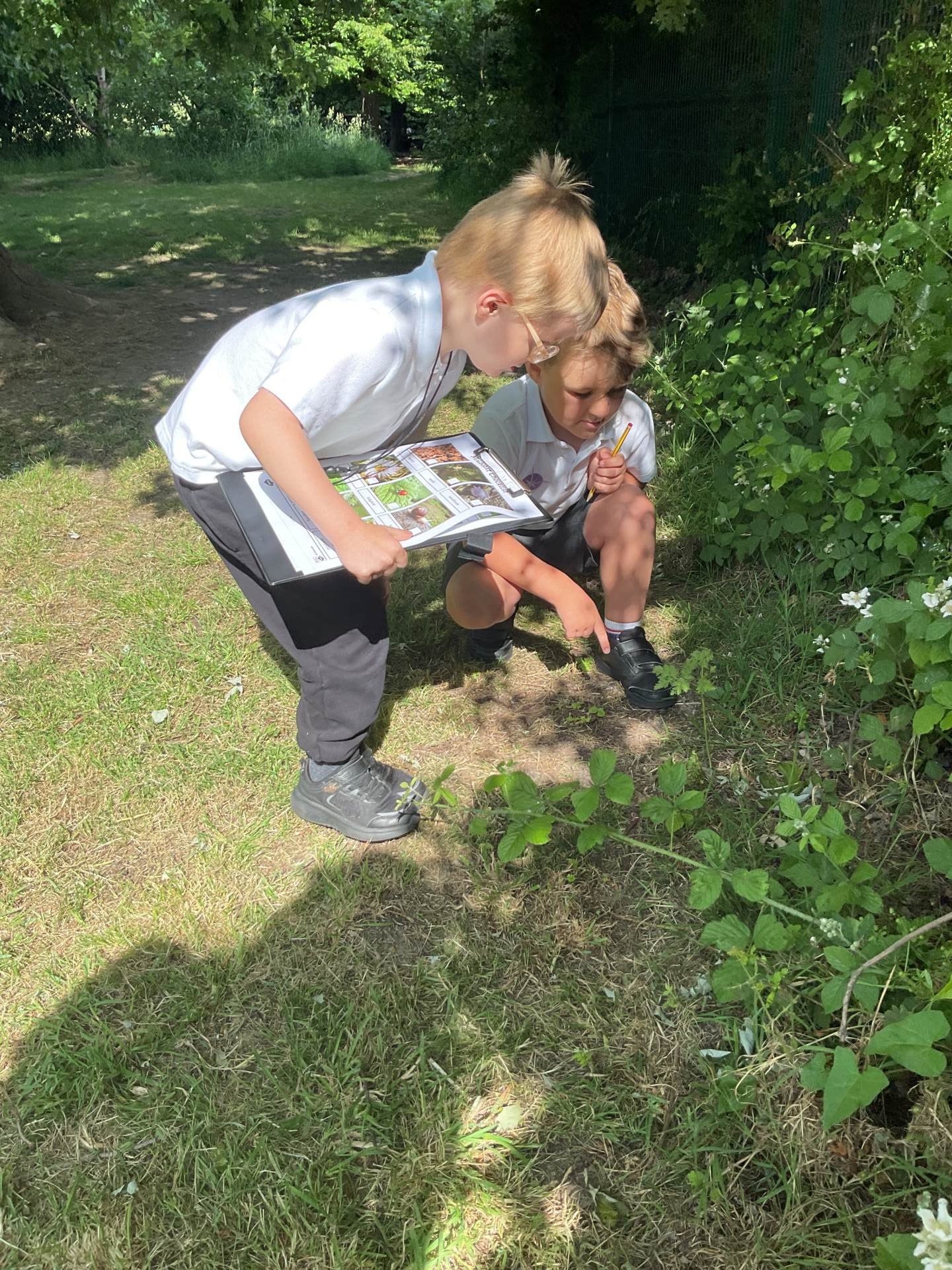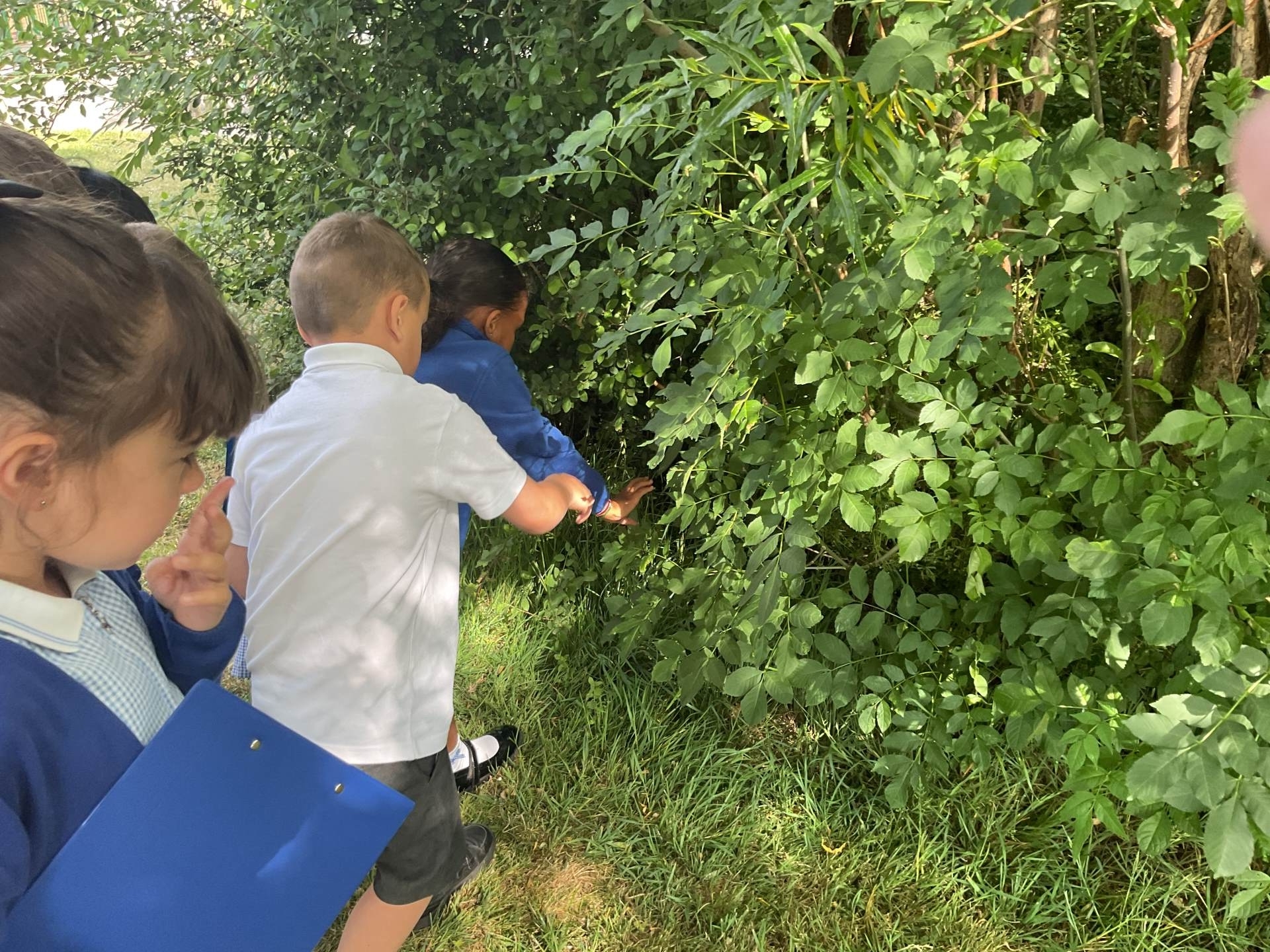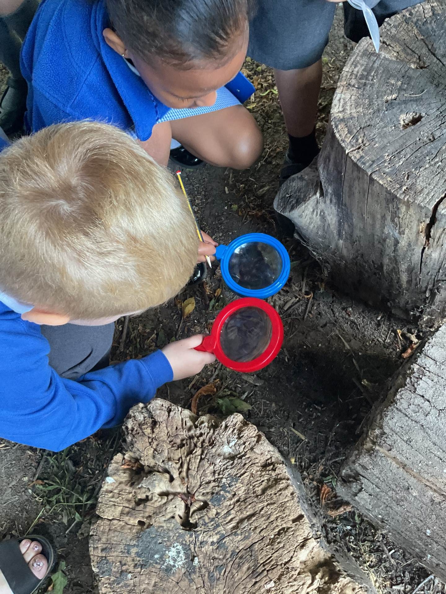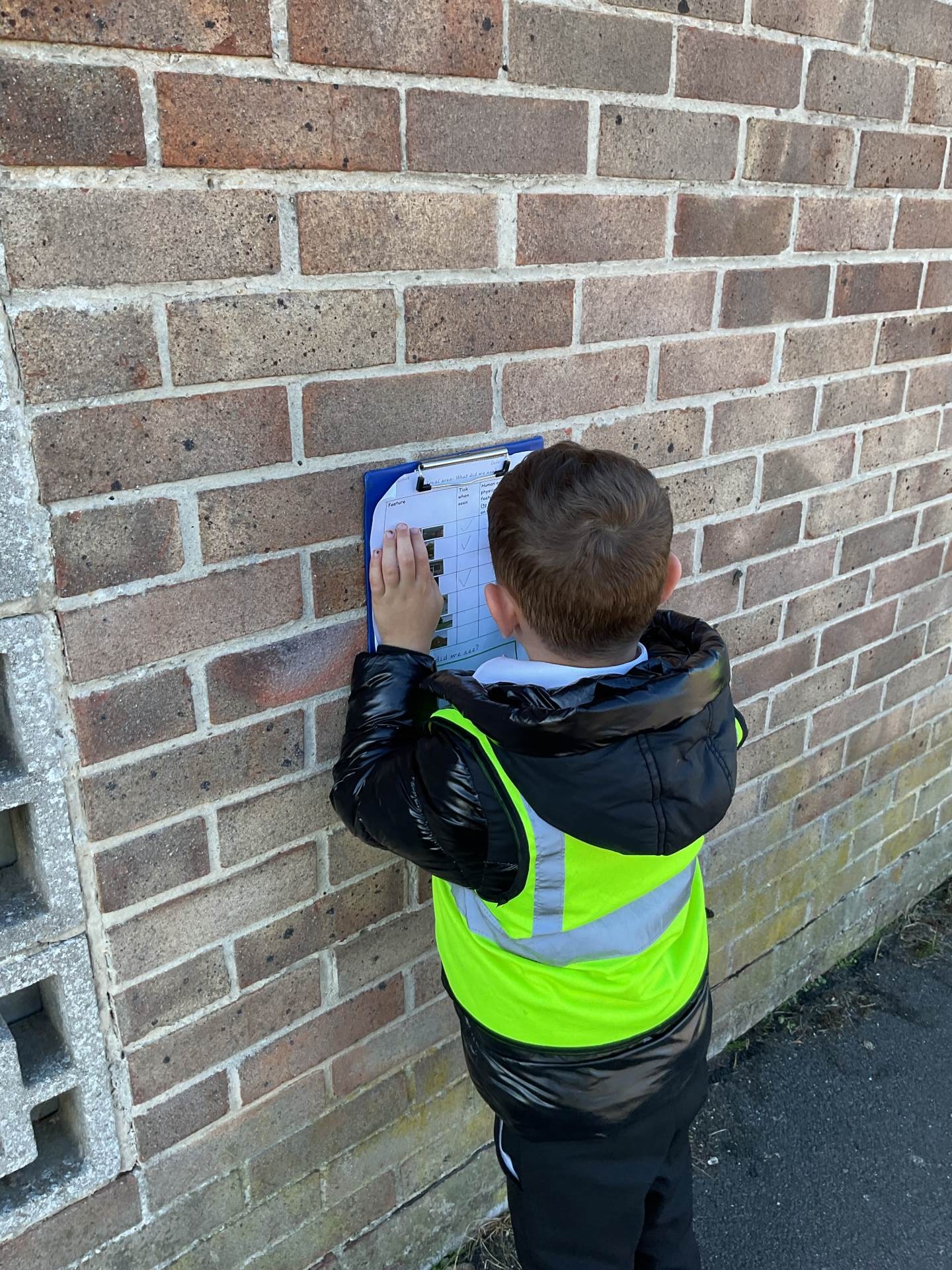 Today we started our Minibeasts topic in English. We began by sharing our ideas about ‘What is a Minibeast?’ before going on our own minibeast hunt around the school grounds. We took a check-list with us to record all the different types of minibeasts we could find and magnifying glasses so that we could see any details.