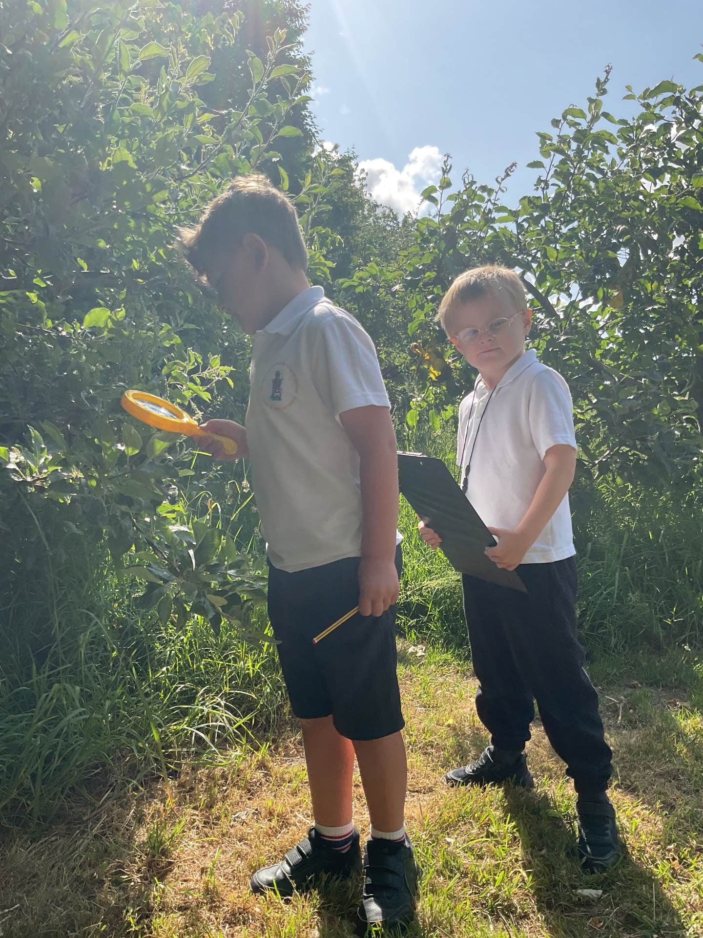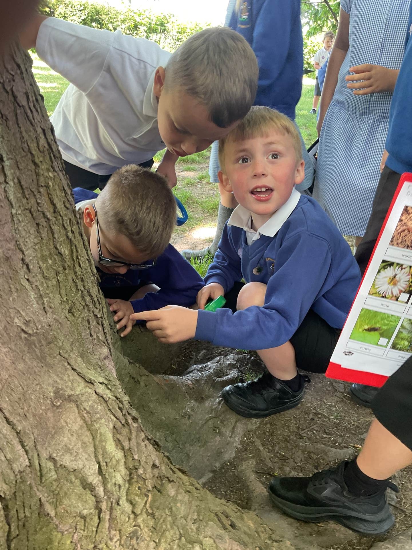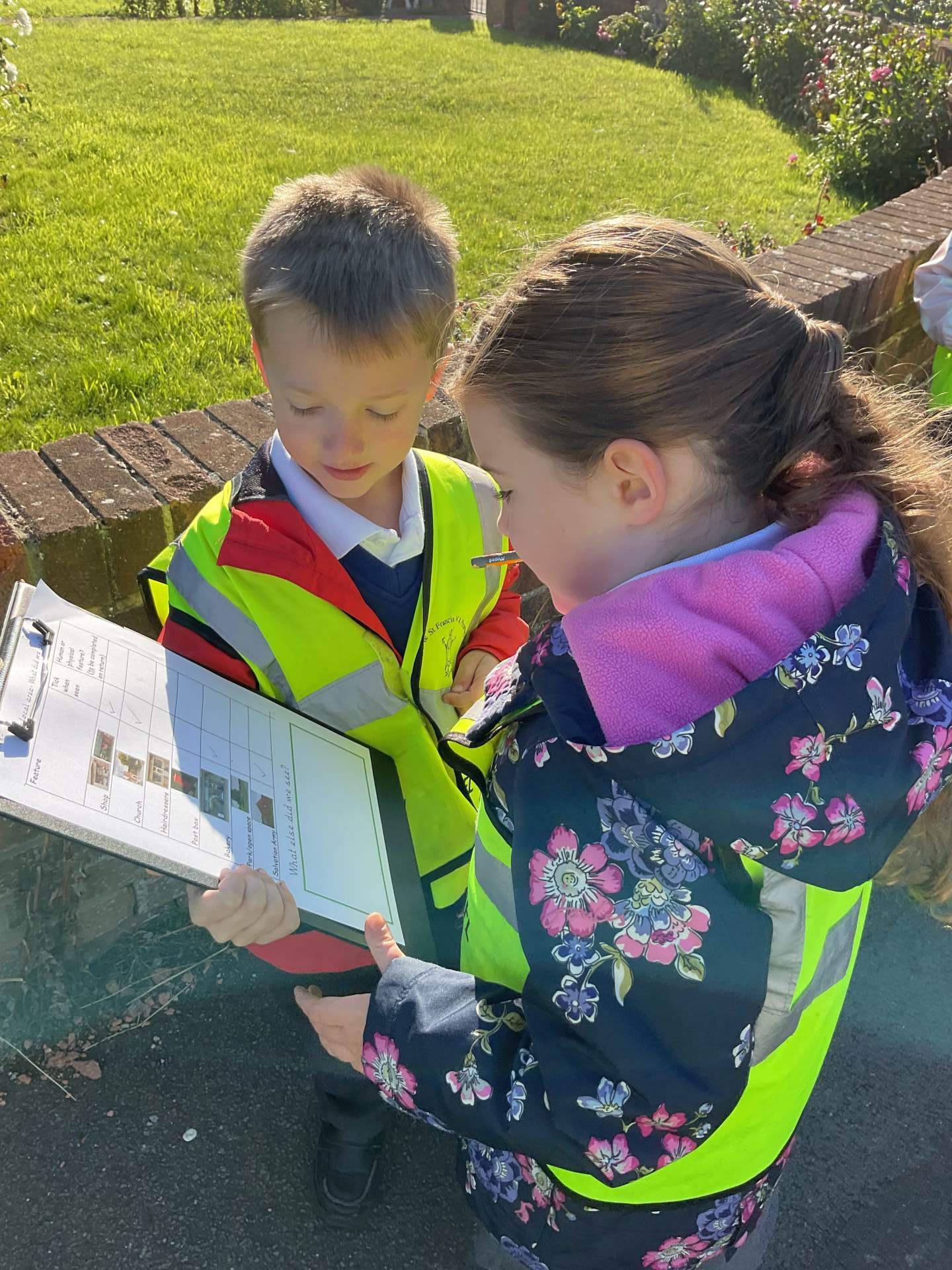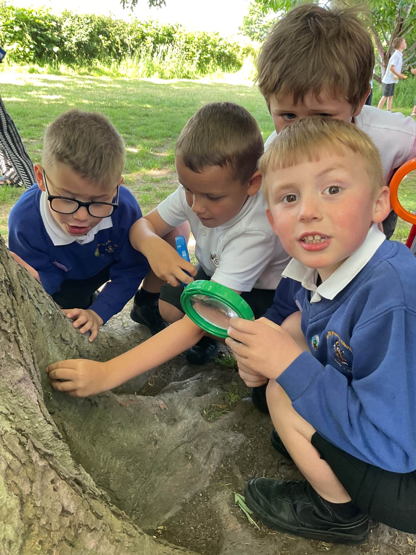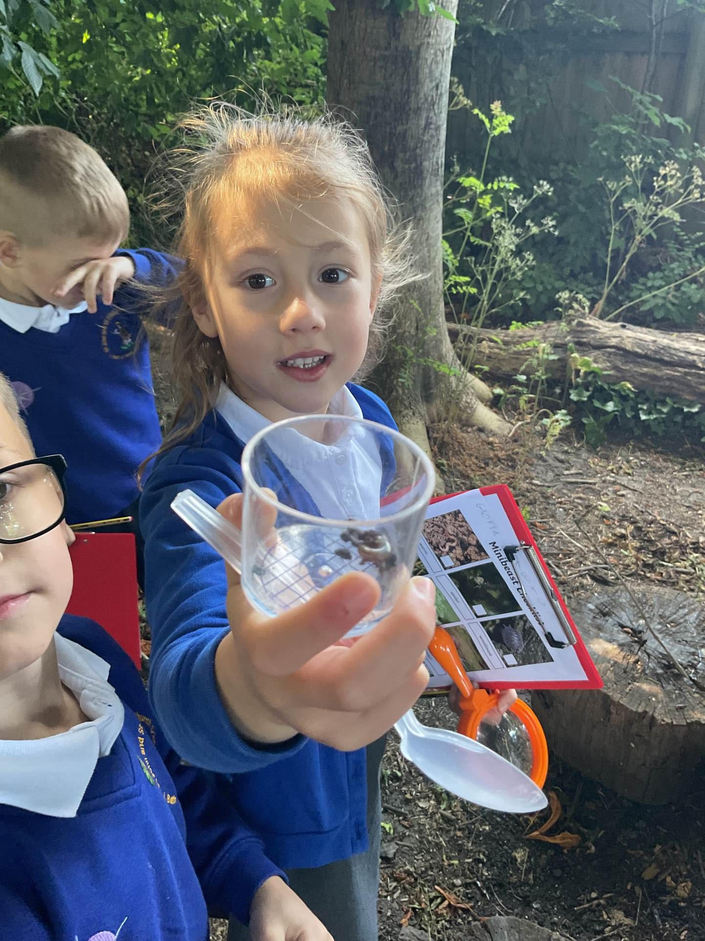 Today we started our Minibeasts topic in English. We began by sharing our ideas about ‘What is a Minibeast?’ before going on our own minibeast hunt around the school grounds. We took a check-list with us to record all the different types of minibeasts we could find and magnifying glasses so that we could see any details.