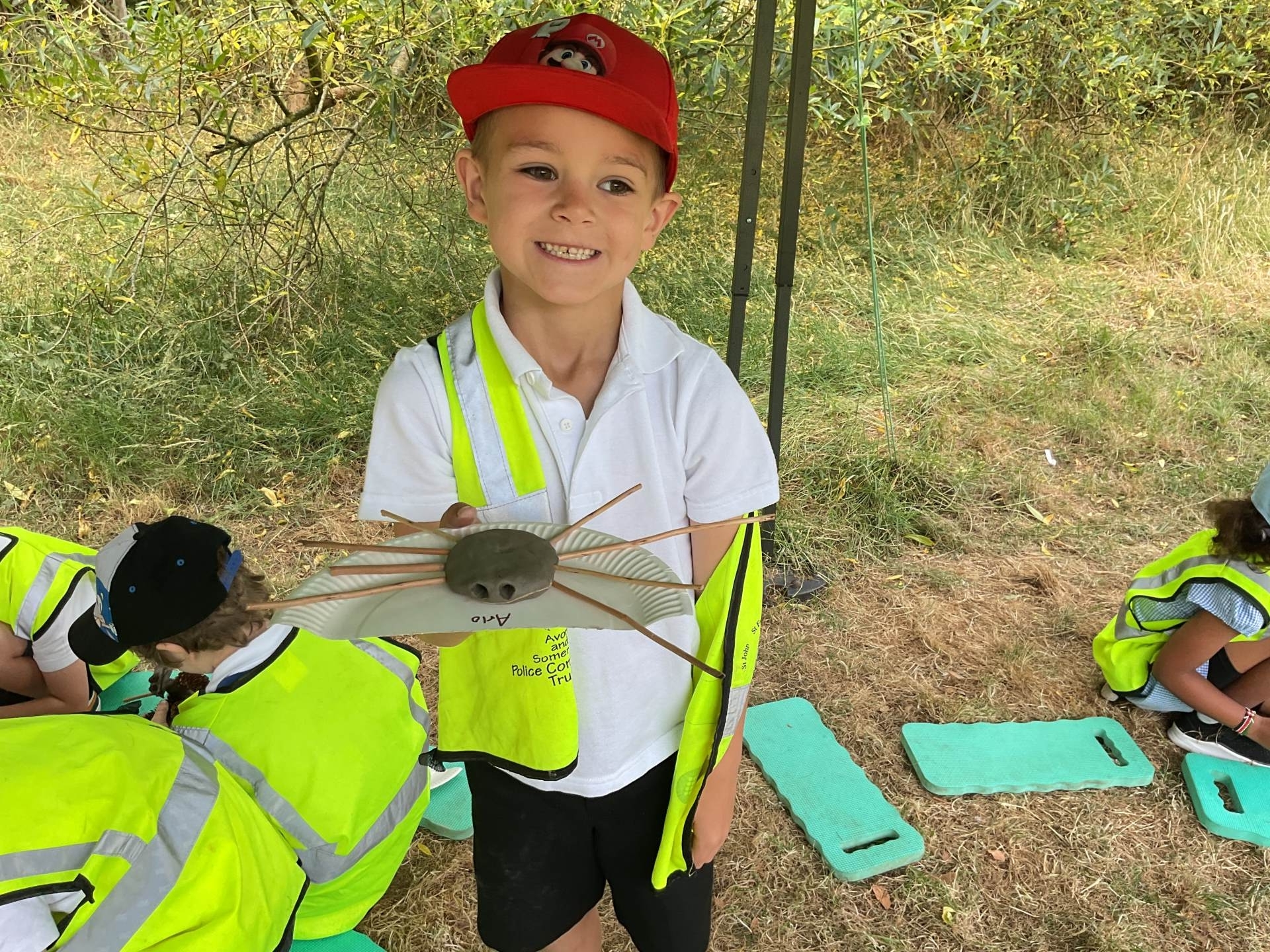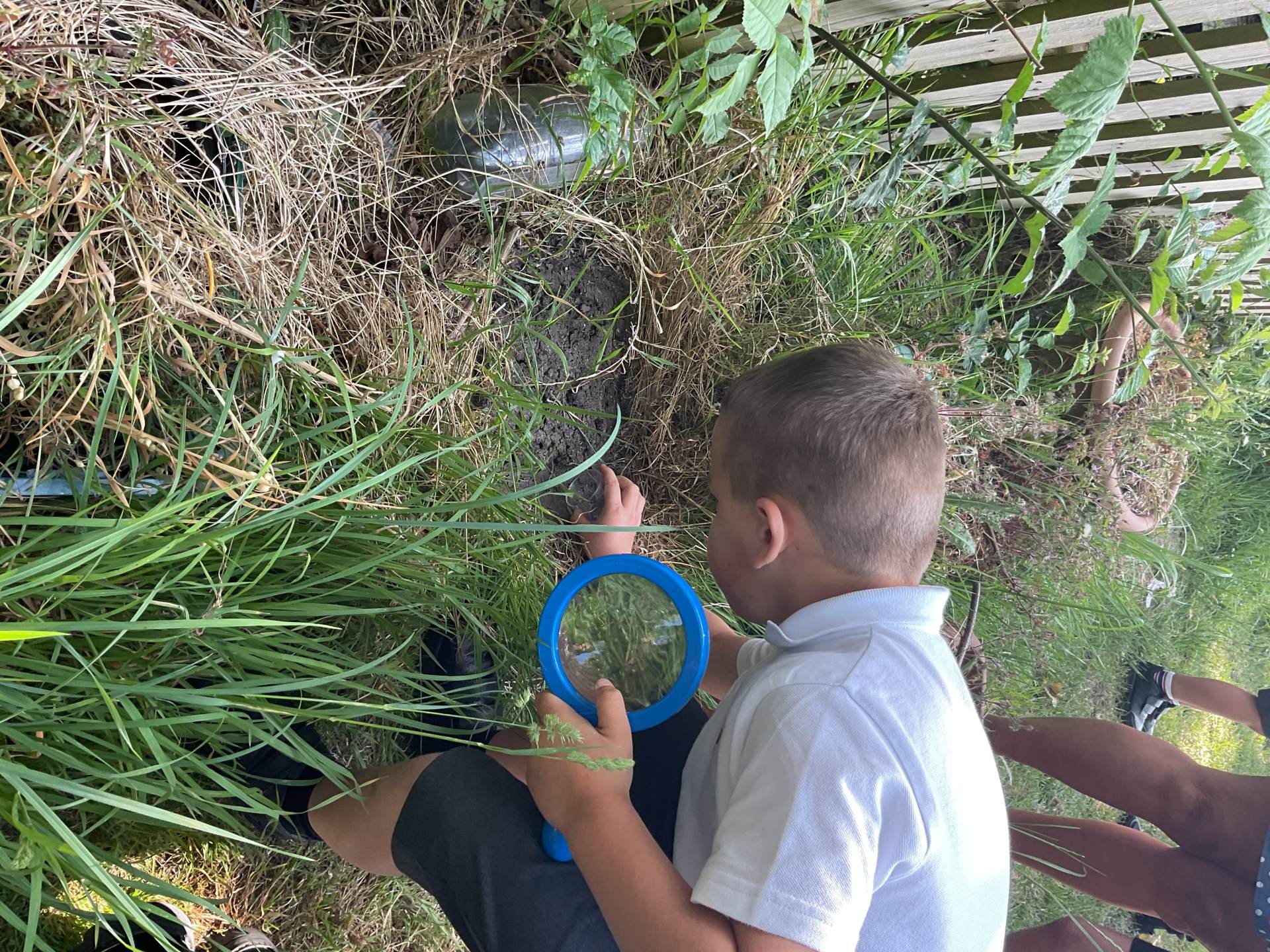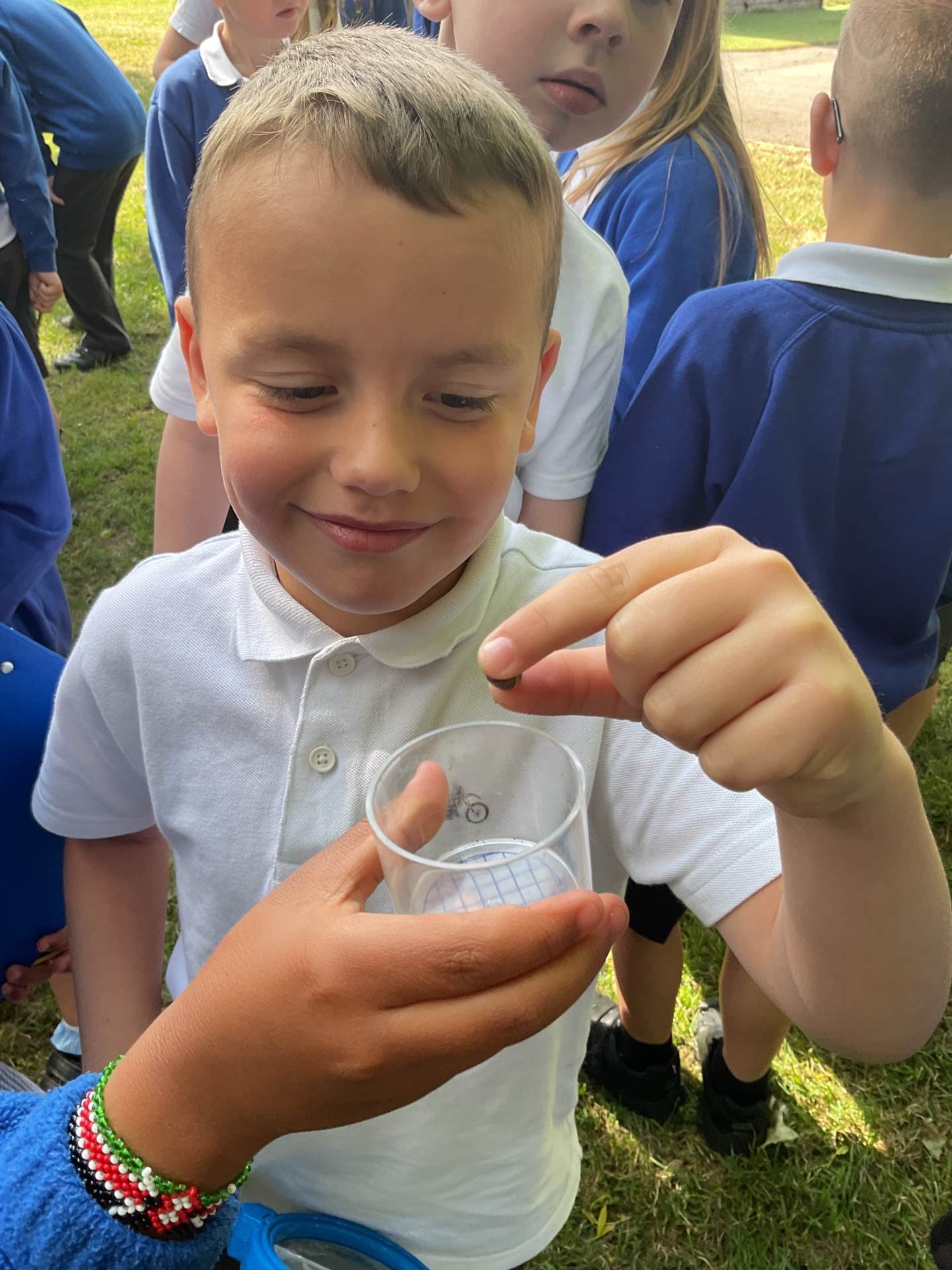 We spent the day exploring the meadow and pond habitats to find the minibeasts that live there. We played games, did some pond water dipping, and used special nets to look what was in the long grass. We used magnifying glasses to take a closer look and even made clay creatures to take home.