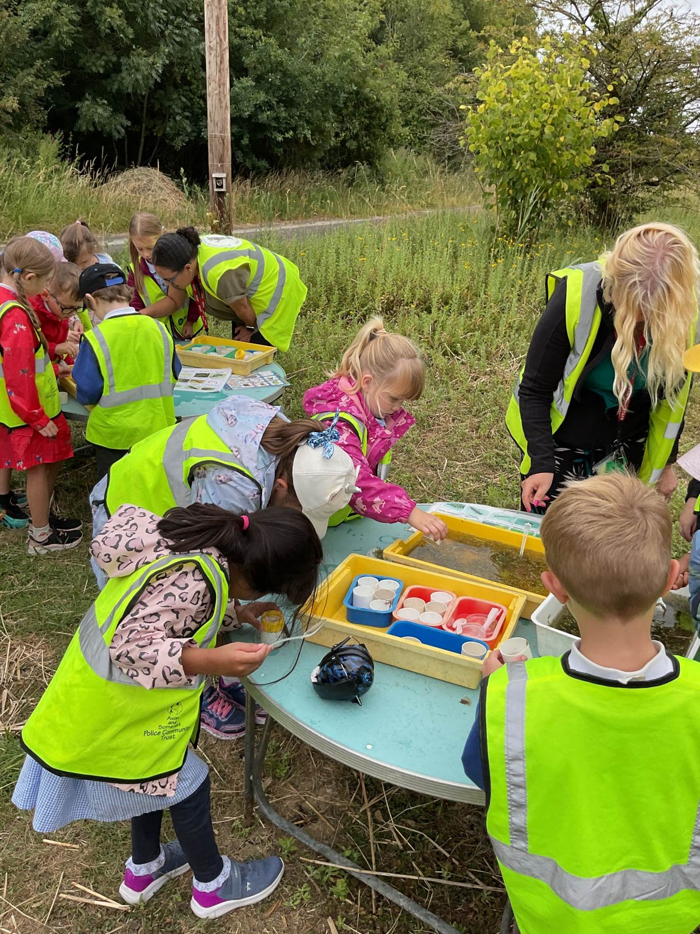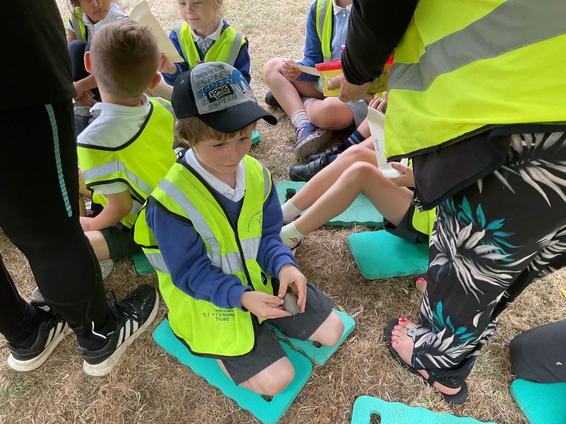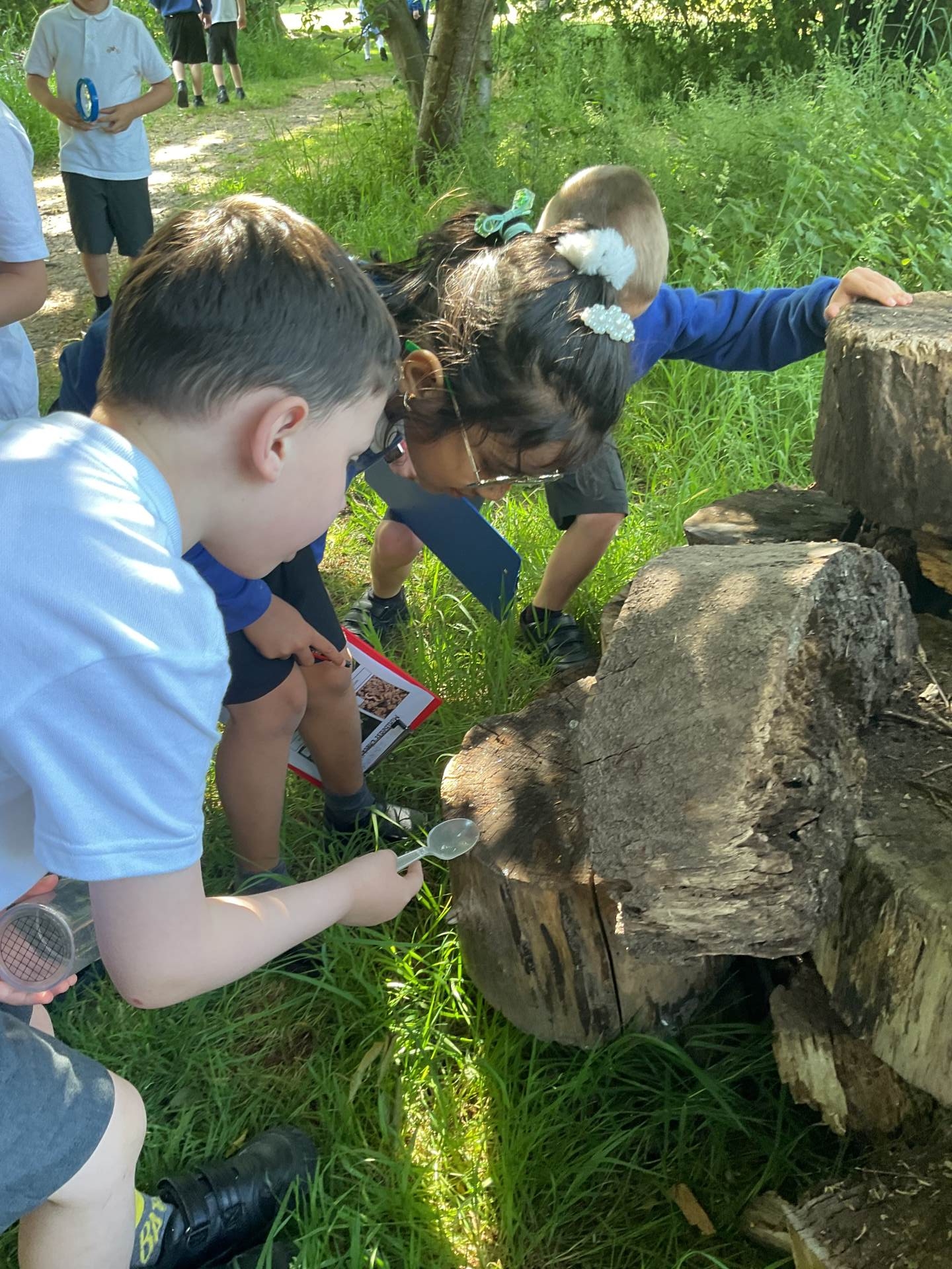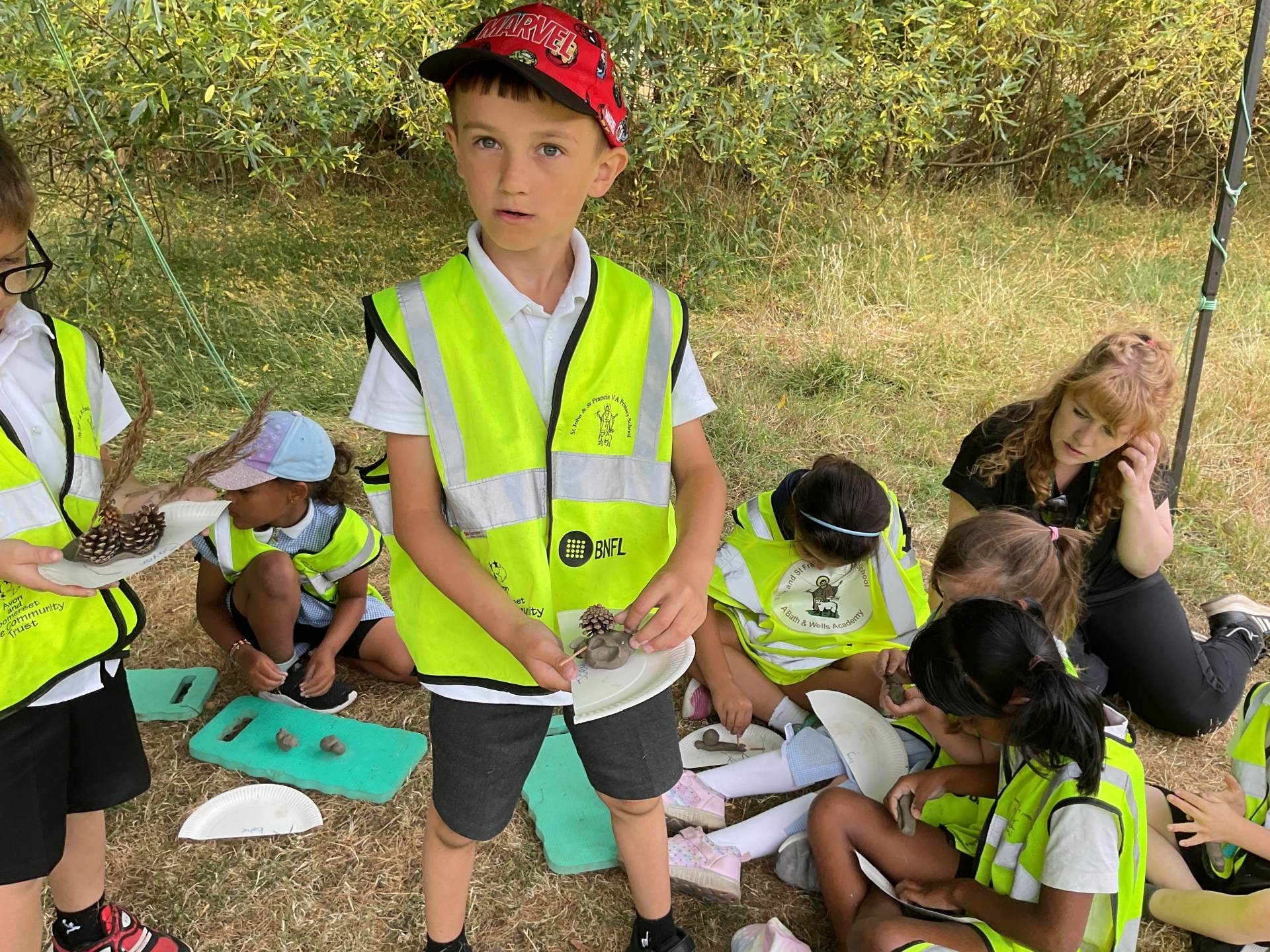 We spent the day exploring the meadow and pond habitats to find the minibeasts that live there. We played games, did some pond water dipping, and used special nets to look what was in the long grass. We used magnifying glasses to take a closer look and even made clay creatures to take home.