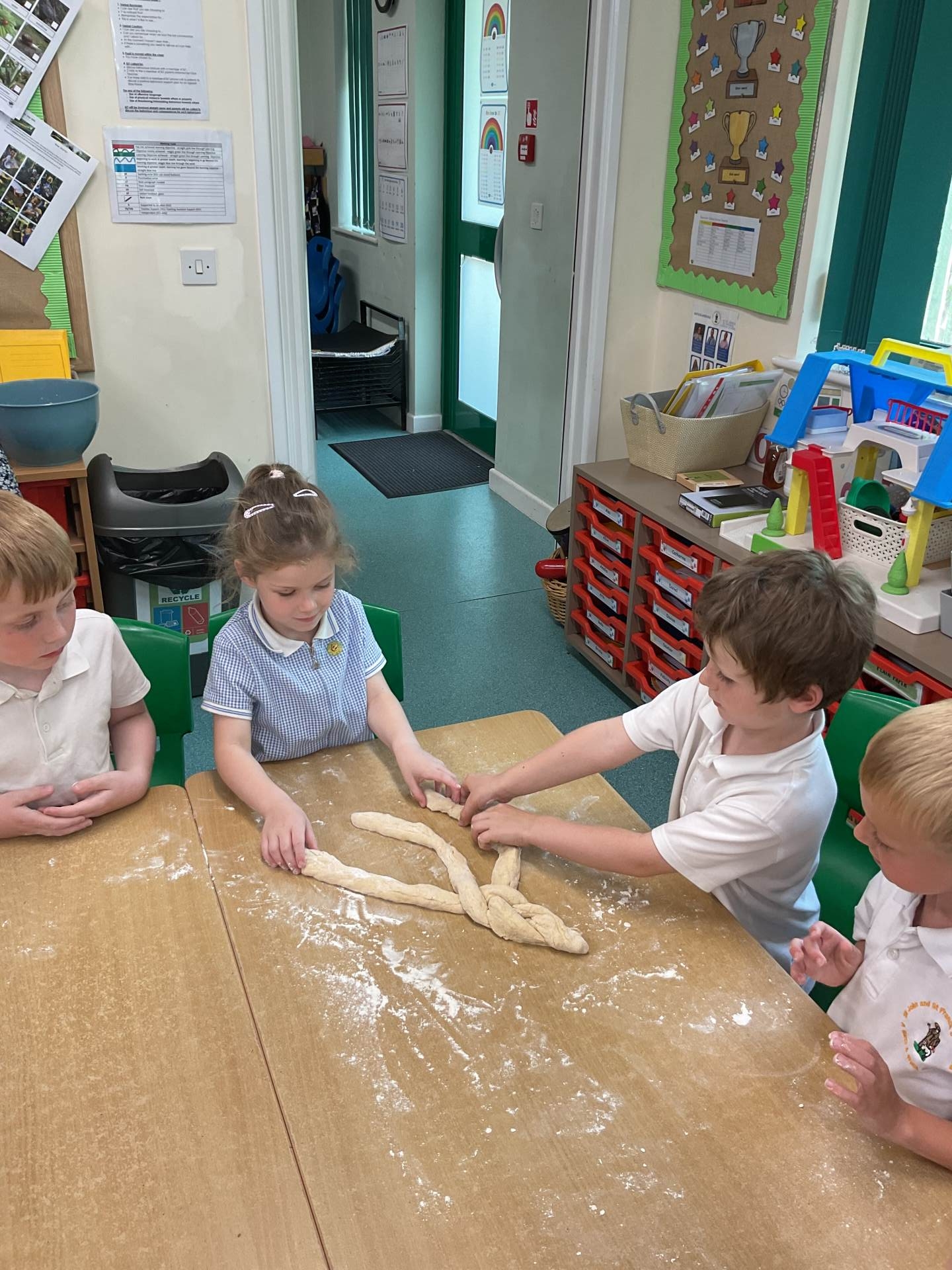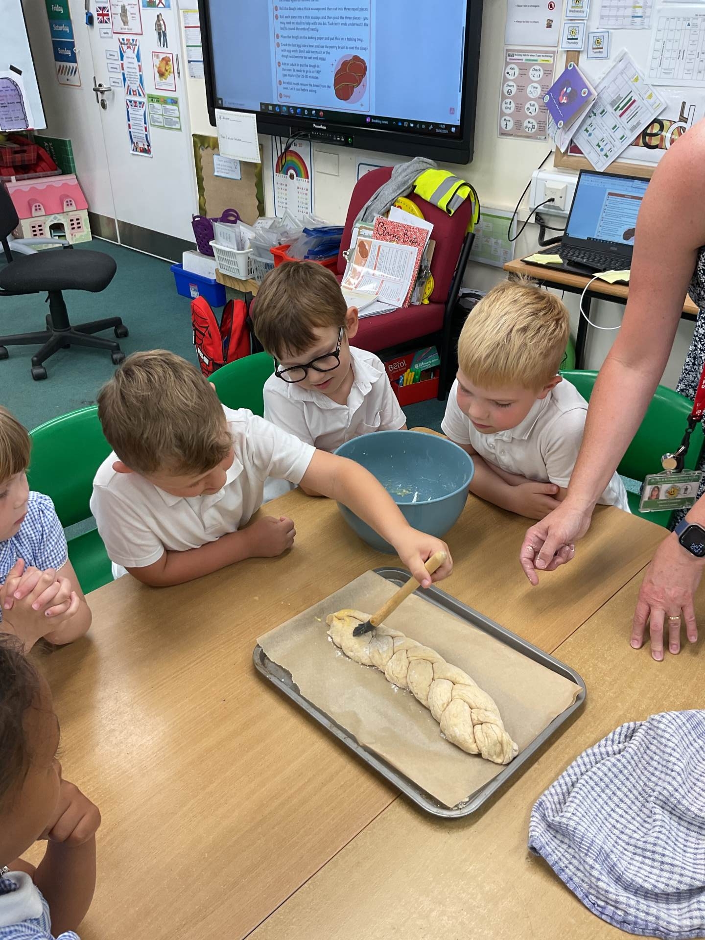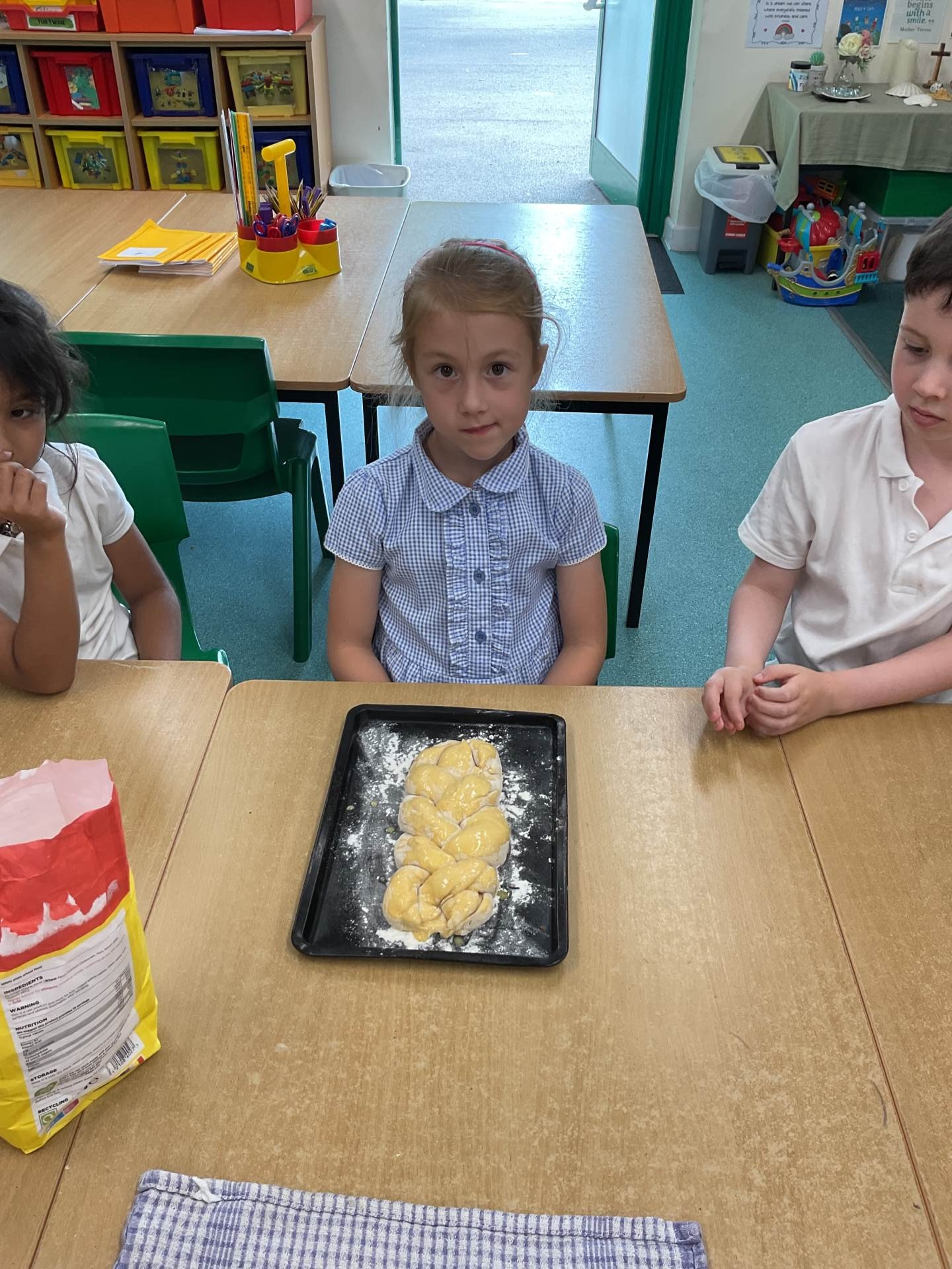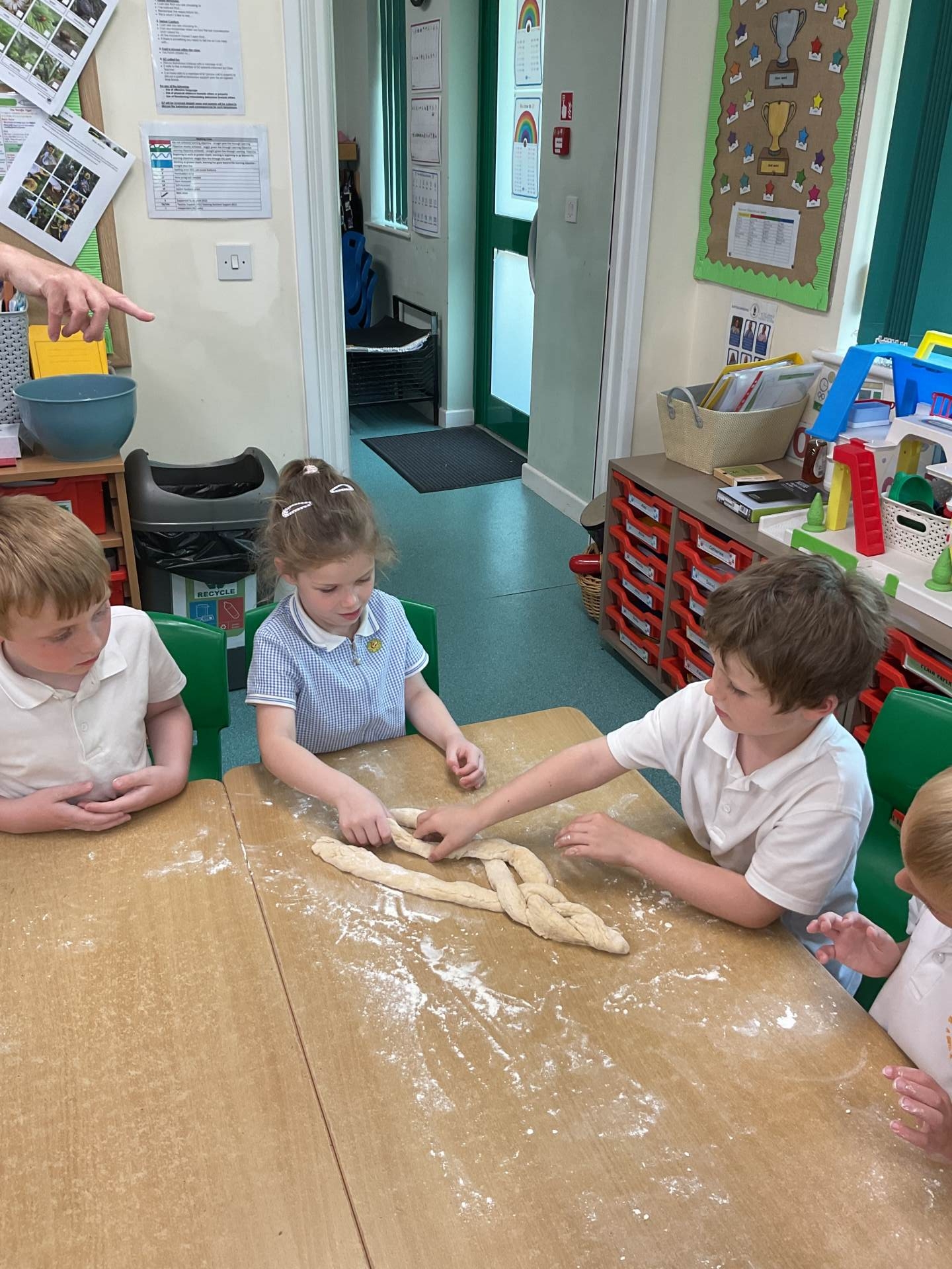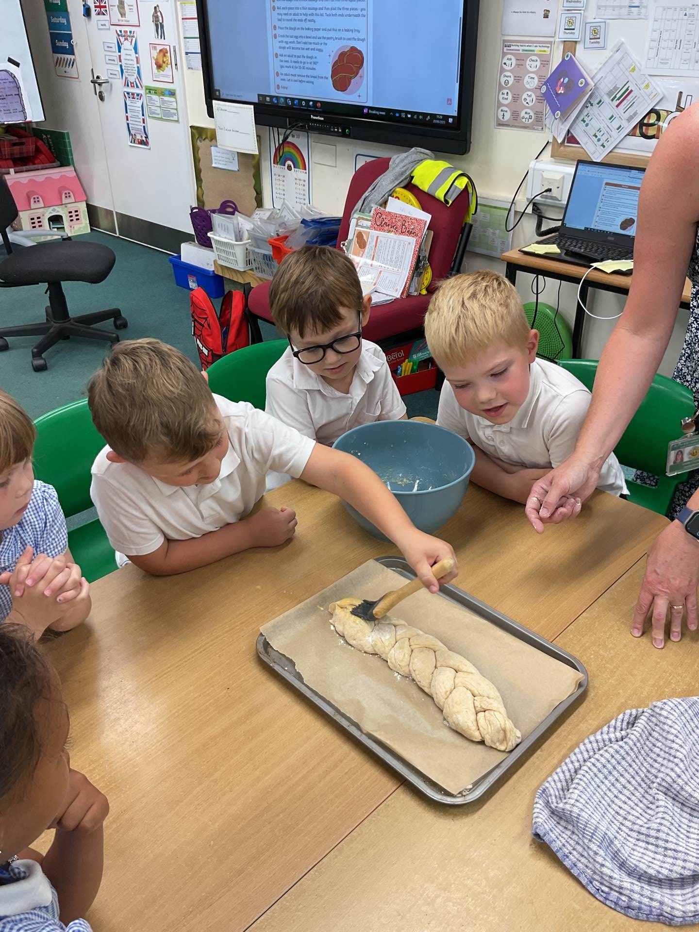 Today in Sparrow class we have made some Challah bread, as part of our Judaism unit of work. Challah bread is eaten as part of the Jewish Shabbat celebration. It is a special plaited loaf that is bought fresh on Friday mornings in preparation of Shabbat. Two loaves are always bought together. The loaves are covered with a special Challah cover, so they can't see the wine when it is blessed. Challah tastes much sweeter than normal bread. This reminds people that Shabbat is special.