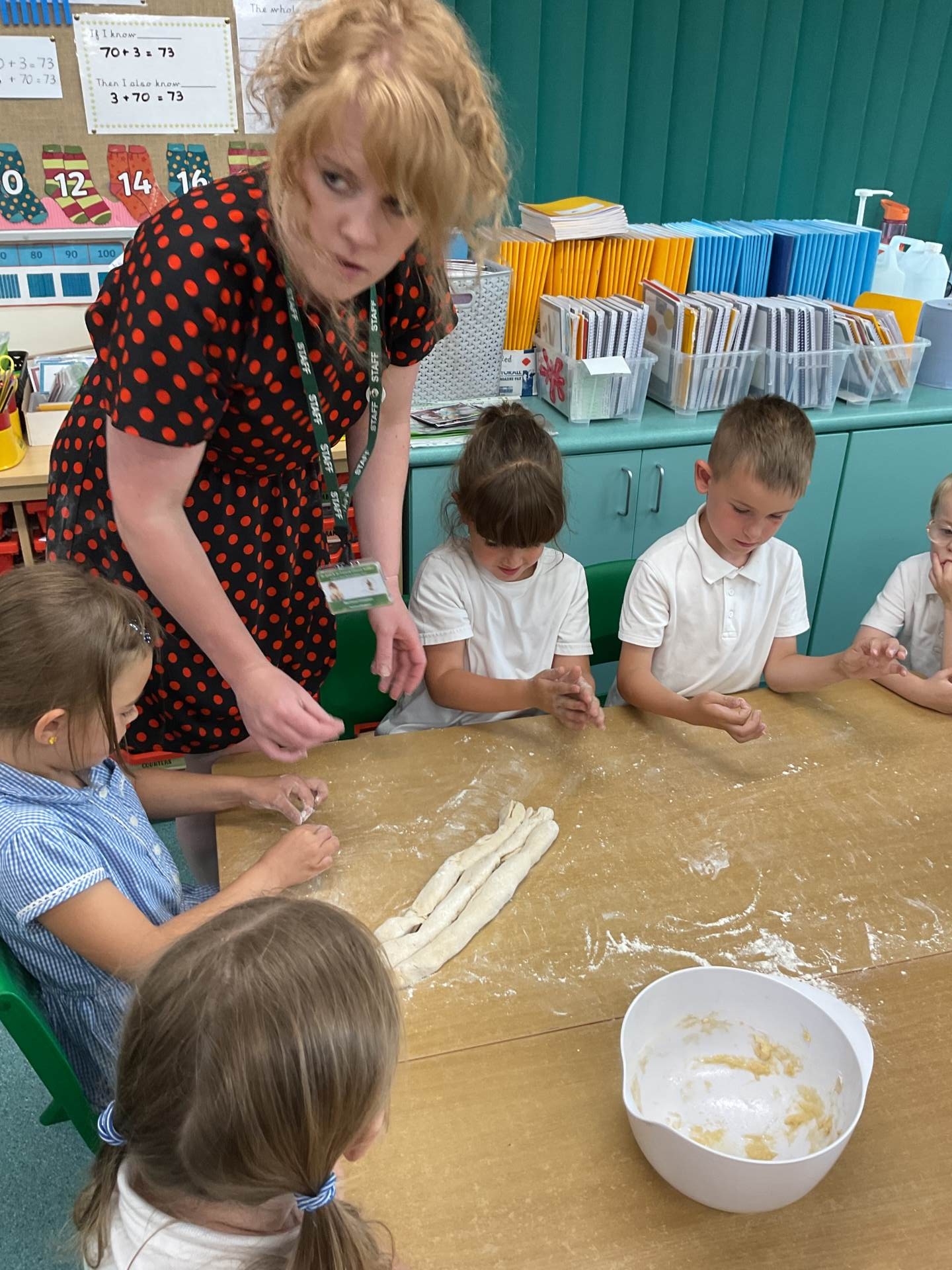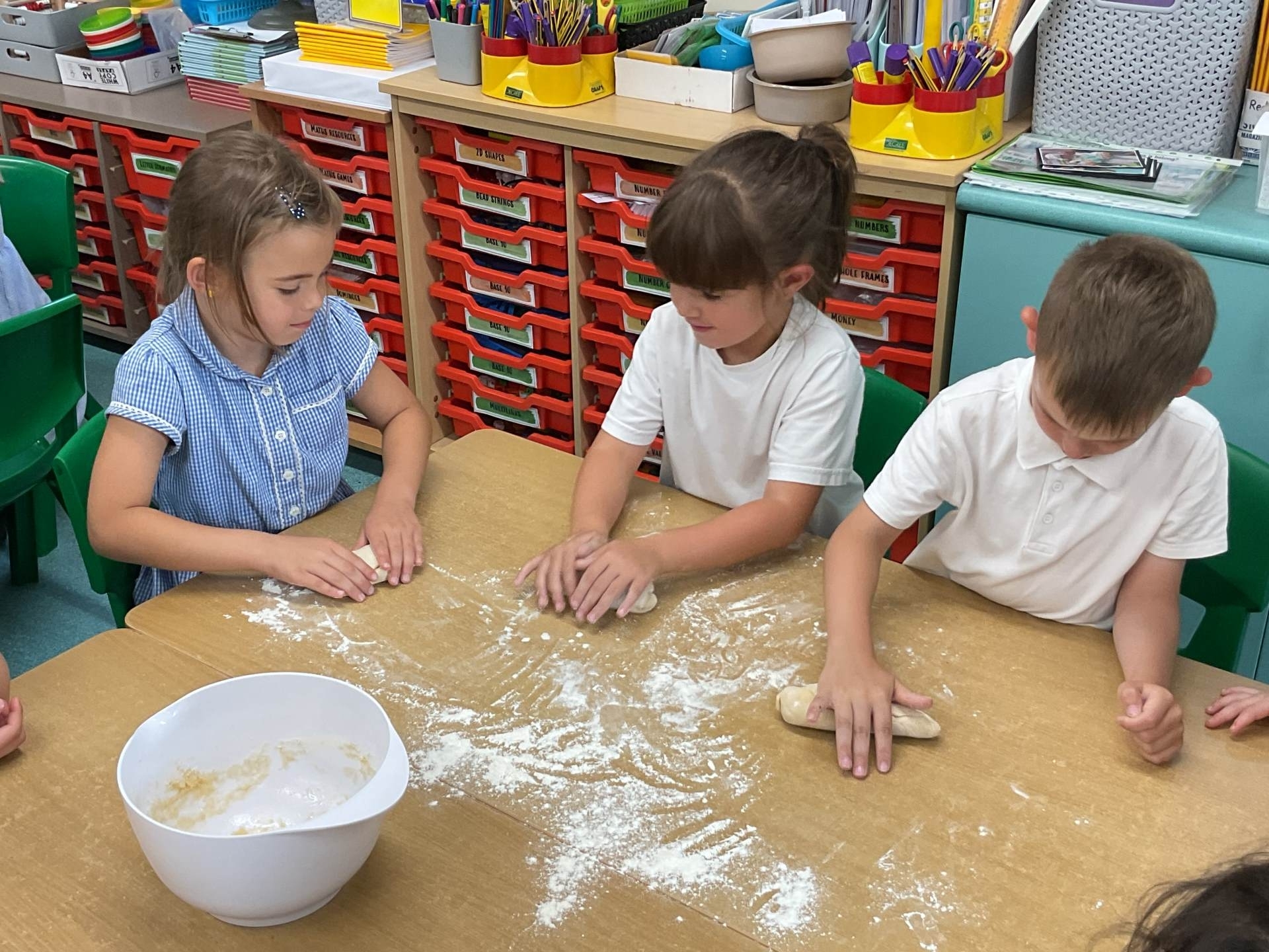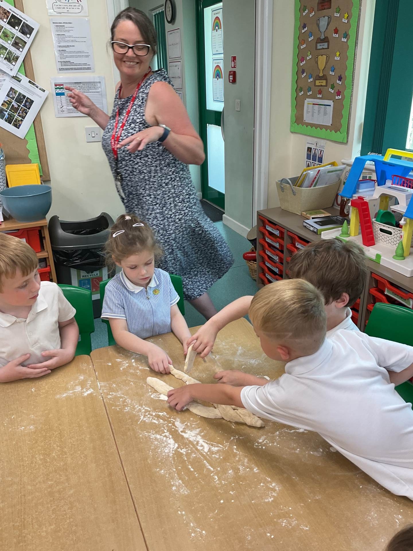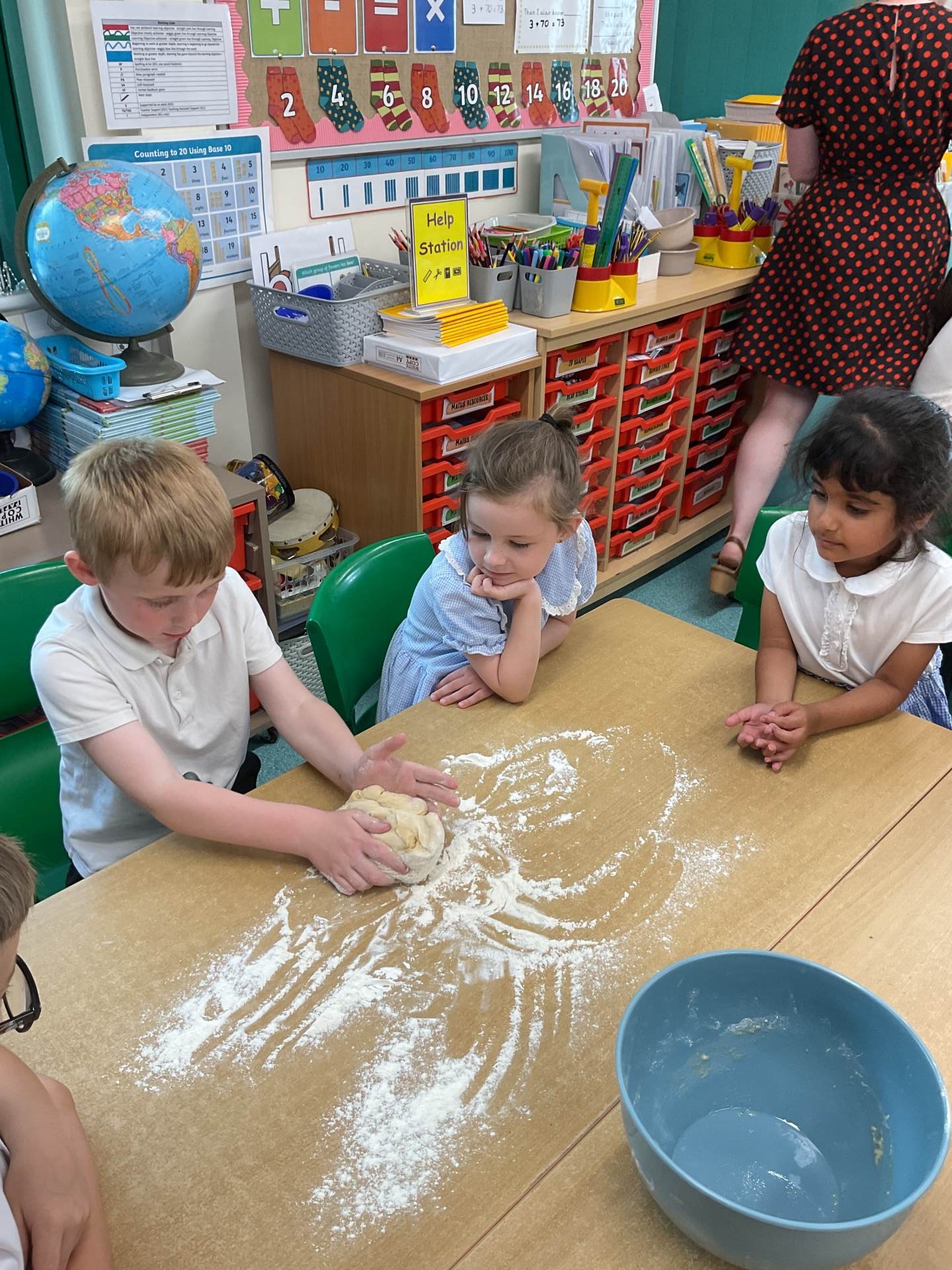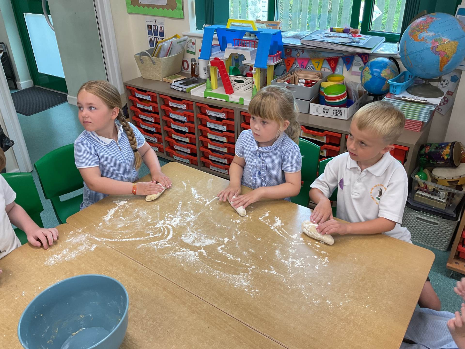 Today in Sparrow class we have made some Challah bread, as part of our Judaism unit of work. Challah bread is eaten as part of the Jewish Shabbat celebration. It is a special plaited loaf that is bought fresh on Friday mornings in preparation of Shabbat. Two loaves are always bought together. The loaves are covered with a special Challah cover, so they can't see the wine when it is blessed. Challah tastes much sweeter than normal bread. This reminds people that Shabbat is special.