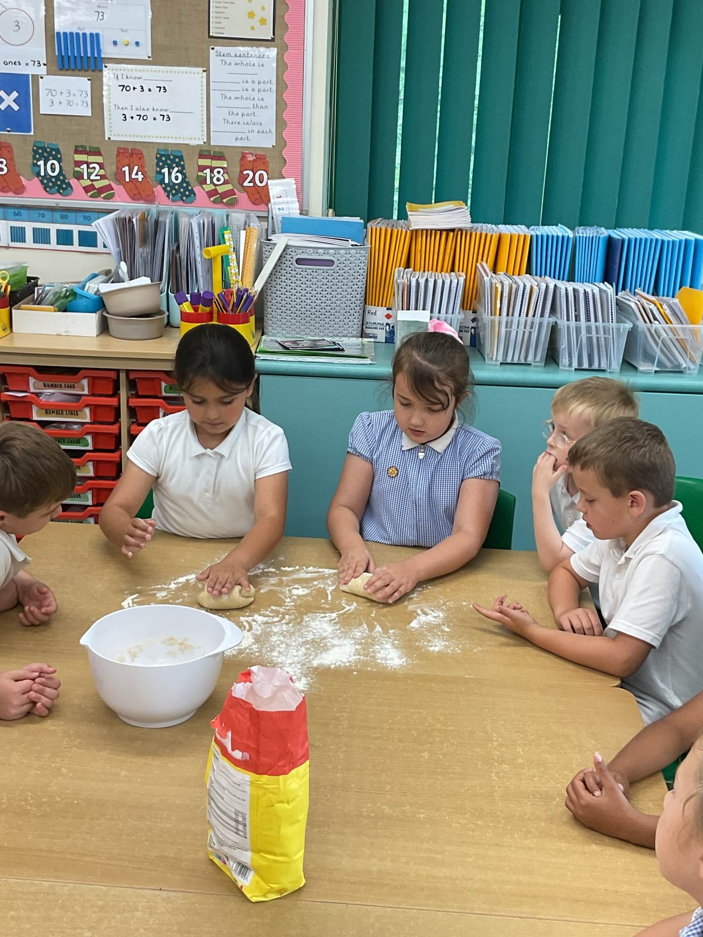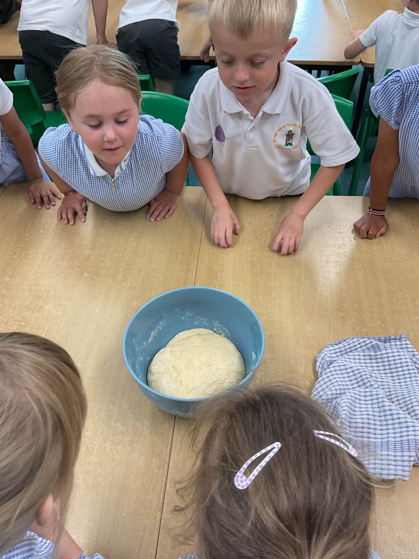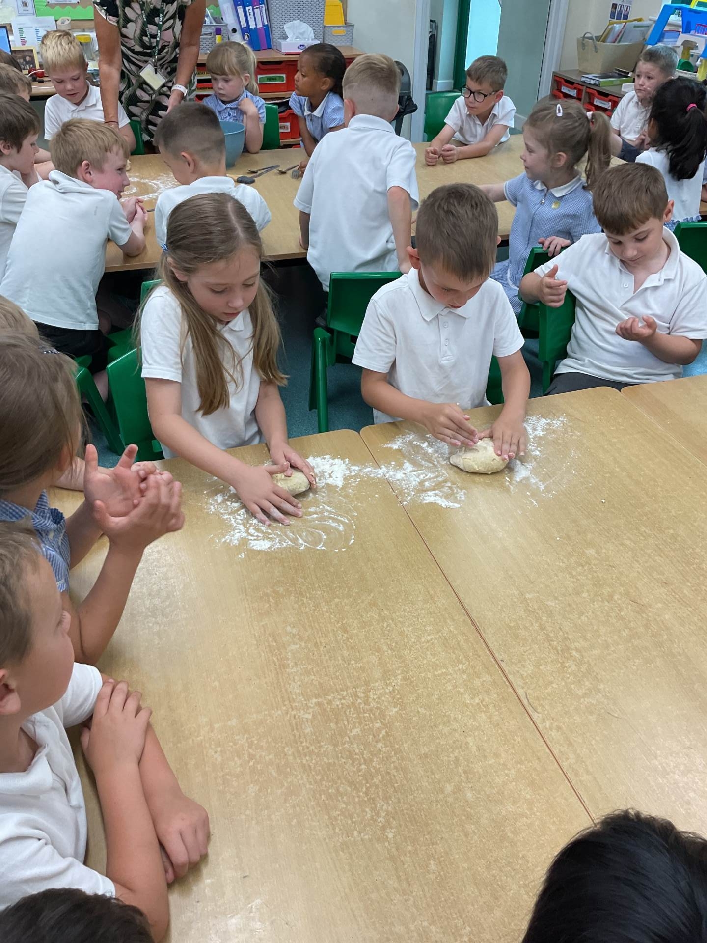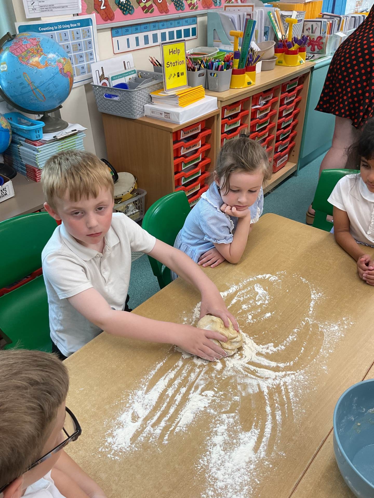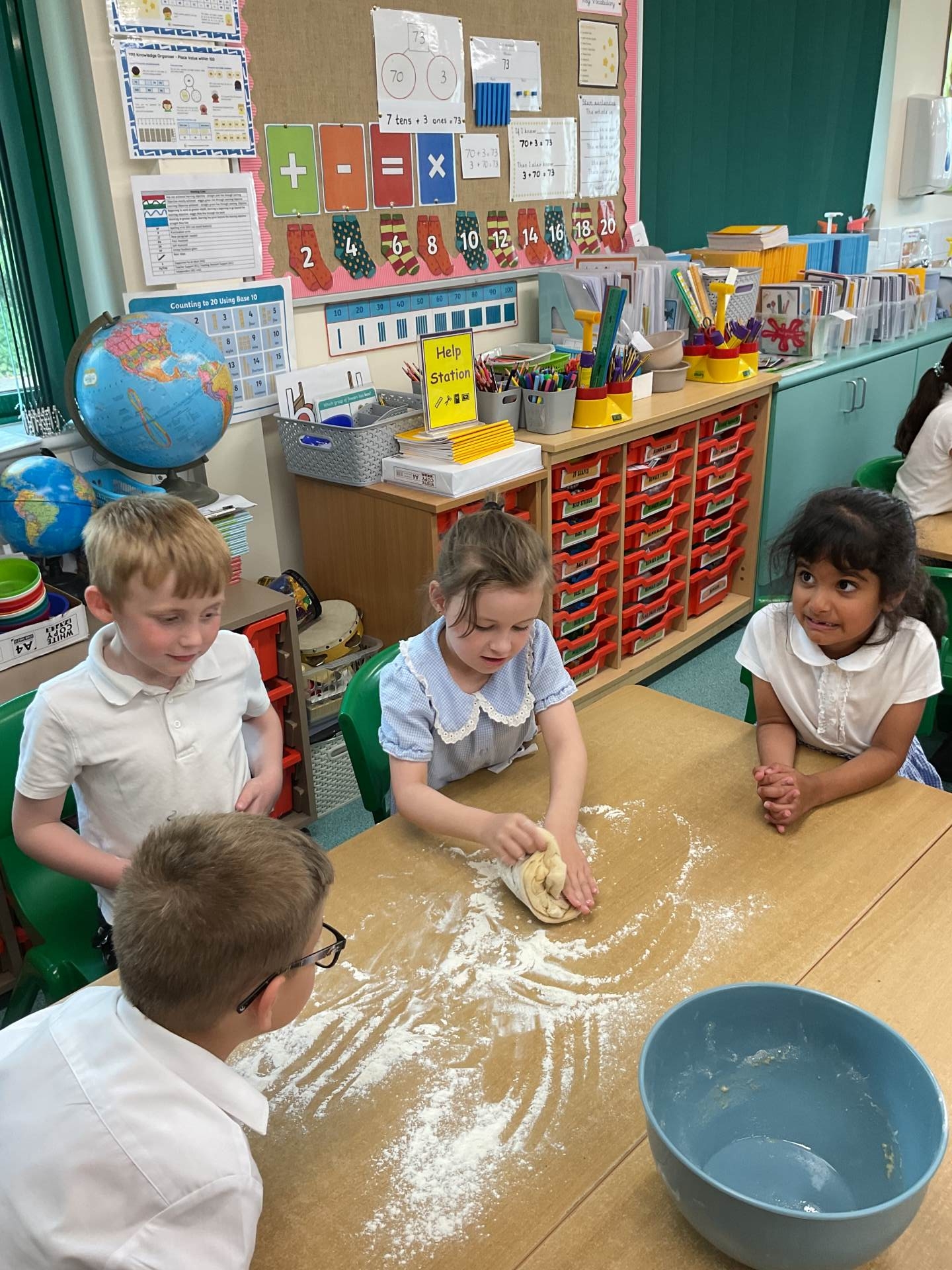 Today in Sparrow class we have made some Challah bread, as part of our Judaism unit of work. Challah bread is eaten as part of the Jewish Shabbat celebration. It is a special plaited loaf that is bought fresh on Friday mornings in preparation of Shabbat. Two loaves are always bought together. The loaves are covered with a special Challah cover, so they can't see the wine when it is blessed. Challah tastes much sweeter than normal bread. This reminds people that Shabbat is special.
