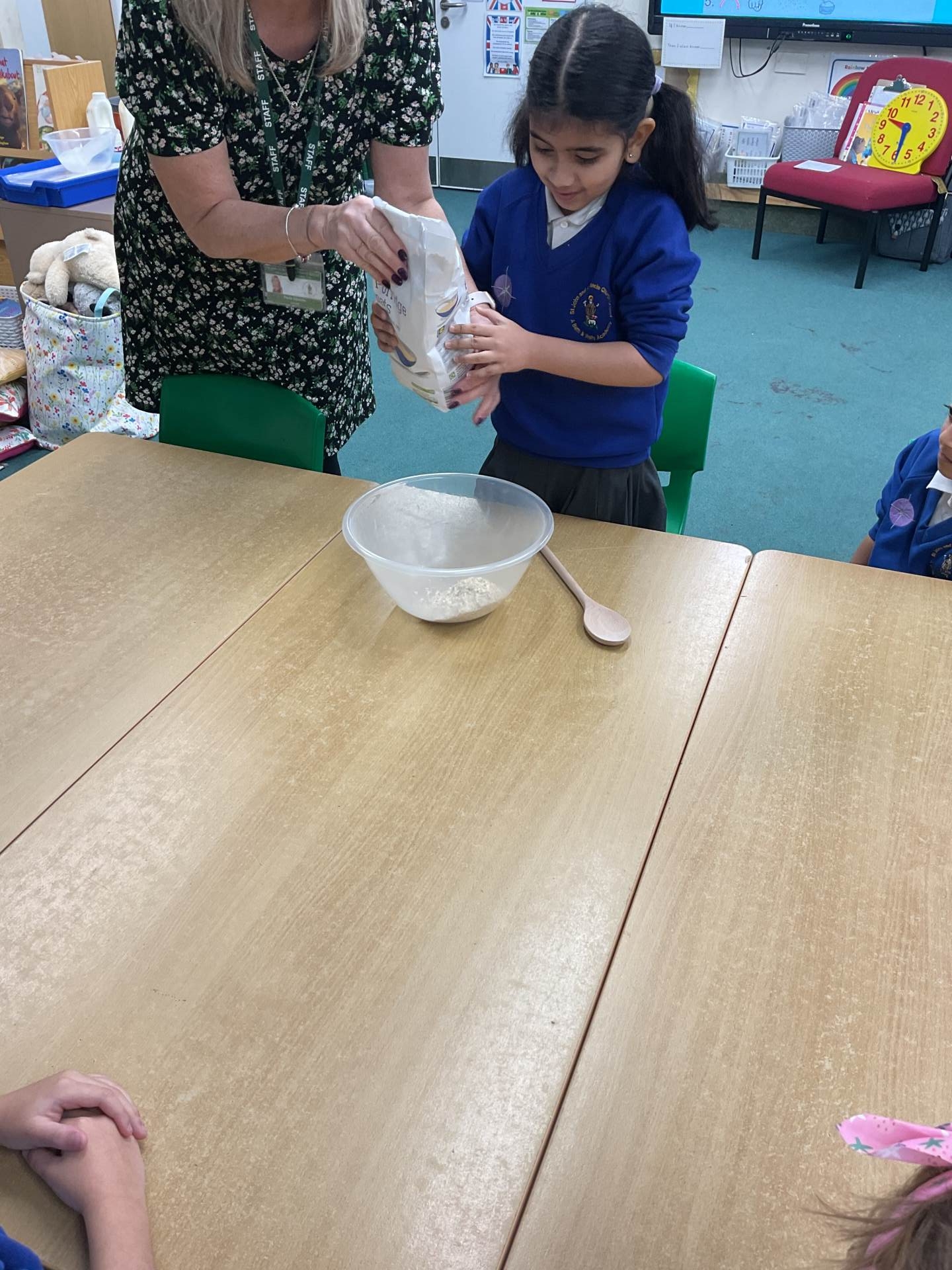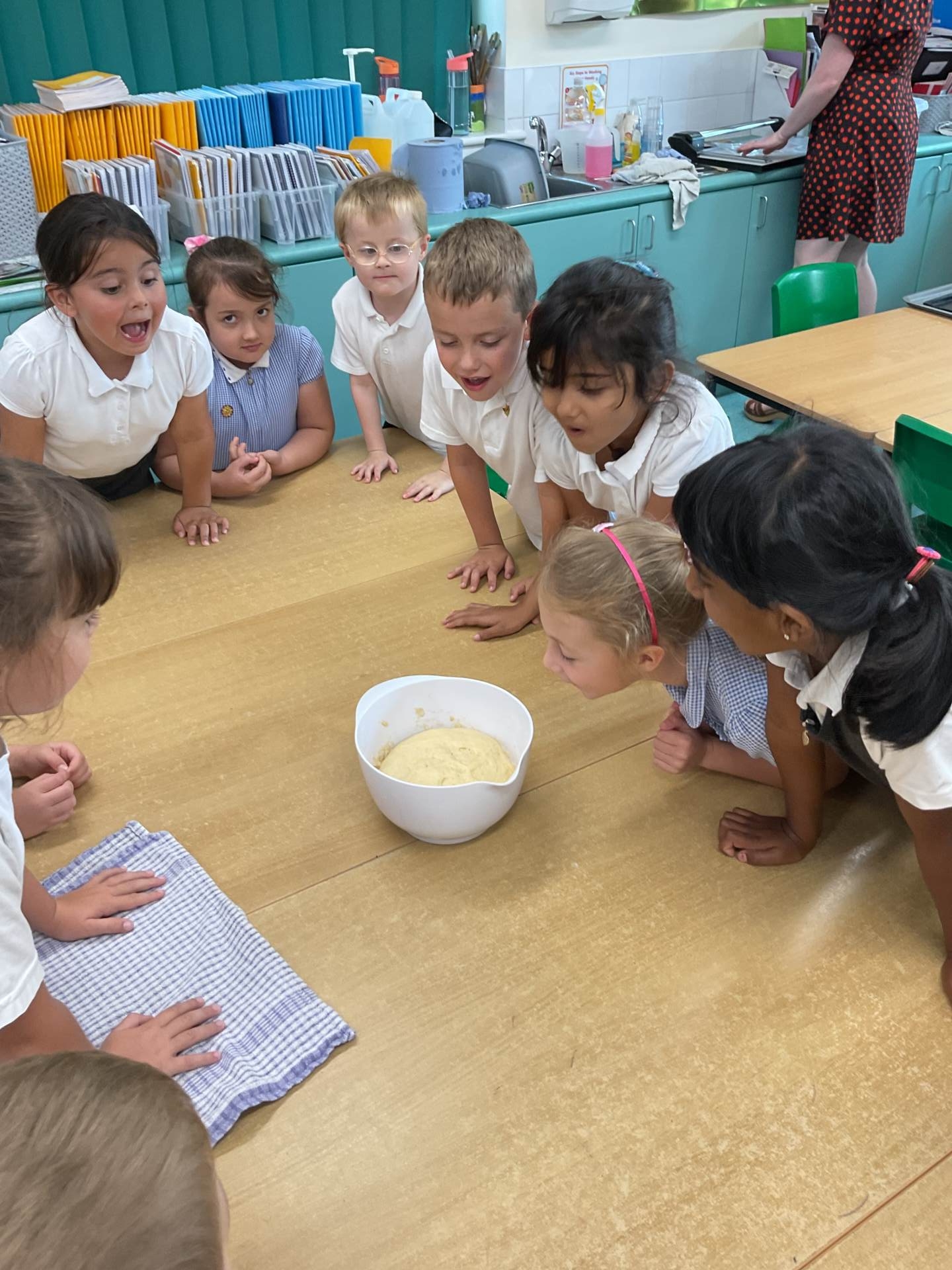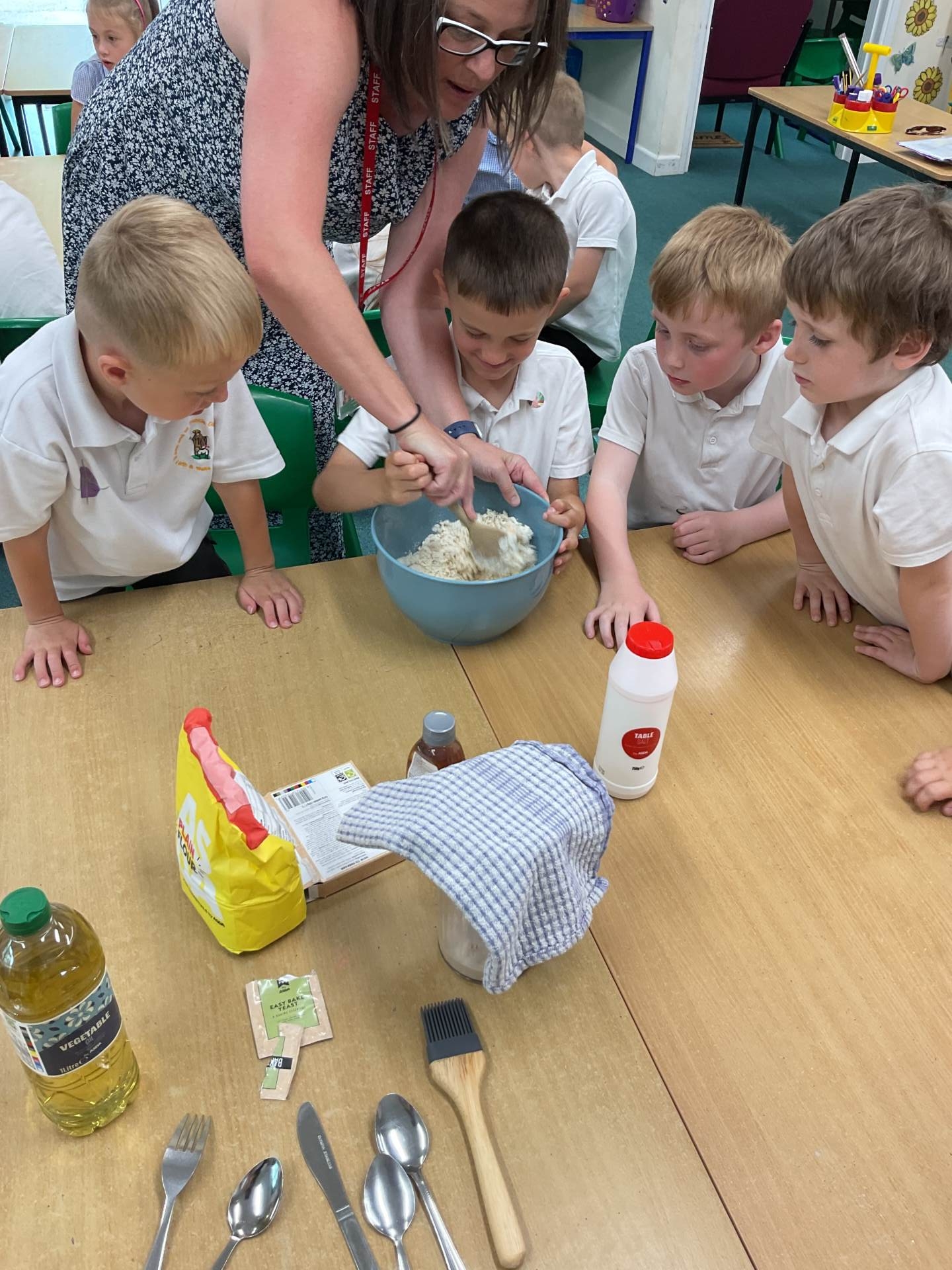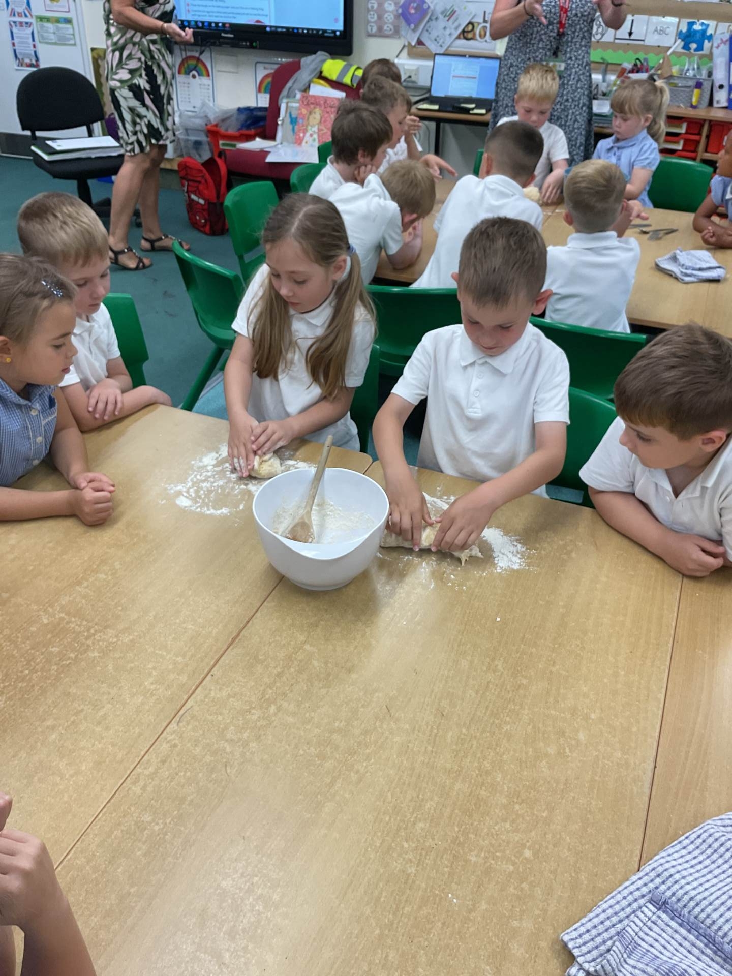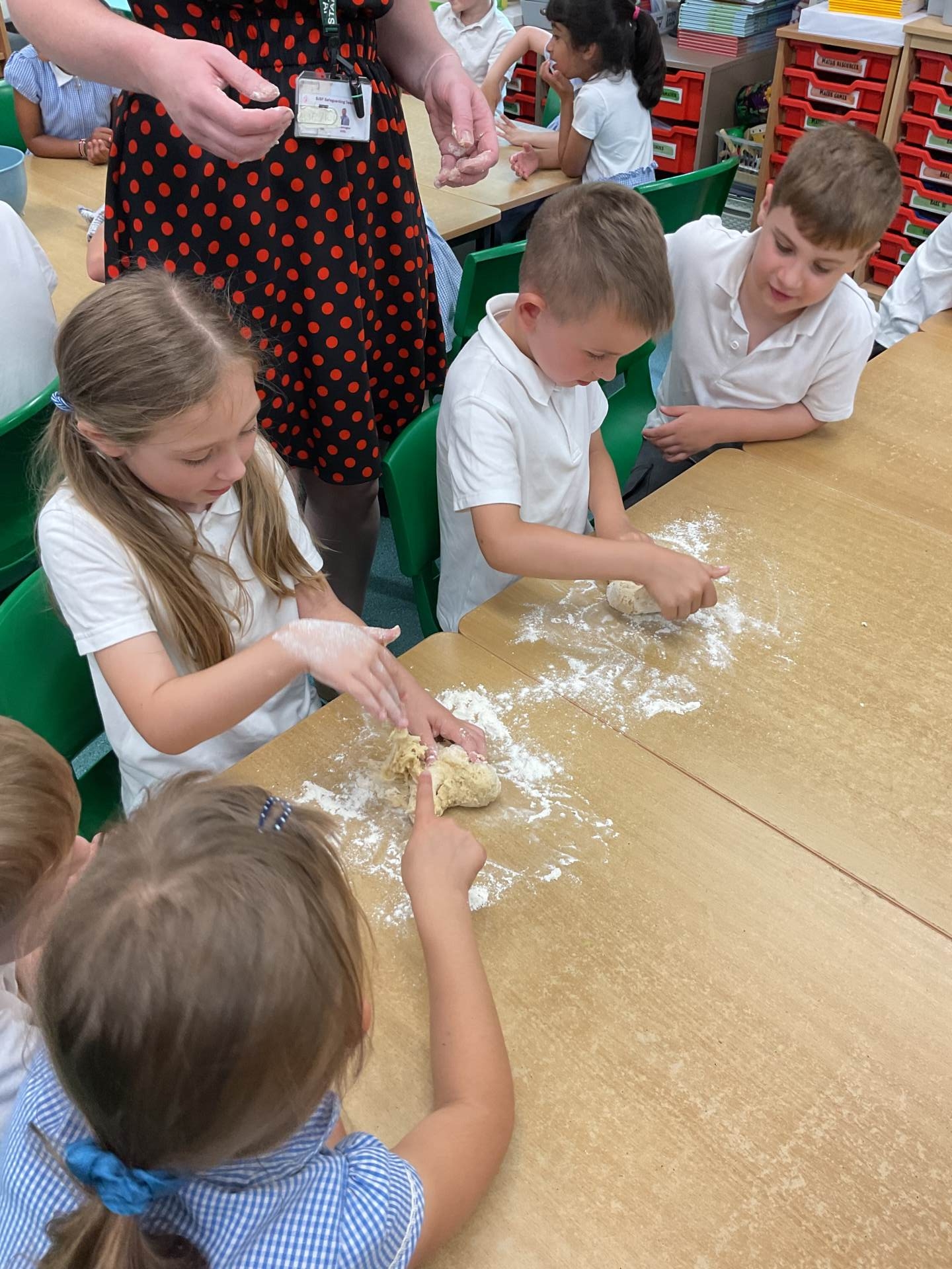 Today in Sparrow class we have made some Challah bread, as part of our Judaism unit of work. Challah bread is eaten as part of the Jewish Shabbat celebration. It is a special plaited loaf that is bought fresh on Friday mornings in preparation of Shabbat. Two loaves are always bought together. The loaves are covered with a special Challah cover, so they can't see the wine when it is blessed. Challah tastes much sweeter than normal bread. This reminds people that Shabbat is special.