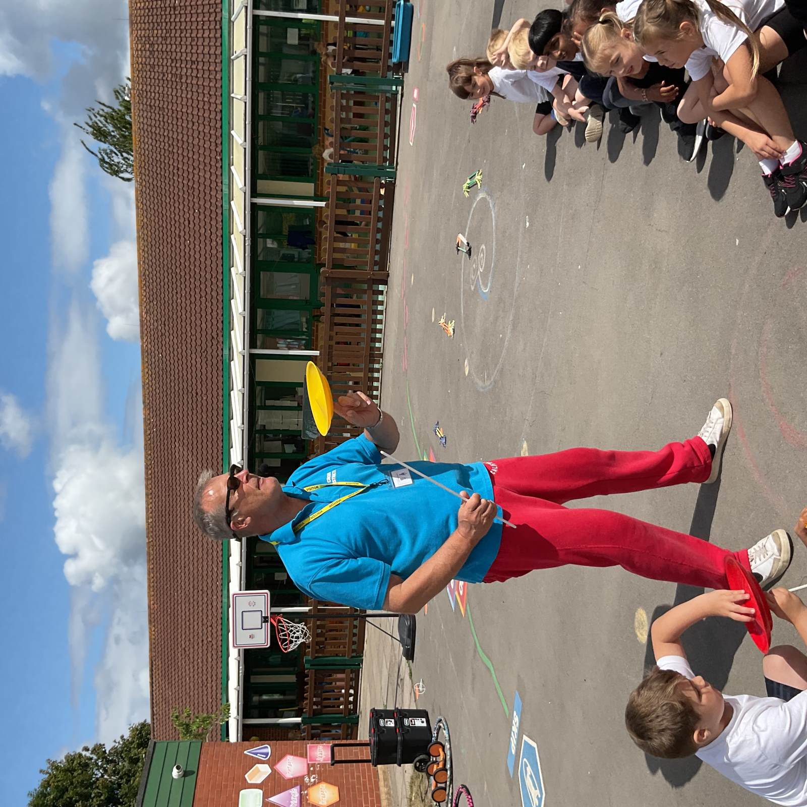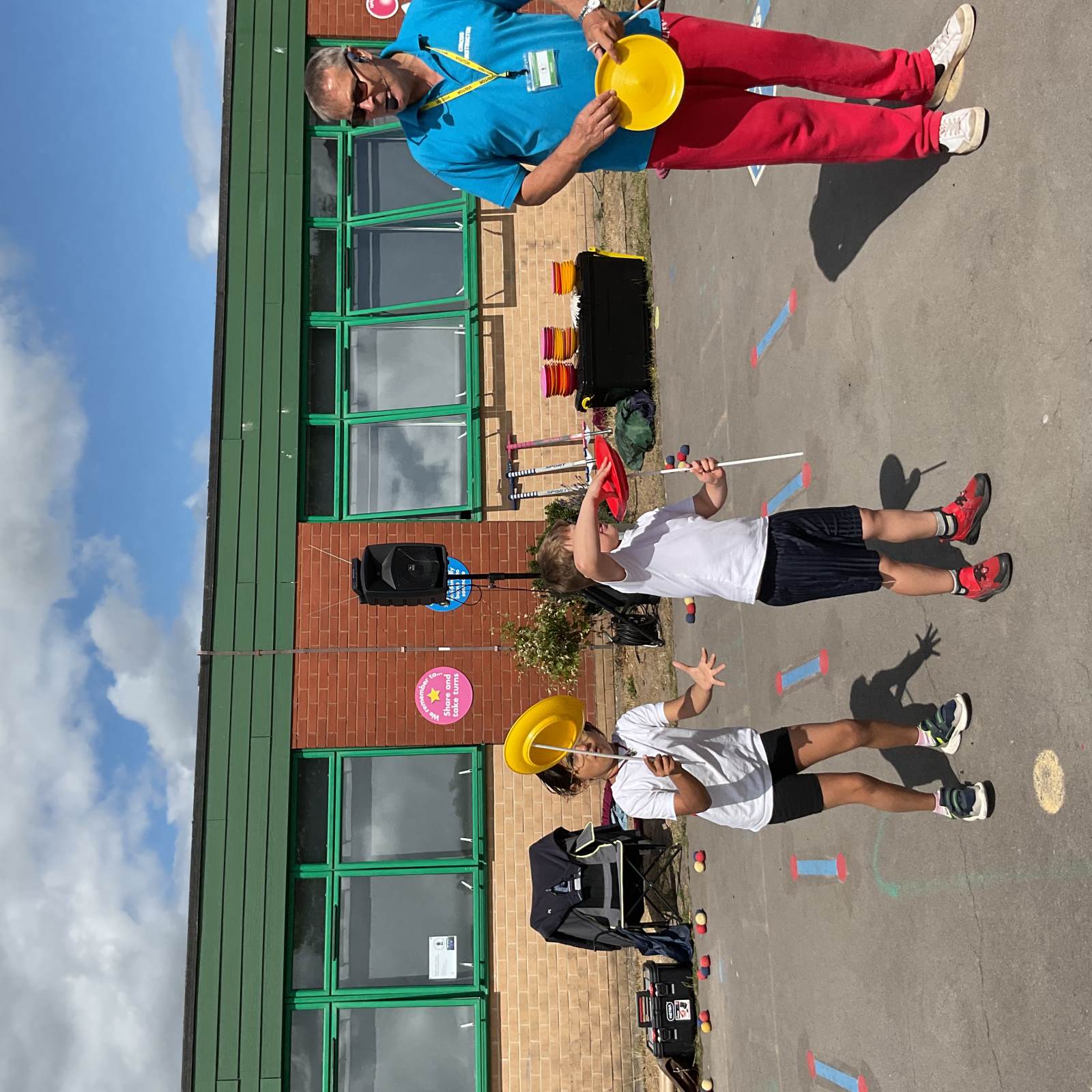 This morning we had our circus skills workshop with Steve. What a great session we had. We discovered we had some great circus skills amongst us Here are some pictures from our session.