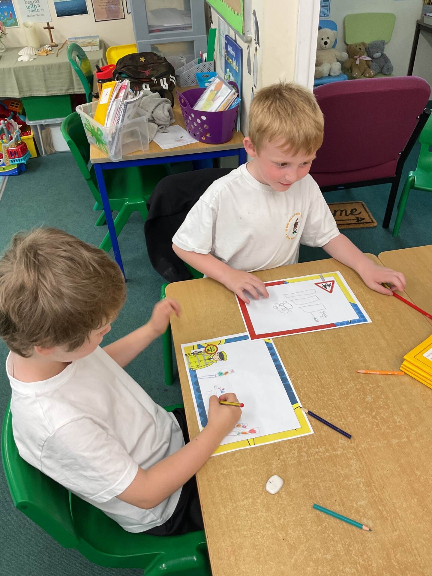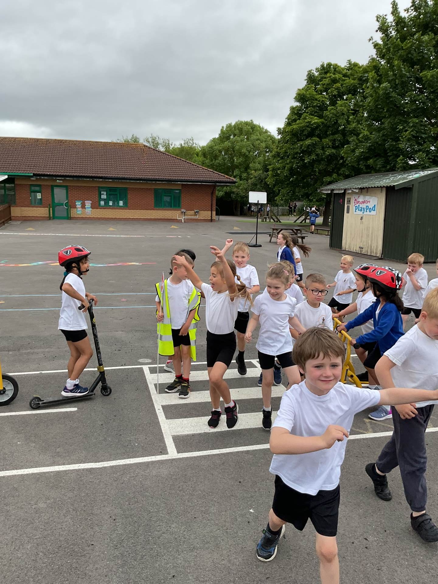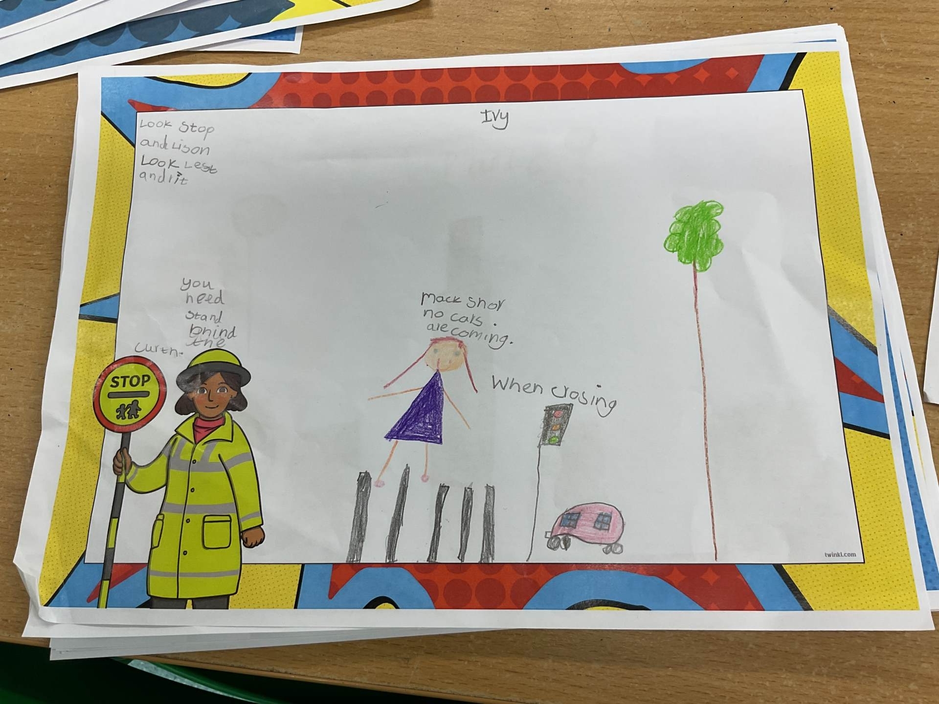 We have had another very busy active day in Health and Sports week. Today we learnt about the importance of keeping ourselves safe when using the roads. We took on the role of pedestrians, drivers and even the crossing patrol person. We then designed our own road safety posters.