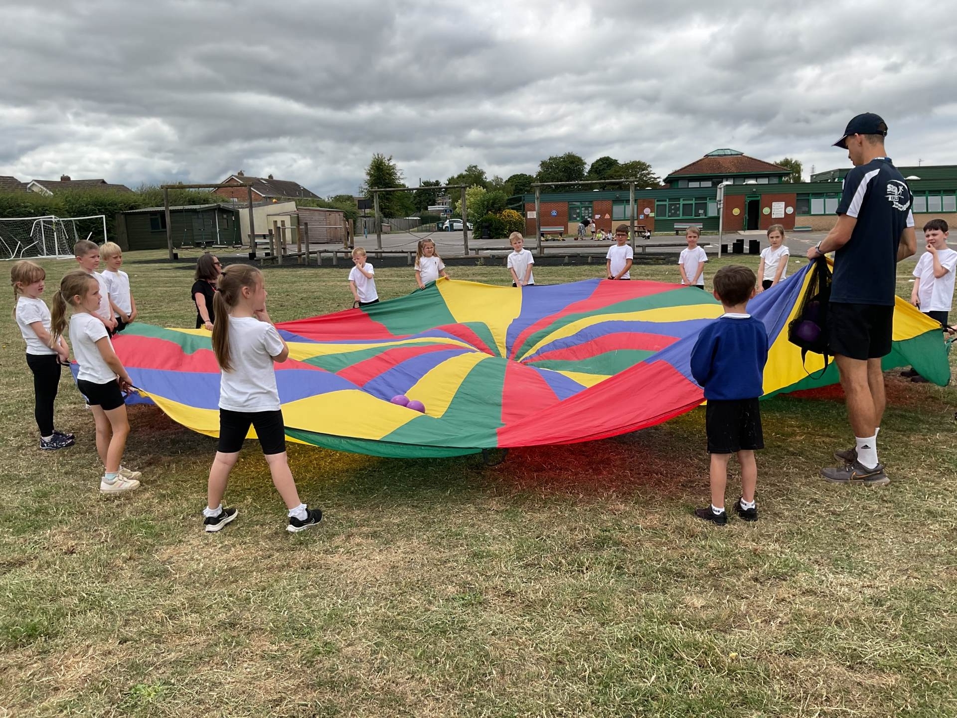 What a busy day we have had today engaging in lots of physical activities. We played a range of parachute games with Mr Butt, Tag rugby with Mrs Leach, had a very relaxing yoga session with Mrs Marriott, learnt to skip with Mrs Hart, engaged in a range of playground games with Mrs Curtis and finally had a tennis lesson with Mrs Edwards. Just wow! I am sure that we will all sleep well this evening. Here are some pictures from our very busy day.