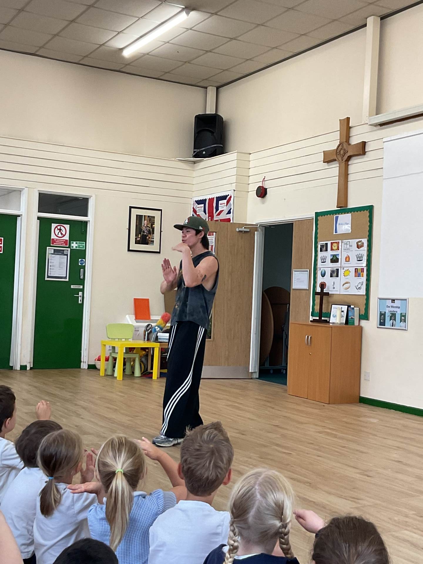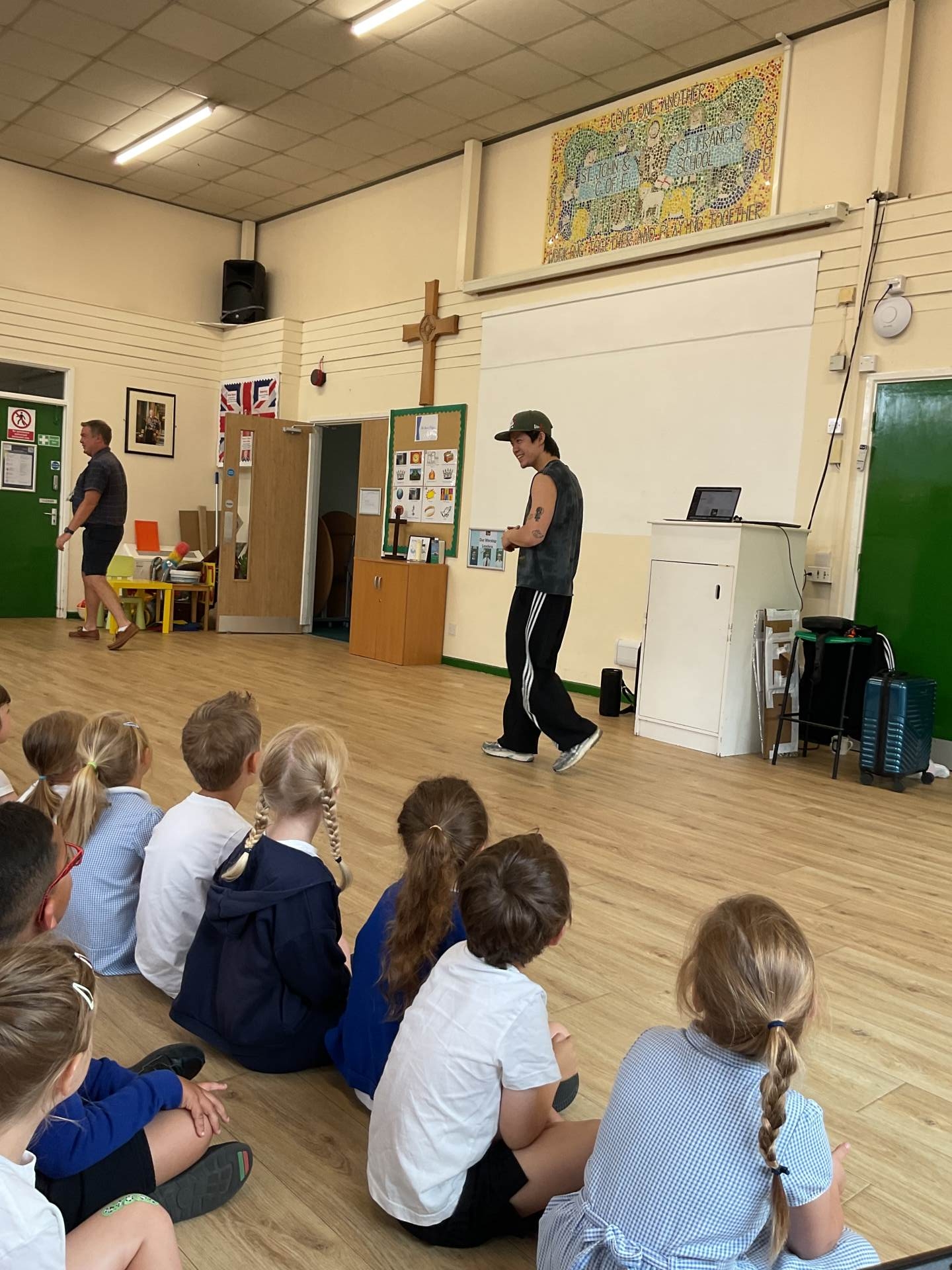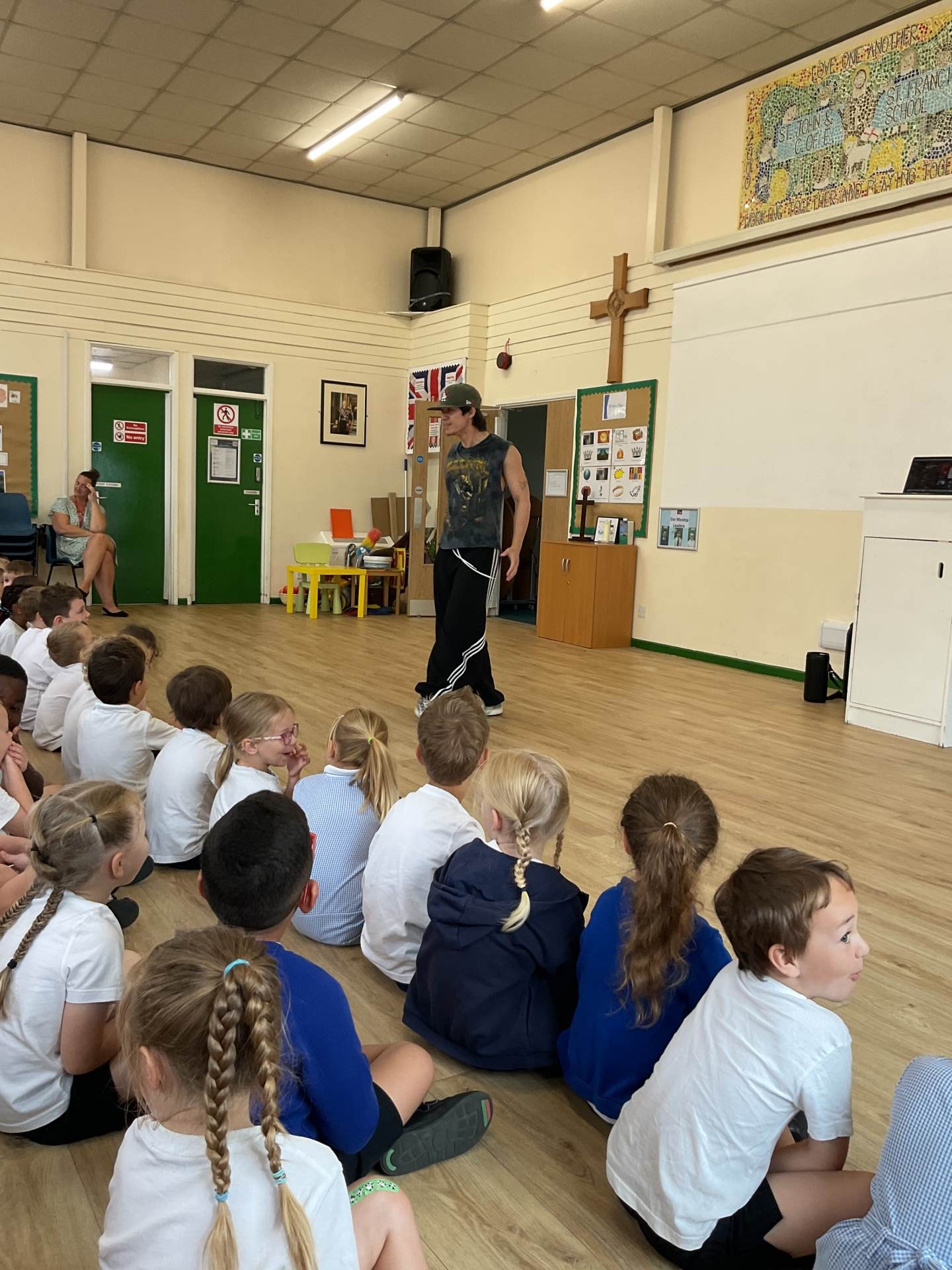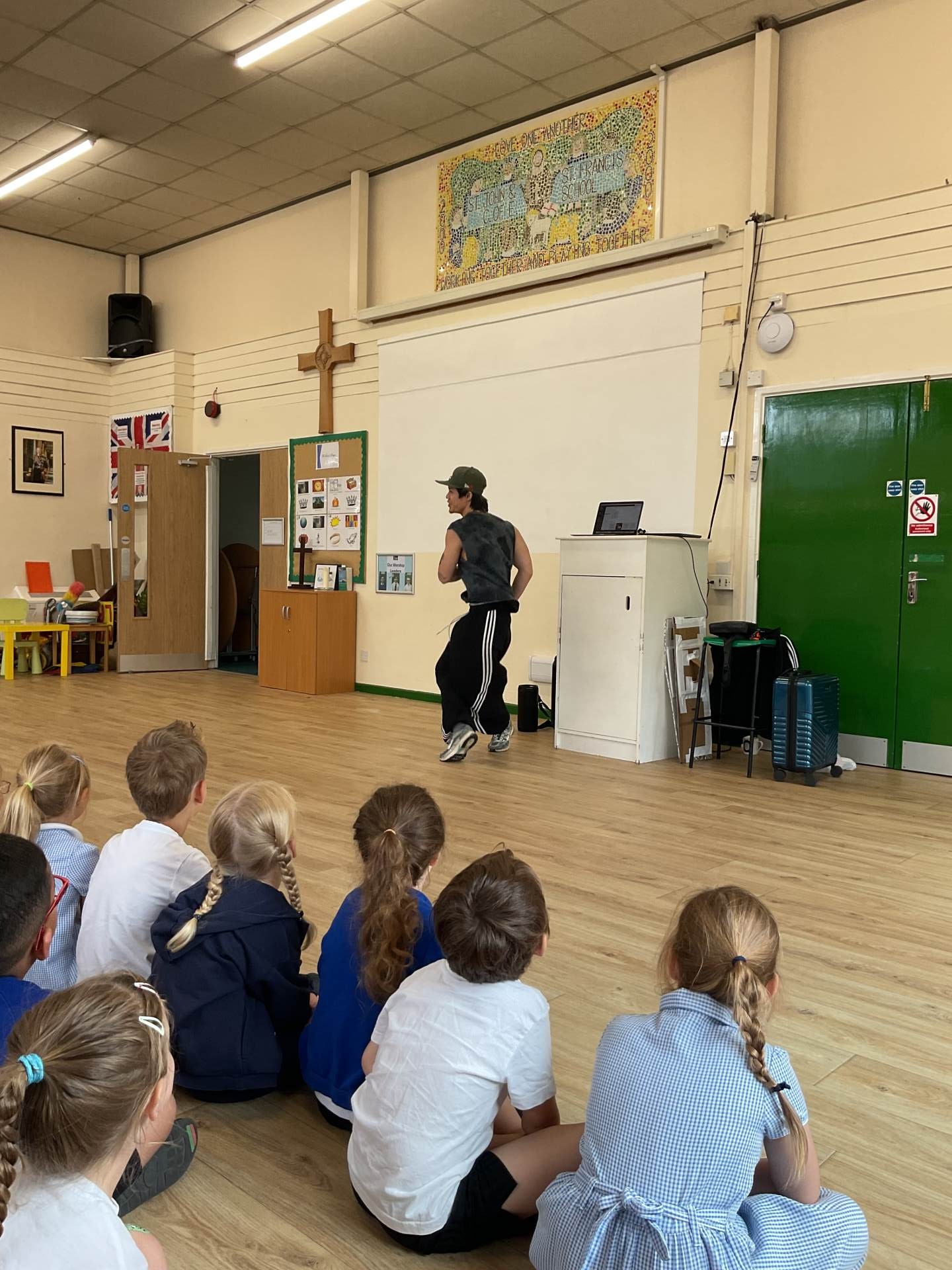 What an amazing session we had with Kieran today. He is a professional Street dancer. He has met Ant and Dec and danced in front of Simon Cowell on Britain's Got Talent. Here are some pictures from our KS1 assembly and our session this morning.