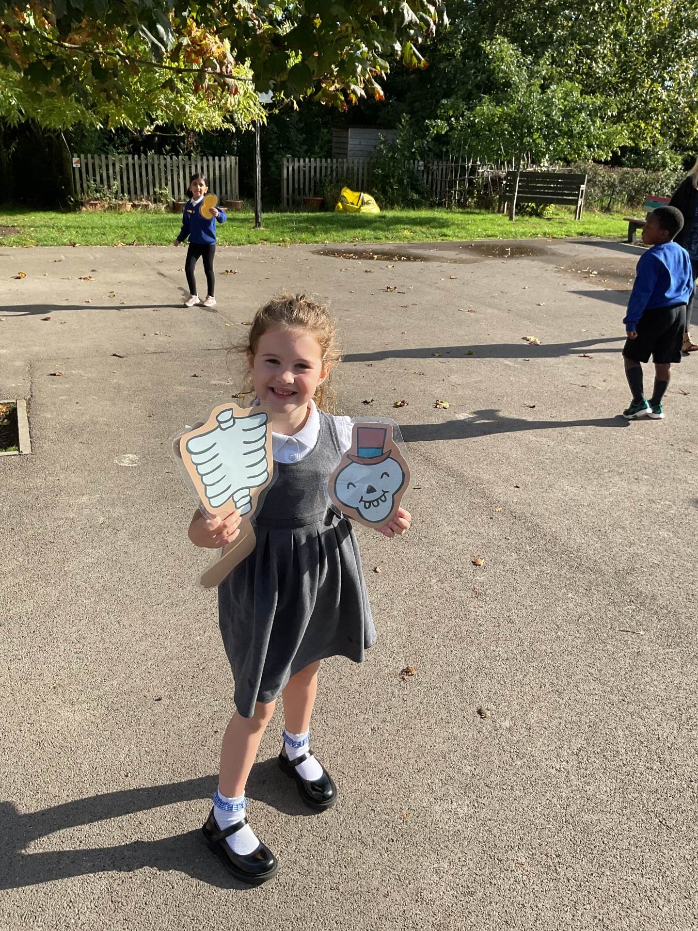 After that, we heard a story about skeletons, it was called Funnybones and was written by Janet and Allen Ahlberg. It was funny!