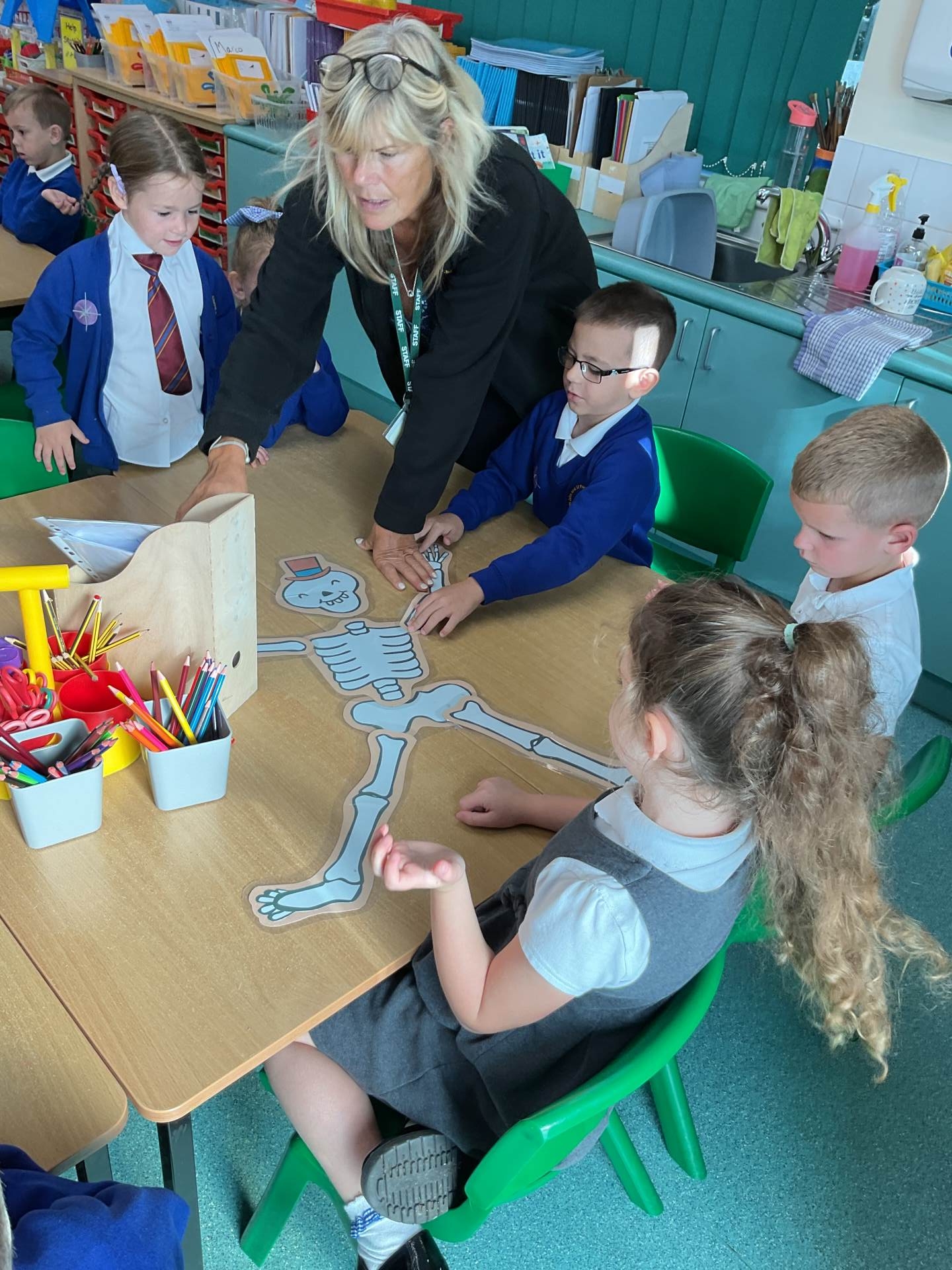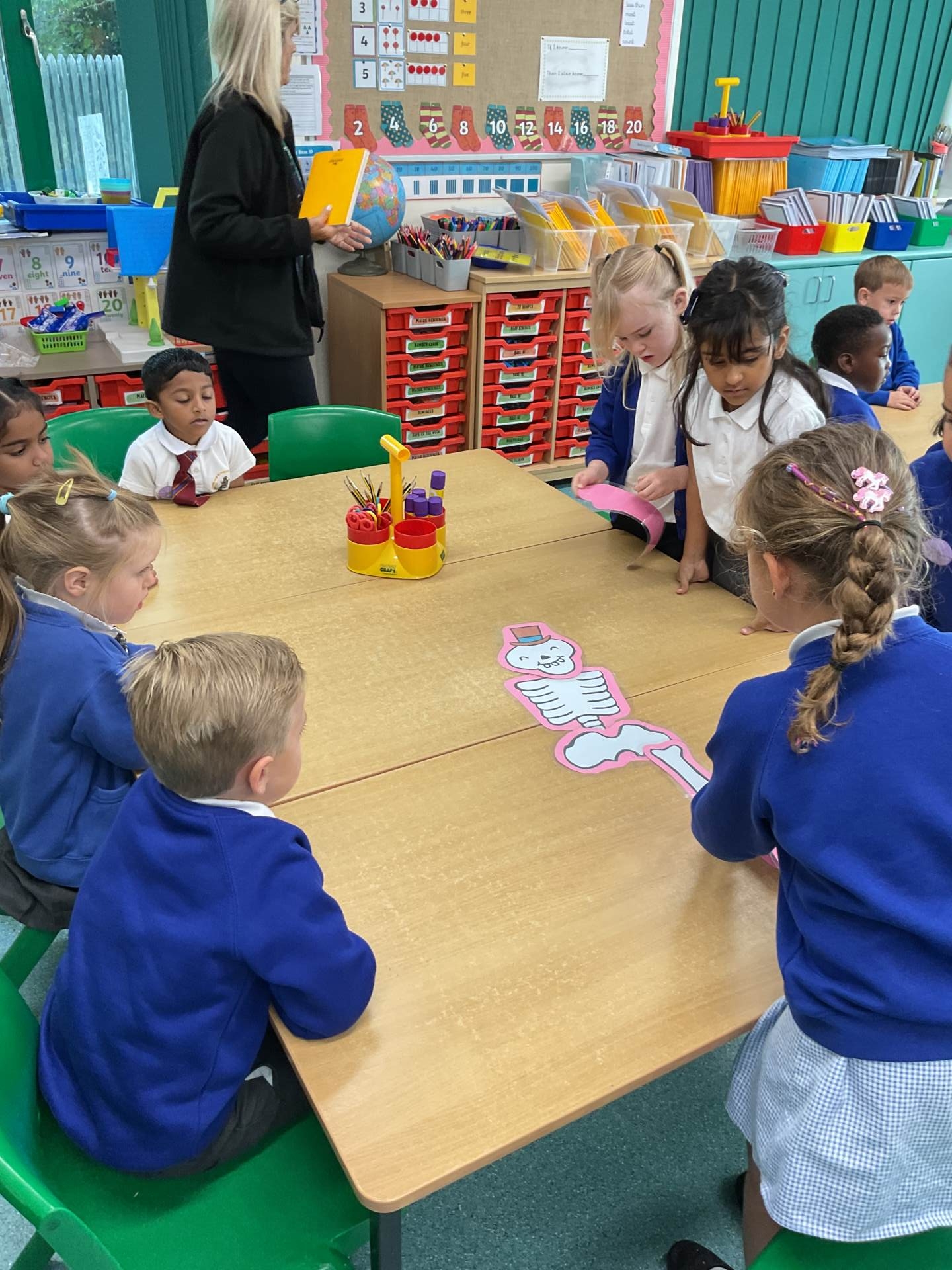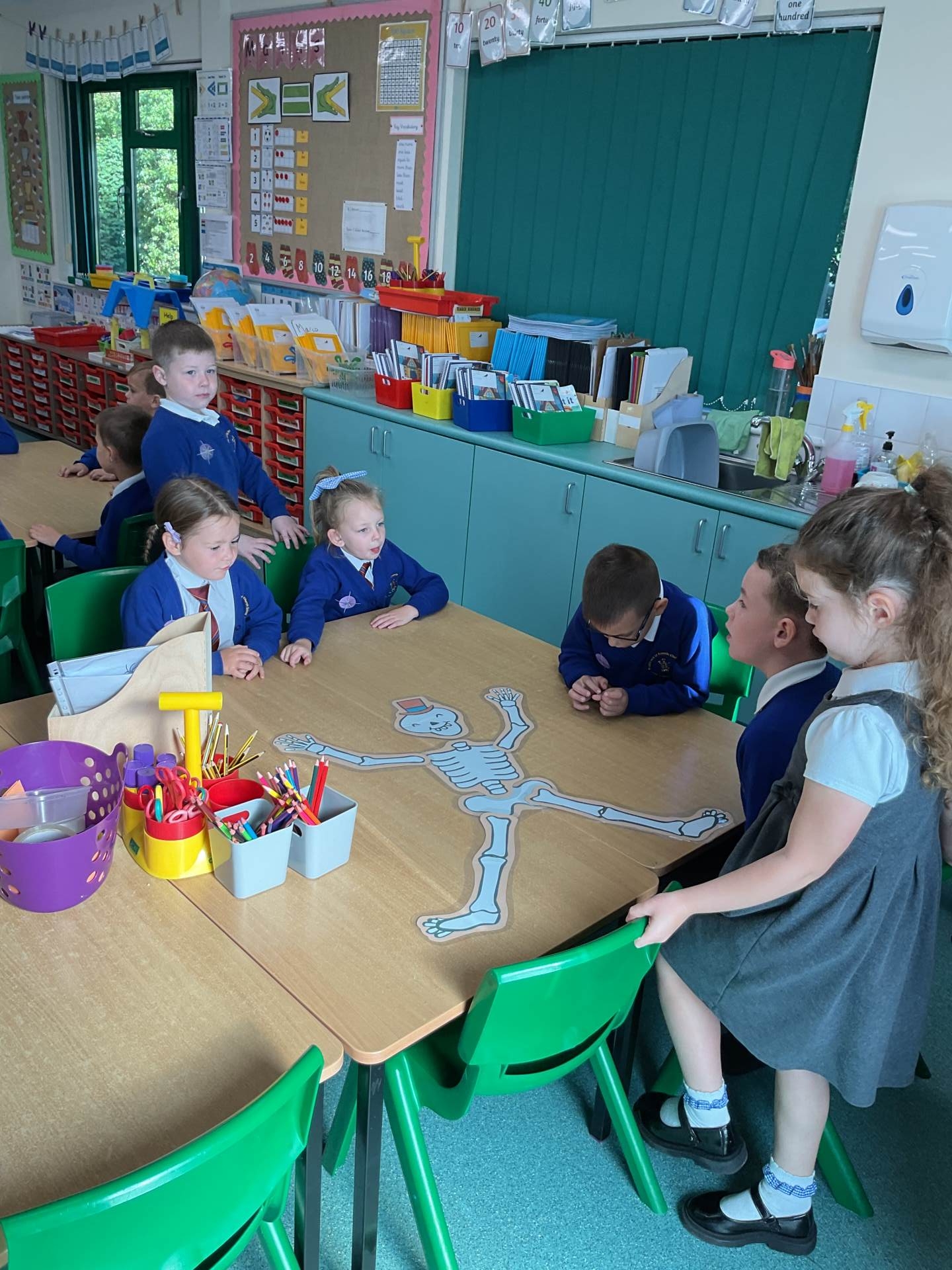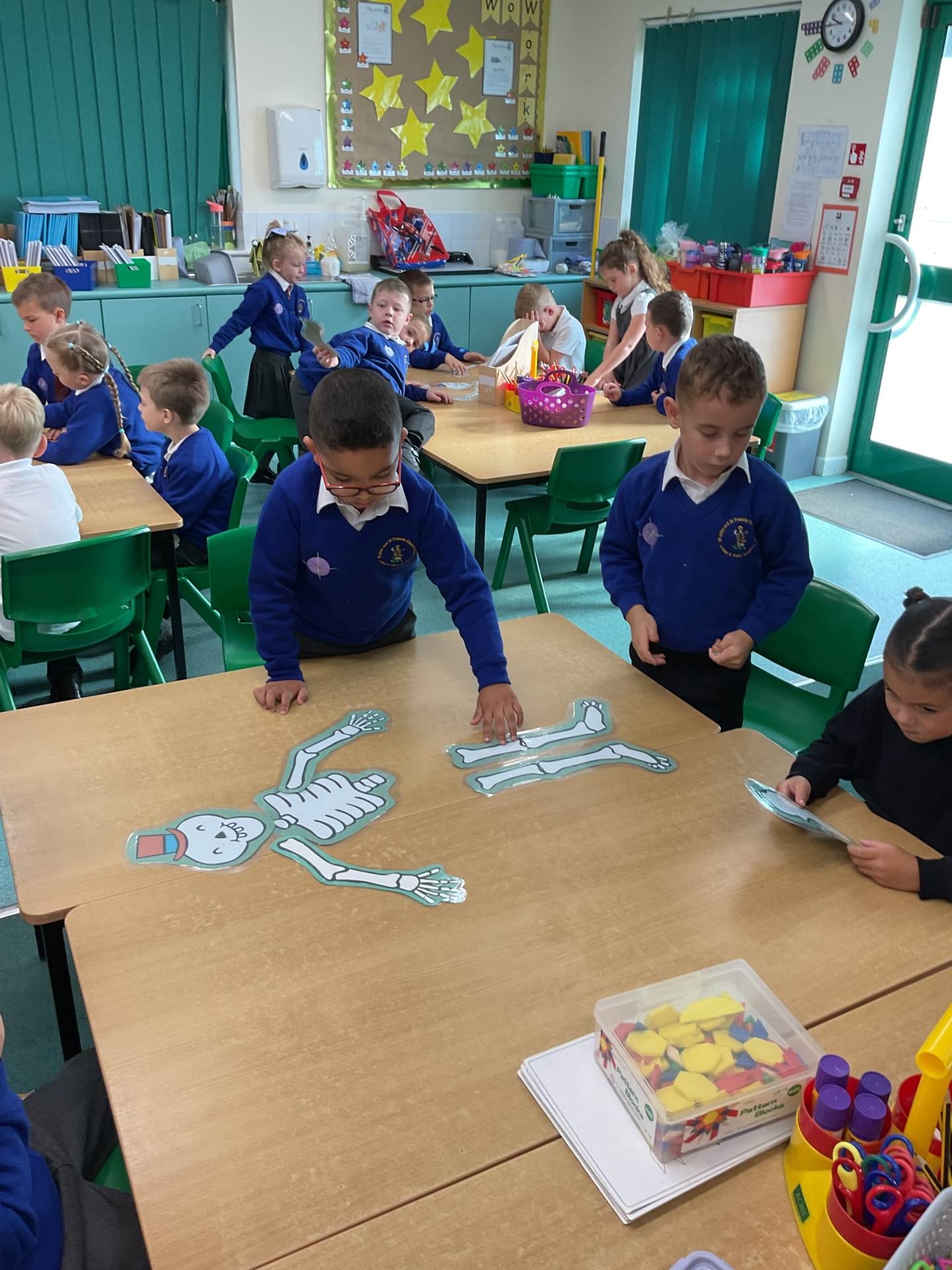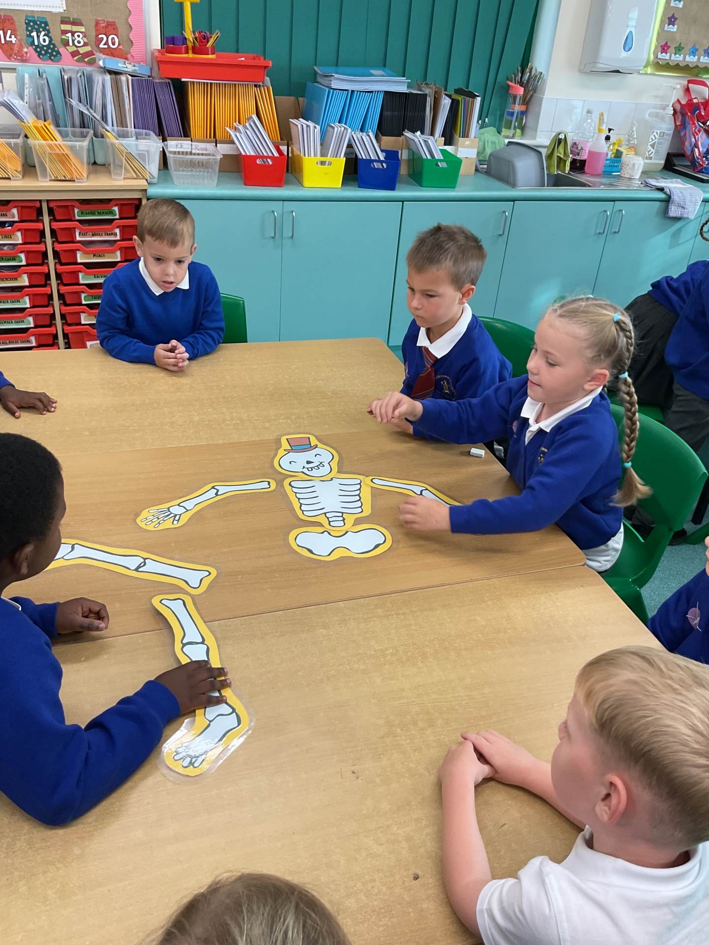 We worked in groups to hunt for the parts of Dave and his friends and put their skeletons together again.