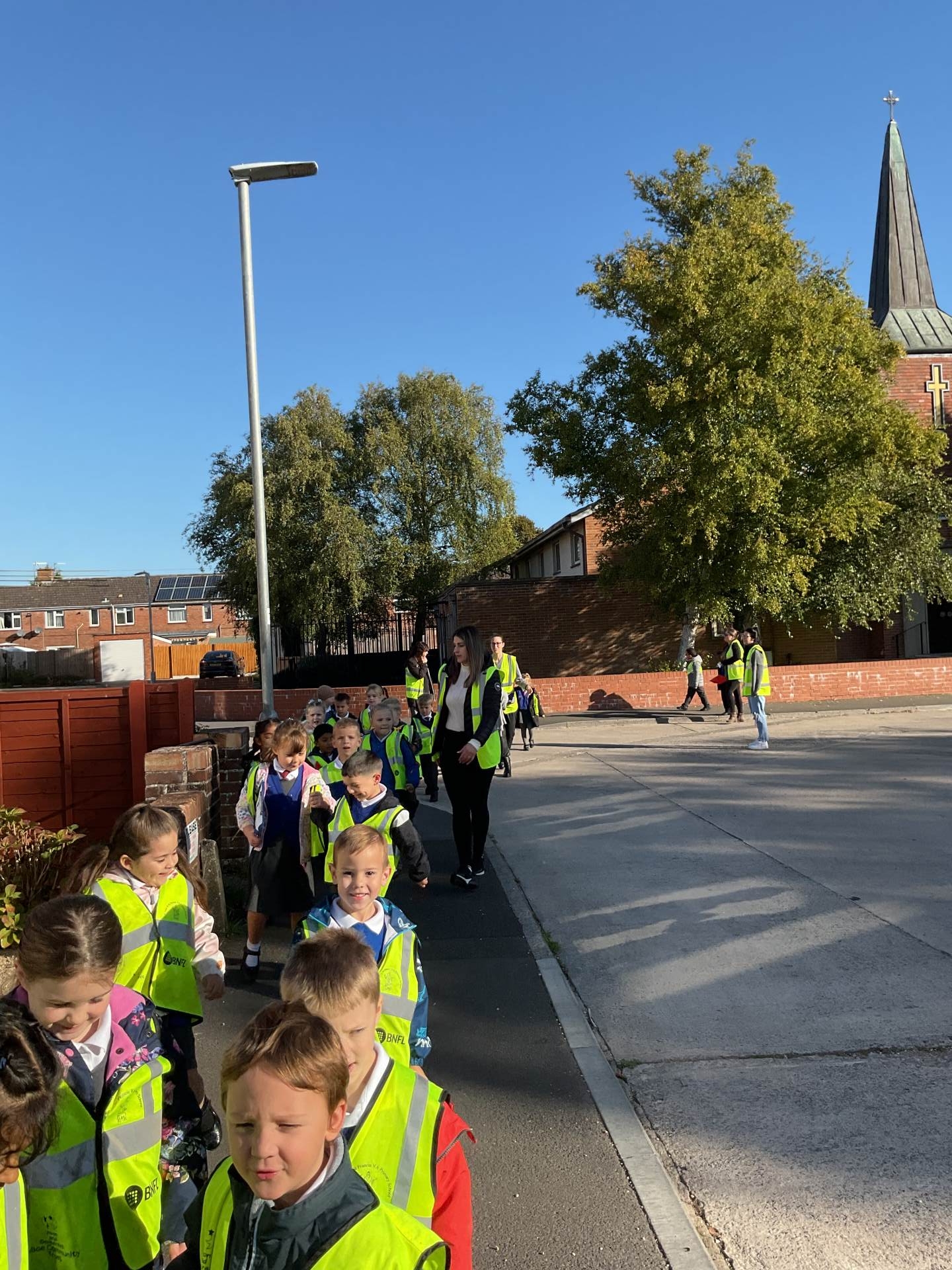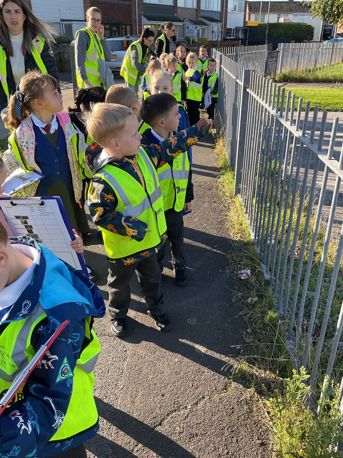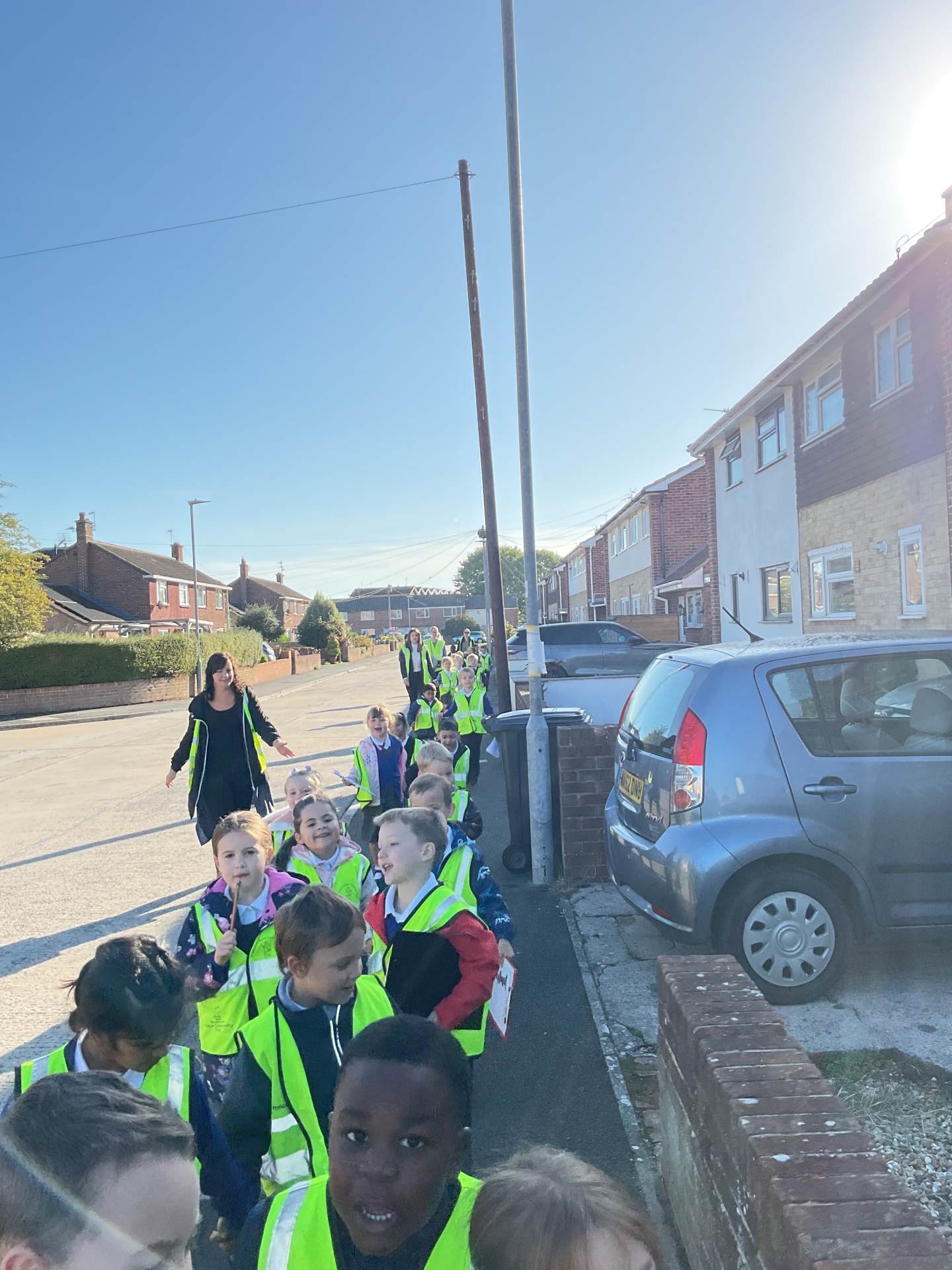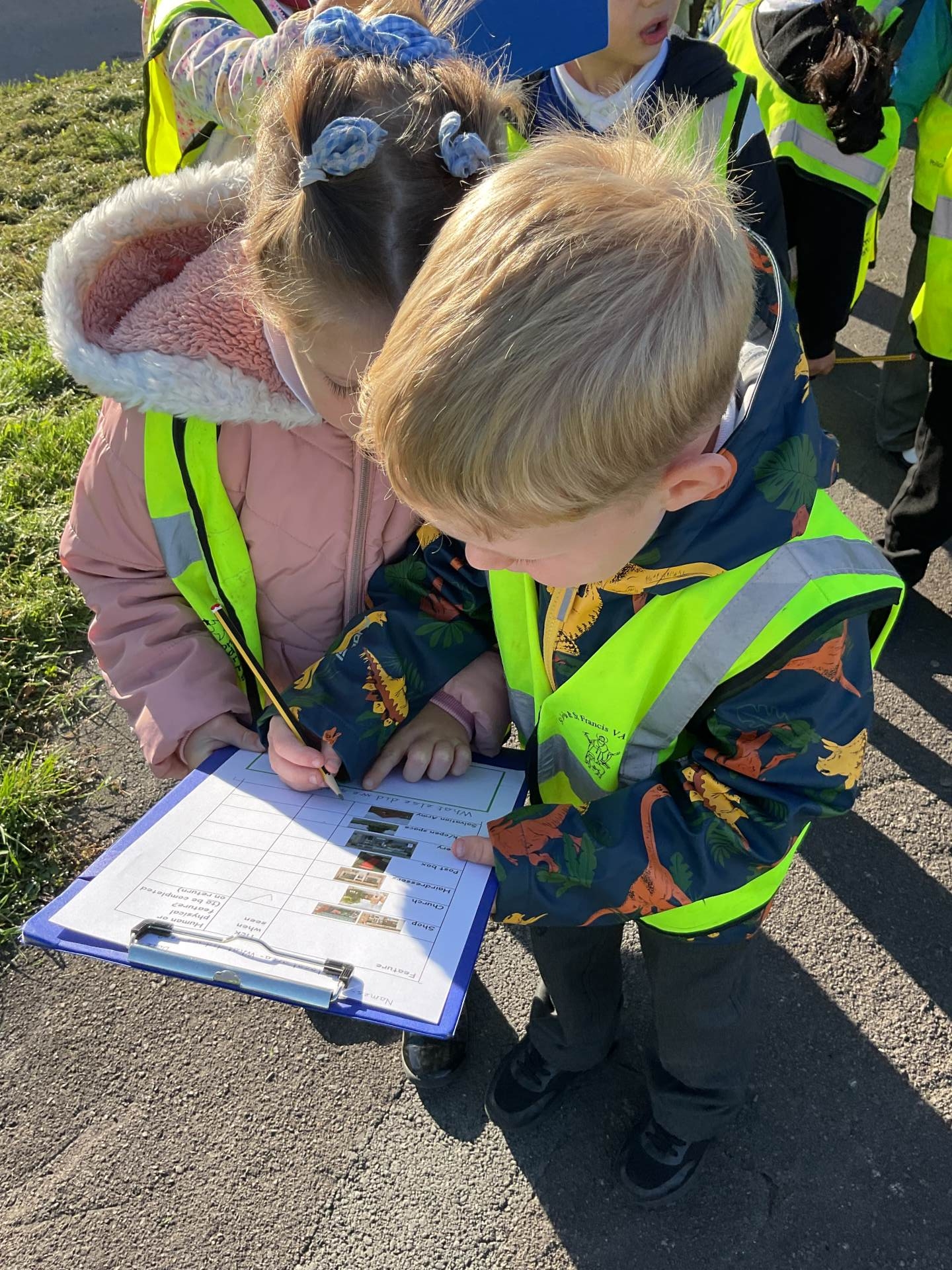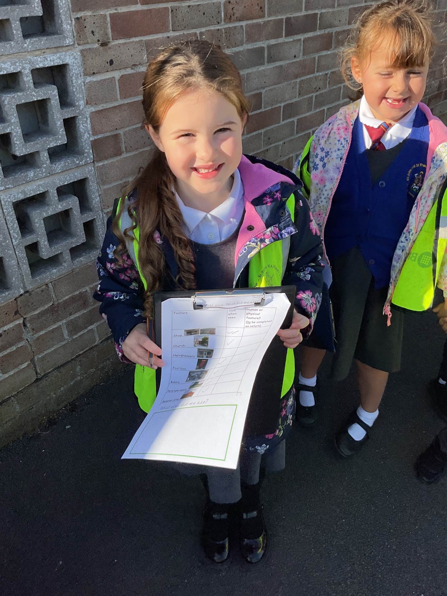 This morning we went for a walk in our local area to see what features were around our school. We had our clipboards with some pictures of things to look out for. whilst we were on our journey. We were very lucky the sun was shining and it was nice and warm. We saw a hairdressers shop, a post box, the Salvation Army and St Francis Church and some other shops whilst we were out and about. Here are some pictures from our local walk.