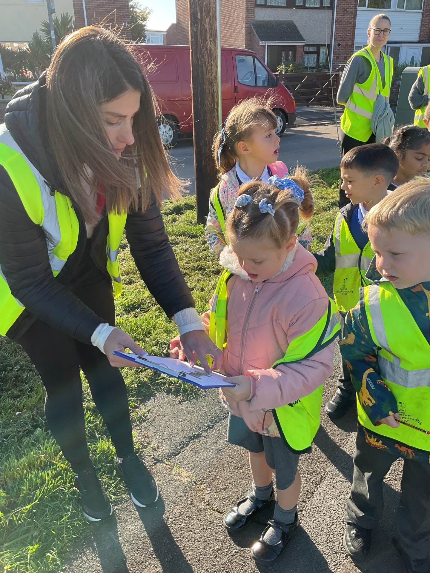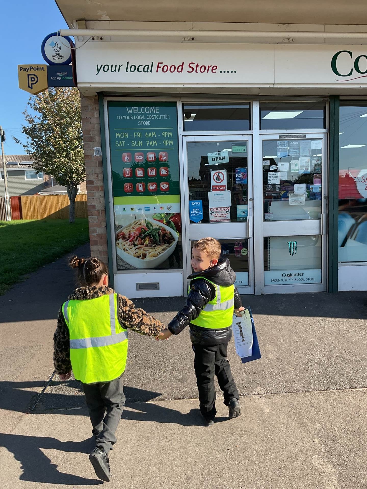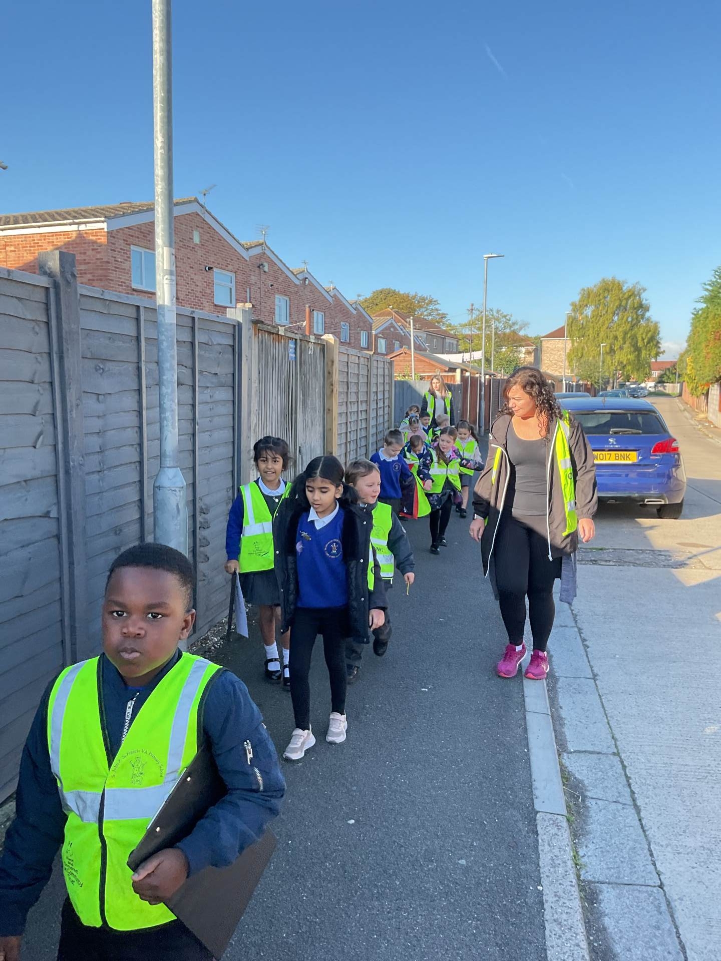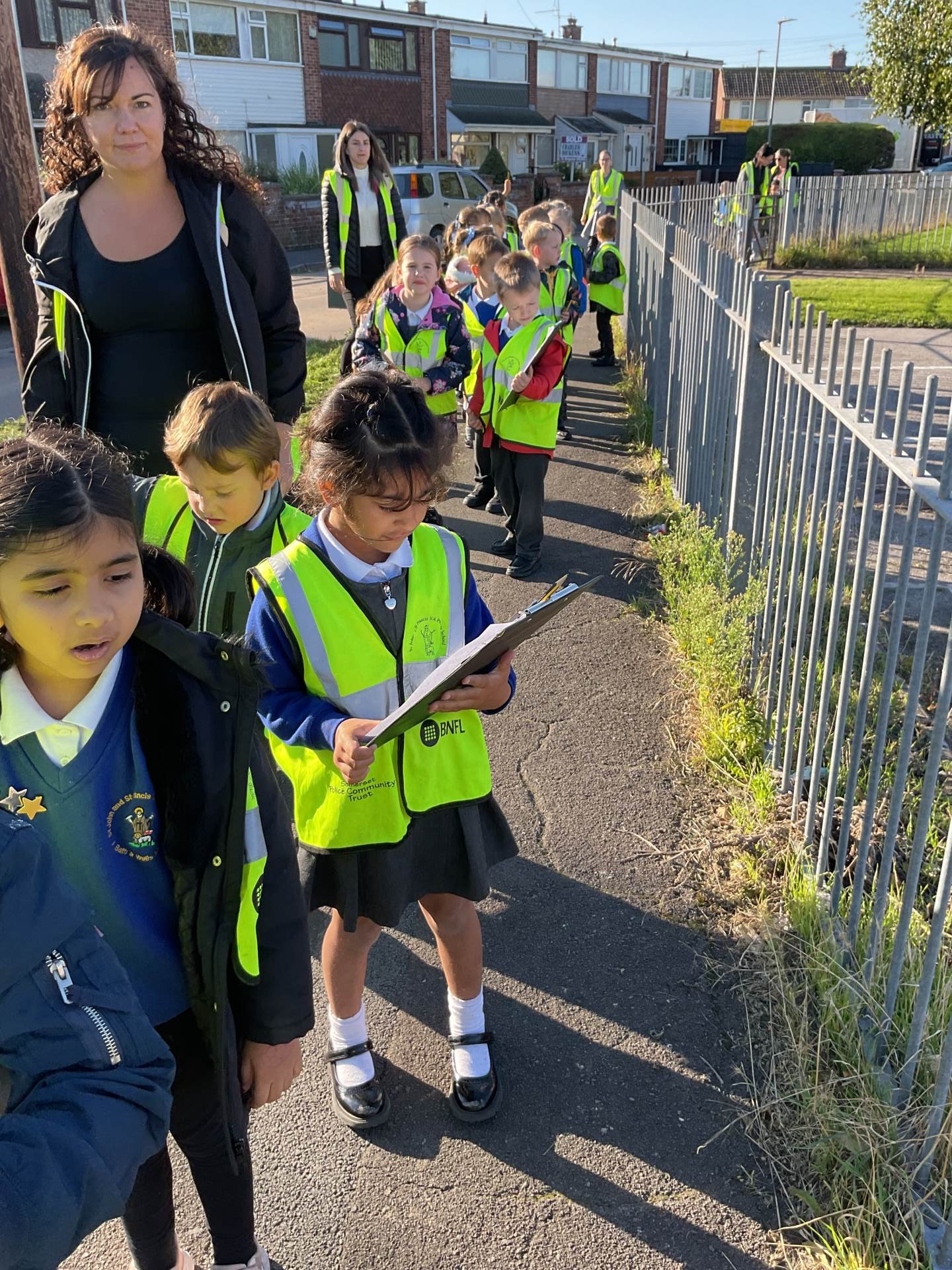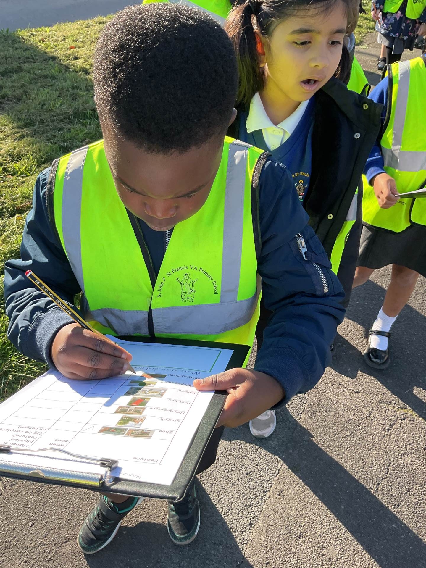 This morning we went for a walk in our local area to see what features were around our school. We had our clipboards with some pictures of things to look out for. whilst we were on our journey. We were very lucky the sun was shining and it was nice and warm. We saw a hairdressers shop, a post box, the Salvation Army and St Francis Church and some other shops whilst we were out and about. Here are some pictures from our local walk.