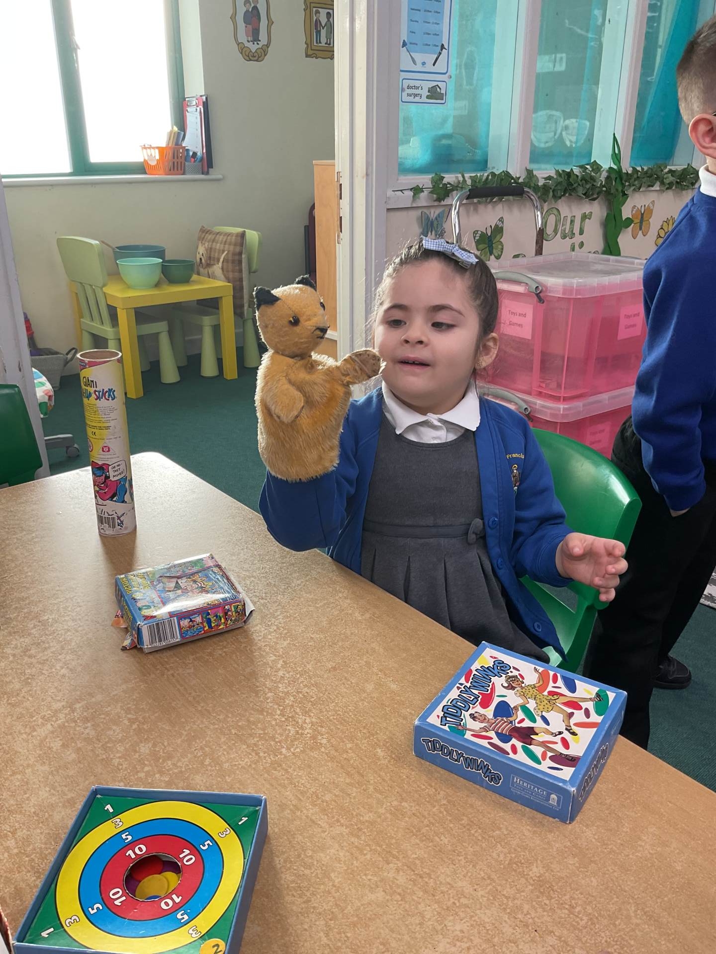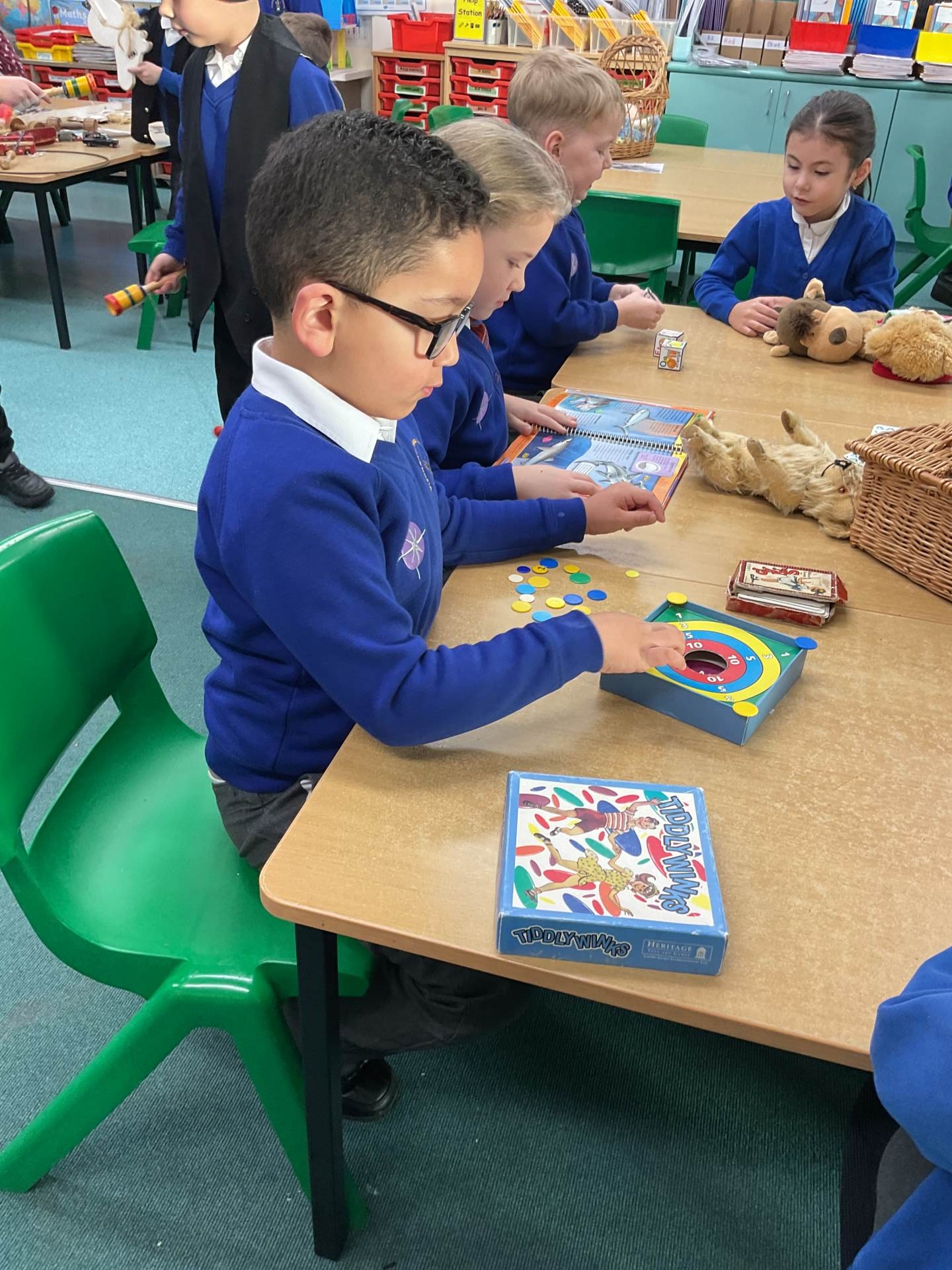 This morning we had a lovely visit from Sam from South West Heritage Trust who delivered a toys and games workshop. Sam brought lots of old and new toys and games with her for us to sort and play with. Some of the toys were really old and children from the Victorian times would play with them. Some looked similar to the toys that we play with today and some were very different. Most of the old toys were made from wood, metal or china whereas many of todays toys are now made from plastic.