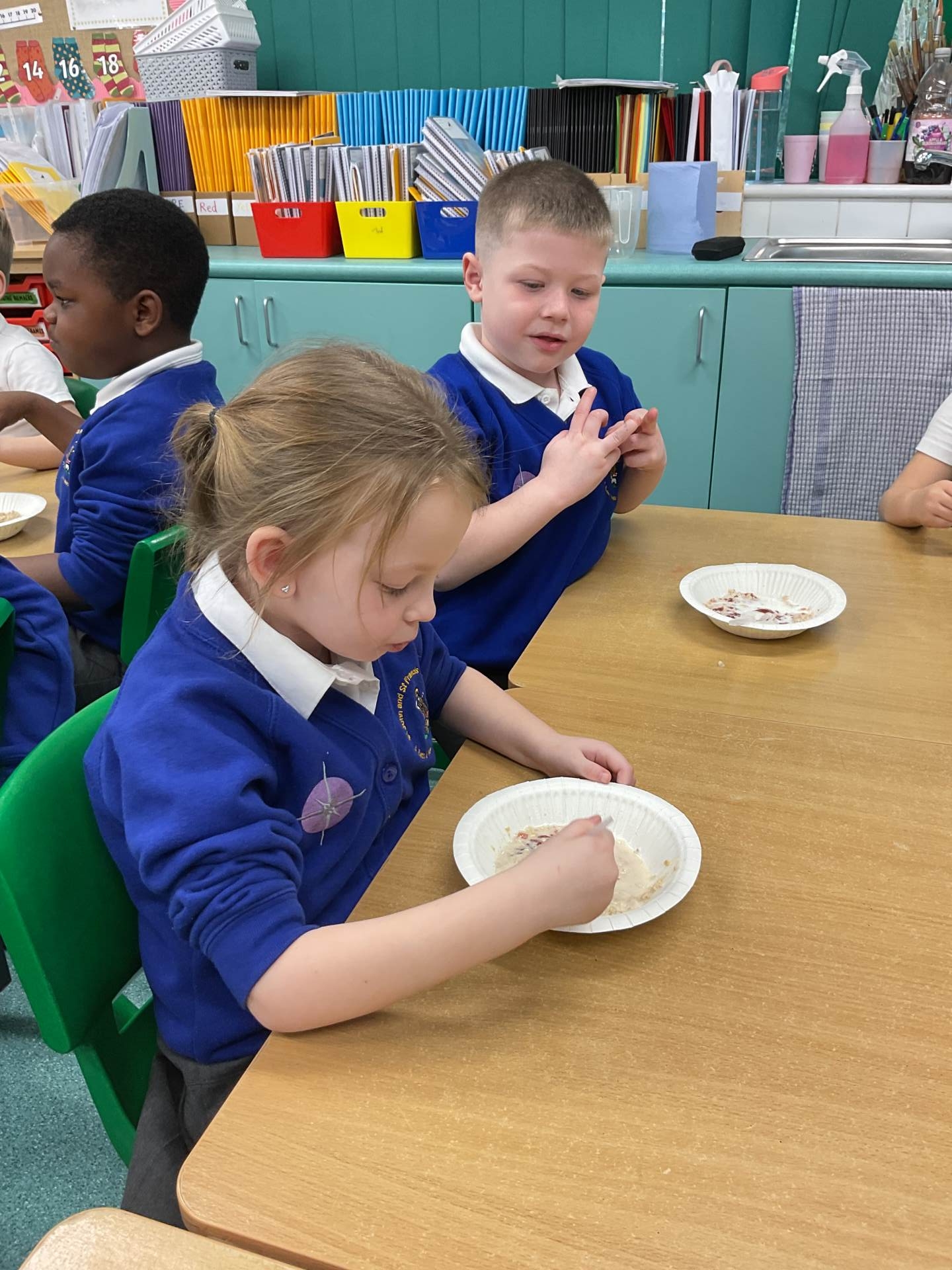 Today Sparrow and Blackbird Class made porridge! The children were able to follow and explain the instructions step by step. We read the instructions together and added sign and gesture to support our retelling. We discussed the layout of an instruction text and discussed why they are important.
