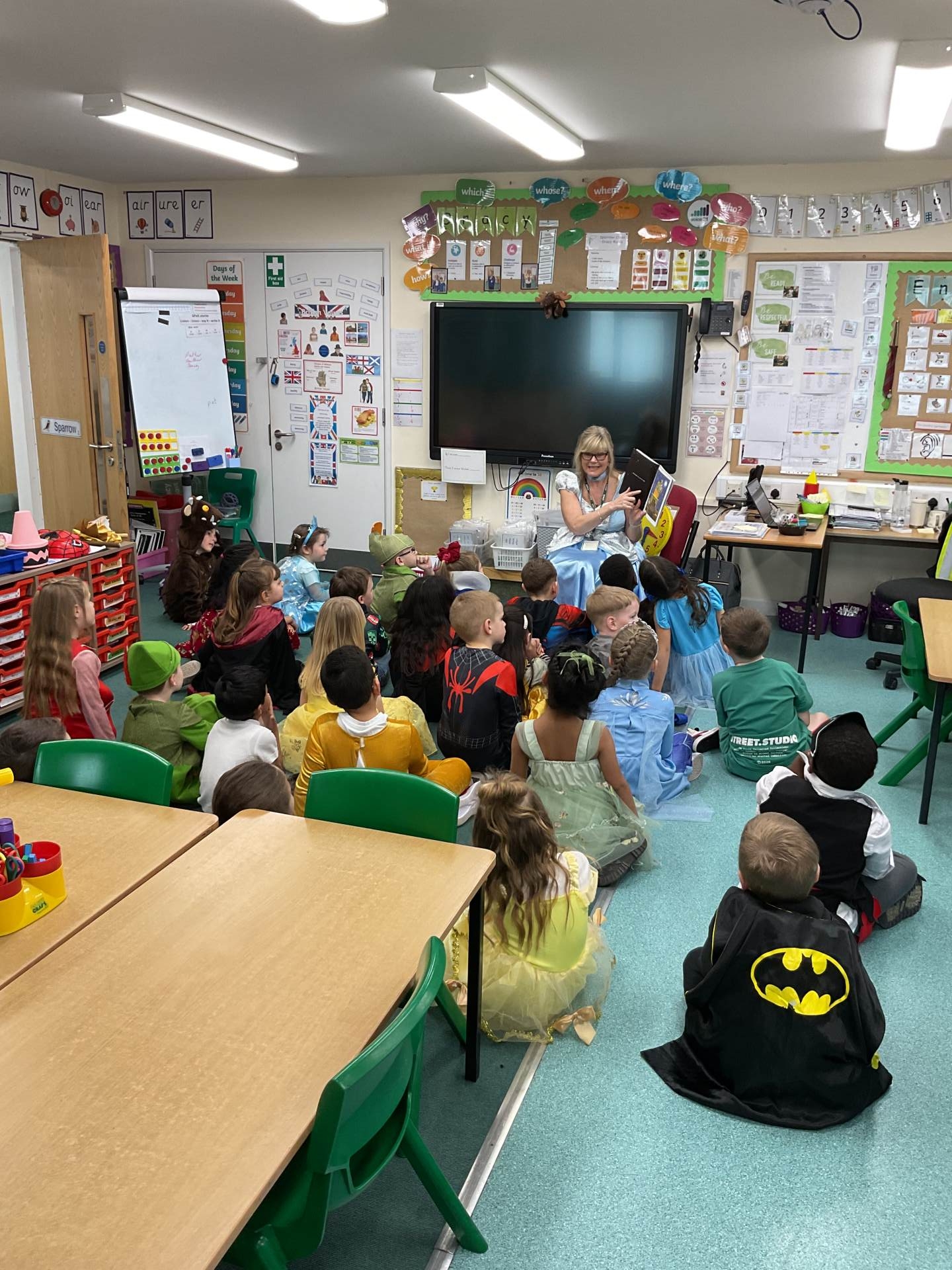 Here are some pictures of our amazing World Book Day. We have had a great day. We talked about our favourite stories and shared some of them in our own classes. We then went to other classes and had stories with other teachers. We even shared some of our favourite stories with some of our parents and family members who came into school. We do love stories in Sparrow class!