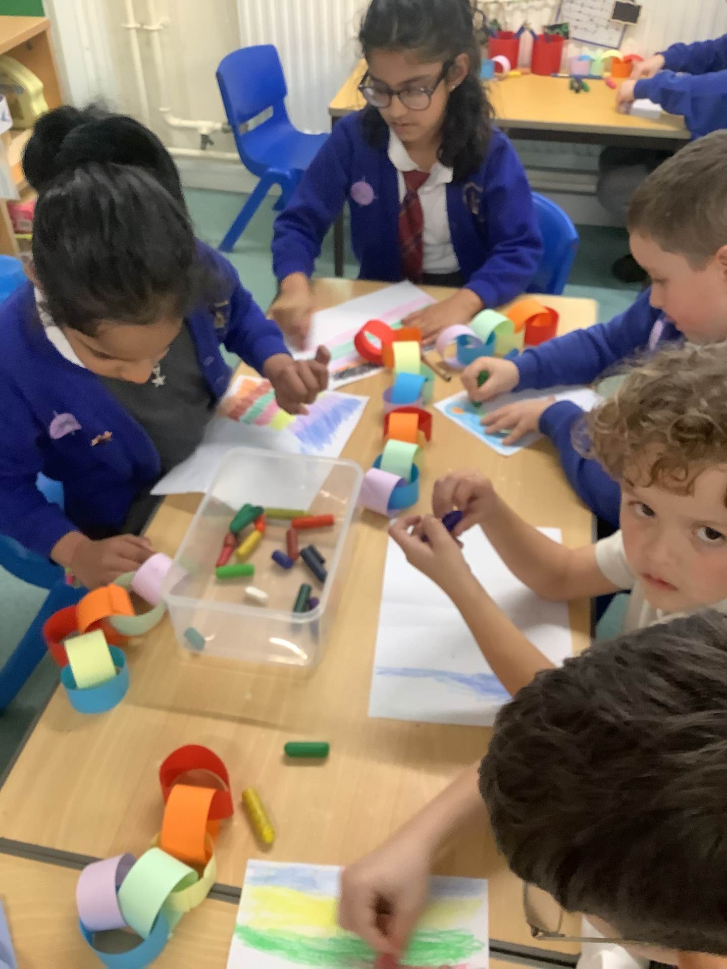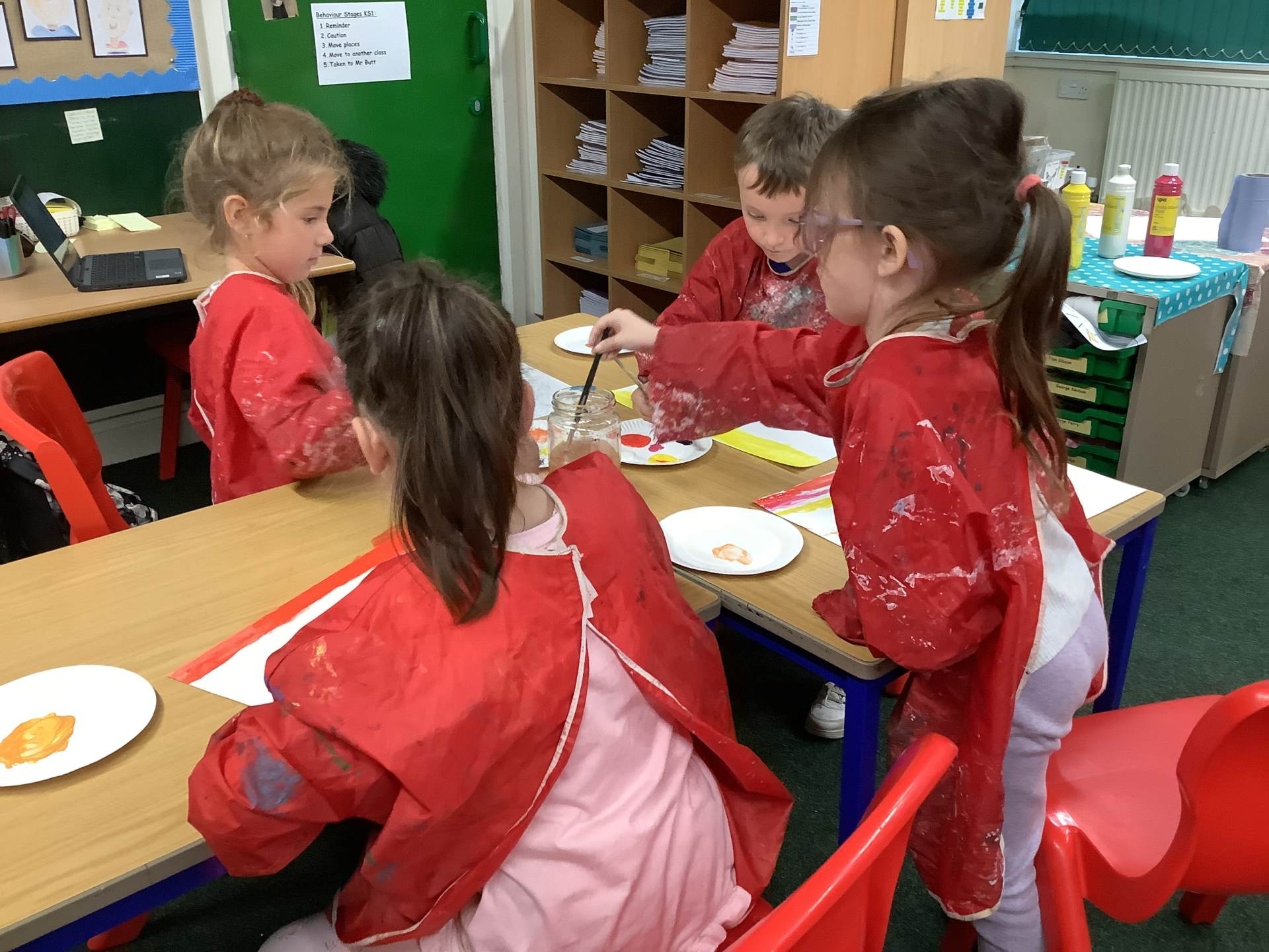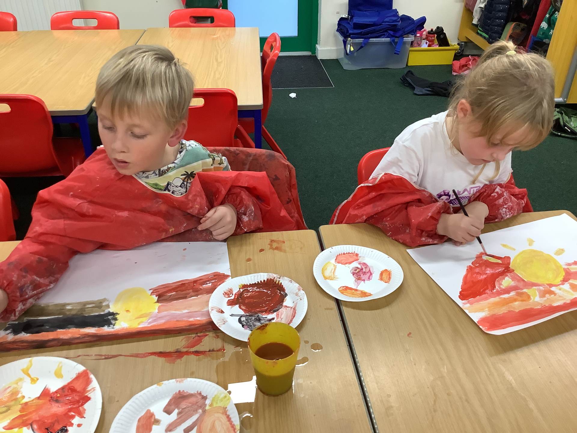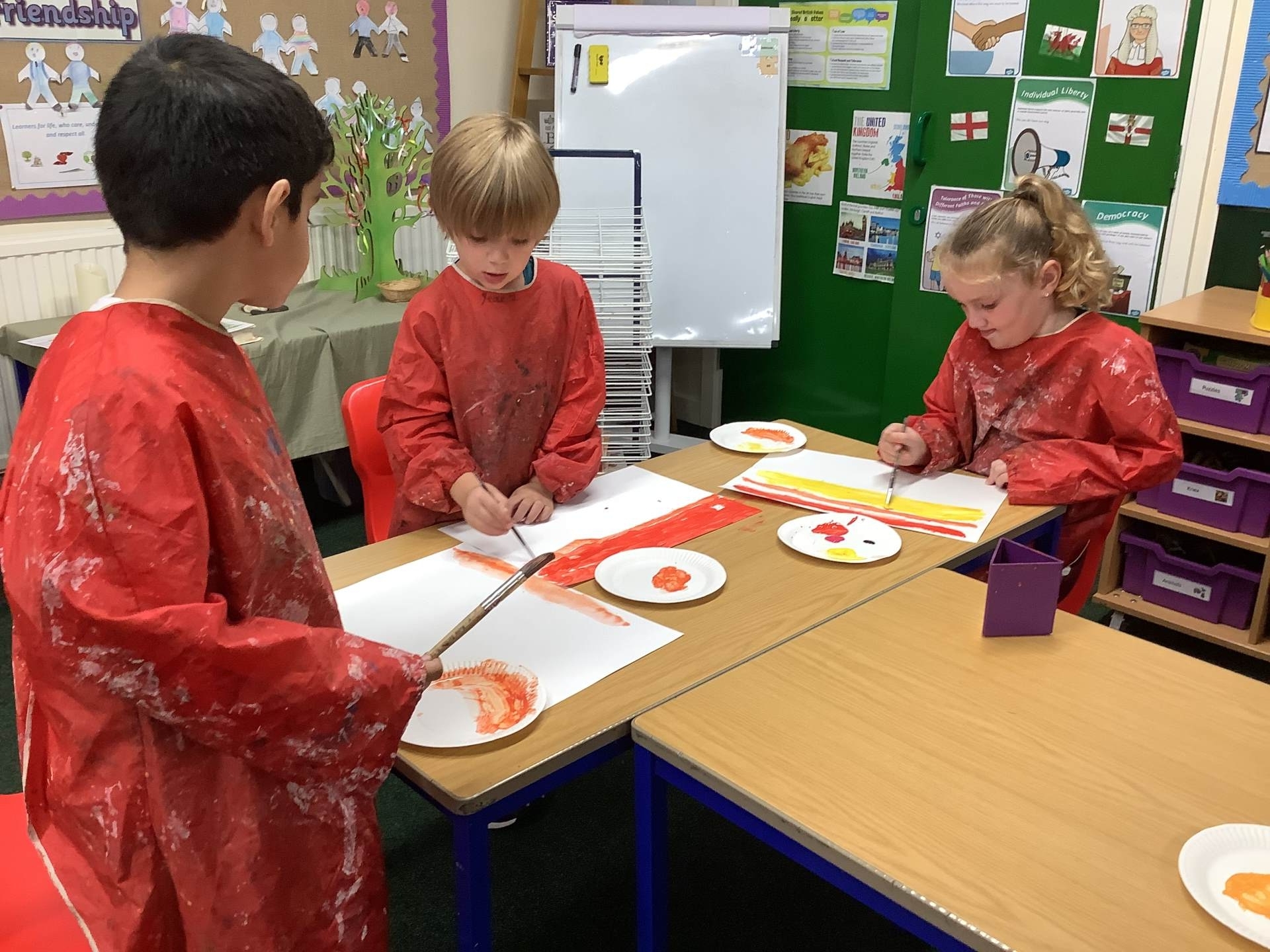 We have had some fabulous art lessons experimenting with paint this term. We've built on our knowledge from Year 1 and discussed colour mixing and shading. The children then used these skills to create a sunset scene. We will be drawing over the top of this and hope the end results will be ready to show during the school carnival procession!
