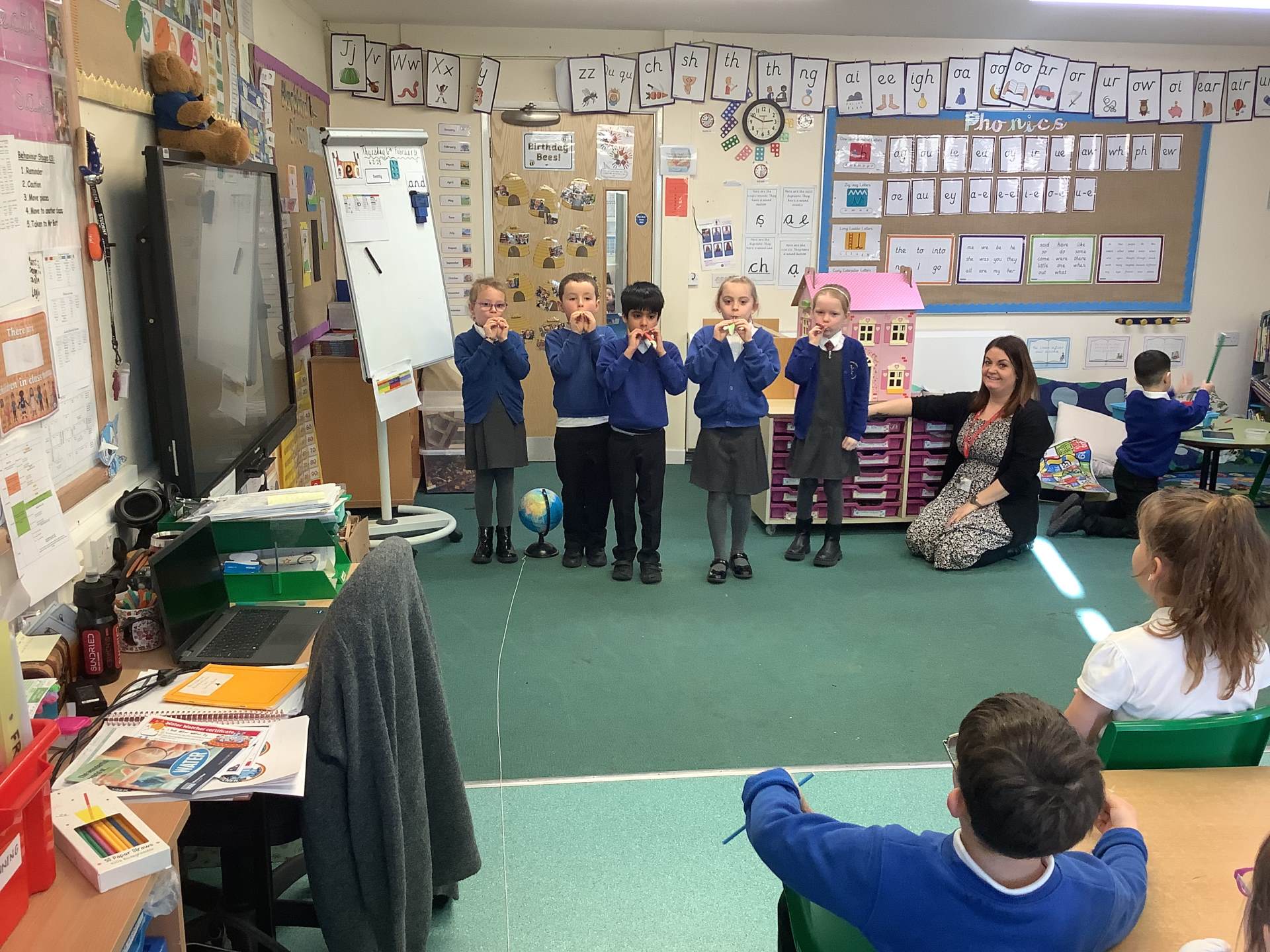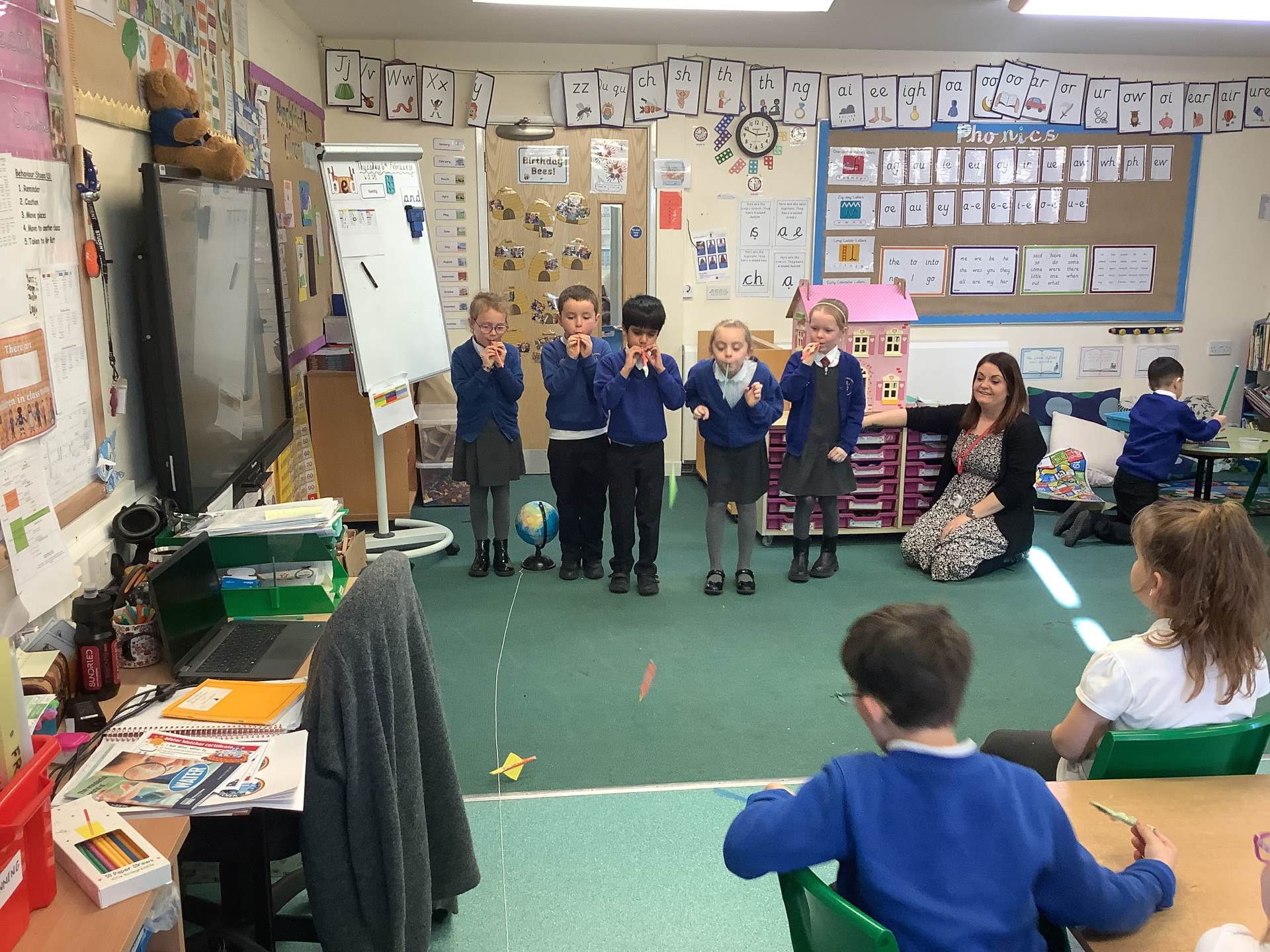 In class we practised and met burpy bin! Gary even had a song for us to learn.