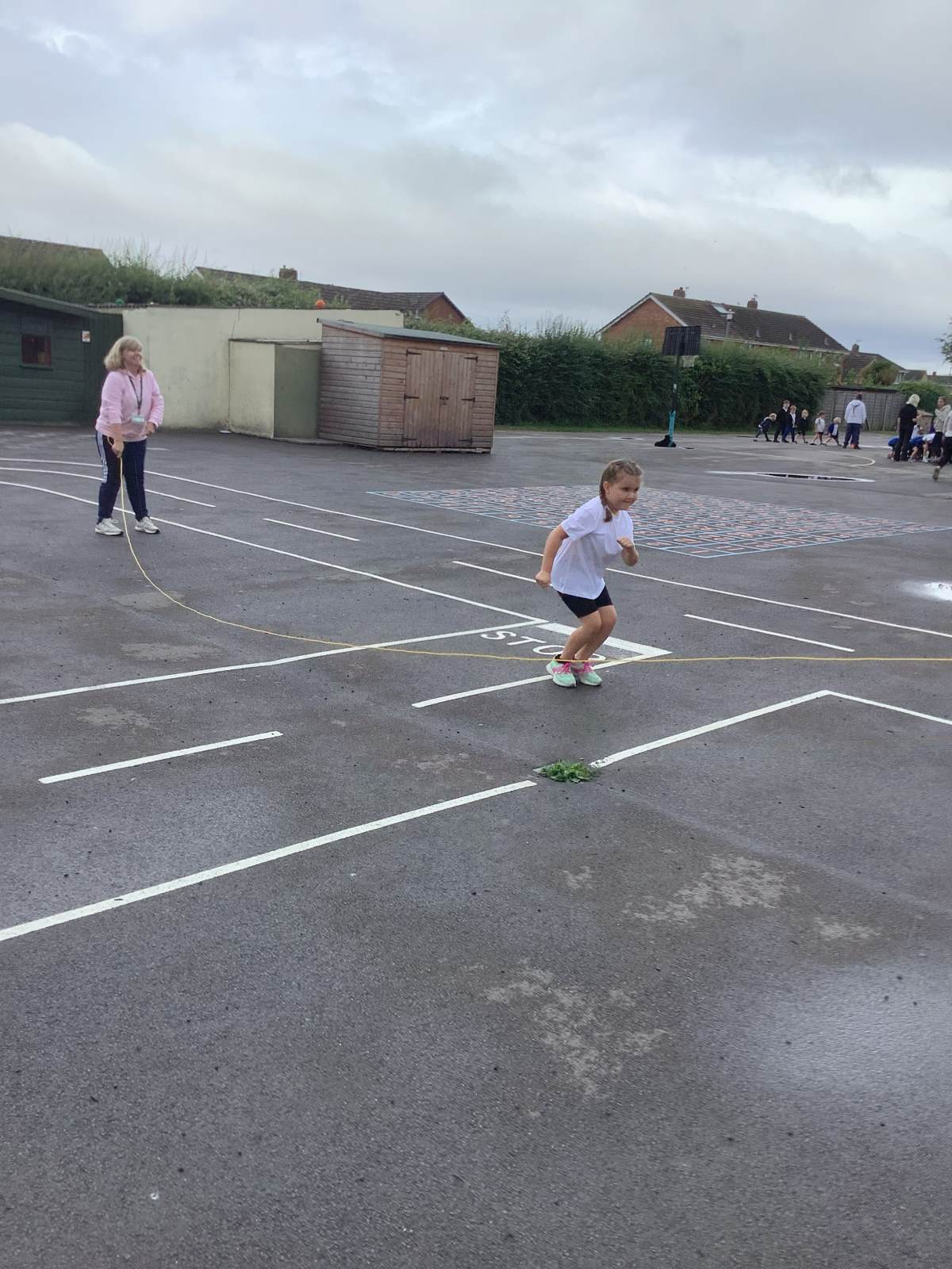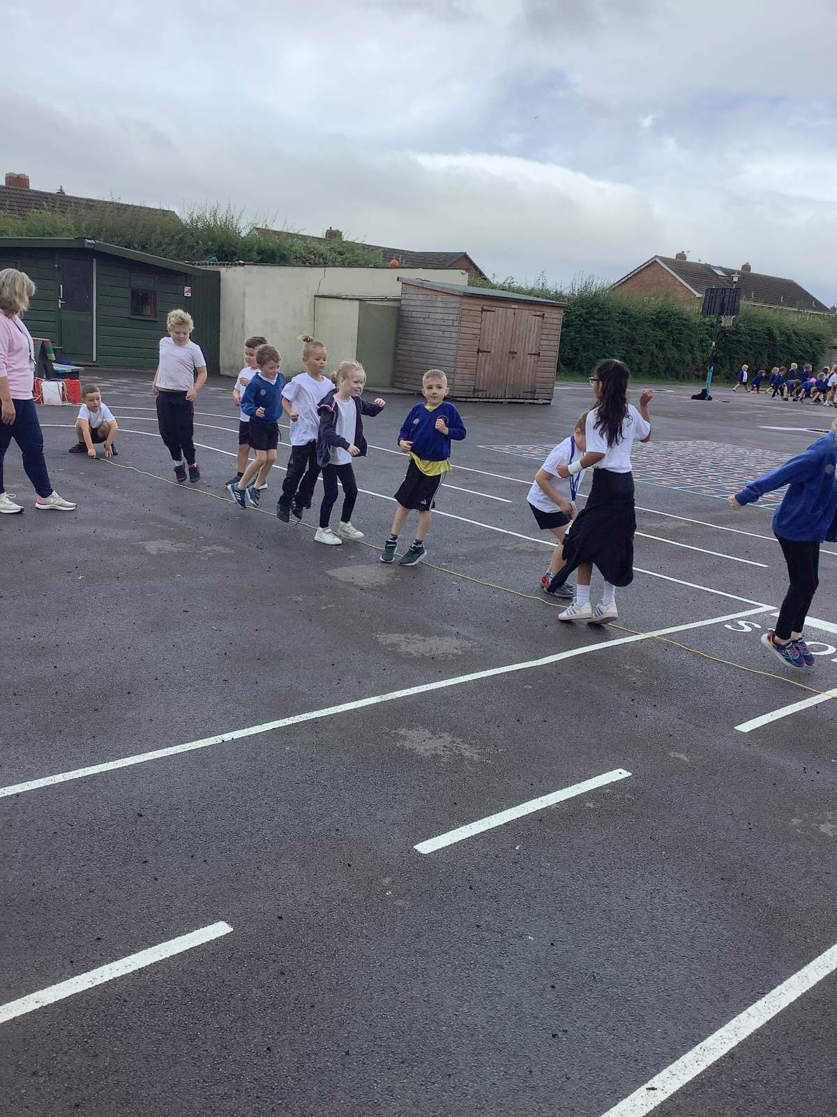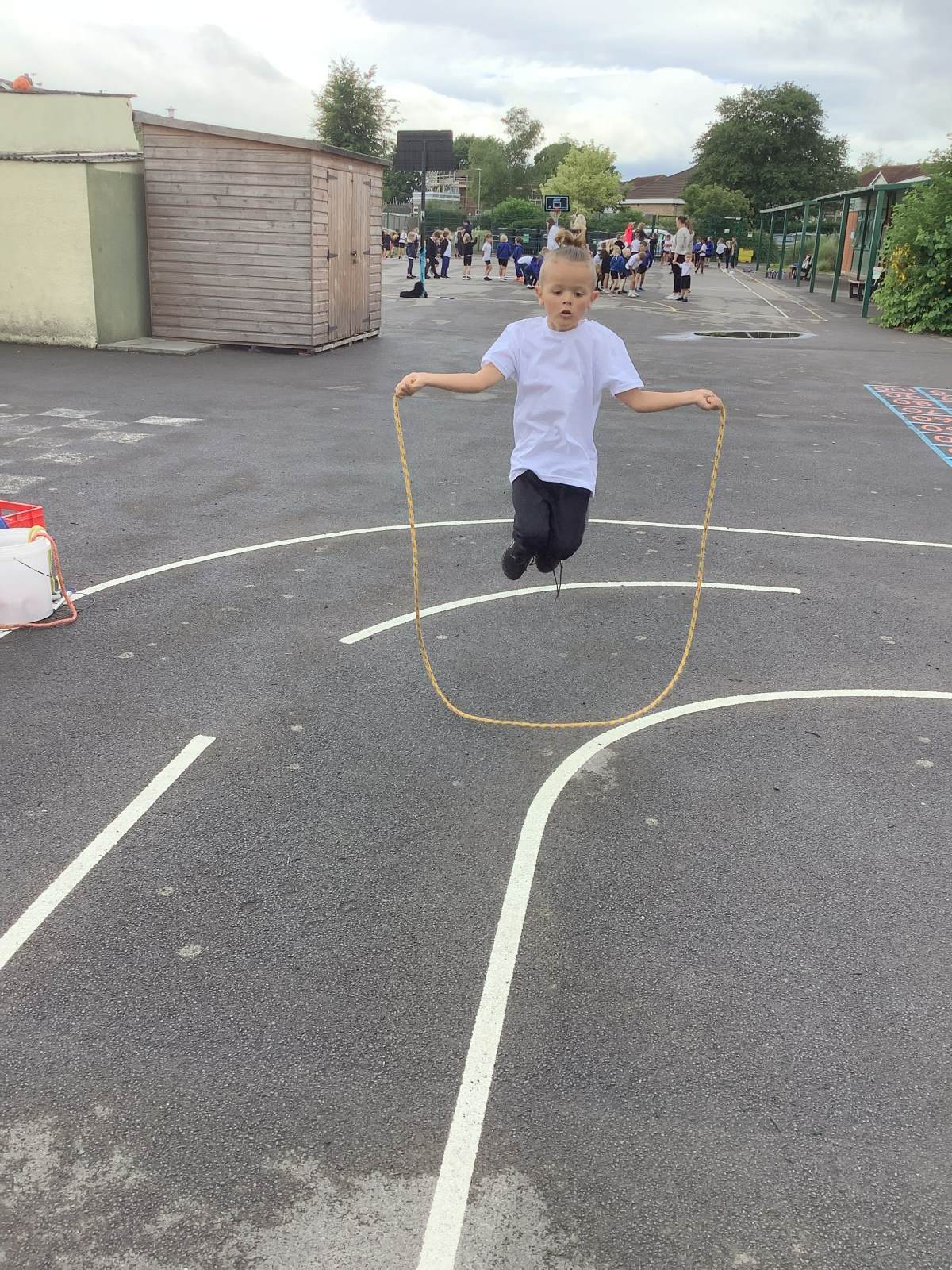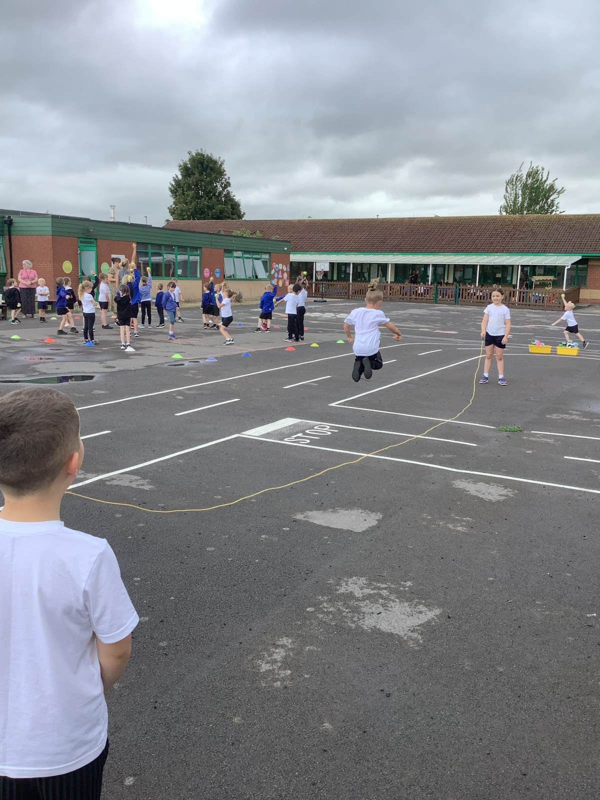 Today we took part in our sports festival. We had a great time doing lots of different activities. Mr Butt led parachute games and Mrs Hart taught us some skipping games and chants. We even used a long rope! We did some tennis with Mrs Edwards and playground games. We enjoyed tag rugby with Mrs Leach. We all had our favourites. We ended the day with some calming yoga with Mrs Marriott.