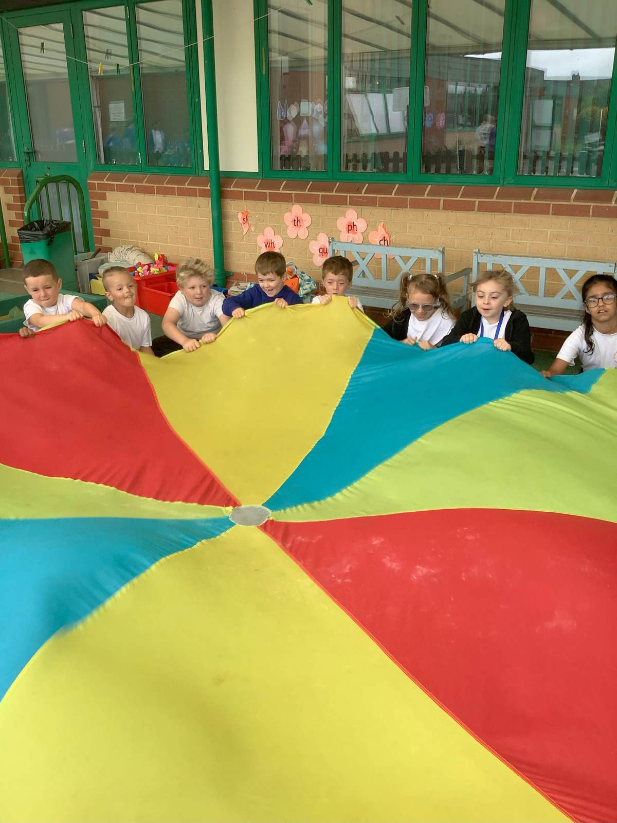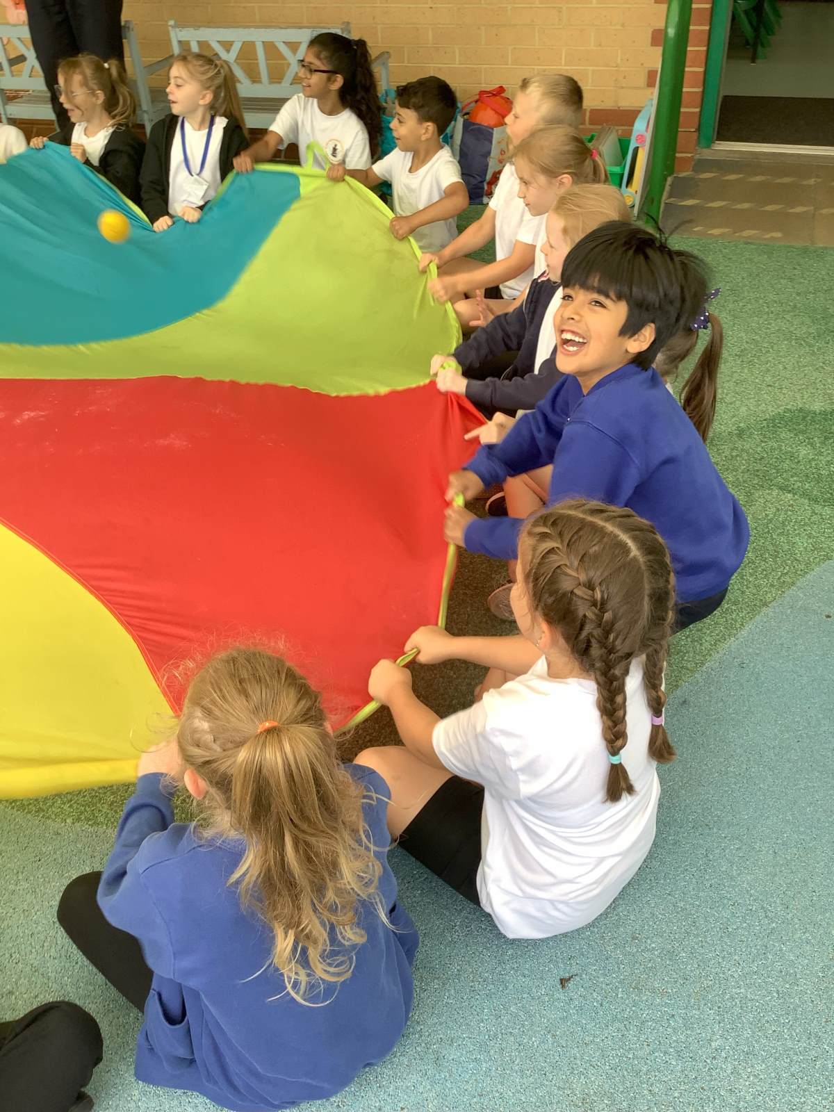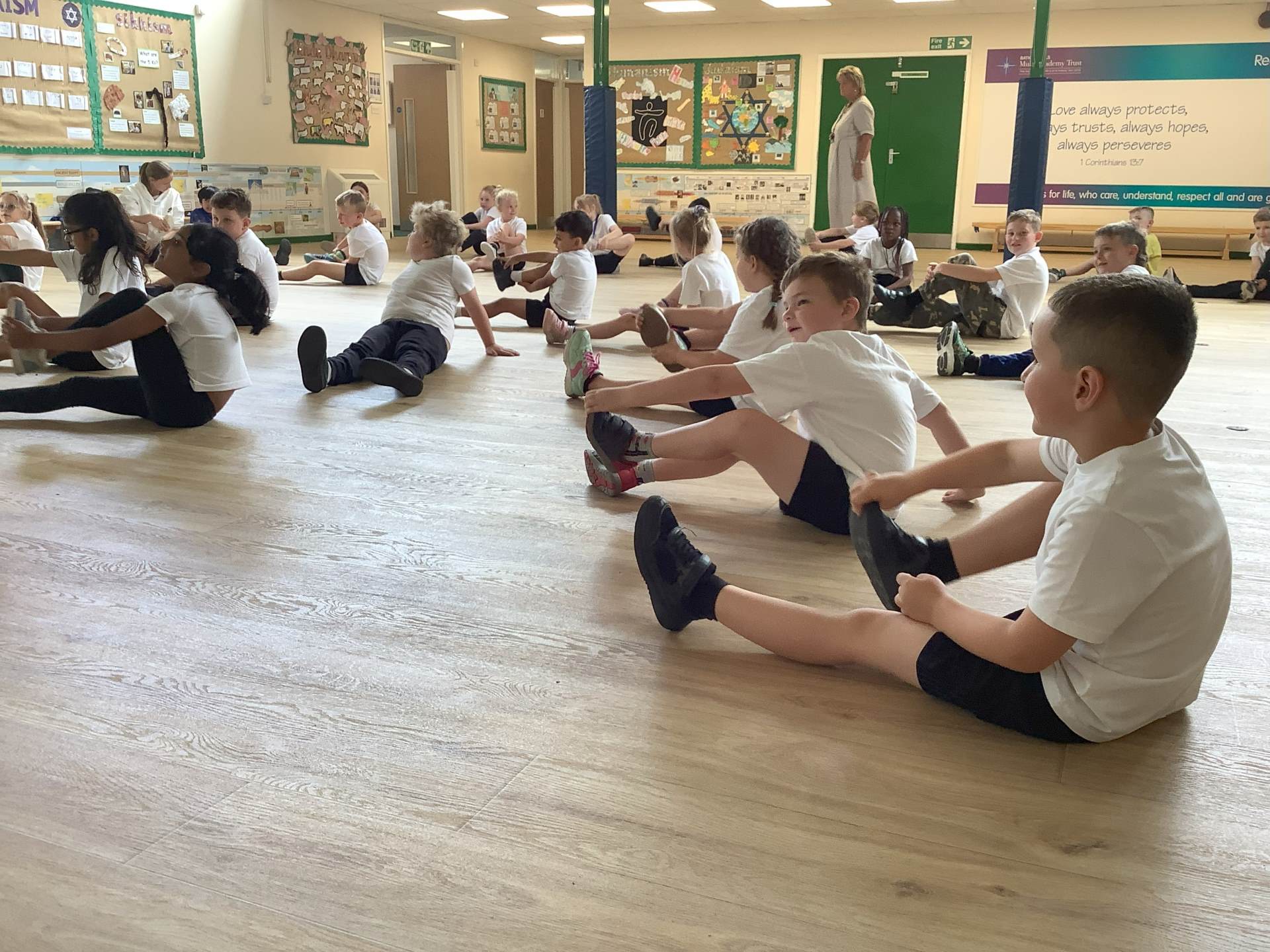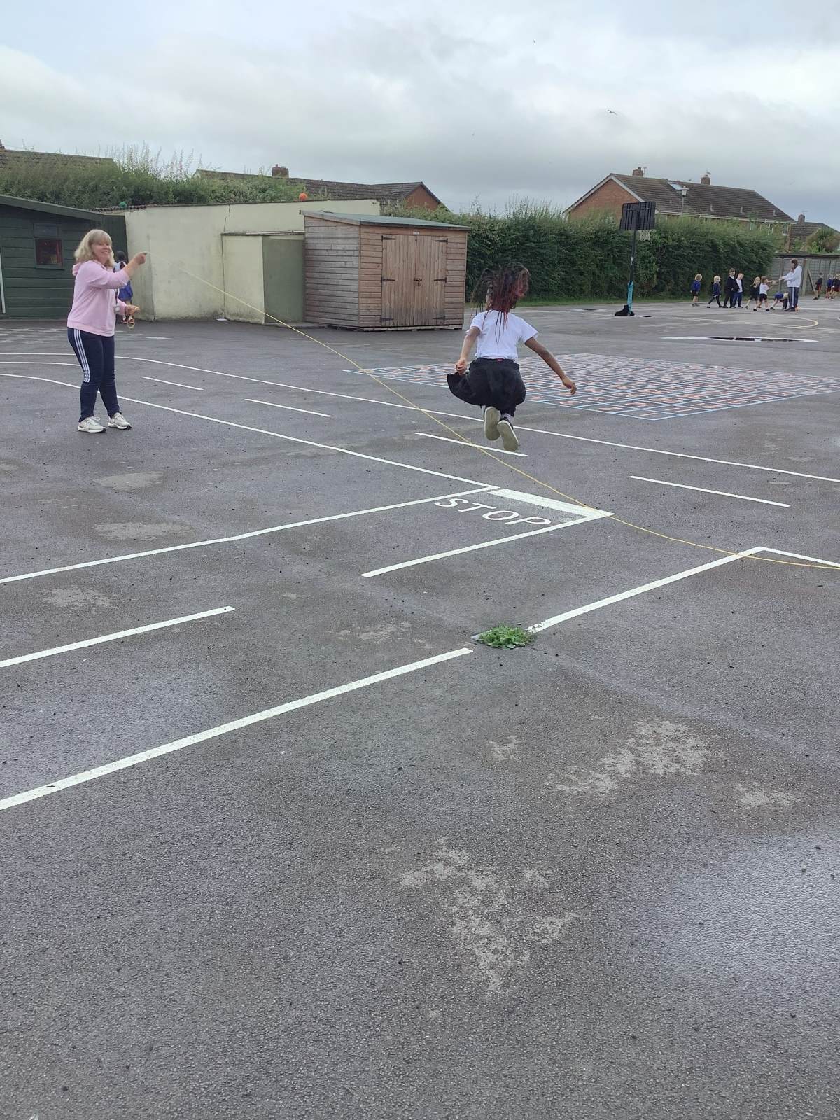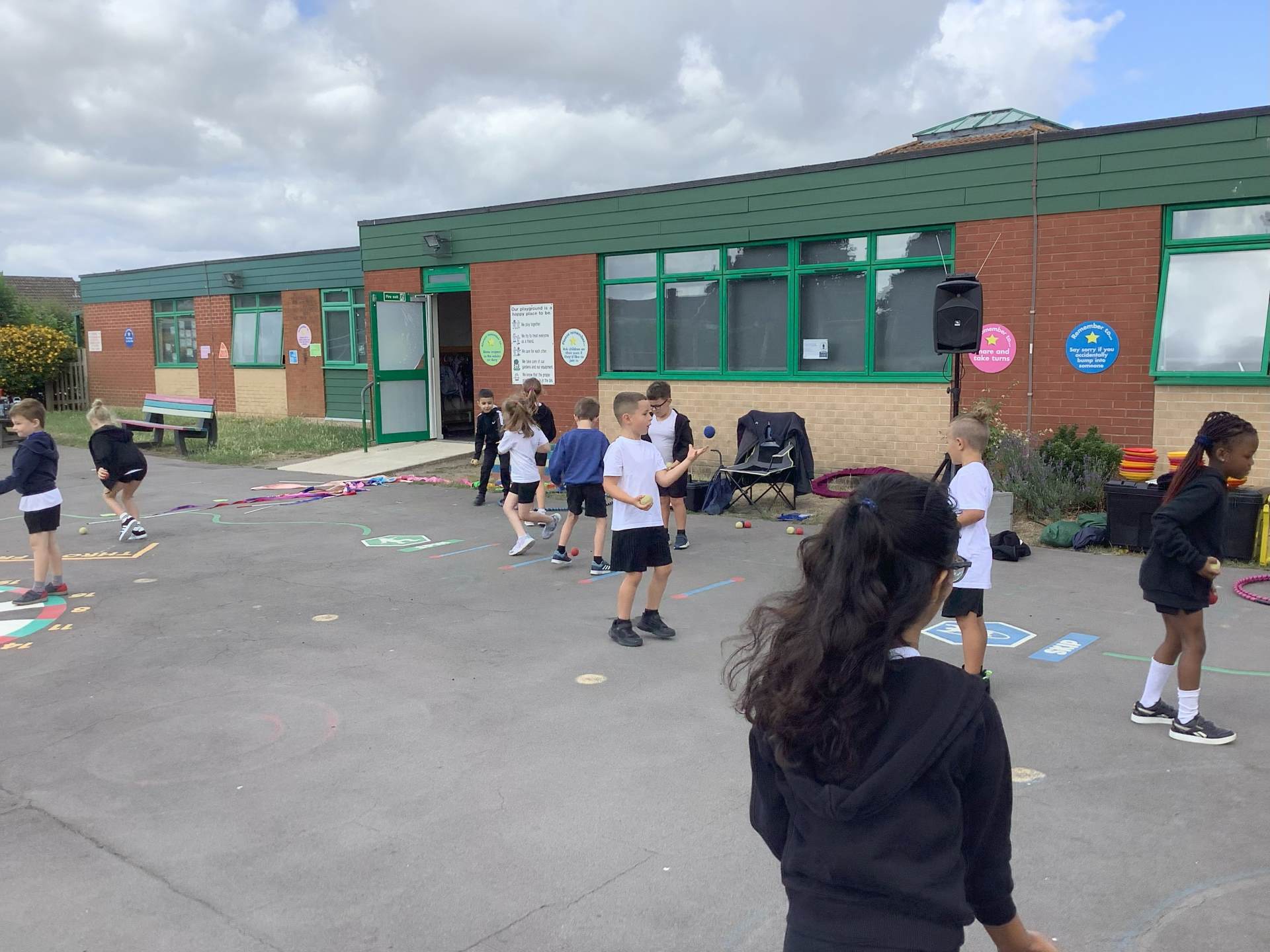 Today we took part in our sports festival. We had a great time doing lots of different activities. Mr Butt led parachute games and Mrs Hart taught us some skipping games and chants. We even used a long rope! We did some tennis with Mrs Edwards and playground games. We enjoyed tag rugby with Mrs Leach. We all had our favourites. We ended the day with some calming yoga with Mrs Marriott.