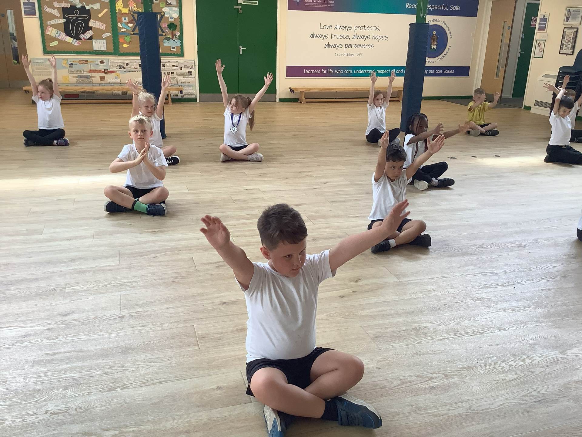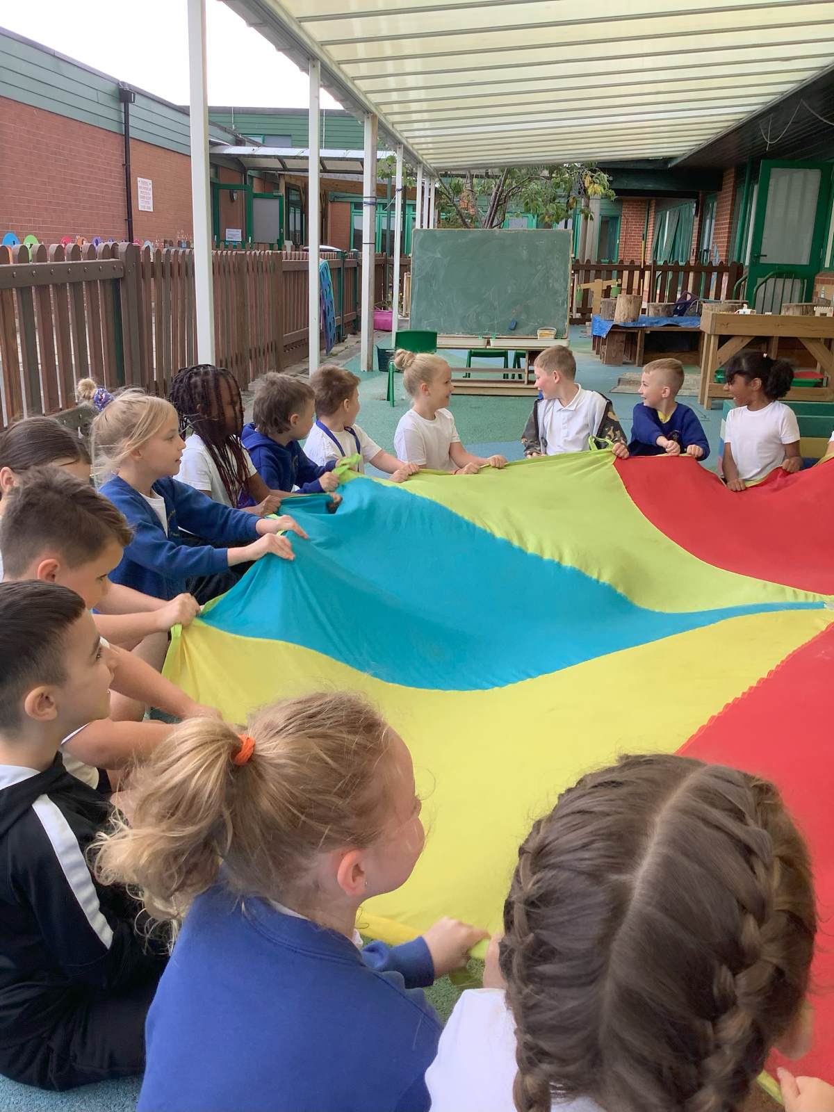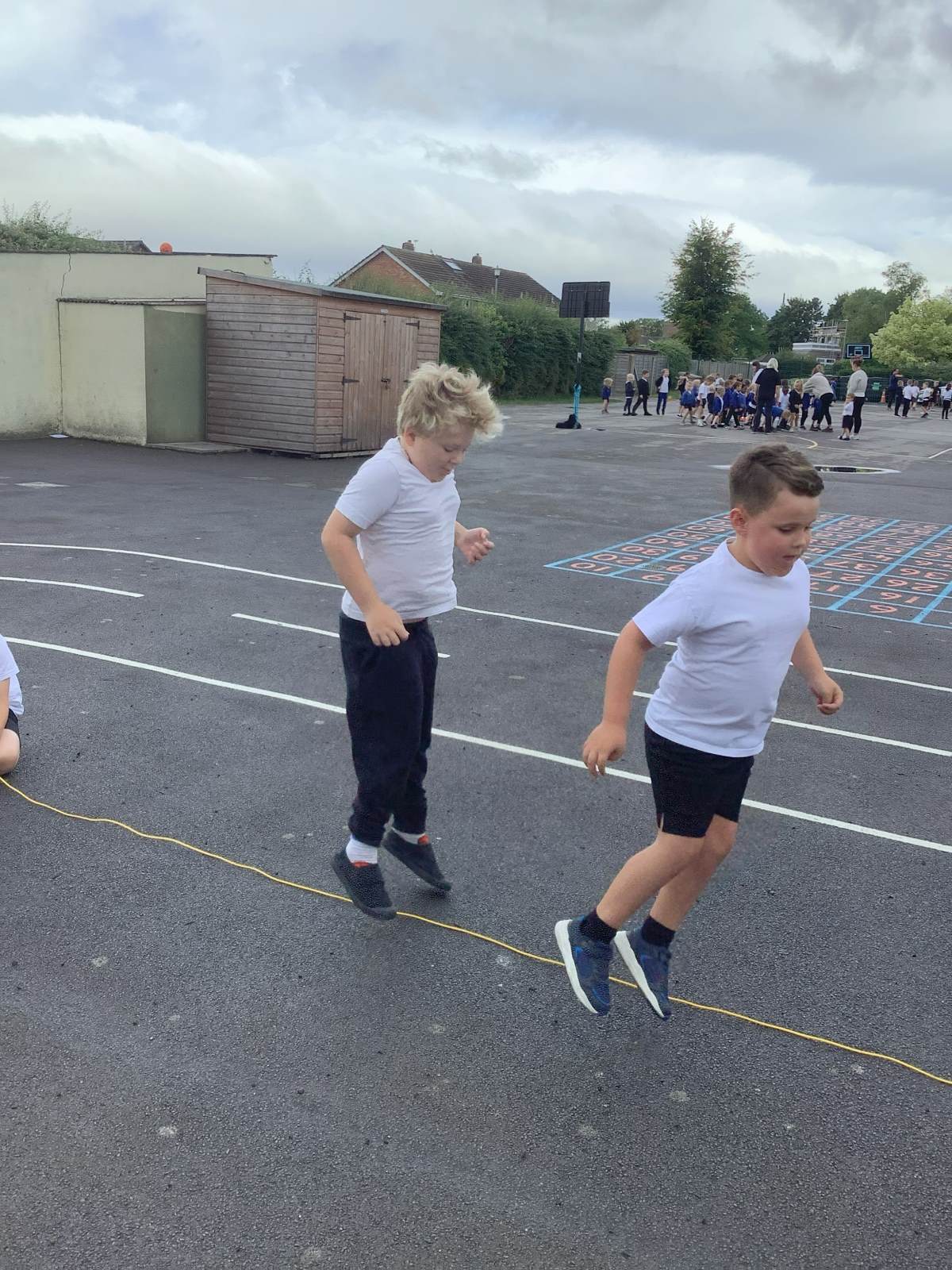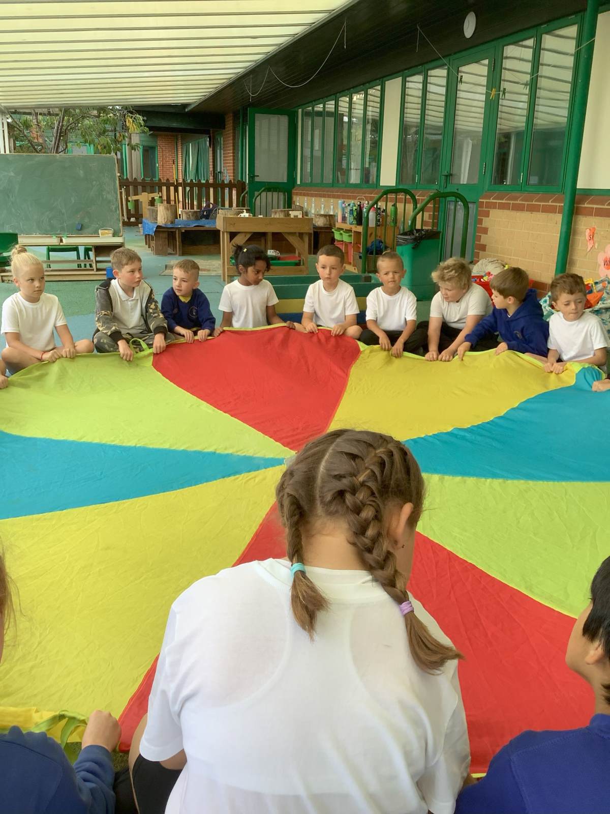 Today we took part in our sports festival. We had a great time doing lots of different activities. Mr Butt led parachute games and Mrs Hart taught us some skipping games and chants. We even used a long rope! We did some tennis with Mrs Edwards and playground games. We enjoyed tag rugby with Mrs Leach. We all had our favourites. We ended the day with some calming yoga with Mrs Marriott.
