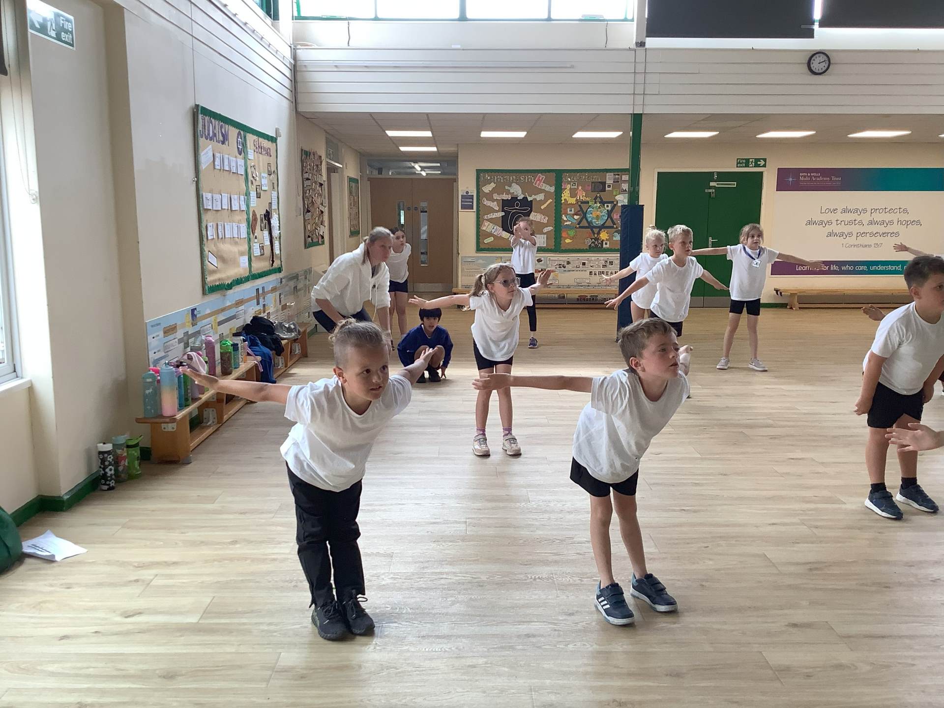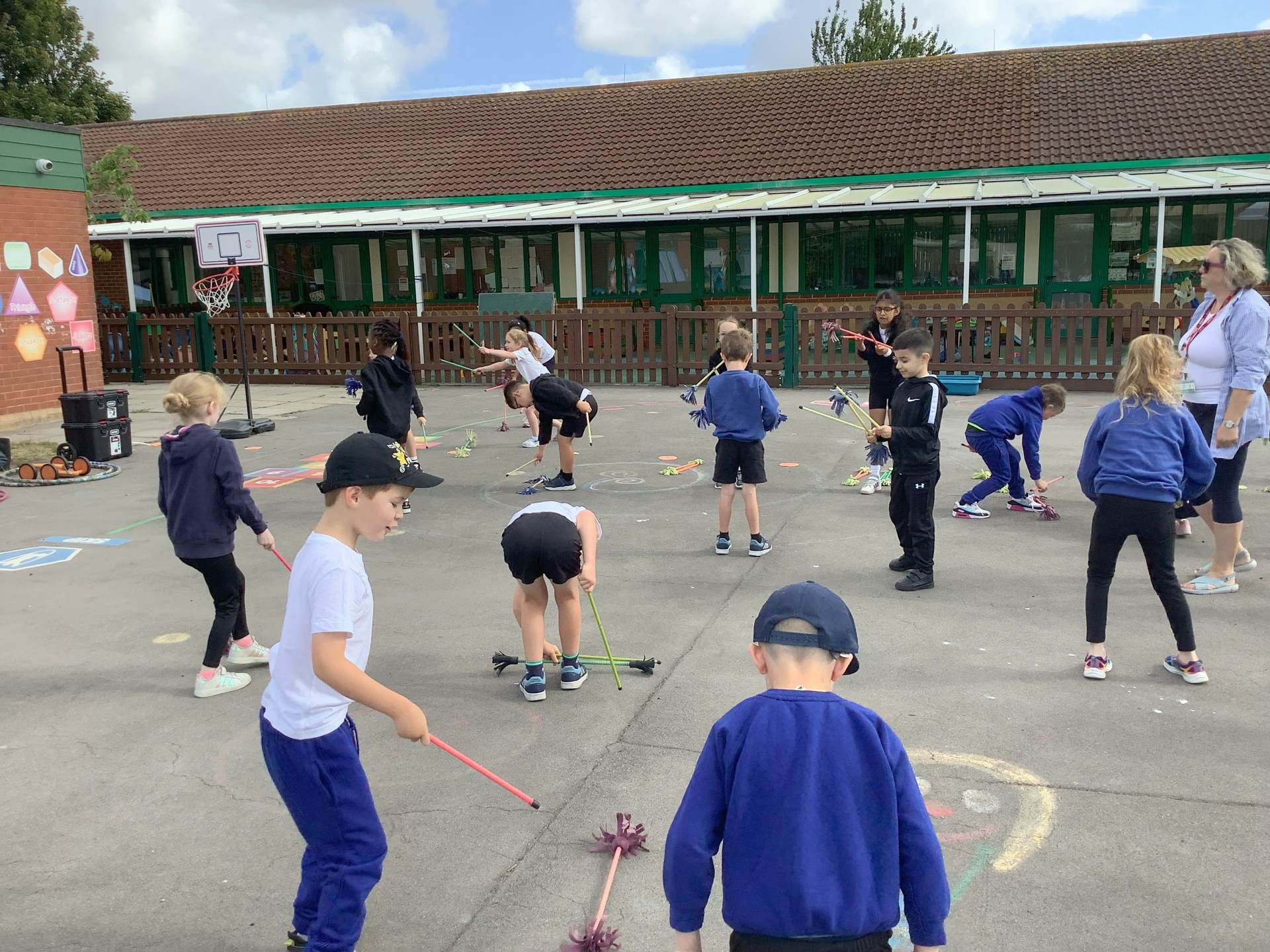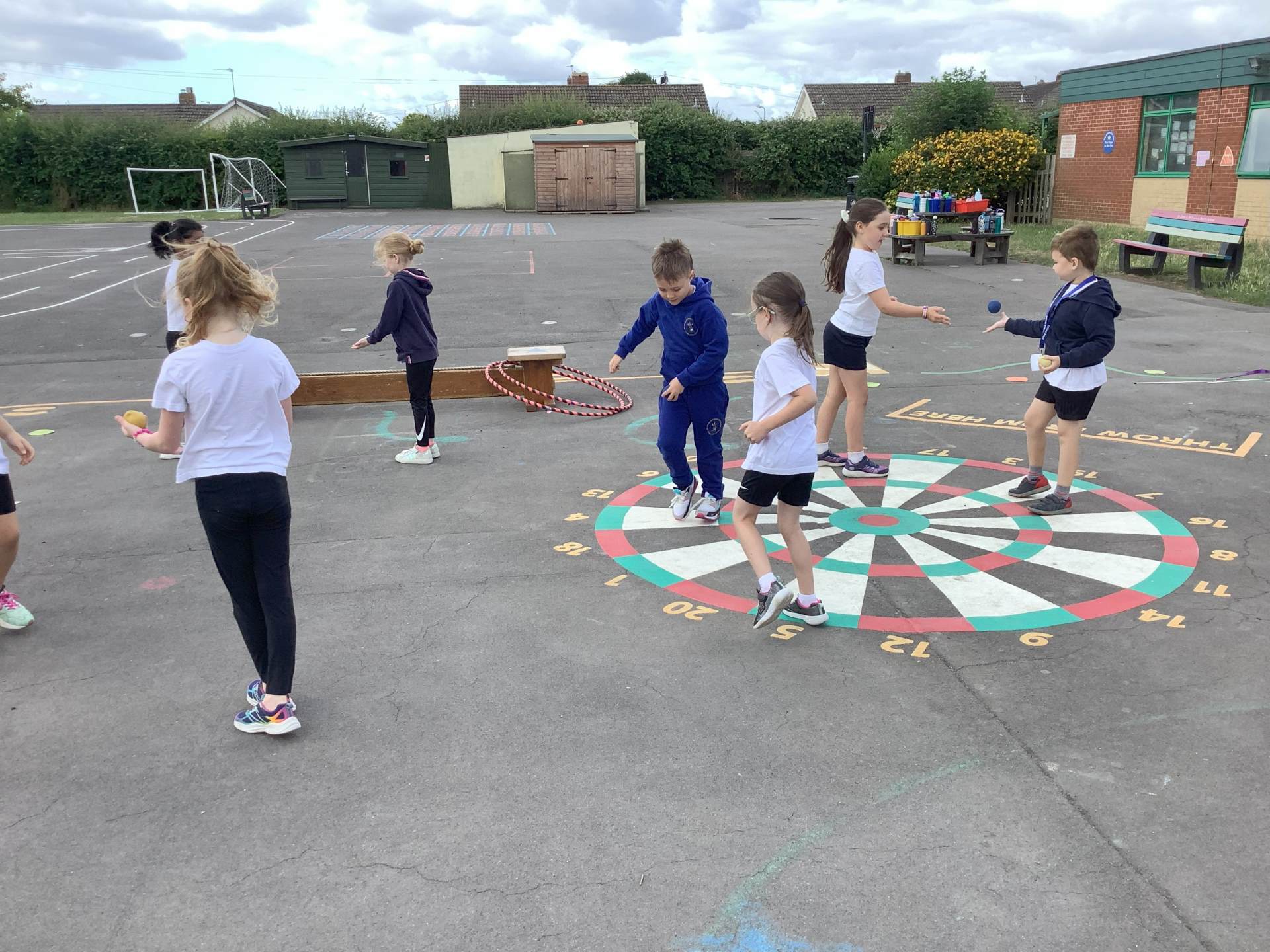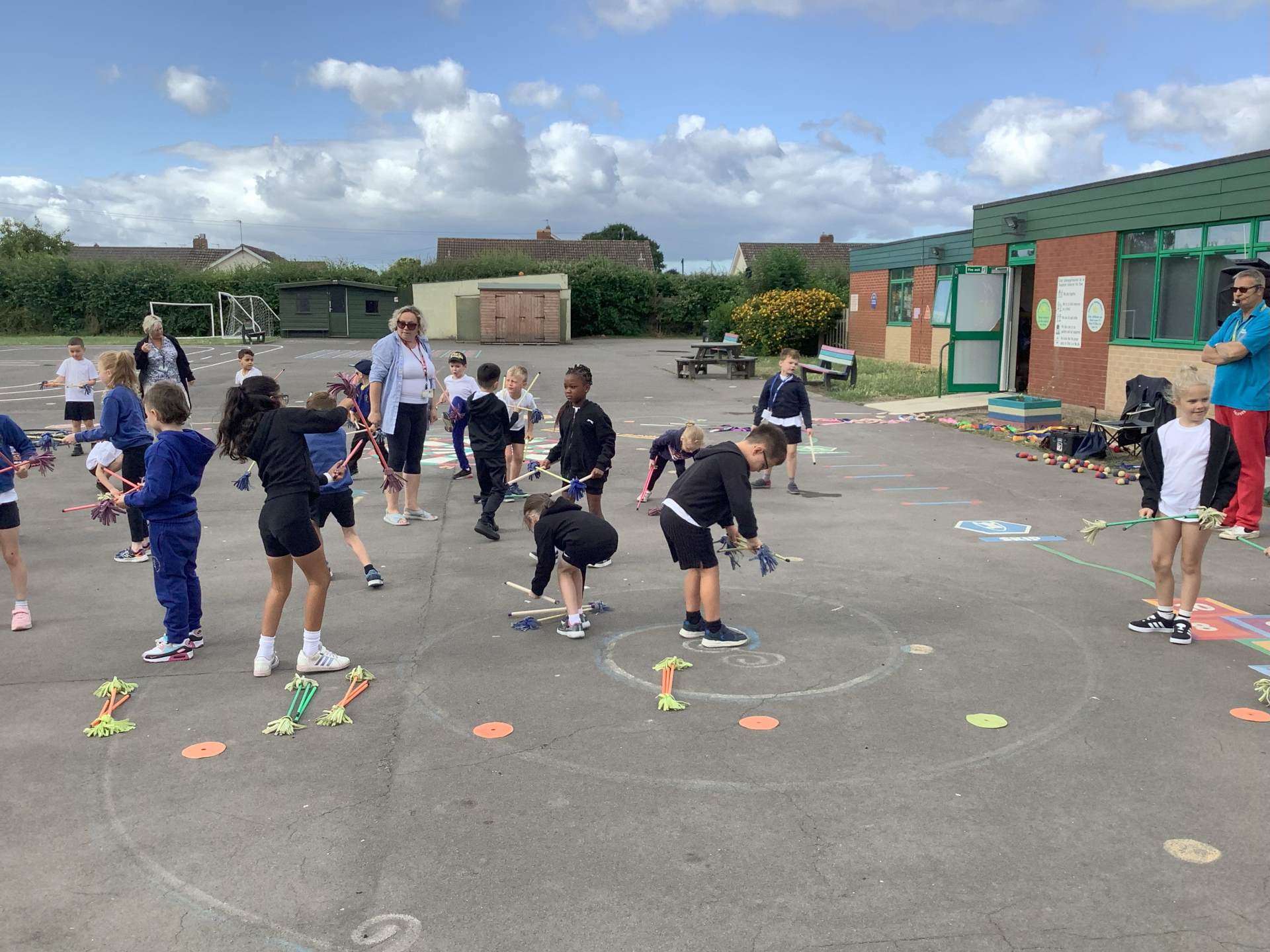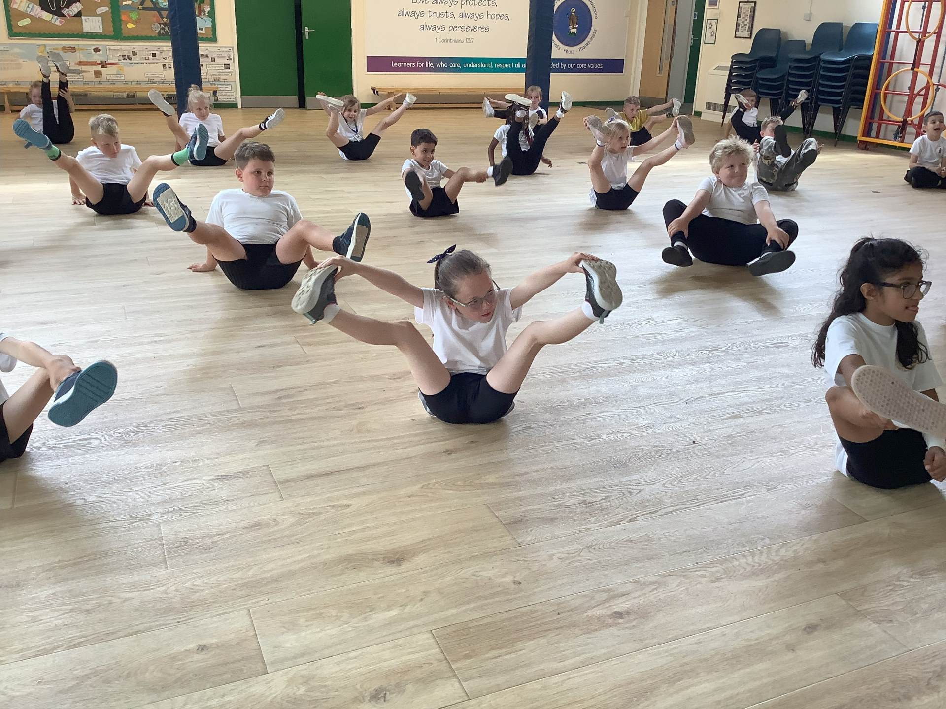 Today we took part in our sports festival. We had a great time doing lots of different activities. Mr Butt led parachute games and Mrs Hart taught us some skipping games and chants. We even used a long rope! We did some tennis with Mrs Edwards and playground games. We enjoyed tag rugby with Mrs Leach. We all had our favourites. We ended the day with some calming yoga with Mrs Marriott.