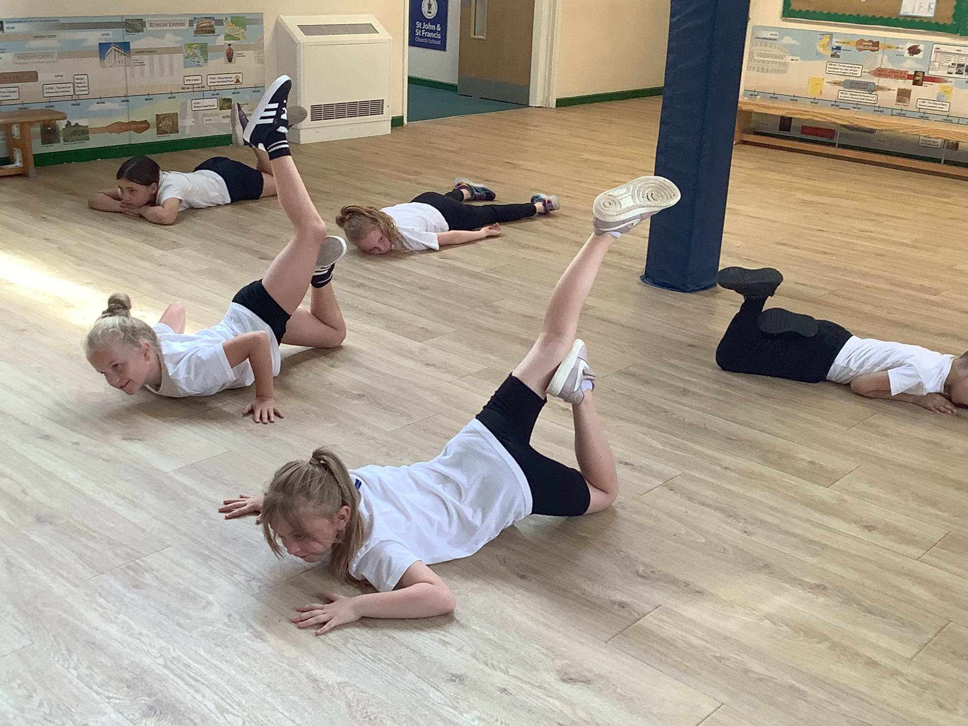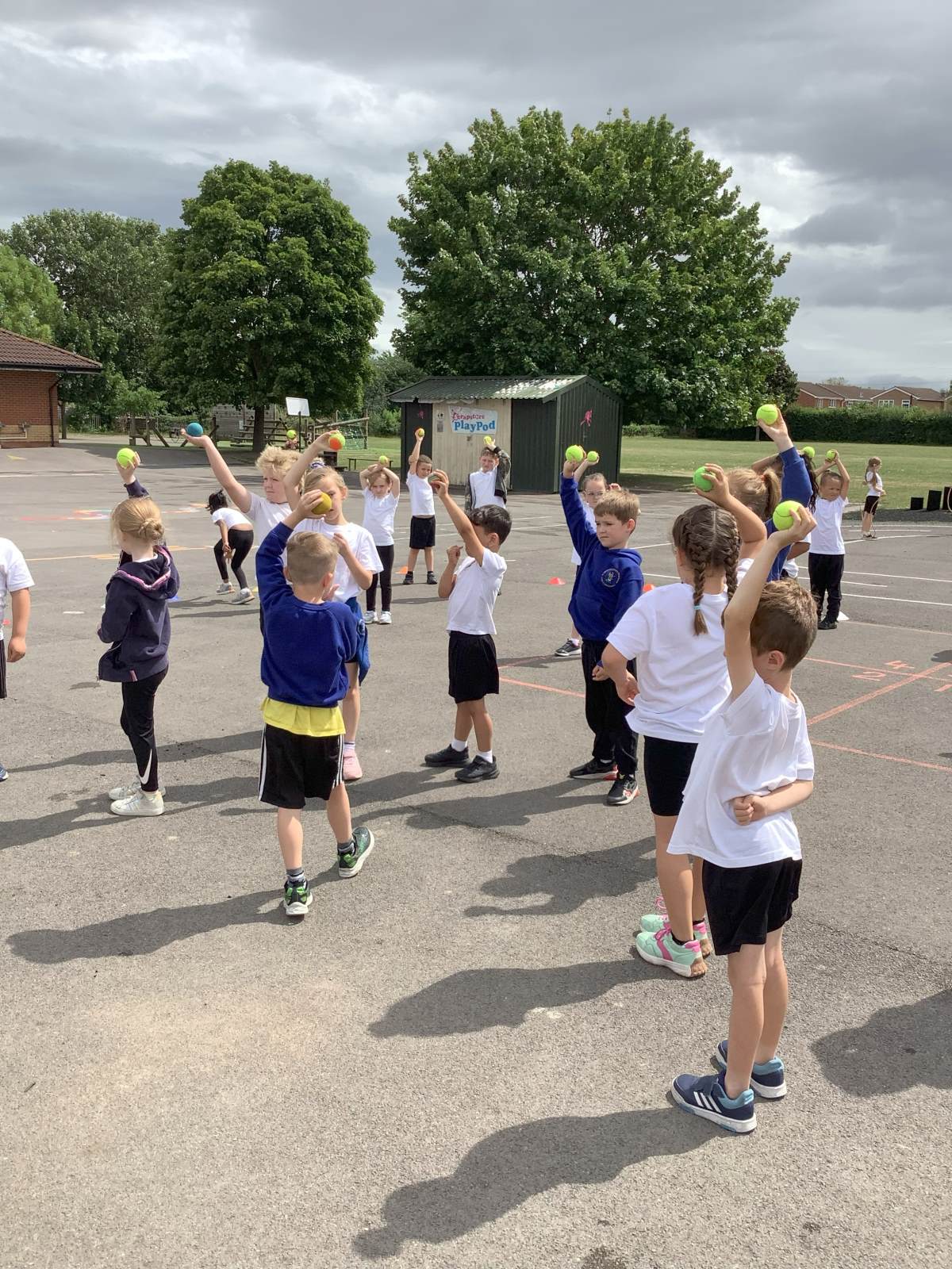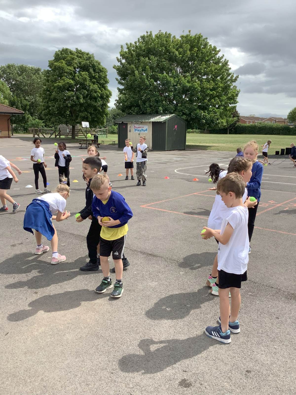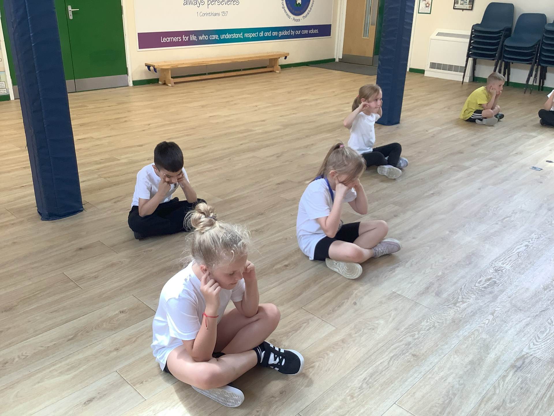 Today we took part in our sports festival. We had a great time doing lots of different activities. Mr Butt led parachute games and Mrs Hart taught us some skipping games and chants. We even used a long rope! We did some tennis with Mrs Edwards and playground games. We enjoyed tag rugby with Mrs Leach. We all had our favourites. We ended the day with some calming yoga with Mrs Marriott.