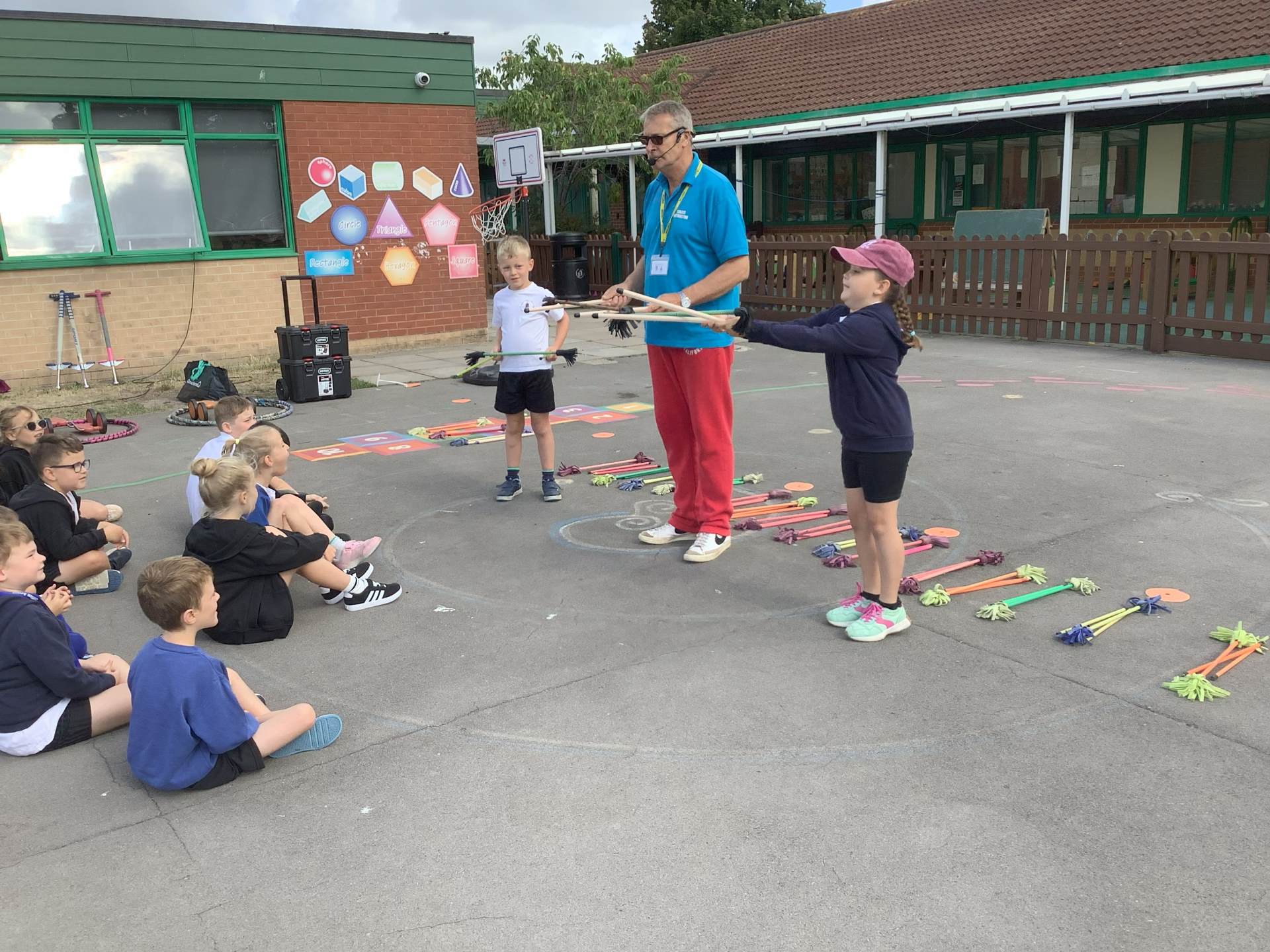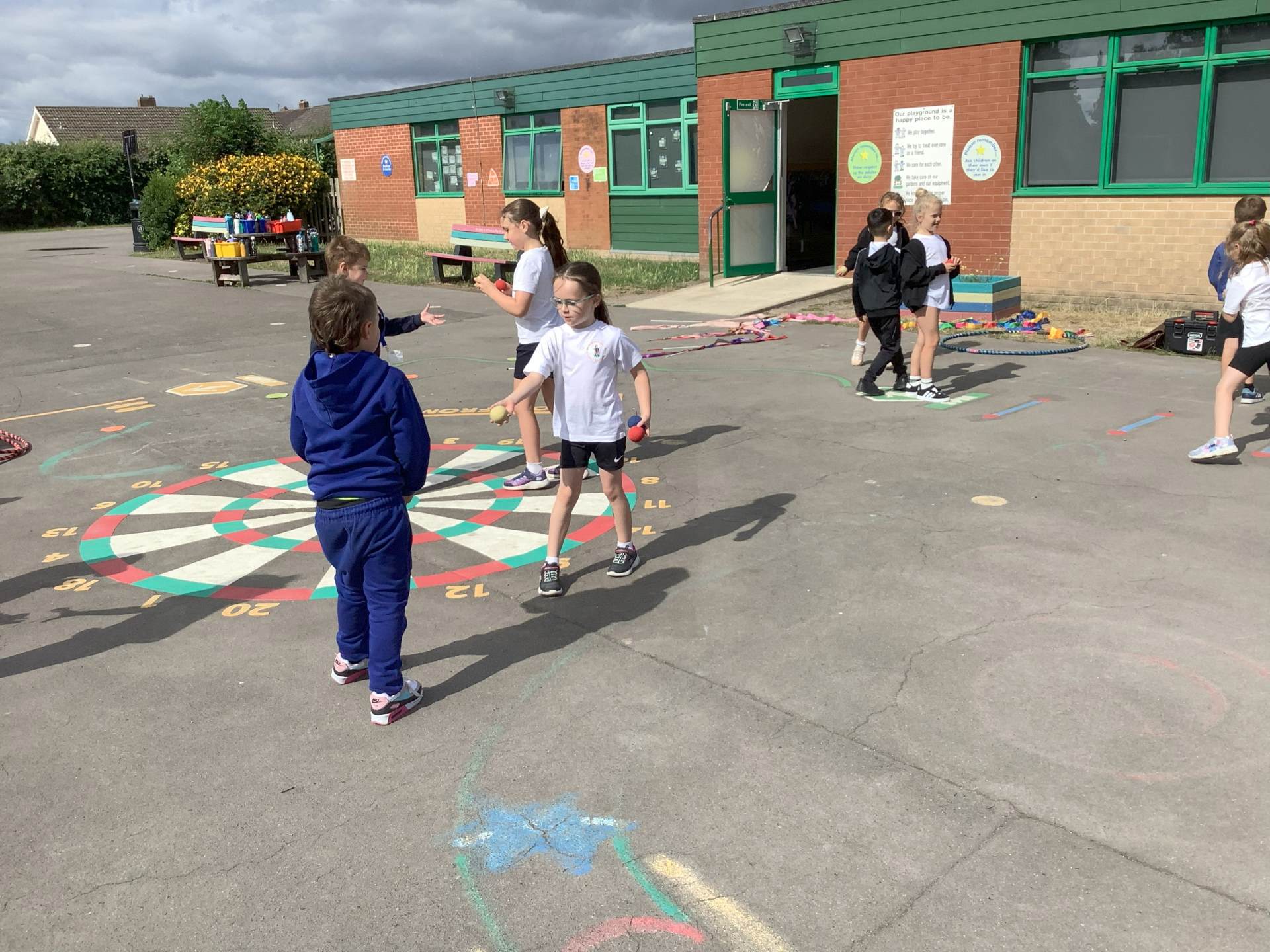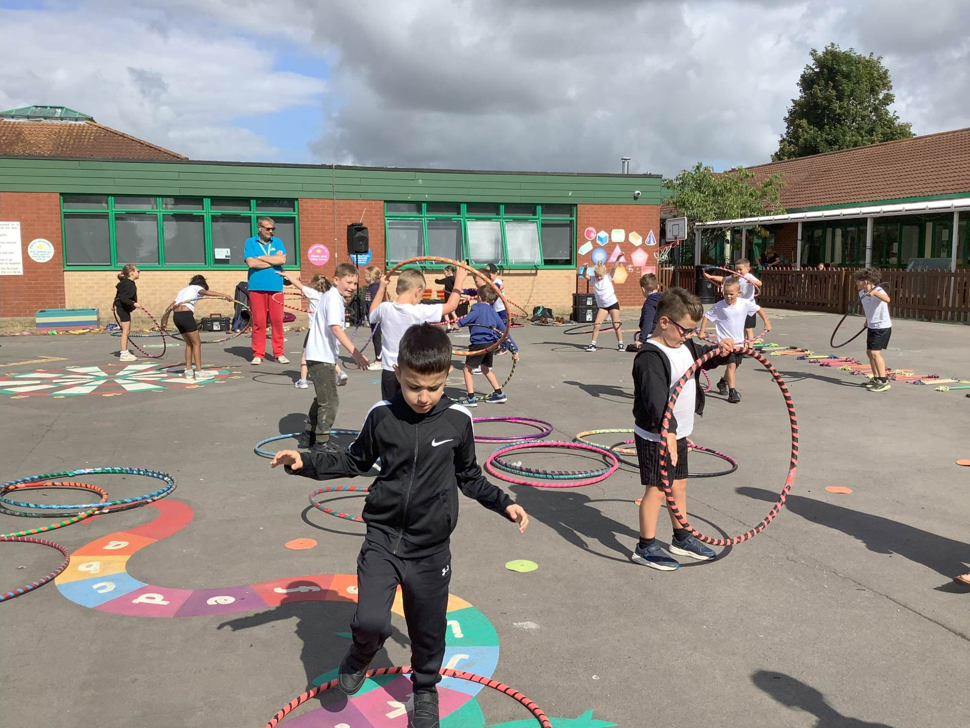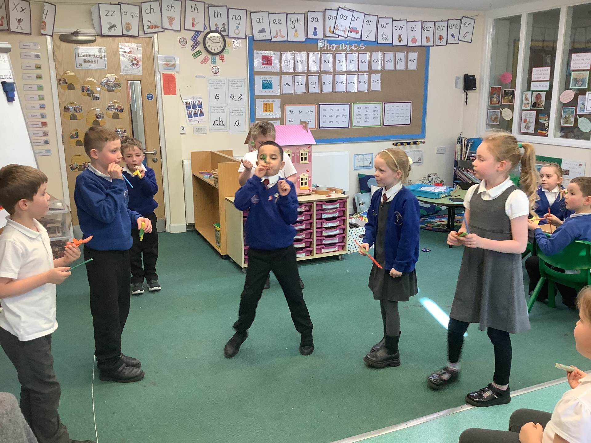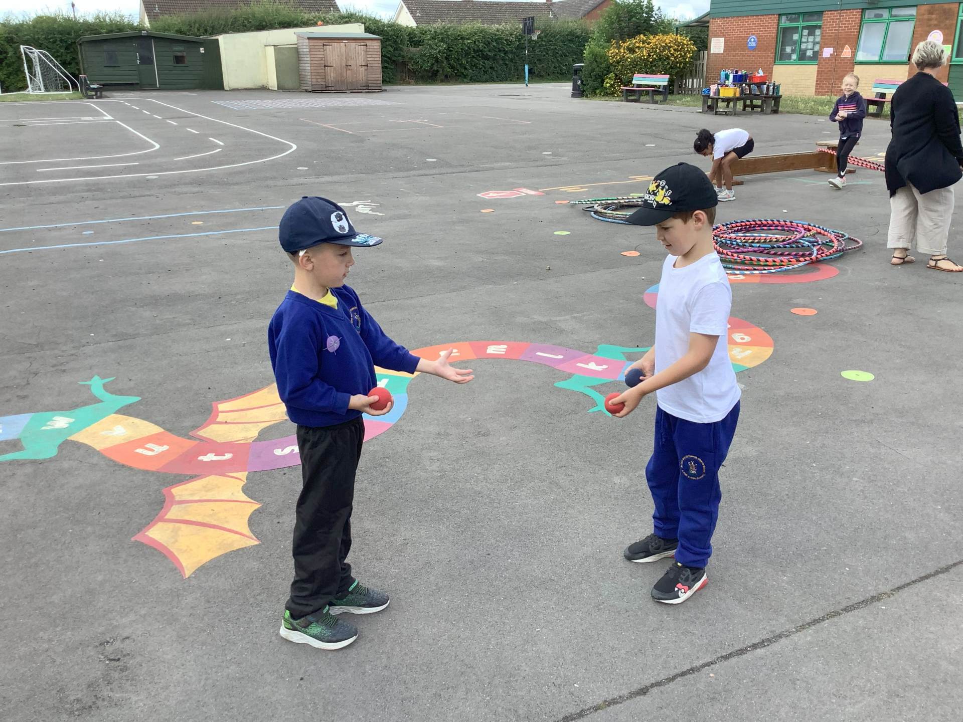 Today we took part in our sports festival. We had a great time doing lots of different activities. Mr Butt led parachute games and Mrs Hart taught us some skipping games and chants. We even used a long rope! We did some tennis with Mrs Edwards and playground games. We enjoyed tag rugby with Mrs Leach. We all had our favourites. We ended the day with some calming yoga with Mrs Marriott.