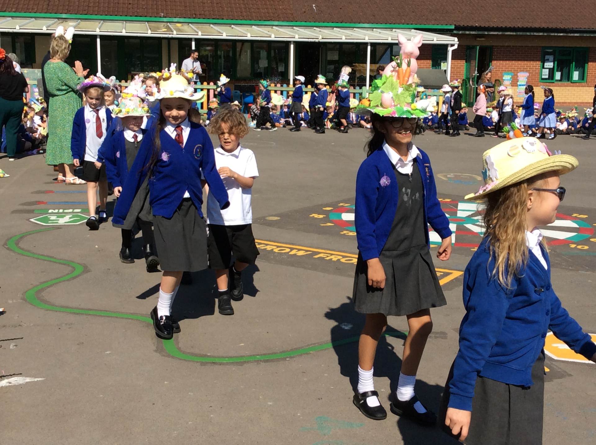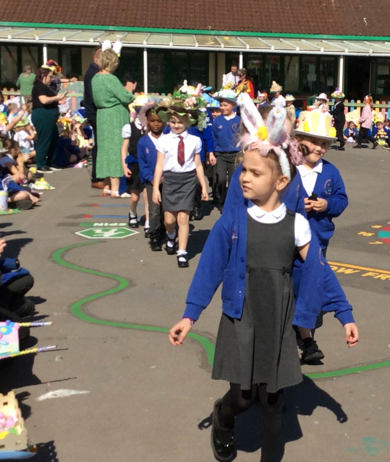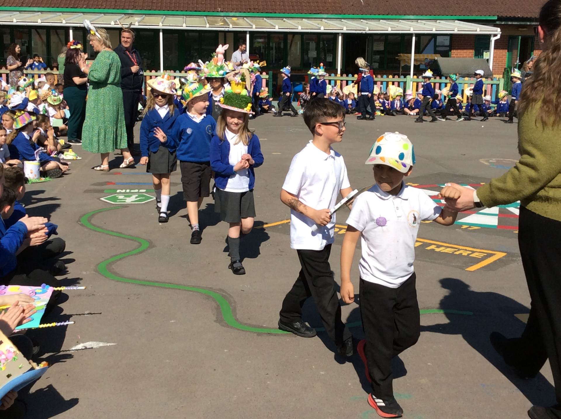 What a wonderful display of Easter bonnets for our parade today! The sun came out for us too!