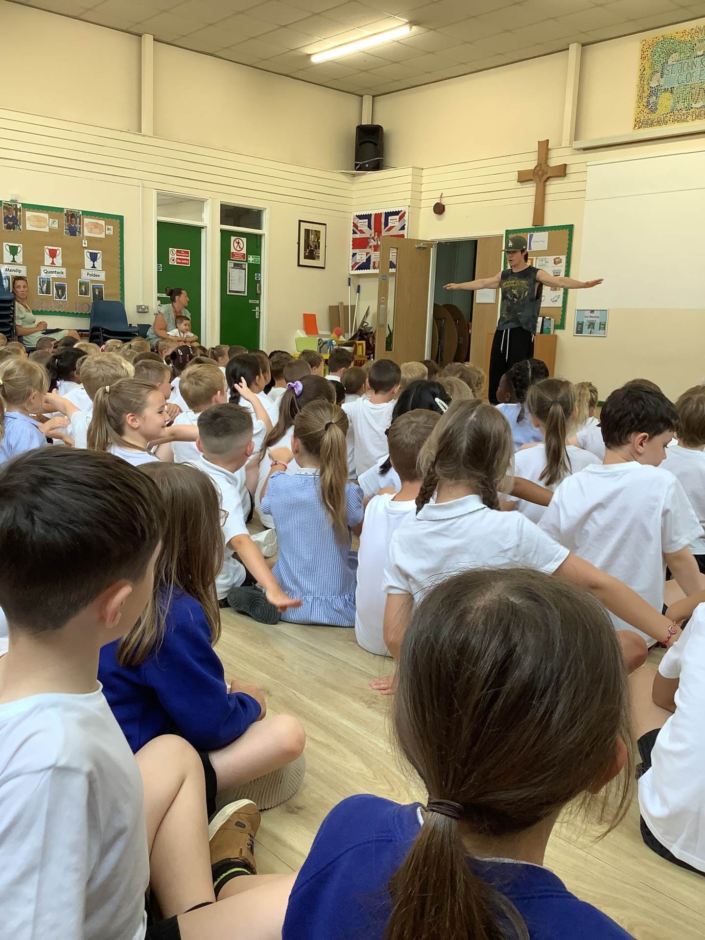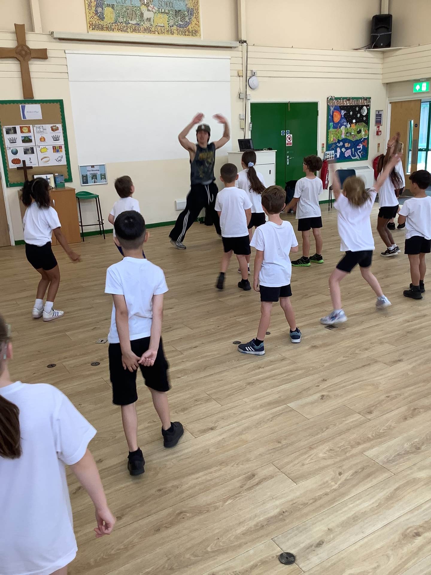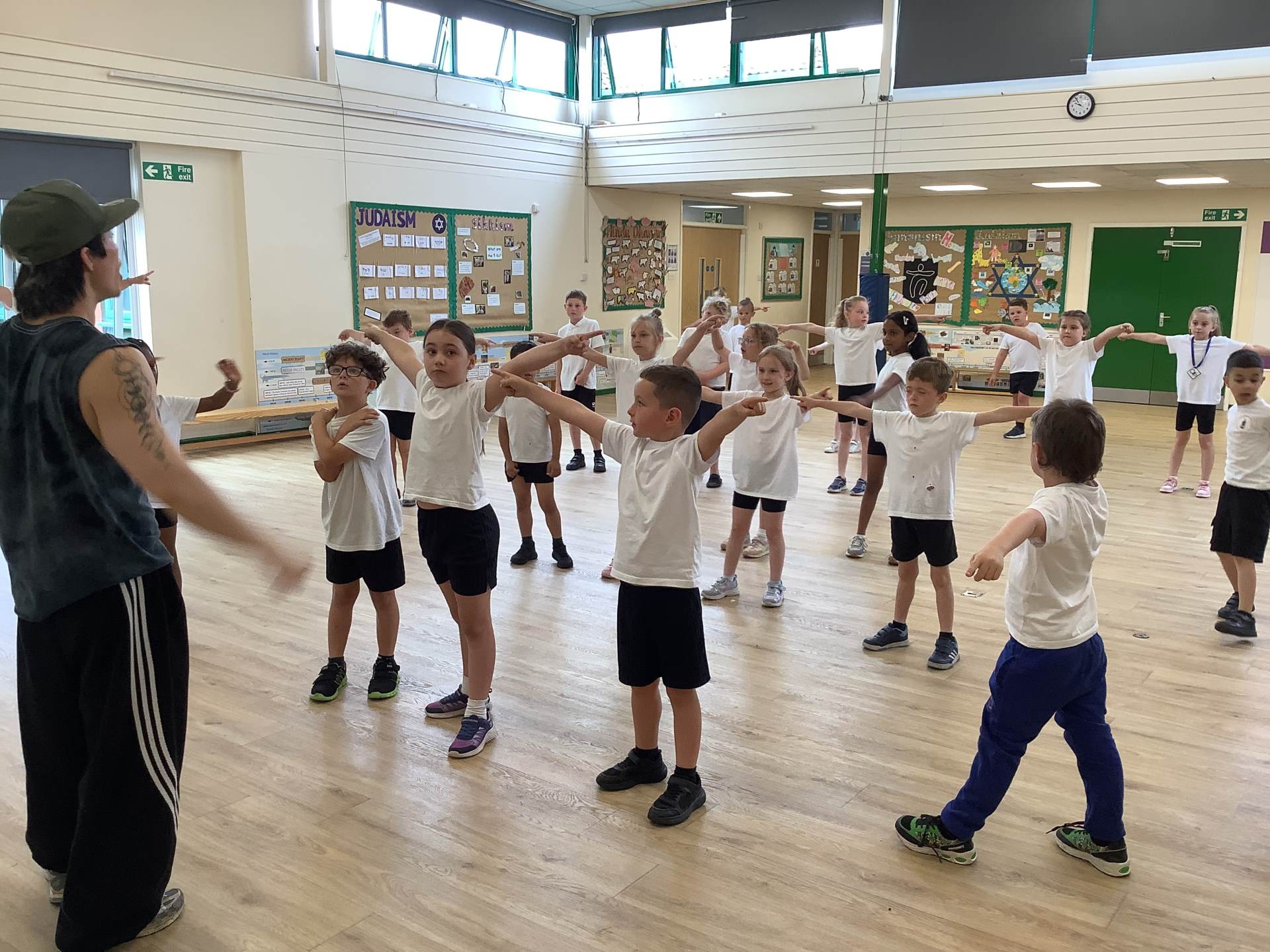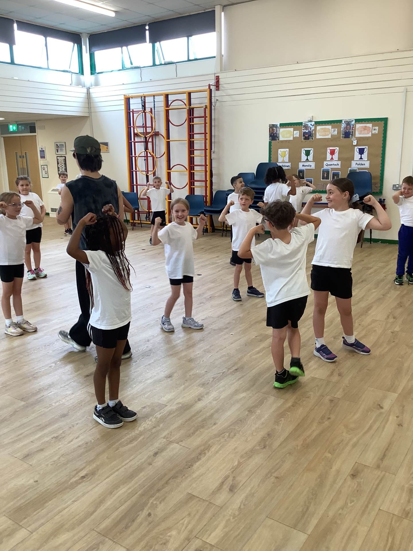 What an amazing session we had with Kieran today. He is a professional Street dancer. He has met Ant and Dec and danced in front of Simon Cowell on Britain's Got Talent. He also stars in the film Wicked! Here are some pictures from our KS1 assembly and our session this morning.