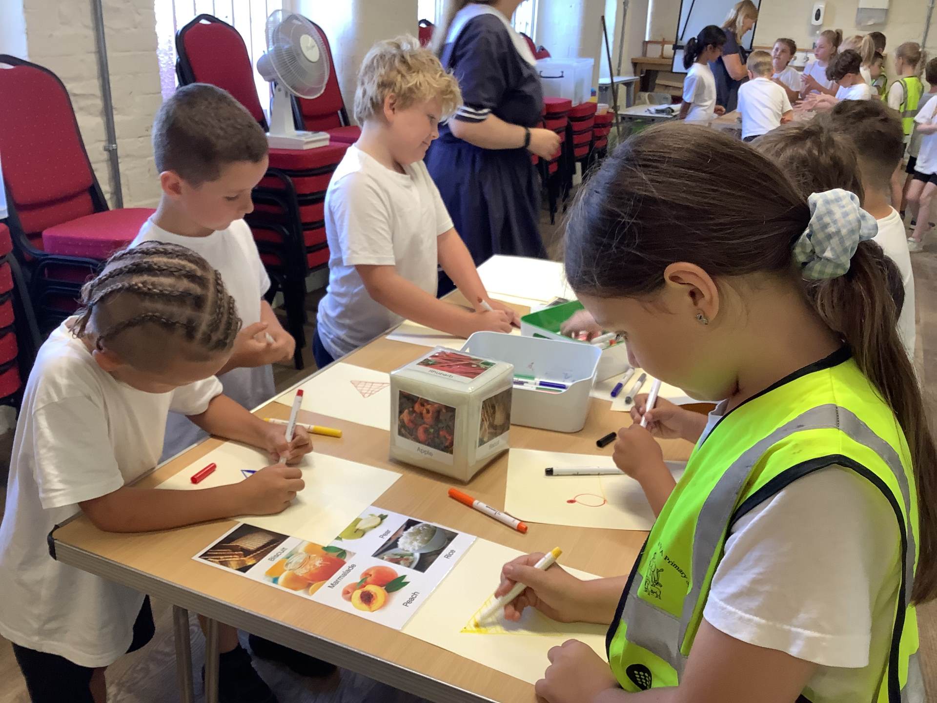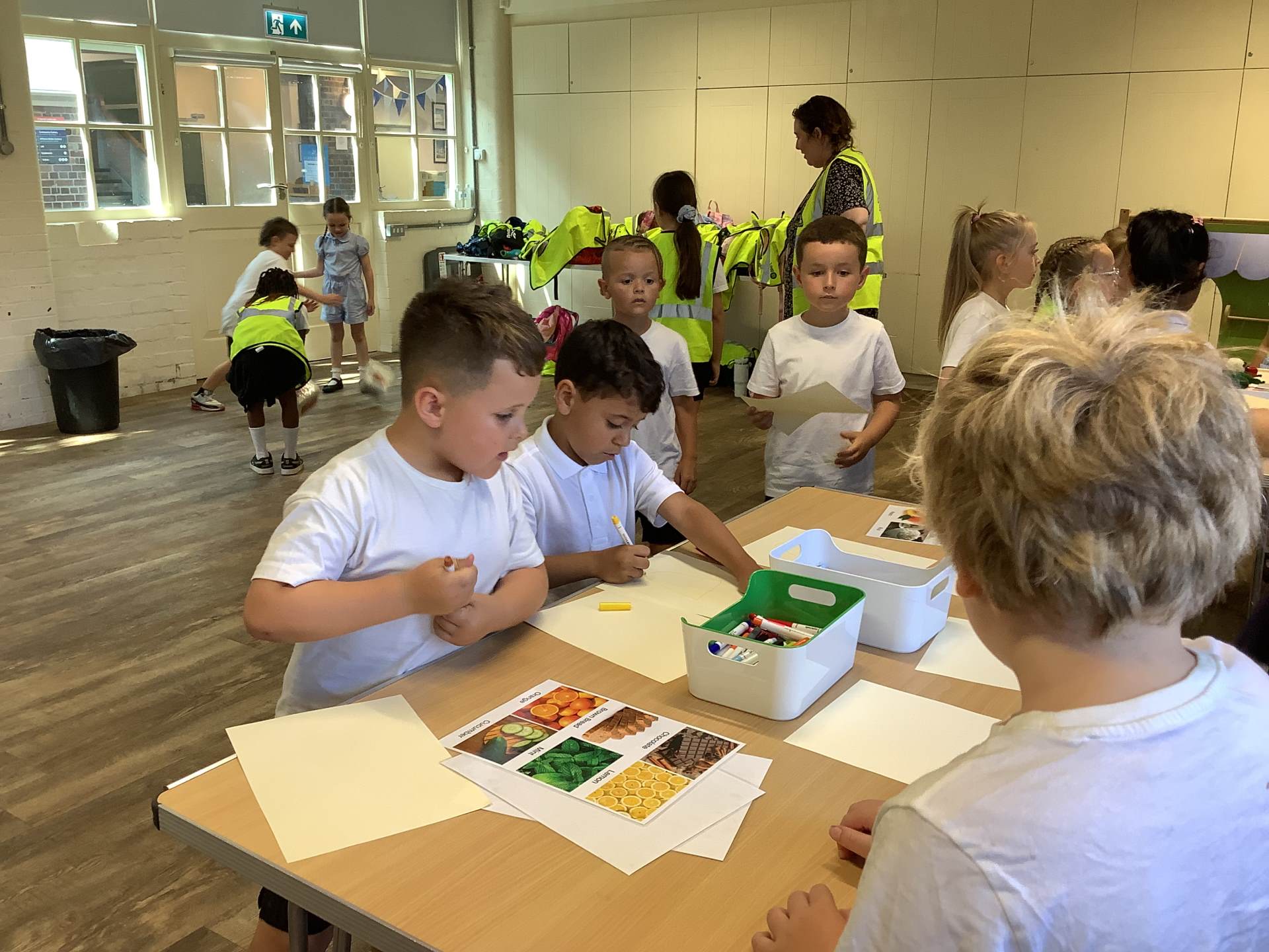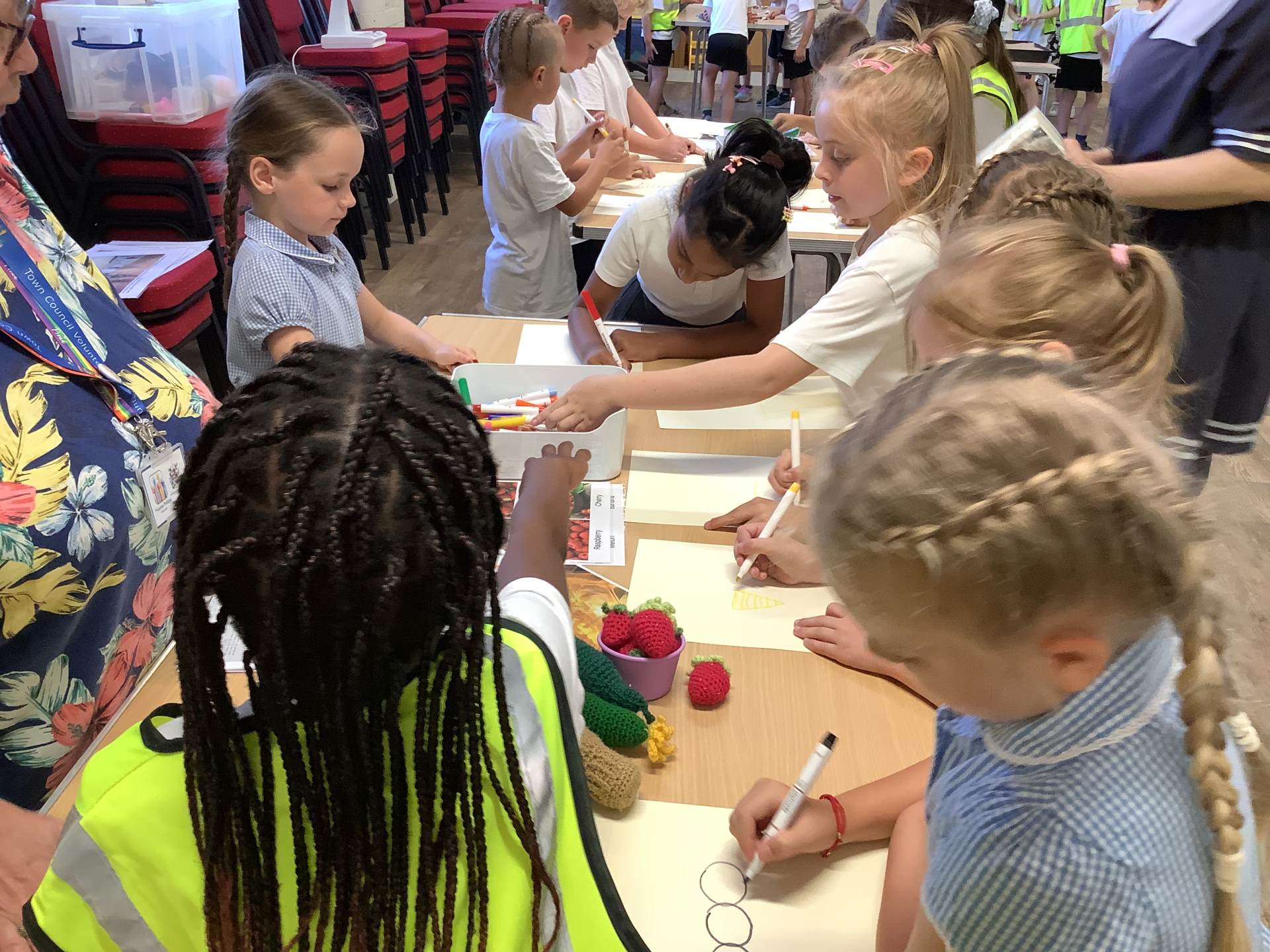 We had a busy day with lots of activities including, stained glass window making, sketching and badge making.