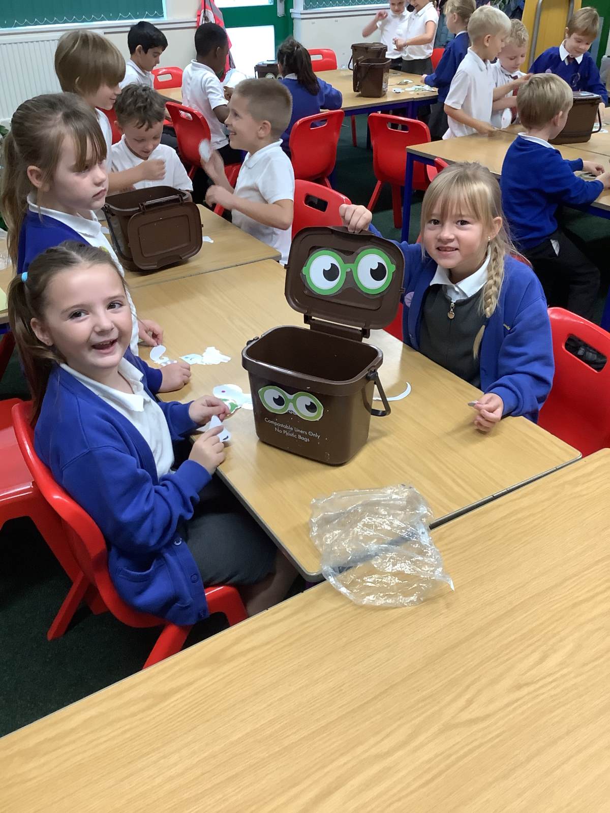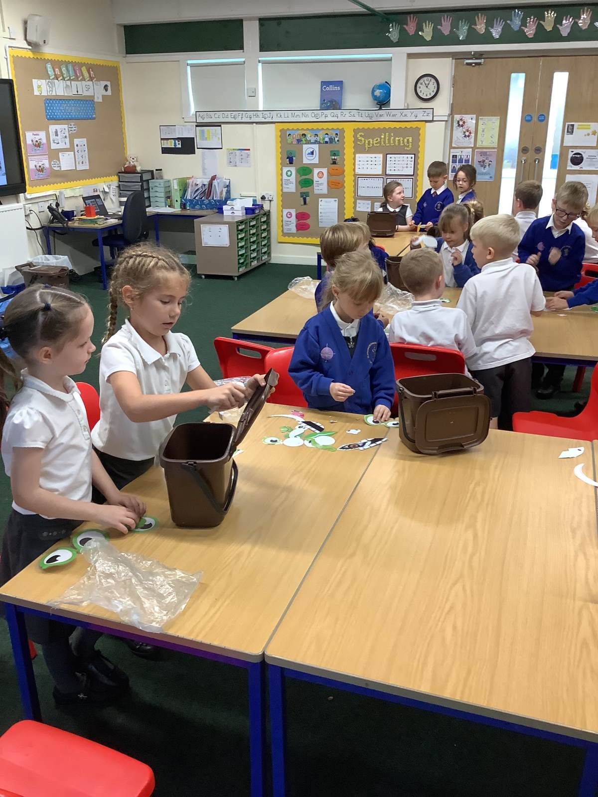 Today we had an exciting visitor in school. Gary came from Carymoor Recycling Centre to talk to us about recycling our waste. He told us about how to recycle different materials and where to put them. He told us where they are taken and what happens next. He talked about the '3 Rs' reuse, recycle and reduce.